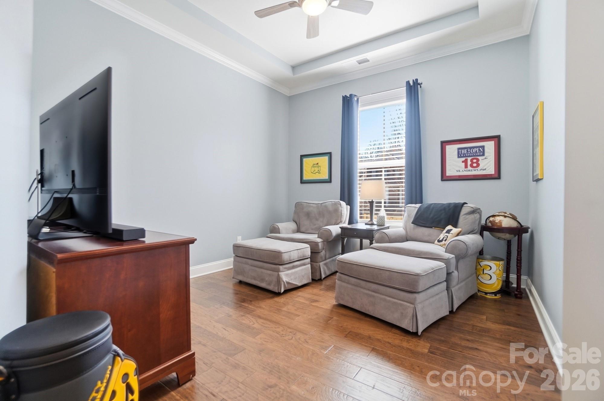 This beautiful 4-bedroom home with a main-level primary suite offers an exceptional blend of comfort, style, and functionality. The spacious primary retreat features a stunning en-suite bathroom and an oversized walk-in closet. Just steps away, the generous laundry room includes a convenient utility sink and ample space for everyday needs. The main level is thoughtfully designed for both living and entertaining. Enjoy a formal dining room, a versatile flex space ideal for a home office, play room or sitting room, and a luxurious kitchen featuring a large island, abundant natural light, and plenty of room for gathering with family and friends. The kitchen connects to the dining room through a convenient butler's pantry, adding both elegance and practicality. The impressive two-story great room serves as the heart of the home, complete with built-in bookshelves and a cozy gas-log fireplace. Additional main-level features include a drop zone off the garage, helping to keep daily life organized. Upstairs, you'll find a spacious loft, three generously sized bedrooms, and two full bathrooms, along with abundant closet space throughout. Step outside to enjoy the beautiful fenced backyard, complete with a covered patio, fire pit, and storage shed - perfect for relaxing evenings or entertaining outdoors. The home also features a desirable three-car garage, providing plenty of space for vehicles, storage, or hobbies. This home offers space, style, and exceptional livability both inside and out.