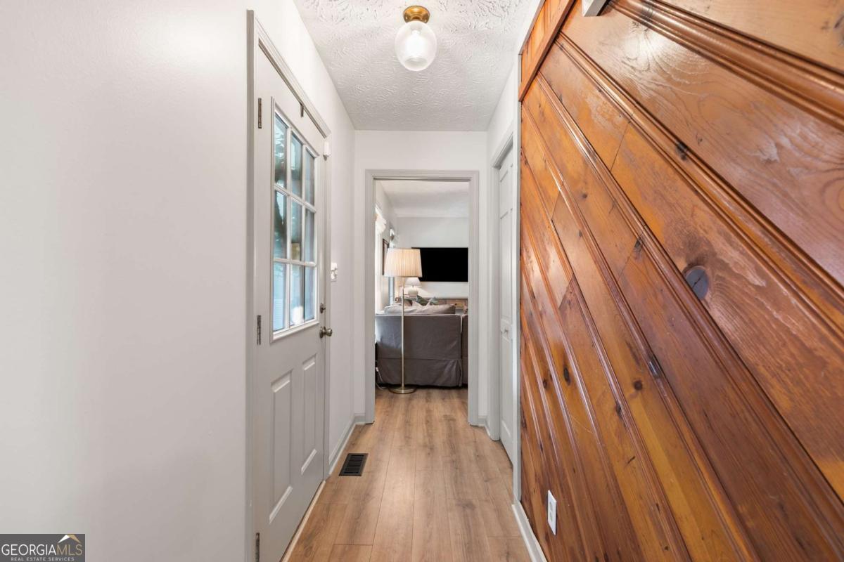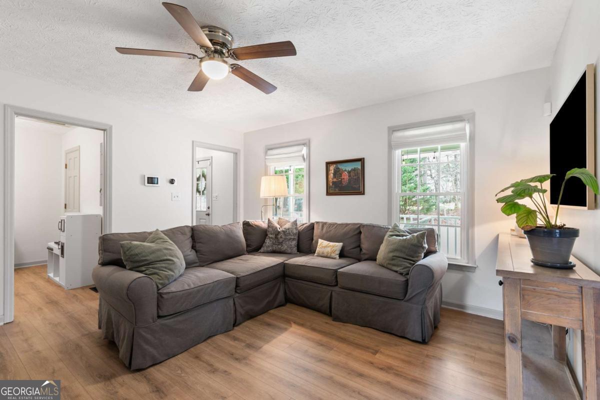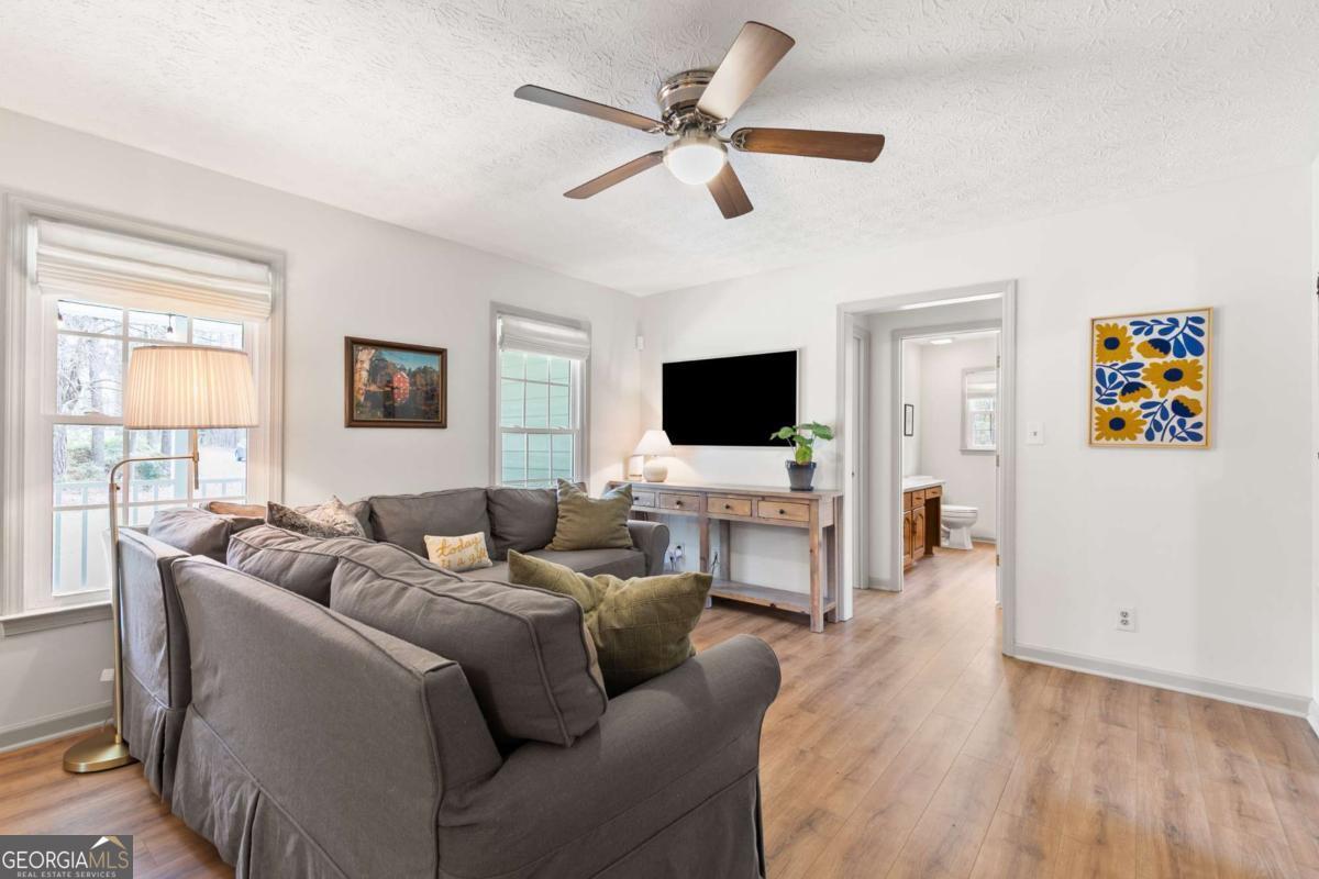 Welcome home to this inviting three-bedroom ranch nestled on approximately two peaceful acres in Fayetteville. From the moment you arrive, the oversized covered front porch - complete with a classic porch swing - welcomes you in and sets the tone for relaxed Southern living. Inside, the home feels warm and comfortable with thoughtful character throughout. The entryway features beautiful pine paneling that adds a touch of rustic charm and leads into bright, spacious living areas filled with natural light from the updated windows. The flexible floorplan offers two separate living spaces, one with an office and closet that can easily serve as a home workspace, playroom, or cozy den. LVP flooring runs throughout much of the home, tying the spaces together with a clean, modern look. The eat-in kitchen features beautiful maple cabinetry offering plenty of storage and has been updated with new quartz countertops that bring a fresh, modern feel to the space. Just beyond, the breakfast area is surrounded by windows overlooking the backyard, creating a bright and welcoming spot to gather around the table. An additional water line in the kitchen also offers the option for a second refrigerator or future wet bar. The primary suite offers a peaceful retreat with newer carpet and an updated bathroom featuring fresh paint and trim, a dual vanity, and a spacious shower. Two additional bedrooms share a full bathroom with a tub/shower combination and extended vanity with knee space. Each bathroom also includes its own linen closet for extra storage. This home has been lovingly maintained with updates that provide peace of mind, including newer windows, exterior paint, a waterproofed crawlspace, and a new HVAC system installed in 2024. Step outside to enjoy the wide-open backyard, where mature trees surround the property and create a quiet, private setting with plenty of space to relax, play, or entertain. The sale also includes an adjacent 0.4-acre tract (two tax IDs), offering additional space and flexibility. This property offers a peaceful setting while still being incredibly convenient. Located just minutes from I-85, Trilith, Peachtree City, and downtown Fayetteville, you can enjoy the quiet surroundings while remaining close to everything Fayette County has to offer.