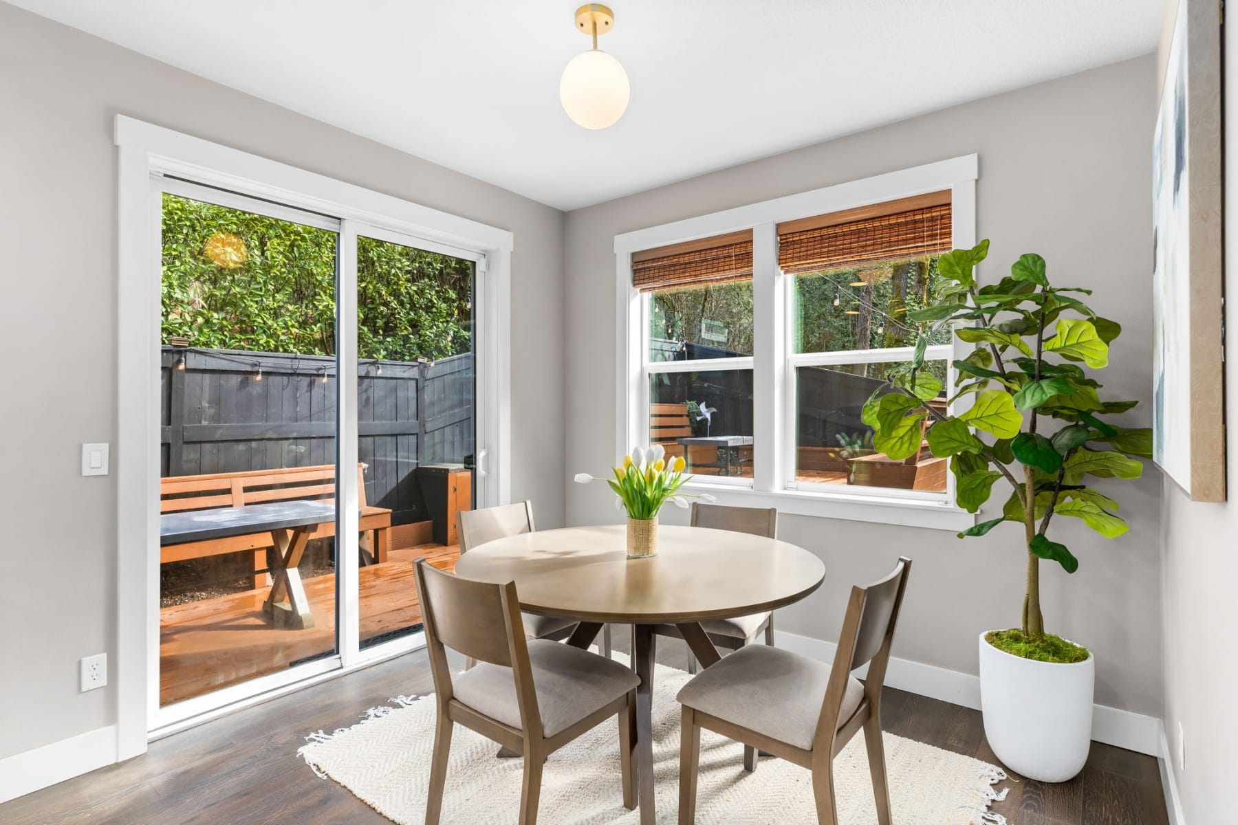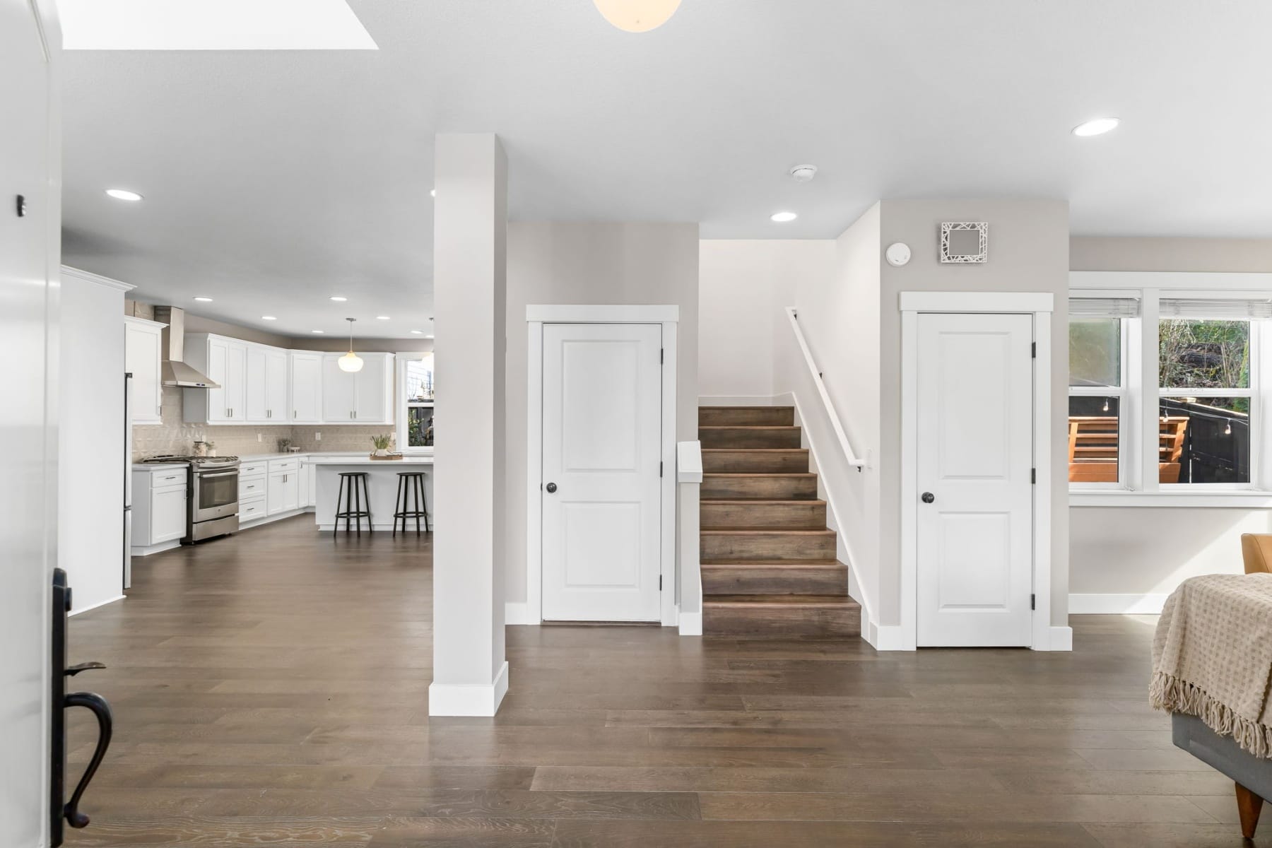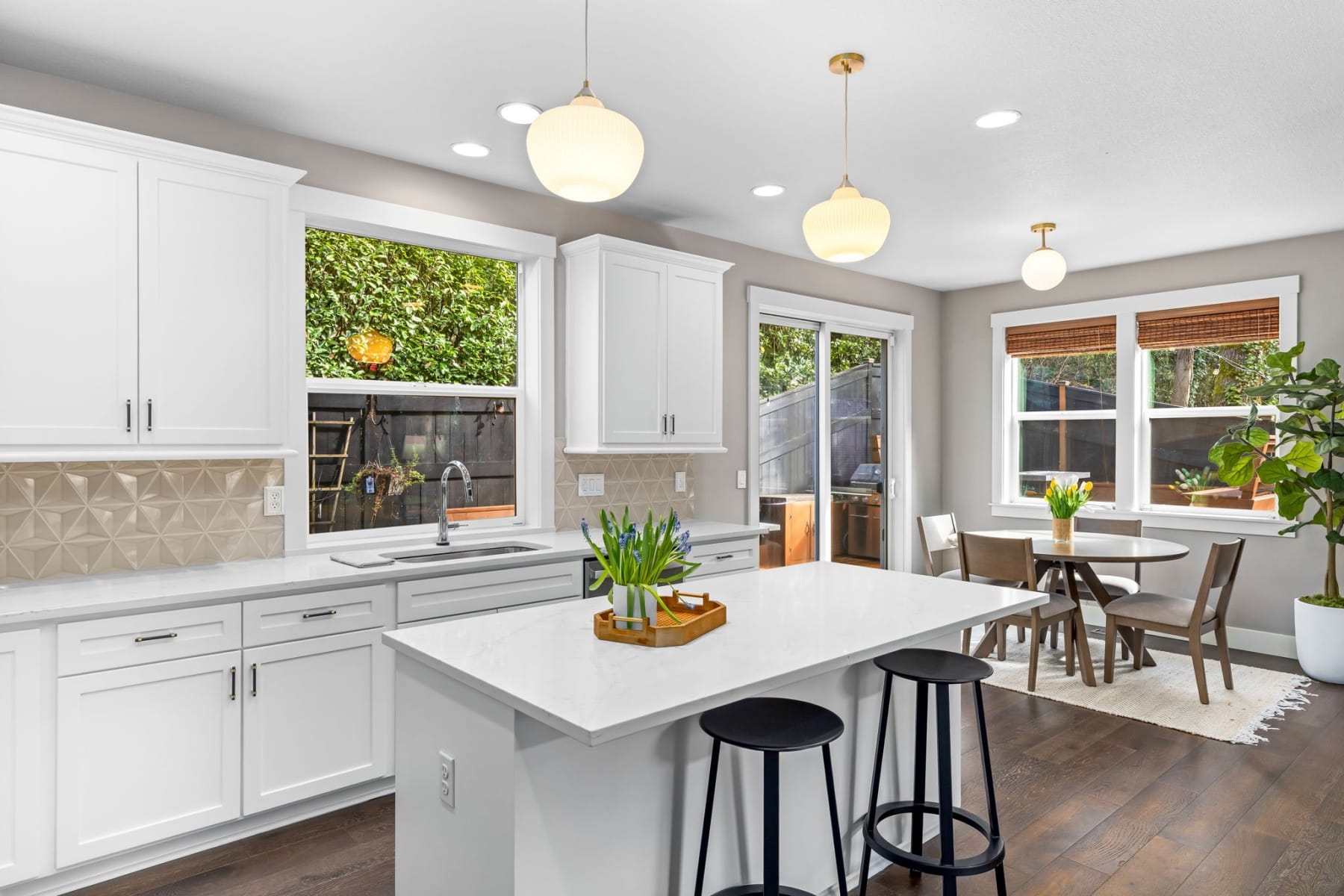This light-filled residence showcases beautifully curated, thoughtfully selected finishes throughout, blending contemporary style with everyday comfort. The kitchen features quartz countertops, a full-height backsplash, stainless steel appliances, and freshly painted cabinetry, perfectly designed for both entertaining and daily living. The open-concept main level offers engineered hardwood floors, a gas fireplace with built-ins, and expansive windows that fill the space with natural light. Upper level, you'll find generously sized bedrooms and two beautifully updated bathrooms with cabinetry and marble tile. Additional upgrades include fresh interior paint, a newly expanded front porch, and light fixtures in the dining room. The oversized two-car garage offers a dedicated workshop space along with generous storage options. Step outside to enjoy the low-maintenance yard with decks, ample seating space, adjacent green space for added privacy, and a brand-new hot tub. Home Energy Score = 5. HES Report at https://rpt.greenbuildingregistry.com/hes/OR10115249