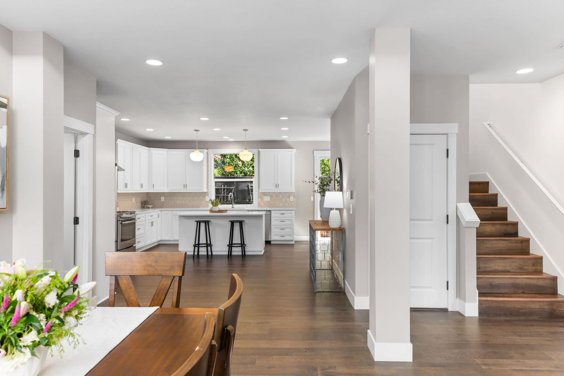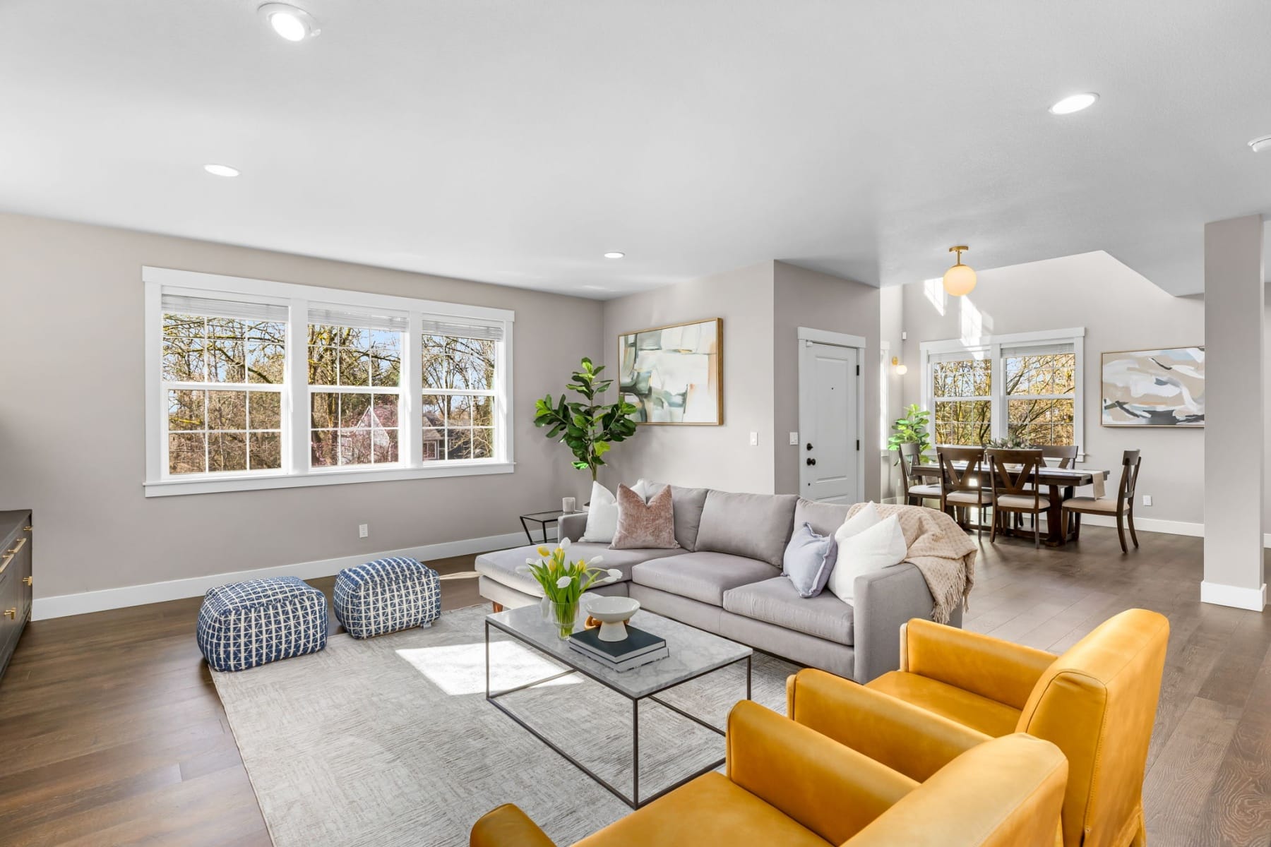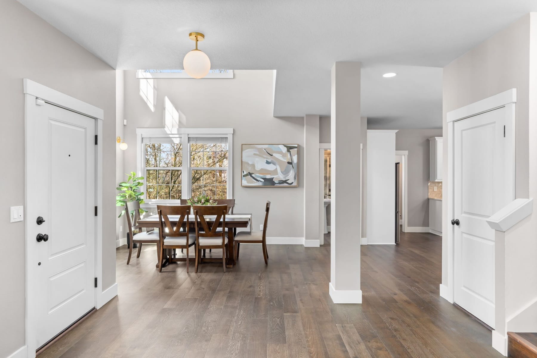 This light-filled residence showcases beautifully curated, thoughtfully selected finishes throughout, blending contemporary style with everyday comfort. The kitchen features quartz countertops, a full-height backsplash, stainless steel appliances, and freshly painted cabinetry, perfectly designed for both entertaining and daily living. The open-concept main level offers engineered hardwood floors, a gas fireplace with built-ins, and expansive windows that fill the space with natural light. Upper level, you'll find generously sized bedrooms and two beautifully updated bathrooms with cabinetry and marble tile. Additional upgrades include fresh interior paint, a newly expanded front porch, and light fixtures in the dining room. The oversized two-car garage offers a dedicated workshop space along with generous storage options. Step outside to enjoy the low-maintenance yard with decks, ample seating space, adjacent green space for added privacy, and a brand-new hot tub. Home Energy Score = 5. HES Report at https://rpt.greenbuildingregistry.com/hes/OR10115249