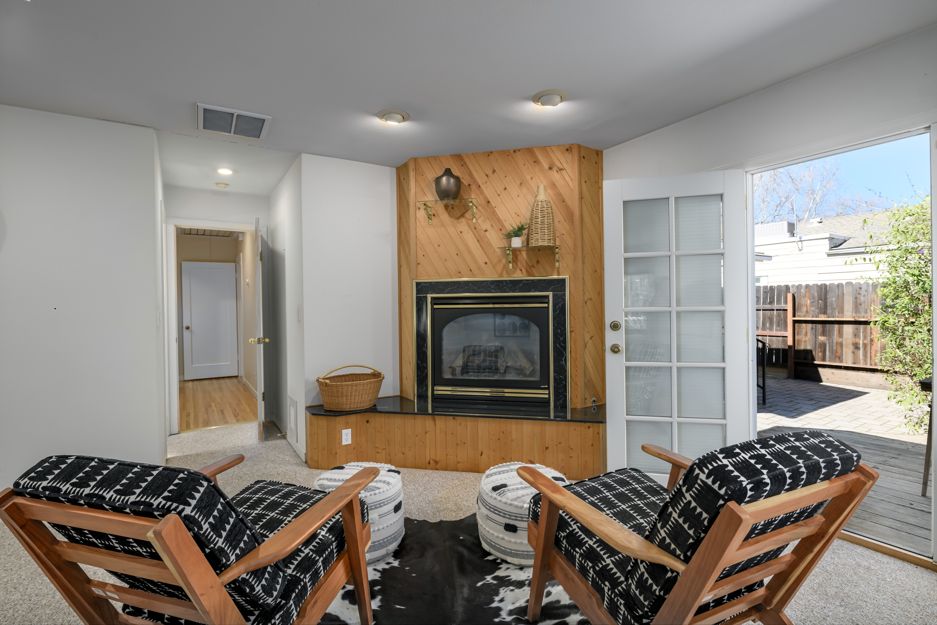 Inviting 2-bedroom, 2-bath home located in a beautiful, established neighborhood known for its mature trees and welcoming streetscape. Hardwood floors add warmth and character throughout the home. The remodeled kitchen features a spacious island and a window overlooking the backyard—perfect for enjoying the view while cooking or entertaining.The living room offers a cozy fireplace, creating a comfortable gathering space, while dual-pane windows and ceiling fans enhance energy efficiency and year-round comfort.The oversized primary bedroom is a true retreat, complete with built-in bookshelves, a fireplace, and a huge walk-in closet. French doors open directly to the backyard deck, creating a wonderful indoor-outdoor connection—perfect for morning coffee or relaxing evenings.A wonderful blend of comfort, character, and thoughtful updates in a highly desirable neighborhood.Outside, you'll find a detached one-car garage with a workshop area, ideal for hobbies, projects, or finally organizing all the things you promised yourself you'd sort someday. And when it's time to relax, the hot tub is ready and waiting.