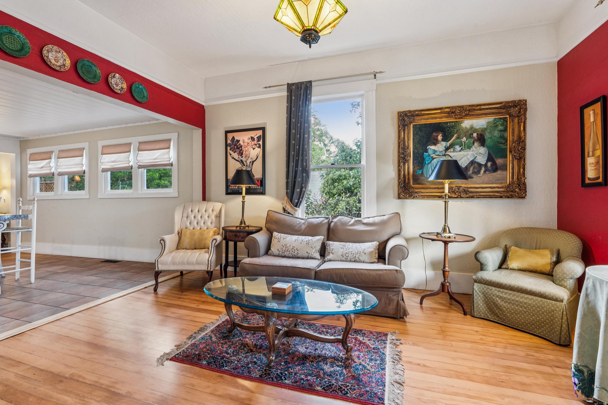 Celebrating its 100th year, the enchanting Rose Cottage blends storybook charm with thoughtfully updated infrastructure, offering the rare opportunity to enjoy historic character with modern comfort. Set on a beautifully landscaped parcel, the grounds are rich with heritage roses, majestic oak and palm trees, and striking granite outcroppingscreating a setting that feels both timeless and quintessentially Sonoma Valley. A large covered porch welcomes you to the home, where French doors open to light-filled interiors that are warm, inviting, and full of character. Period details have been lovingly preserved, including high ceilings, substantial moldings, classic board-and-batten walls, and newly refinished wood floors that reflect the home's rich history. The kitchen and baths have been tastefully updated, offering modern convenience while remaining in harmony with the cottage's historic charm. A newly built deck extends the living space outdoors, providing an ideal place to relax, entertain, and take in the surrounding gardens and natural beauty. The Rose Cottage is truly specialperfectly scaled, beautifully presented, and ready to enjoy from the moment you arrive. With room for future expansion, this rare Sonoma Valley treasure offers both immediate enjoyment and the opportunity to grow with your vision.