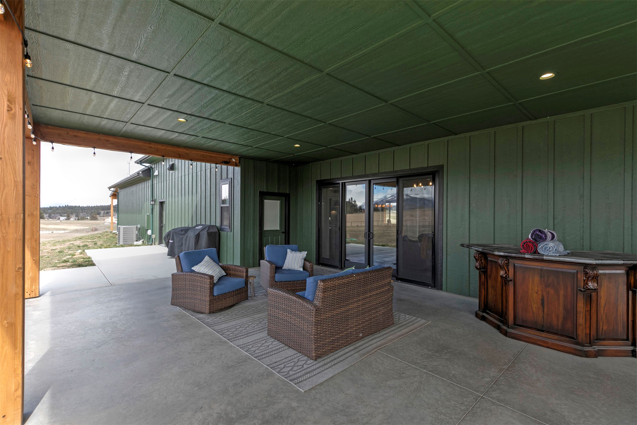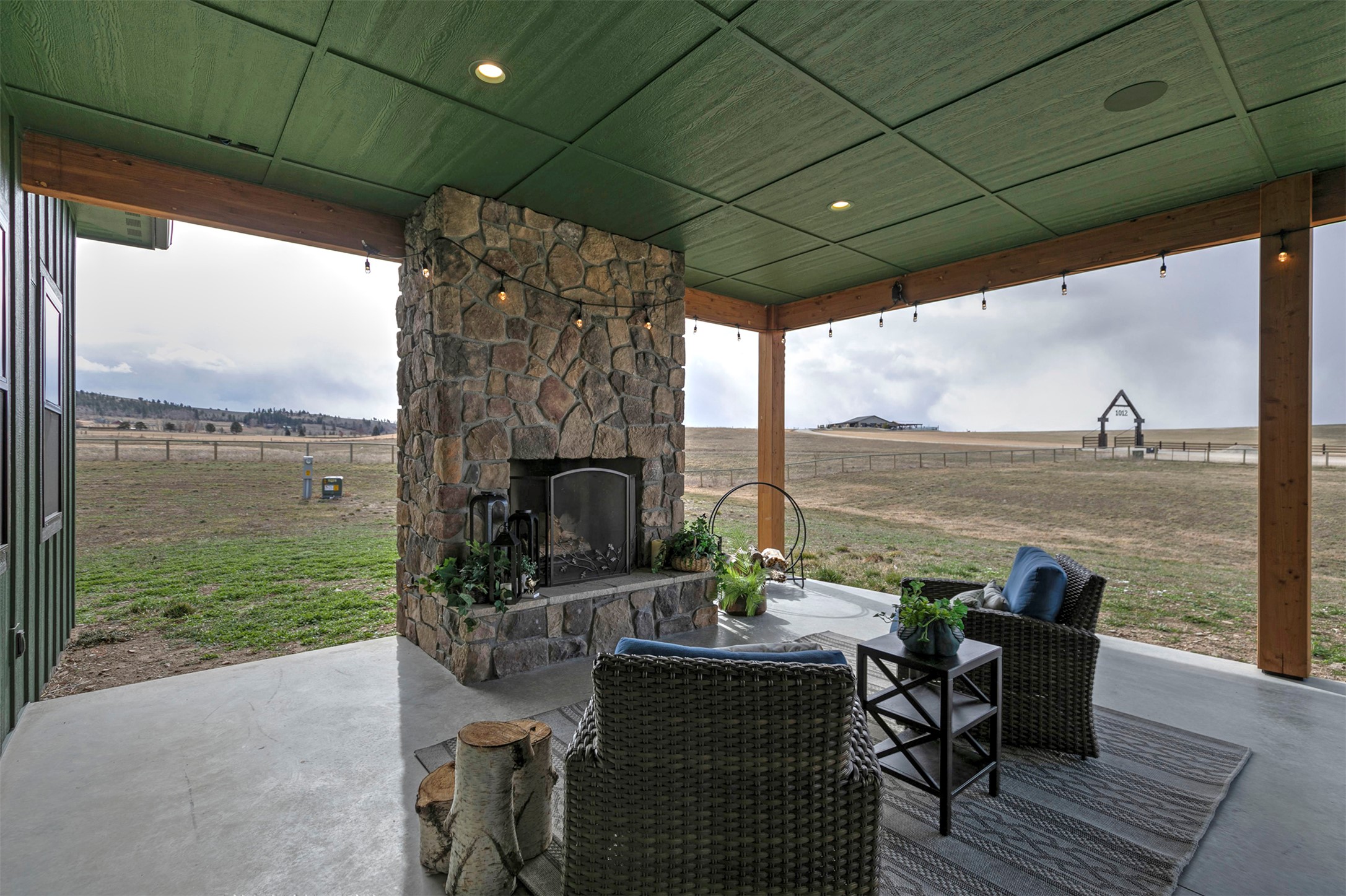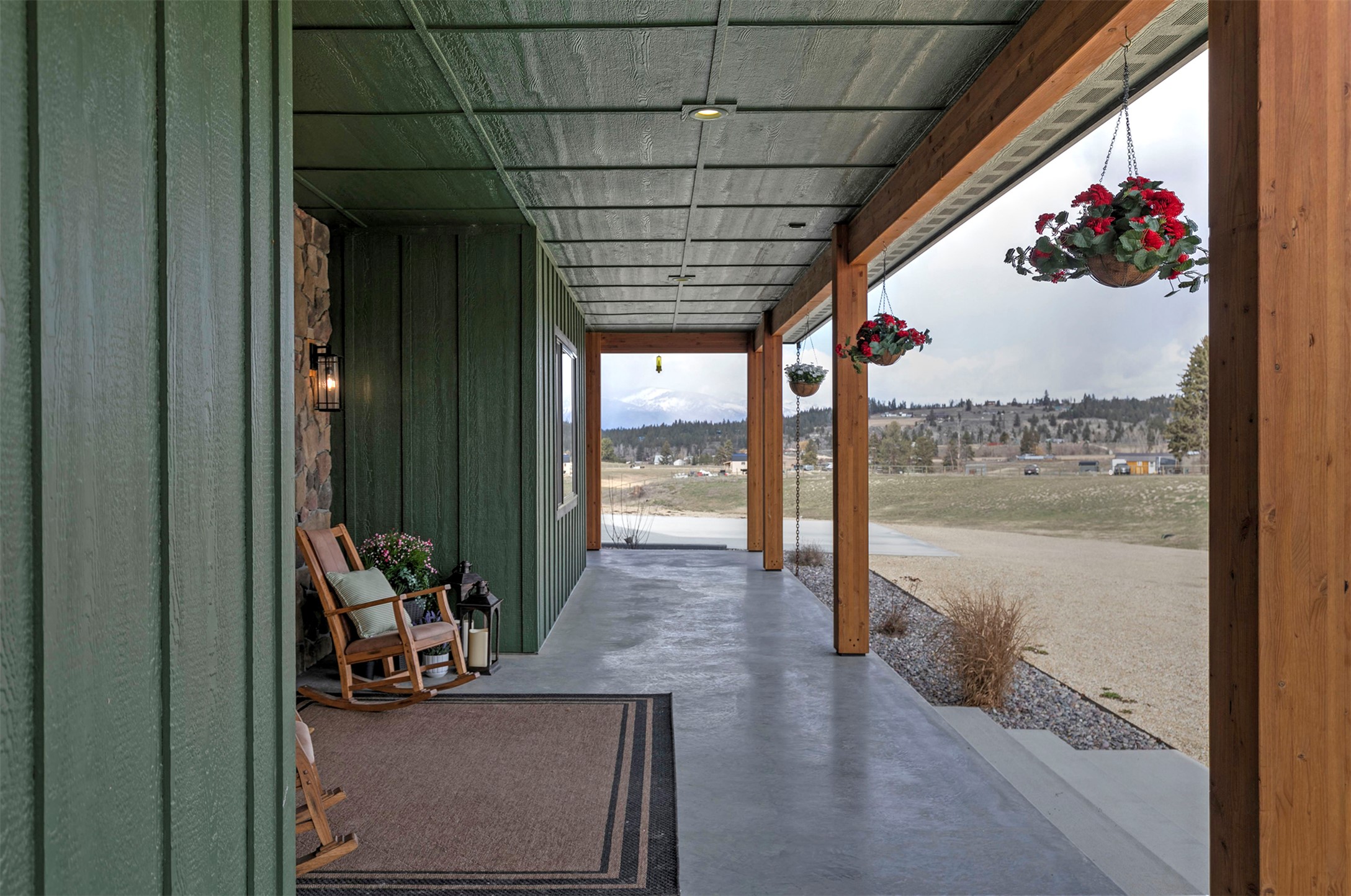 Experience the romance of authentic Montana living in this custom-crafted retreat, gracefully set on 10 private, fully fenced acres with breathtaking, unobstructed views of the Bitterroot Mountains. Thoughtfully designed long before construction began, every detail of this home reflects a rare blend of craftsmanship, comfort, and artistry. A wide covered porch welcomes you inside, where the living room unfolds beneath soaring 11.5-foot ceilings and a wall of expansive windows that frame the mountains like living artwork. At the center of the great room, a stunning fireplace features a mantle supported by custom copper brackets and is flanked by elegant open shelving. Warm acacia wood floors flow throughout the space, while a statement chandelier adds an inviting glow. The kitchen is both beautiful and functional - an inspired gathering space designed for everyday living and entertaining alike. A generous island anchors the room, surrounded by custom cabinetry, a handmade copper farmhouse sink and range hood, and a curated mix of granite and quartz countertops. Premium appliances and abundant workspace make meal preparation a pleasure, while the dining area, accented with exposed beams, creates the perfect setting for long meals and easy conversation. One of the home's most memorable features is the Whiskey Room - an intimate and welcoming retreat complete with a one-of-a-kind bar and unique memorabilia, offering the perfect place to unwind, share stories, and create lasting memories with friends and family. The main-level primary suite offers a peaceful sanctuary with 10-foot ceilings and serene mountain views. The spa-inspired bathroom features heated floors, a custom-tiled dual-head shower, soaking tub, dual vanities, and beautifully crafted cabinetry. A spacious walk-in closet with custom built-ins provides exceptional storage. A main-floor office, generous mudroom, and convenient powder room complete the thoughtfully designed main level. Upstairs, three spacious bedrooms - each with well-organized double closets - share a beautifully appointed full bathroom and a large bonus or TV room, perfect for family living or guests. Above the garage, a private-entry flex space offers endless possibilities, whether as guest quarters, a studio, home gym, or additional office. Outdoor living is just as exceptional. A massive wood-burning fireplace anchors the extended covered patio, creating a true outdoor living room ideal for year-round enjoyment. Gather around the fire beneath Montana's star-filled skies or enjoy outdoor dining while watching the ever-changing sunset across the mountains. The exterior is equally impressive, featuring cultured stone accents, copper-penny metal roof details, and a concrete patio already wired for a future hot tub. Modern conveniences include three Wi-Fi access points, a ceiling speaker system, remote-controlled window coverings, Andersen windows throughout, a water softener, and a whole-home humidifier. The heated oversized garage provides abundant storage and access to an unfinished upper area, while the lean-to offers additional covered parking. Set against the quiet beauty of ten pristine Montana acres, this extraordinary property offers privacy, craftsmanship, and sweeping views. More than a home, it is a place to gather, unwind, and fall in love with Montana every single day.