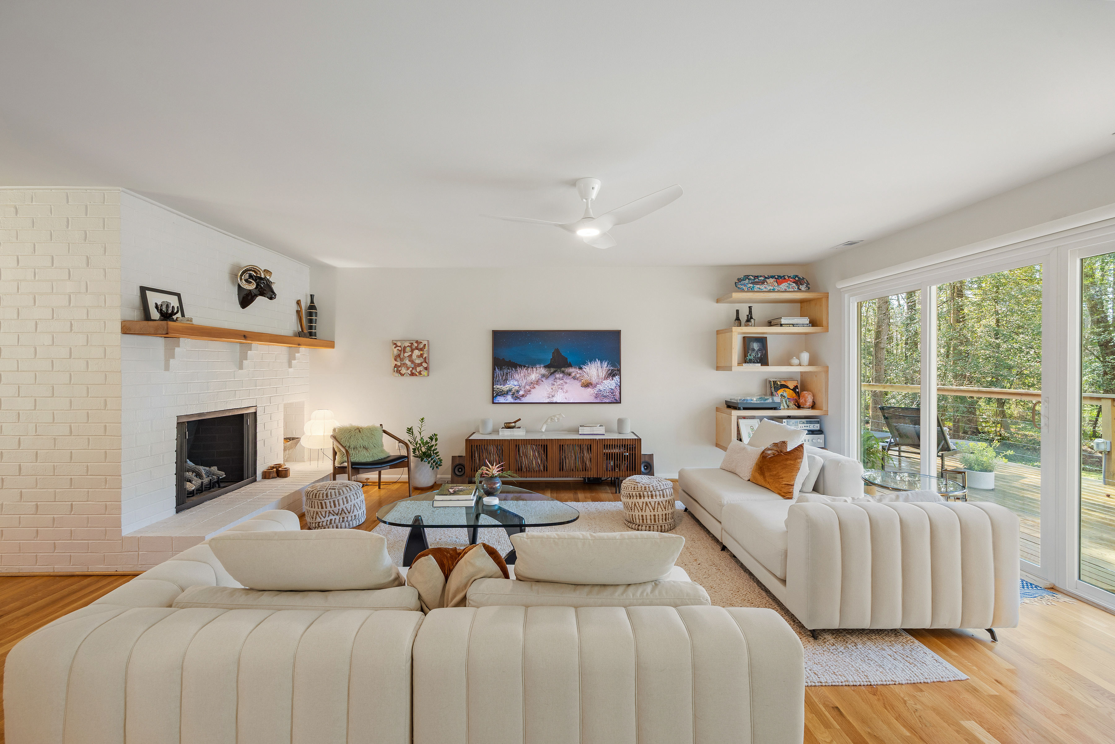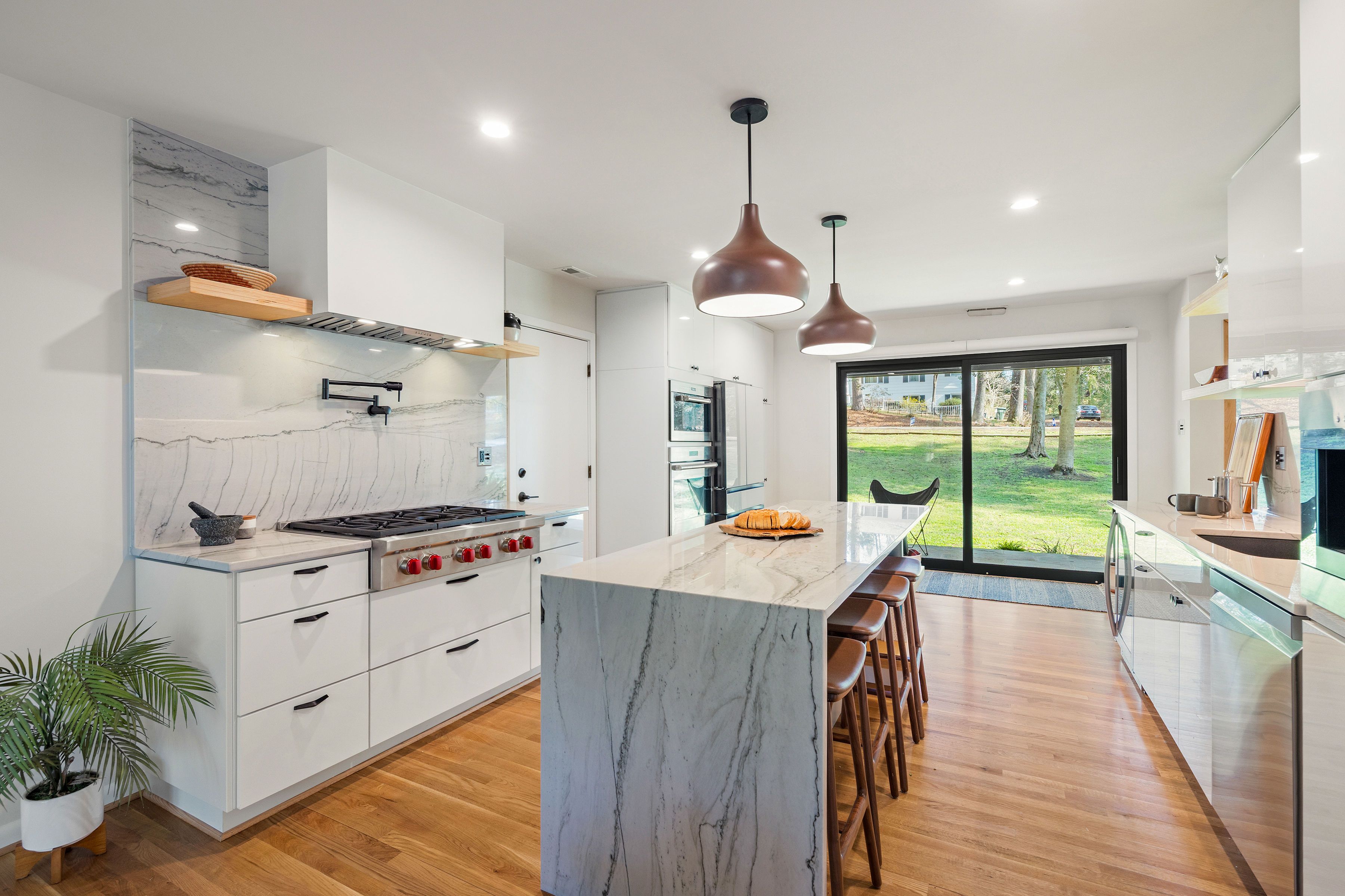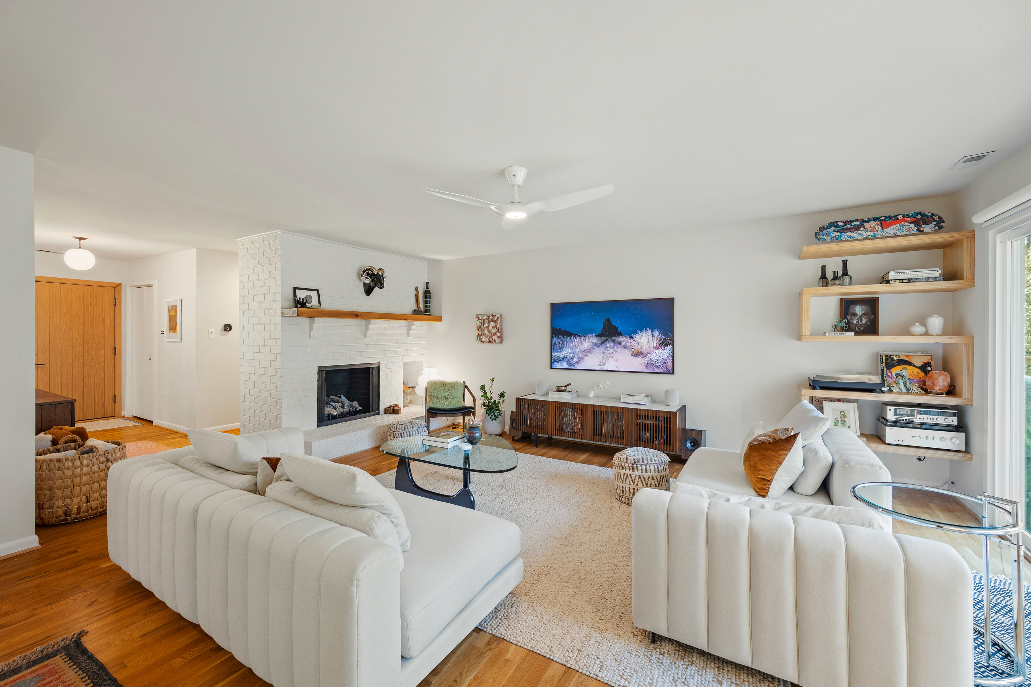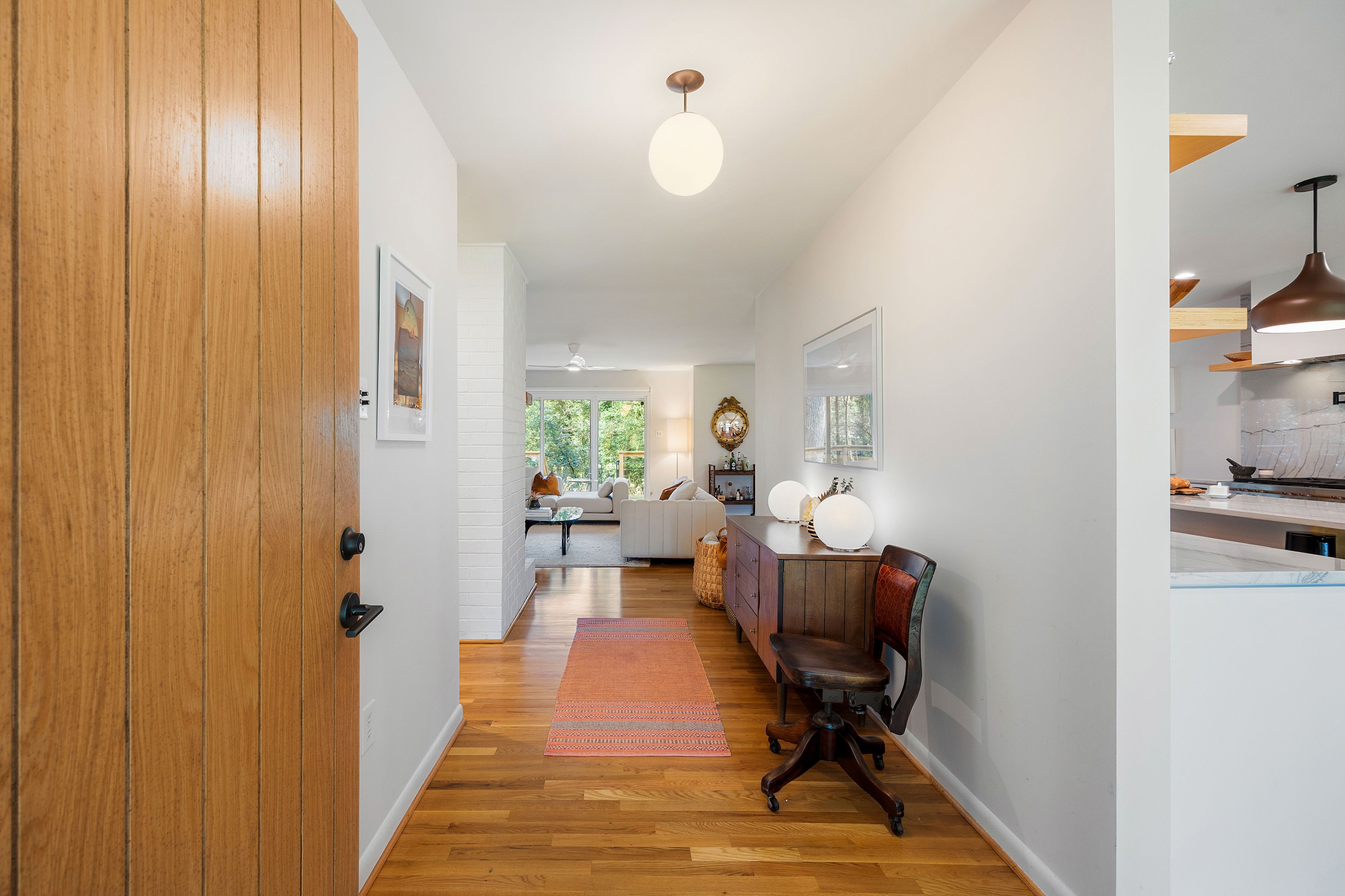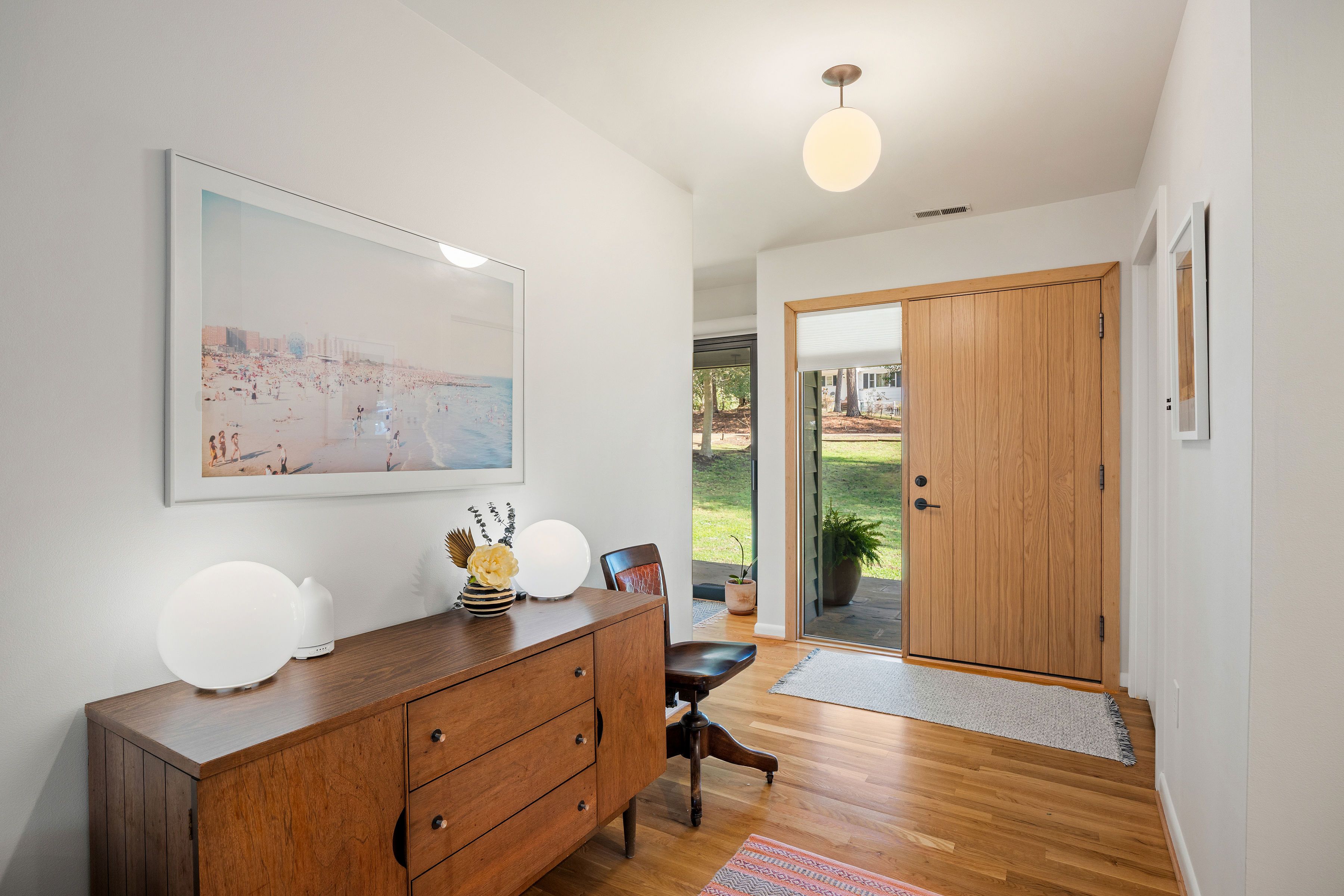 Renovated in 2023 with a level of intention and finish that's rare in Stratford Hills. The arrival sets the tone: custom Trustile front door with gallery sidelight, Marvin energy-efficient windows across the front, an 8-foot slider that connects the living space to the front porch. Hardwood floors run continuously throughout. Push-button switches in every room. Dimmers in the main living areas. The kitchen was redesigned to a professional standard: waterfall quartzite island and backsplash, Wolf 6-burner propane cooktop with wok grate, wall oven, built-in espresso station, pot filler, Zephyr hood, Samsung Bespoke refrigerator with beverage center, dual-zone wine fridge, handmade ceramic pendants, Baltic birch accents. The room earns attention before anyone opens a drawer. Design details at every turn reward a closer look: original Herman Miller Nelson Saucer Bubble Pendant in the dining room, custom white birch zig-zag media shelf engineered to carry weight, propane fireplace, Haiku 52" smart fans, Gucci wallpaper in the powder room, Japanese Alpha Bidet with heated seat in the primary suite. Attached studio with 9-foot ceilings, independent climate control, full laundry and sink station, floor-to-ceiling custom storage, and dedicated entry front and rear. A serious flex space — fourth bedroom, family room, home office, or creative studio — finished to the same standard as the rest of the house. Tankless hot water, smart thermostat, smart locks front and rear. Ring security system. HVAC upgraded for air quality. Dedicated propane grill line. Bi-level 2-car carport with dedicated electrical — easily upgraded for EV charging. Custom shed with its own electrical. Highland Hills pool access. A Sundance 680 smart hot tub flush-mounted on the full-length deck overlooks the half-acre lot backing to woods — genuinely private. Pony Pasture at your back door. Nothing to do but move in.
