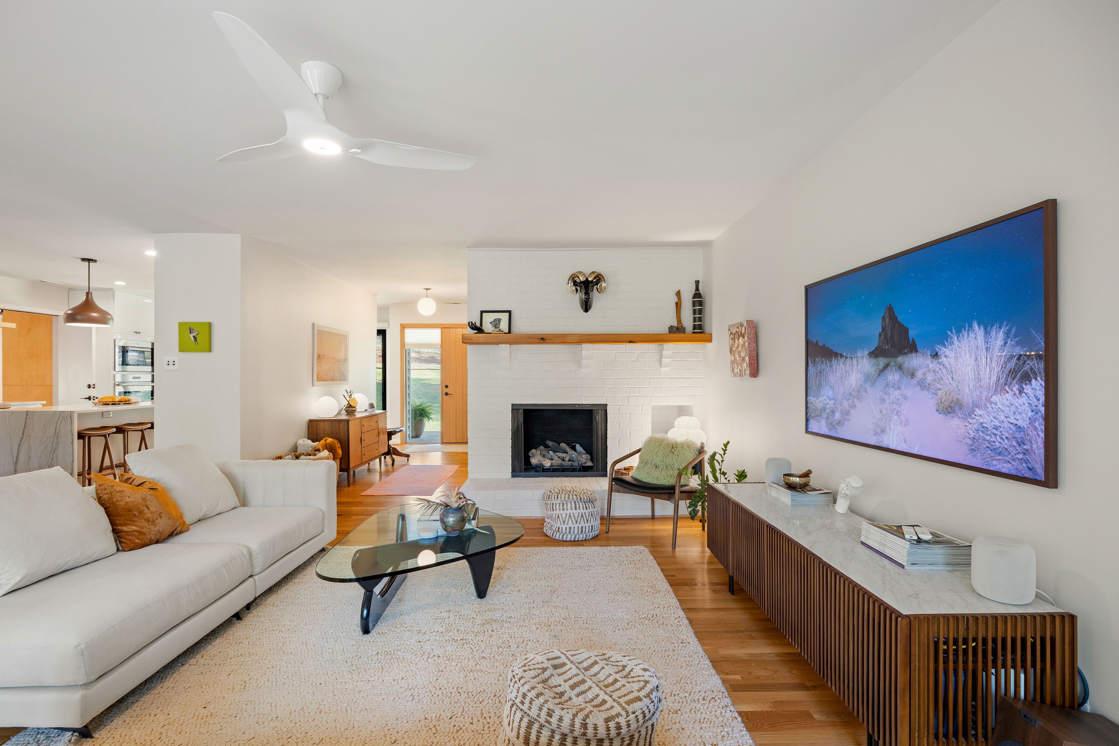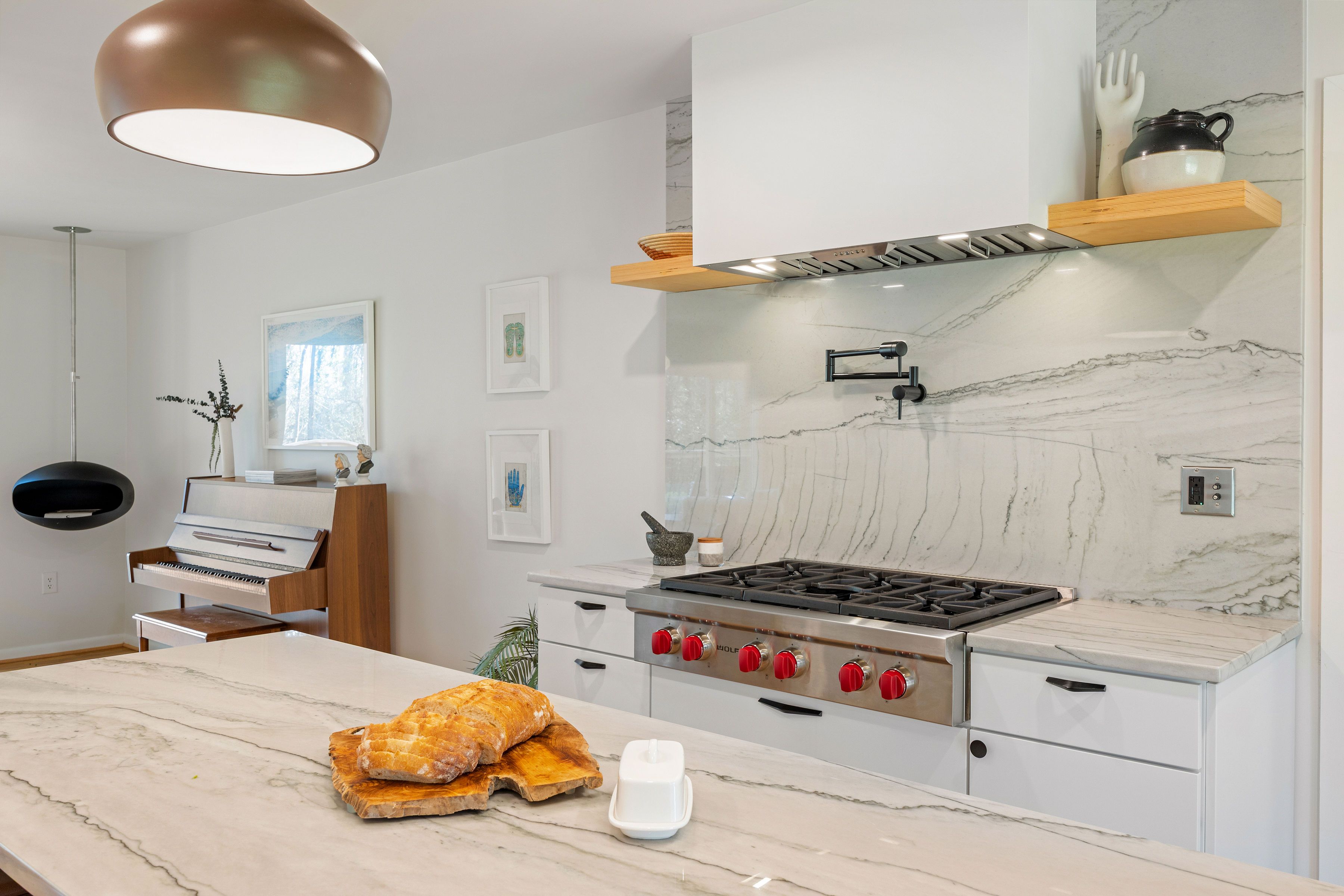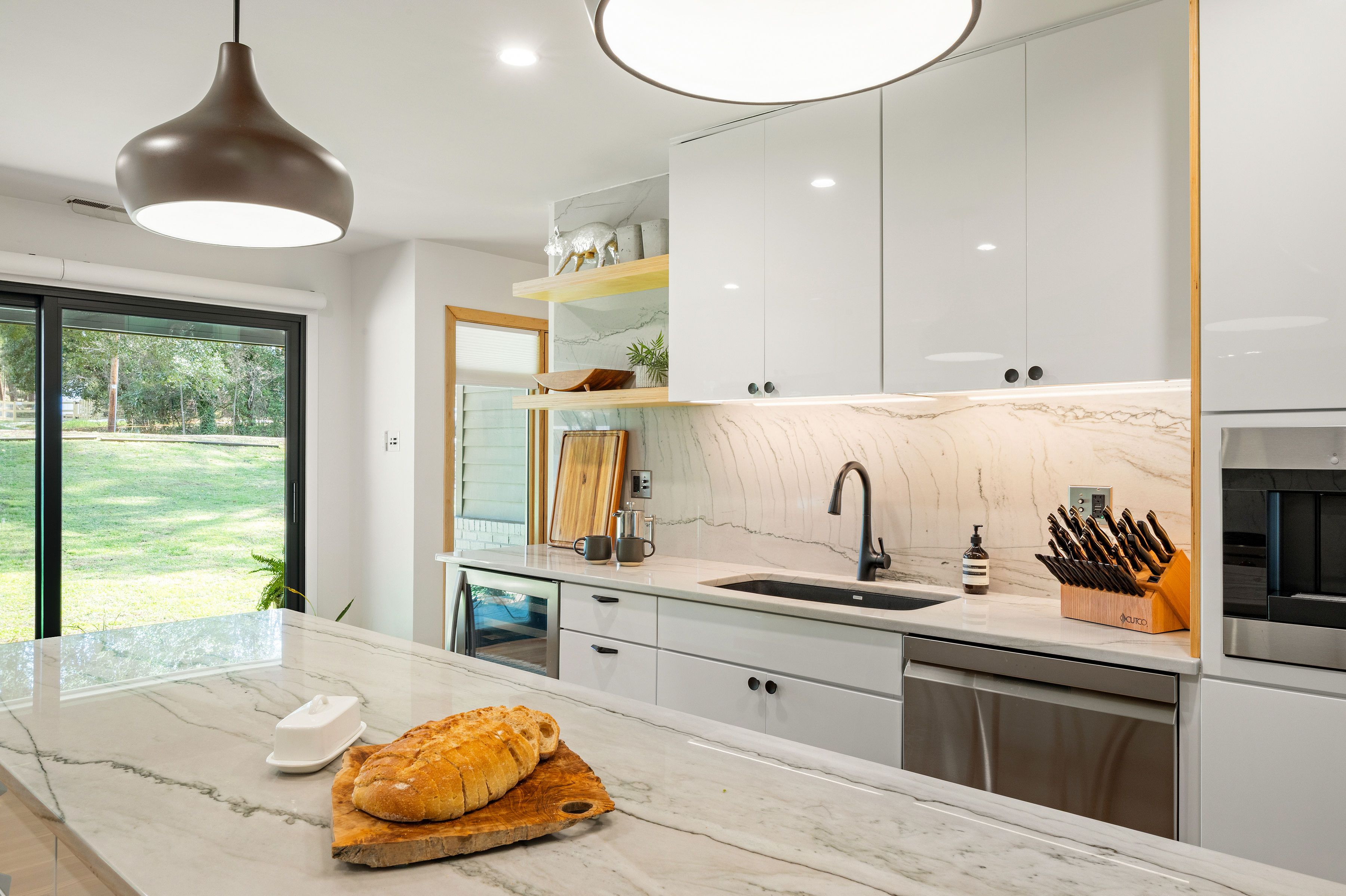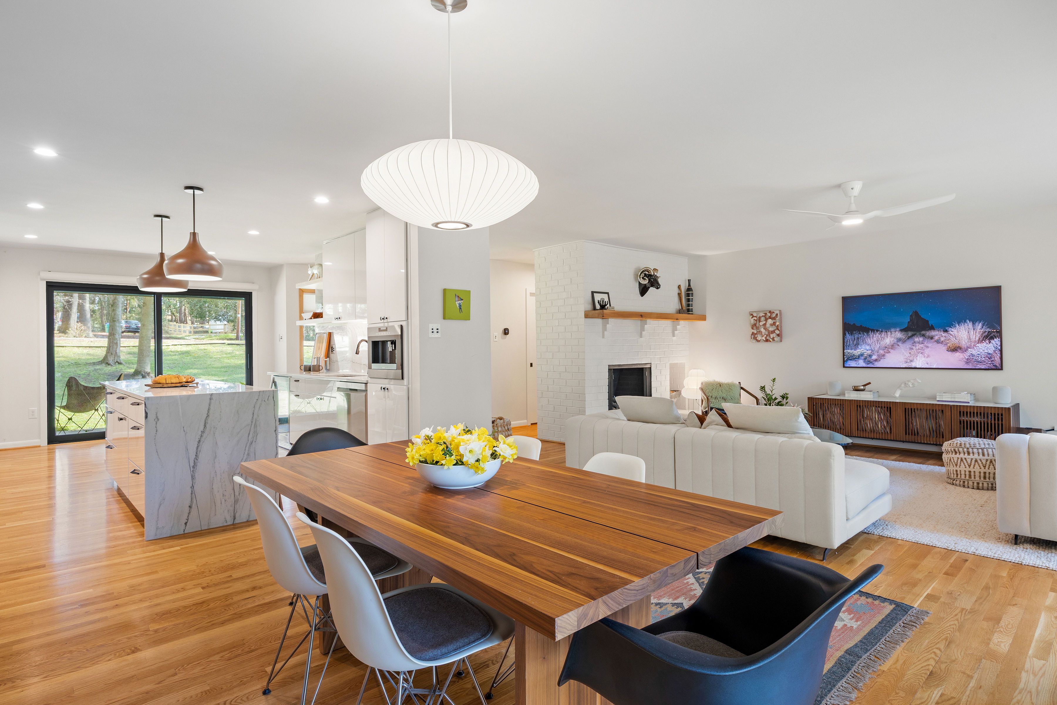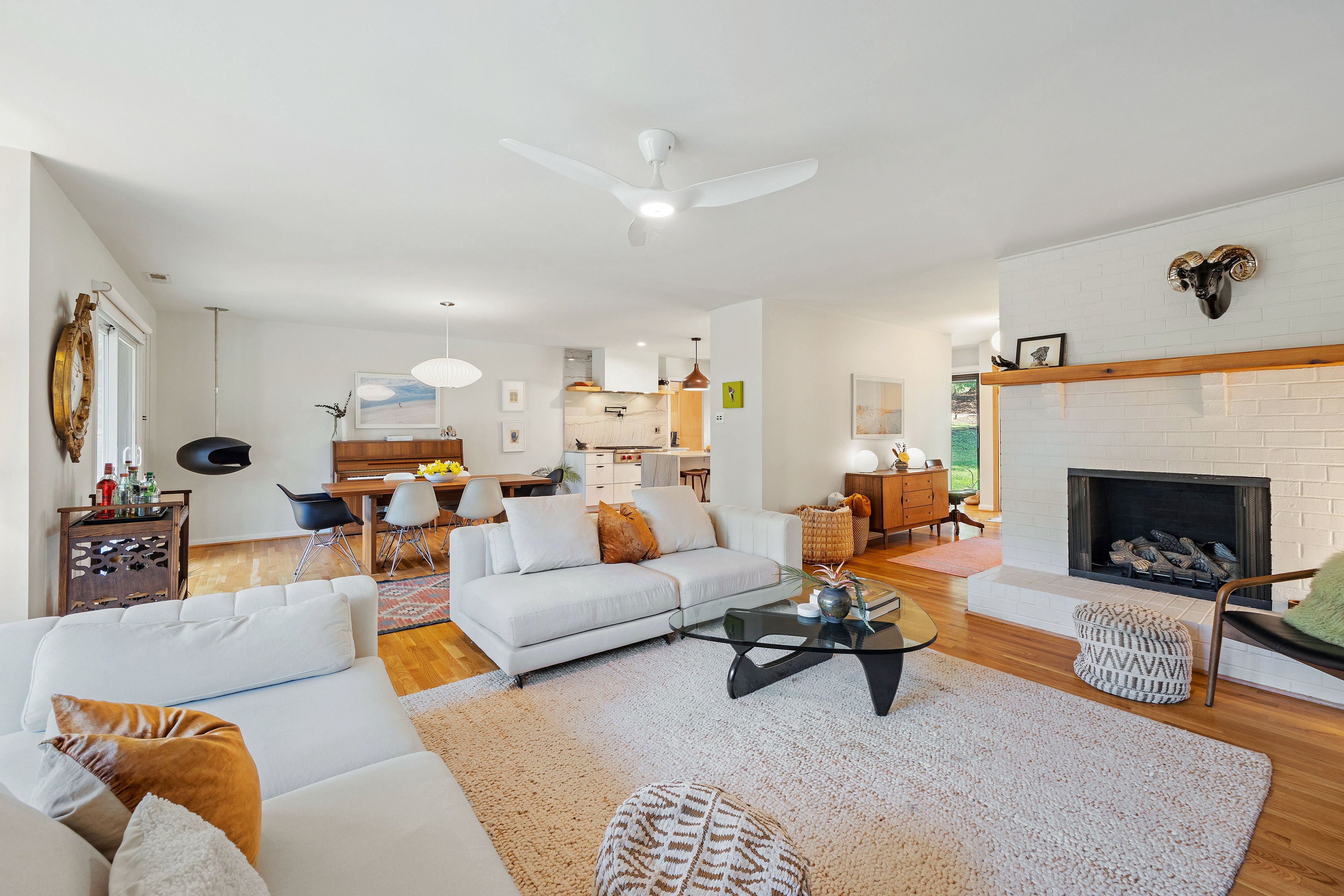 Renovated in 2023 with a level of intention and finish that's rare in Stratford Hills. The arrival sets the tone: custom Trustile front door with gallery sidelight, Marvin energy-efficient windows across the front, an 8-foot slider that connects the living space to the front porch. Hardwood floors run continuously throughout. Push-button switches in every room. Dimmers in the main living areas. The kitchen was redesigned to a professional standard: waterfall quartzite island and backsplash, Wolf 6-burner propane cooktop with wok grate, wall oven, built-in espresso station, pot filler, Zephyr hood, Samsung Bespoke refrigerator with beverage center, dual-zone wine fridge, handmade ceramic pendants, Baltic birch accents. The room earns attention before anyone opens a drawer. Design details at every turn reward a closer look: original Herman Miller Nelson Saucer Bubble Pendant in the dining room, custom white birch zig-zag media shelf engineered to carry weight, propane fireplace, Haiku 52" smart fans, Gucci wallpaper in the powder room, Japanese Alpha Bidet with heated seat in the primary suite. Attached studio with 9-foot ceilings, independent climate control, full laundry and sink station, floor-to-ceiling custom storage, and dedicated entry front and rear. A serious flex space — fourth bedroom, family room, home office, or creative studio — finished to the same standard as the rest of the house. Tankless hot water, smart thermostat, smart locks front and rear. Ring security system. HVAC upgraded for air quality. Dedicated propane grill line. Bi-level 2-car carport with dedicated electrical — easily upgraded for EV charging. Custom shed with its own electrical. Highland Hills pool access. A Sundance 680 smart hot tub flush-mounted on the full-length deck overlooks the half-acre lot backing to woods — genuinely private. Pony Pasture at your back door. Nothing to do but move in.