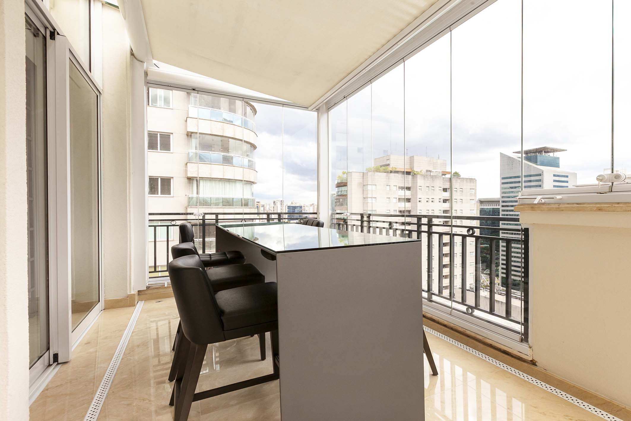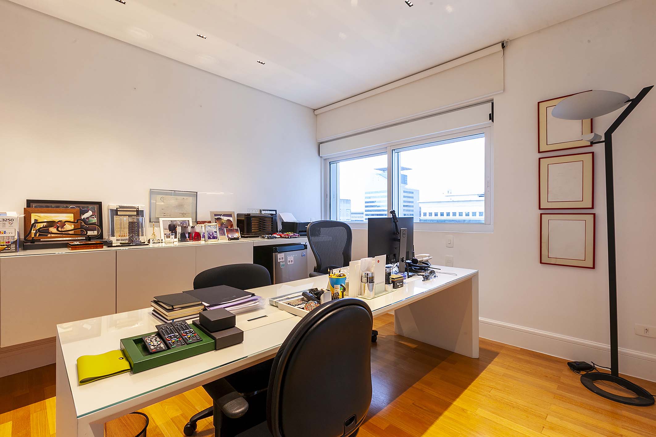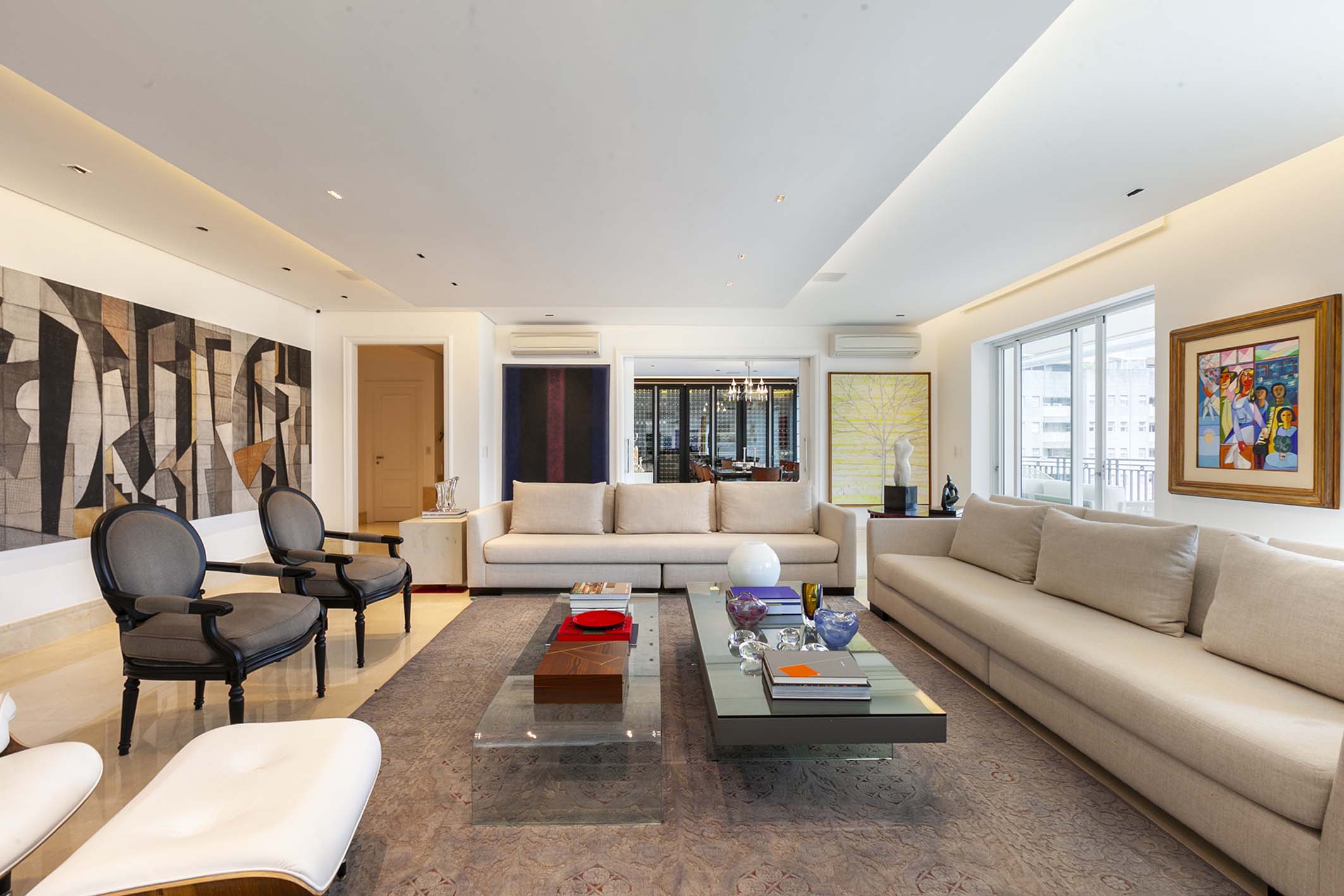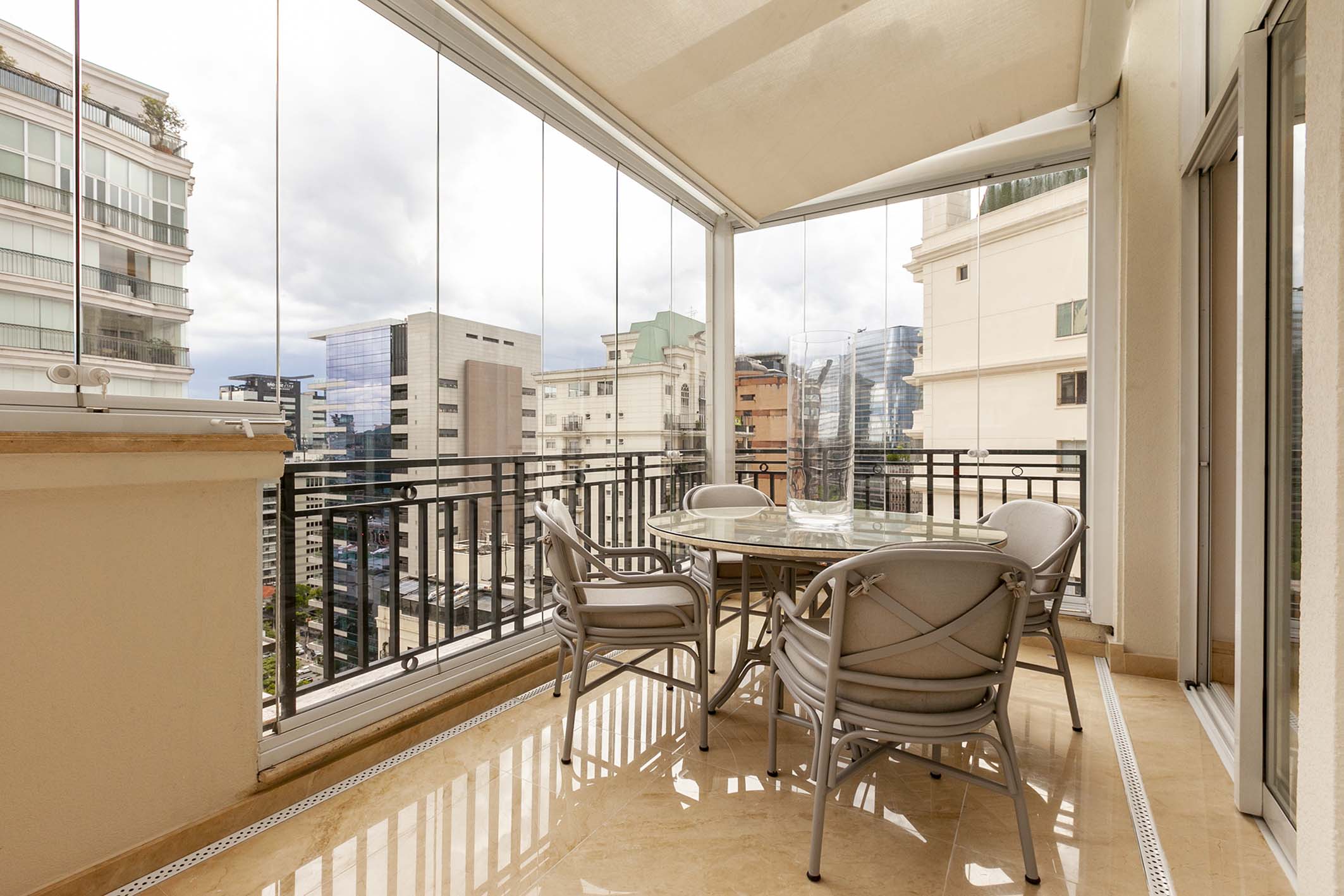 Renovated penthouse featuring a contemporary design and refined finishes. The spacious and bright living area integrates three environments, with a dining room that can be separated by sliding doors. The terrace offers a pleasant space for entertaining and connects to the outdoor area, which includes a pool and a gourmet space surrounded by thoughtfully designed landscaping. The upper floor houses the private area, comprising three suites, with the primary suite featuring a large walk-in closet for the couple and separate bathrooms for him and her. The kitchen, designed with an island and Kitchens cabinetry, combines elegance and functionality, complemented by an independent breakfast room, pantry, and laundry area with a service staircase leading to the upper floor. The residence also includes a linen closet, two staff bedrooms, eight parking spaces, and two storage rooms. The condominium offers an indoor heated lap pool, fitness room, sauna, party lounge, and visitor parking.