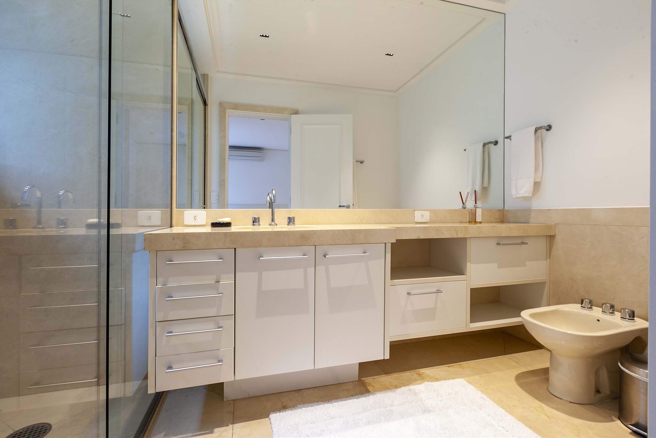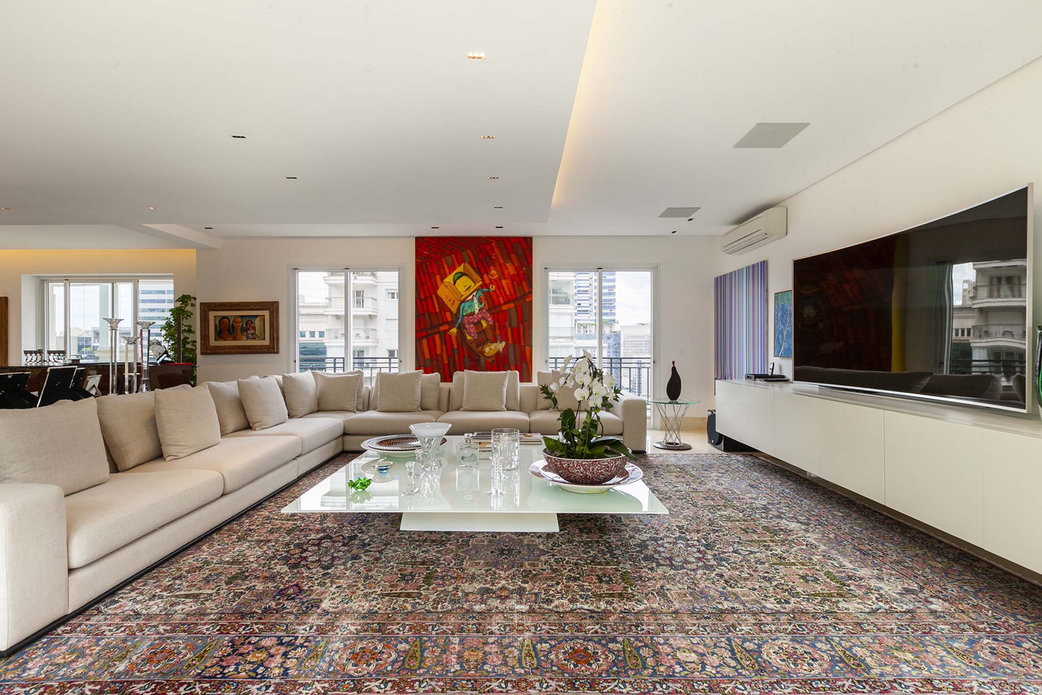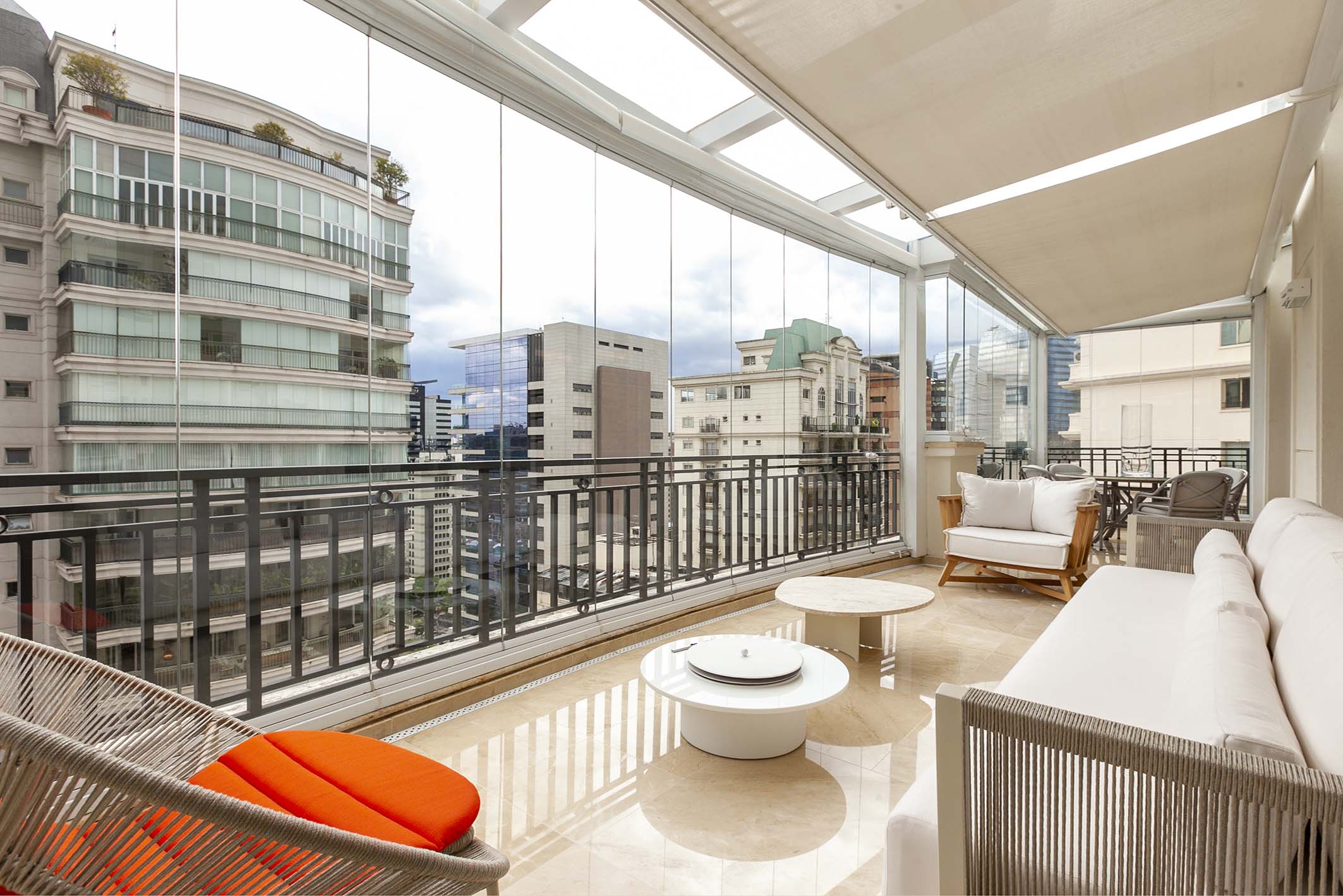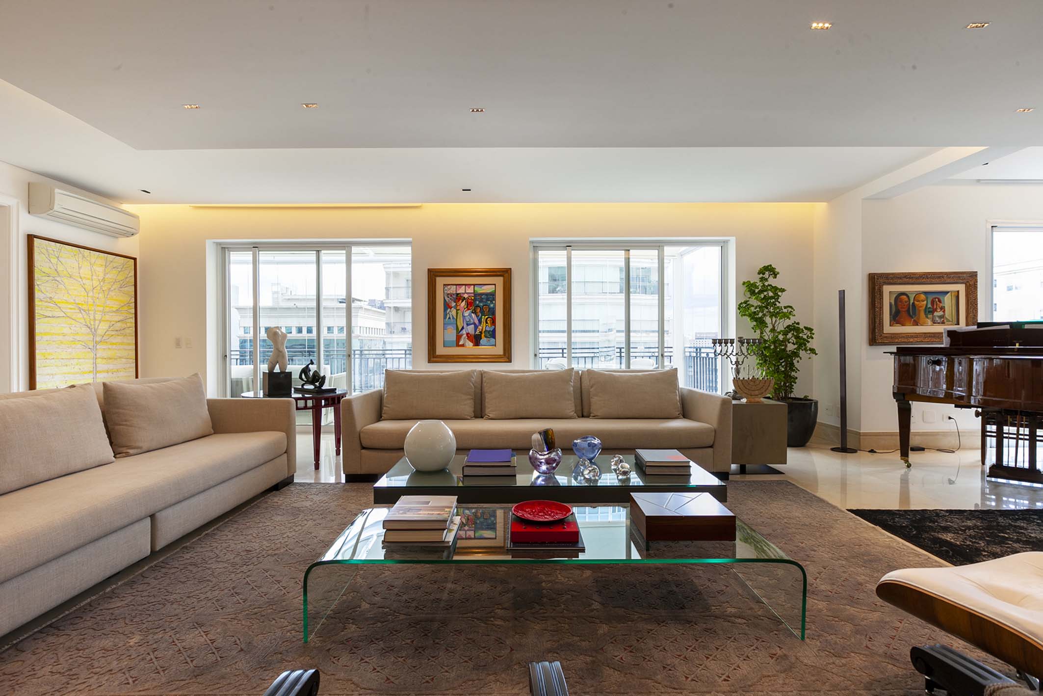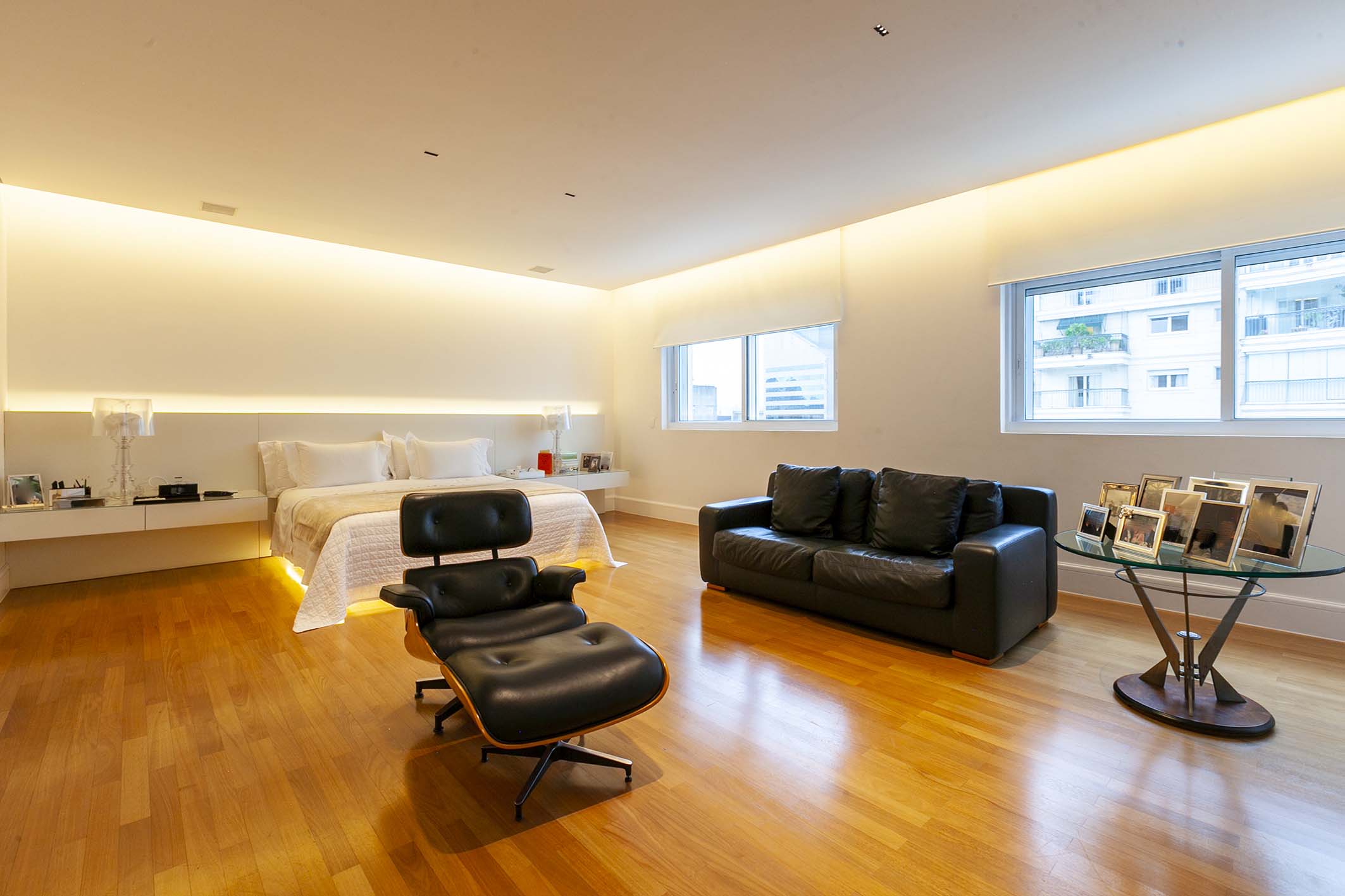 Renovated penthouse featuring a contemporary design and refined finishes. The spacious and bright living area integrates three environments, with a dining room that can be separated by sliding doors. The terrace offers a pleasant space for entertaining and connects to the outdoor area, which includes a pool and a gourmet space surrounded by thoughtfully designed landscaping. The upper floor houses the private area, comprising three suites, with the primary suite featuring a large walk-in closet for the couple and separate bathrooms for him and her. The kitchen, designed with an island and Kitchens cabinetry, combines elegance and functionality, complemented by an independent breakfast room, pantry, and laundry area with a service staircase leading to the upper floor. The residence also includes a linen closet, two staff bedrooms, eight parking spaces, and two storage rooms. The condominium offers an indoor heated lap pool, fitness room, sauna, party lounge, and visitor parking.