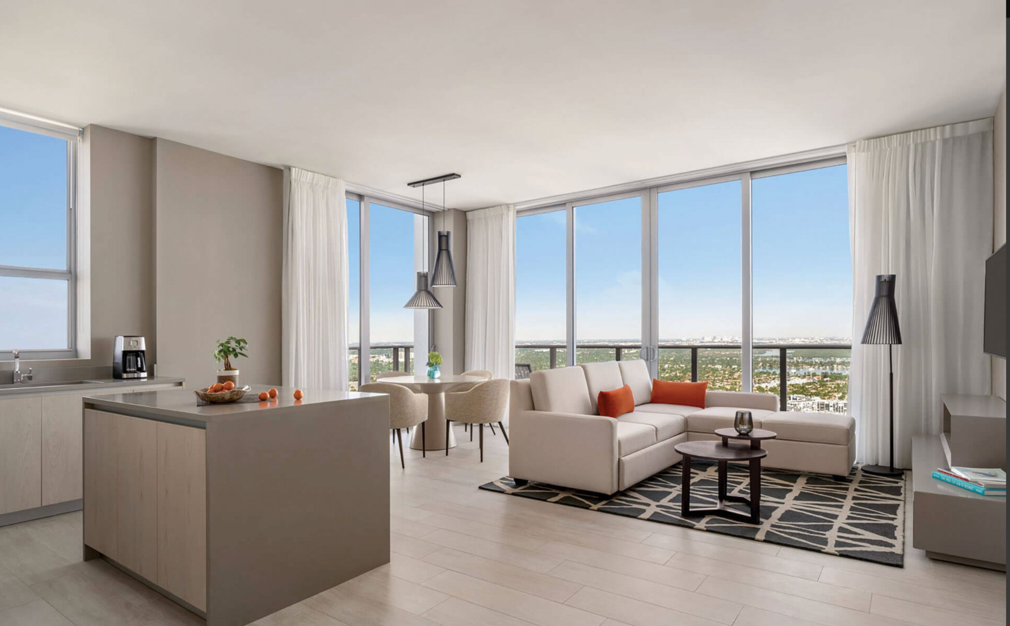 Corner two-bedroom residence at Hyde Beach House offering beautiful views of both the Atlantic Ocean and the Intracoastal Located on the 14th floor, this bright and spacious unit features floor-to-ceiling windows that capture water views from multiple angles and fill the residence with natural light throughout the day