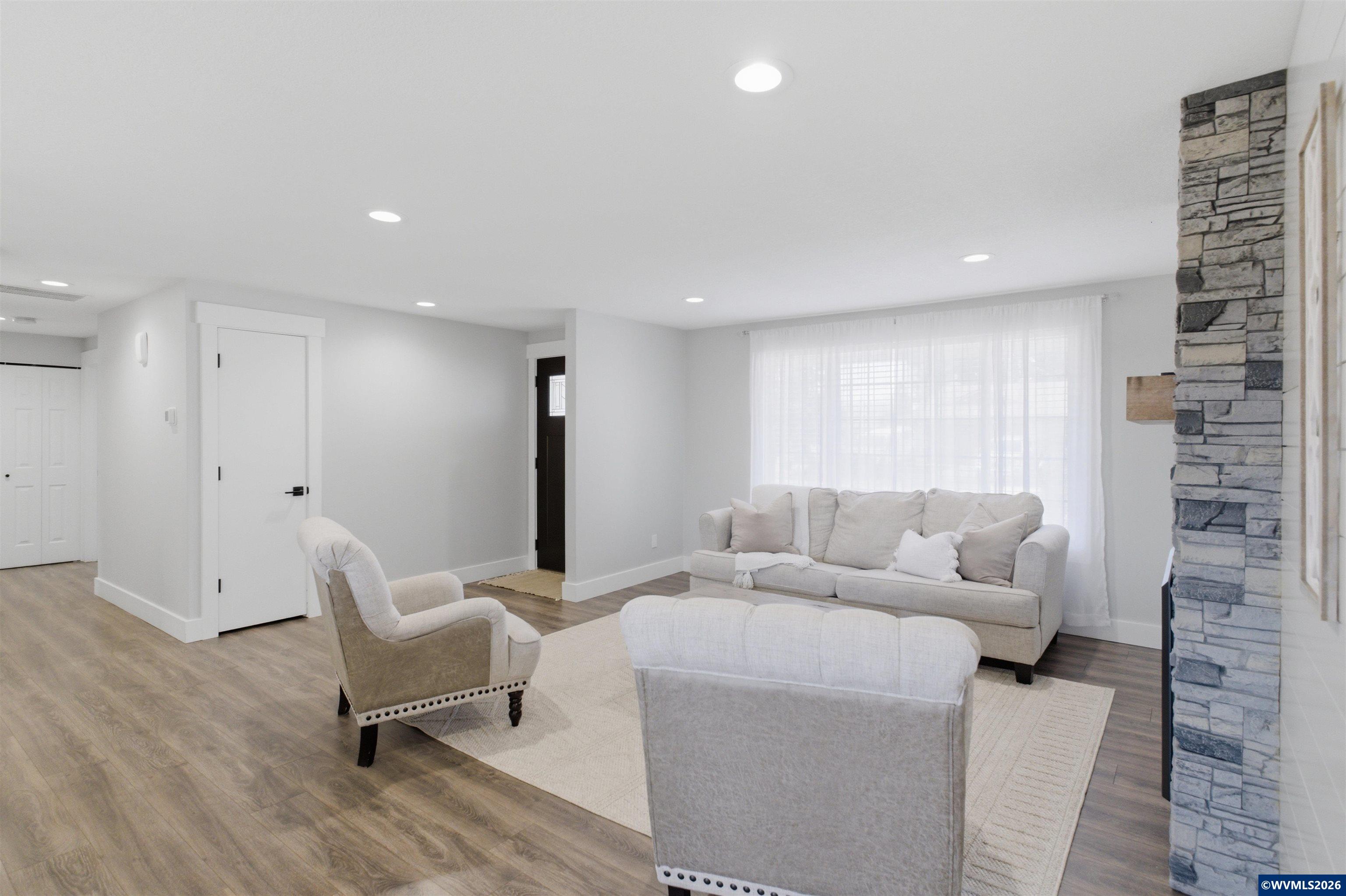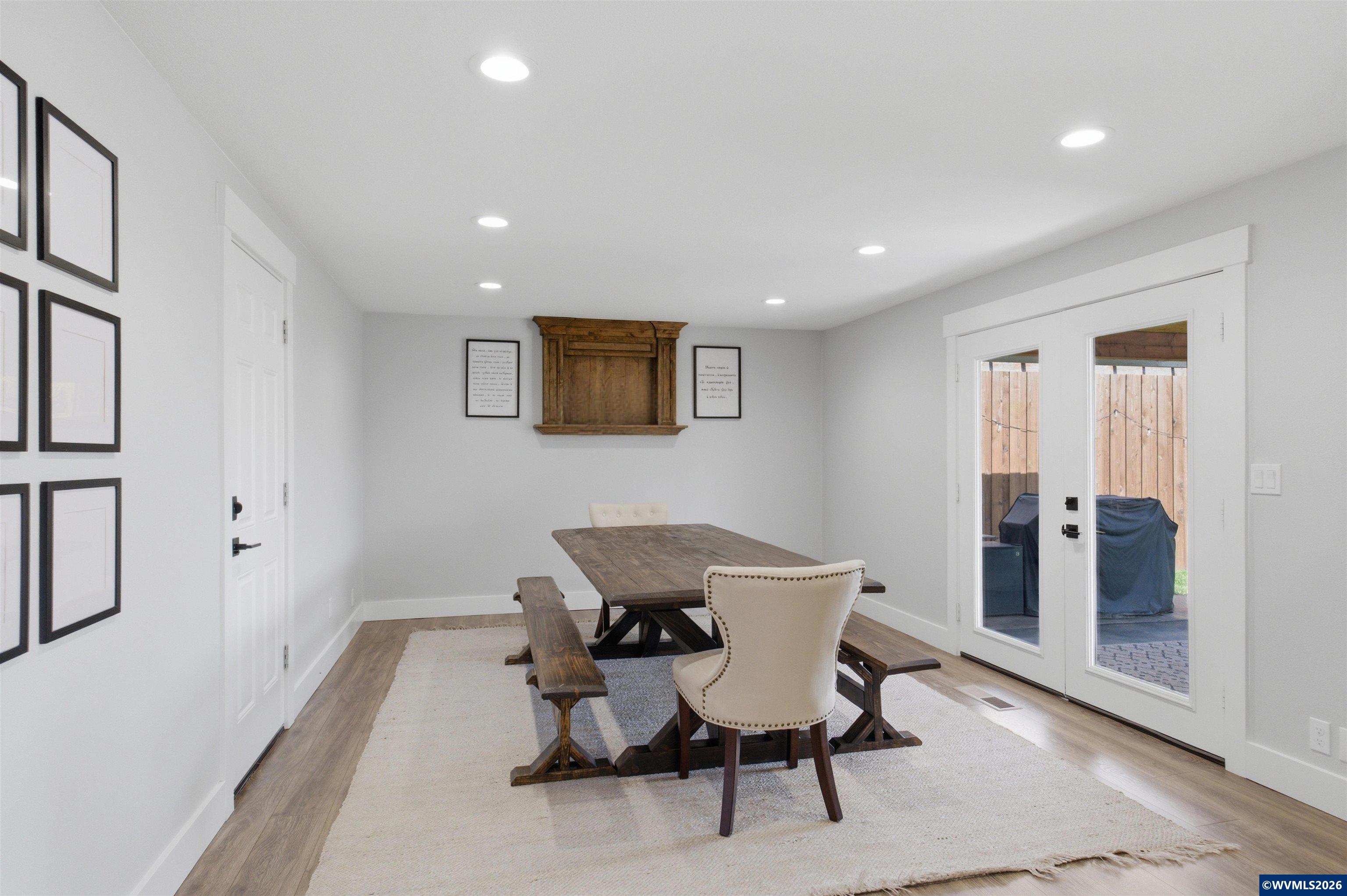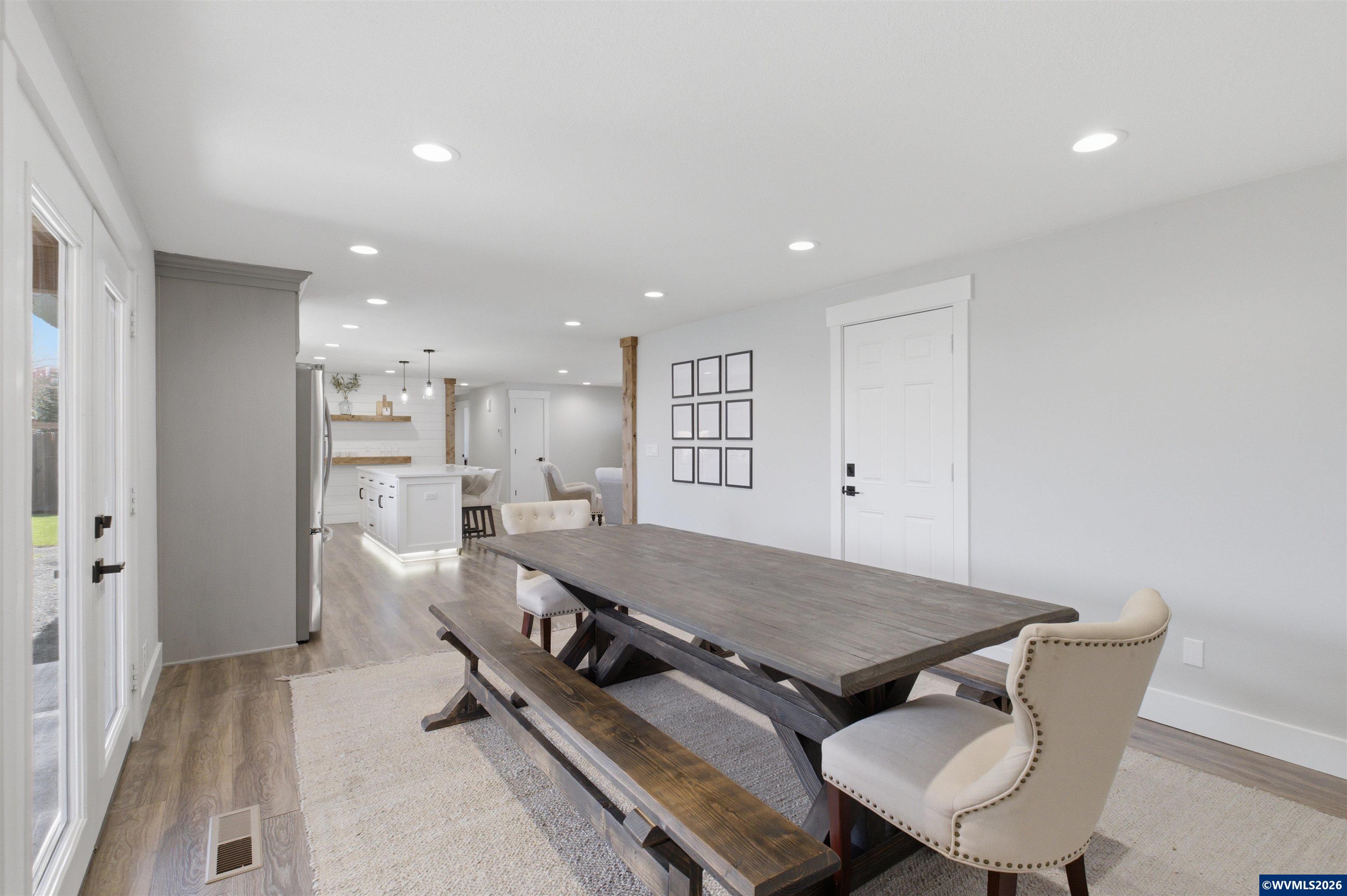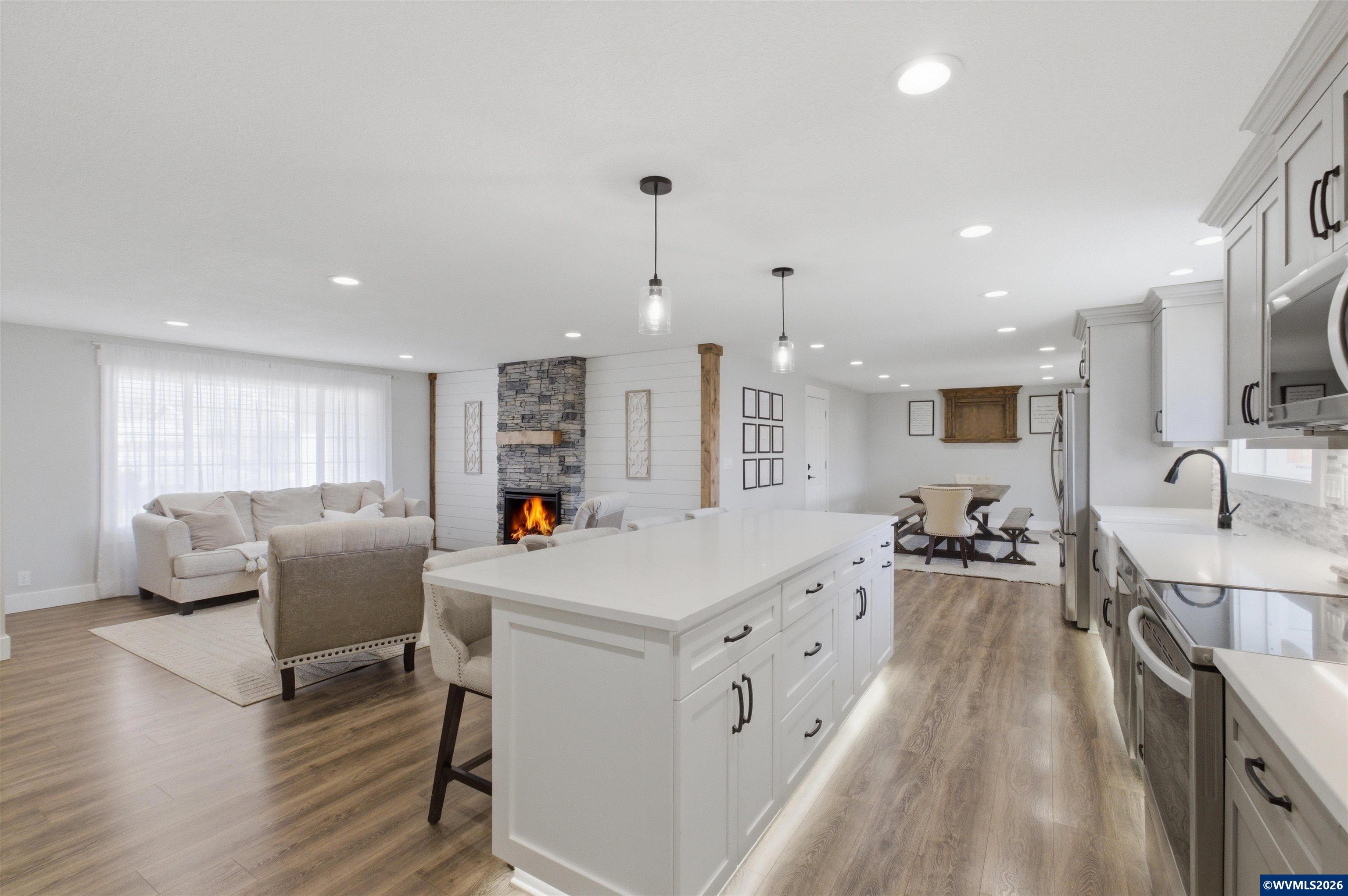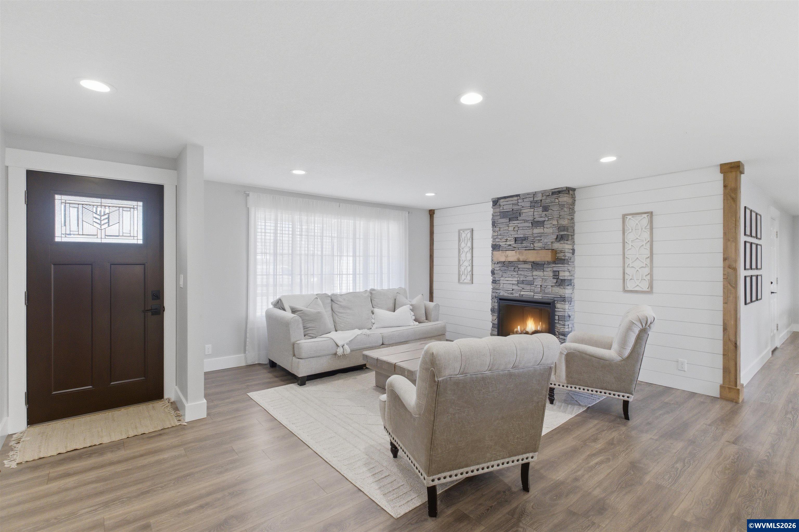 Move in ready and feature rich home in the desirable Jan Ree community of NE Salem, conveniently located near neighborhood parks, local schools, and quick I5 access for easy commuting. Inside, the kitchen is designed for both everyday living and entertaining with a farm style sink, shaker cabinetry, quartz countertops, stone backsplash, under cabinet lighting, and a large island with seating for four. Stainless steel appliances include a glass top range, built in microwave, dishwasher, garbage disposal, and three door refrigerator. A large window above the sink brings in natural light while offering views of the backyard. The living room centers around an electric fireplace with floor to ceiling stone surround and shiplap accents, complemented by a large window that fills the space with light. The dining area features abundant recessed lighting and French doors with expansive glass that open to the backyard. Outdoor living shines with a 13 x 21 covered patio featuring solid beams, tongue and groove detail, and a ceiling fan ideal for relaxing on warm summer evenings. The backyard also includes a dedicated firepit gathering area, raised garden beds, and a 10 x 13 outbuilding with shed space and a unique steam sauna, perfect for unwinding after a long day. The fully fenced backyard also features new side gates and gravel pathway. Recent updates include a new roof (Jan 2026) and new furnace (Nov 2025), adding peace of mind for the next owner. Previous interior and exterior improvements were completed within the last six years. A well appointed property with thoughtful upgrades and outdoor amenities, all in a convenient Northeast Salem location. Do not miss this opportunity to own a move in ready home in the Jan Ree neighborhood.