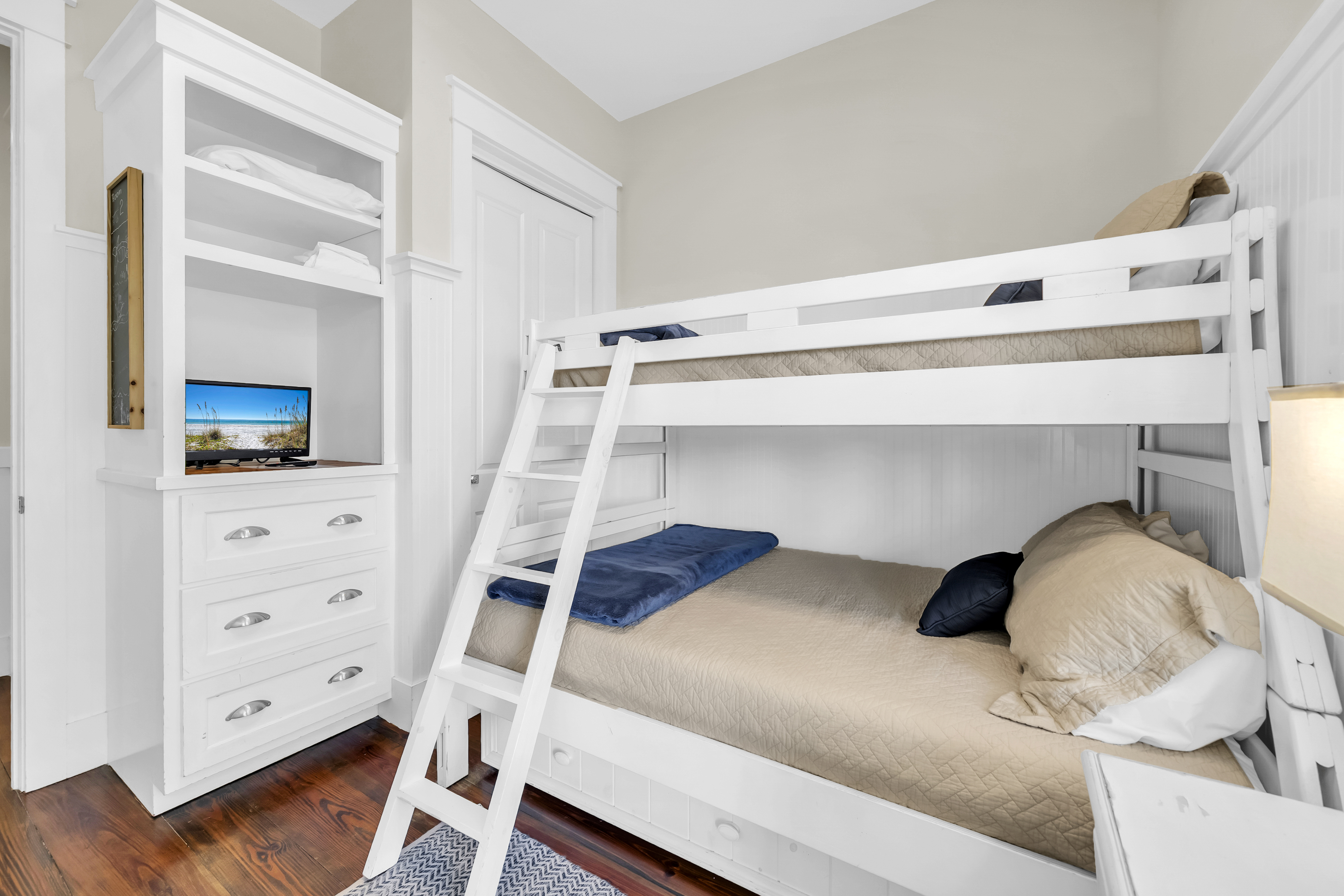Beautifully beach home in the coveted Seacrest Beach community, located just steps from the stunning 12,000-square-foot lagoon-style community pool. Perfectly positioned along Scenic Highway 30A, this spacious three-story retreat known as ''Reset Button'' offers the ideal setting to slow down, recharge, and enjoy the relaxed coastal lifestyle. The home features an open & inviting floor plan with natural pine hardwood flooring throughout and abundant windows that fill the space with natural light. The well-appointed kitchen includes stainless steel appliances, elegant pendant lighting, and a large island, making it perfect for entertaining and family gatherings. Adjacent to the kitchen is a spacious dining area and comfortable living room designed for relaxing after a day at the beach.On the first floor, guests will find a junior primary suite with a king bed, private balcony access, and an en-suite bathroom featuring a tiled walk-in shower.The second floor offers an additional primary suite with a king bed, private balcony, and a large bathroom complete with a soaking tub and marble countertops.With five bedrooms and four bathrooms, this high-capacity vacation home comfortably accommodates up to 15 guests, making it ideal for large families or group getaways.Property HighlightsAddress: 48 Cast Net Lane, Inlet Beach, Florida (within the Seacrest Beach community)Sleeping Capacity: Up to 15 guests across 5 bedrooms and 12 bedsOutdoor Living: Six porches providing multiple spaces to relax and enjoy the coastal breezeFully Equipped: Linens, washer and dryer includedSecurity: Exterior security cameras at the front and back of the homeCommunity AmenitiesGuests enjoy access to the Seacrest Beach Lagoon Pool, one of the largest resort-style pools on 30A, along with the complimentary neighborhood tram service that provides convenient transportation to the beach.Prime 30A LocationIdeally situated between Rosemary Beach and Alys Beach, the home is within easy walking or biking distance of boutique shopping, restaurants, and local events. Guests also benefit from private deeded beach access, where the area's famous sugar-white sand and emerald Gulf waters await.