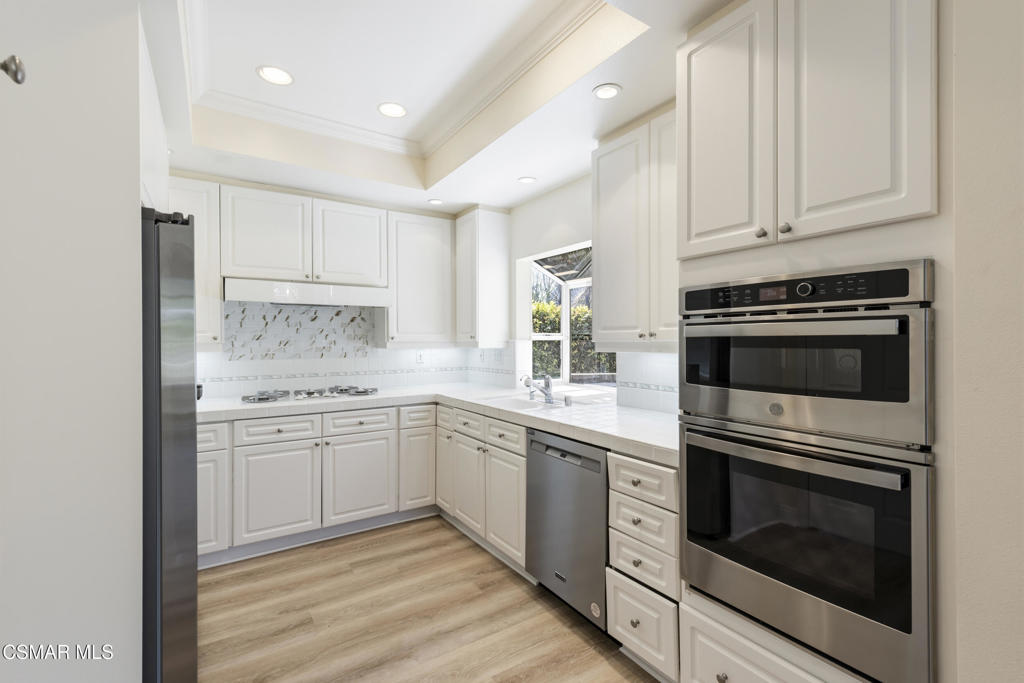 Fabulous and clean! 4 Bedroom, 3 bath Rancho Conejo home with a huge backyard and built in BBQ. Newer kitchen, stainless appliances, This home features built-ins, EVP flooring and lush carpeting. The downstairs bath is highlighted by travertine counters. The Primary is spacious as are the secondary bedrooms and all second floor rooms have vaulted ceilings. There's a wonderful loft/office space upstairs with a lovely built in bookcase. Shutters, built in closet and tons of privacy. Electric is included too! Great schools, freeway and hospital close. Excellent shopping plus the community is guarded, has roving patrol and 2 community pools and spas. Easy living just doesn't get any better.
