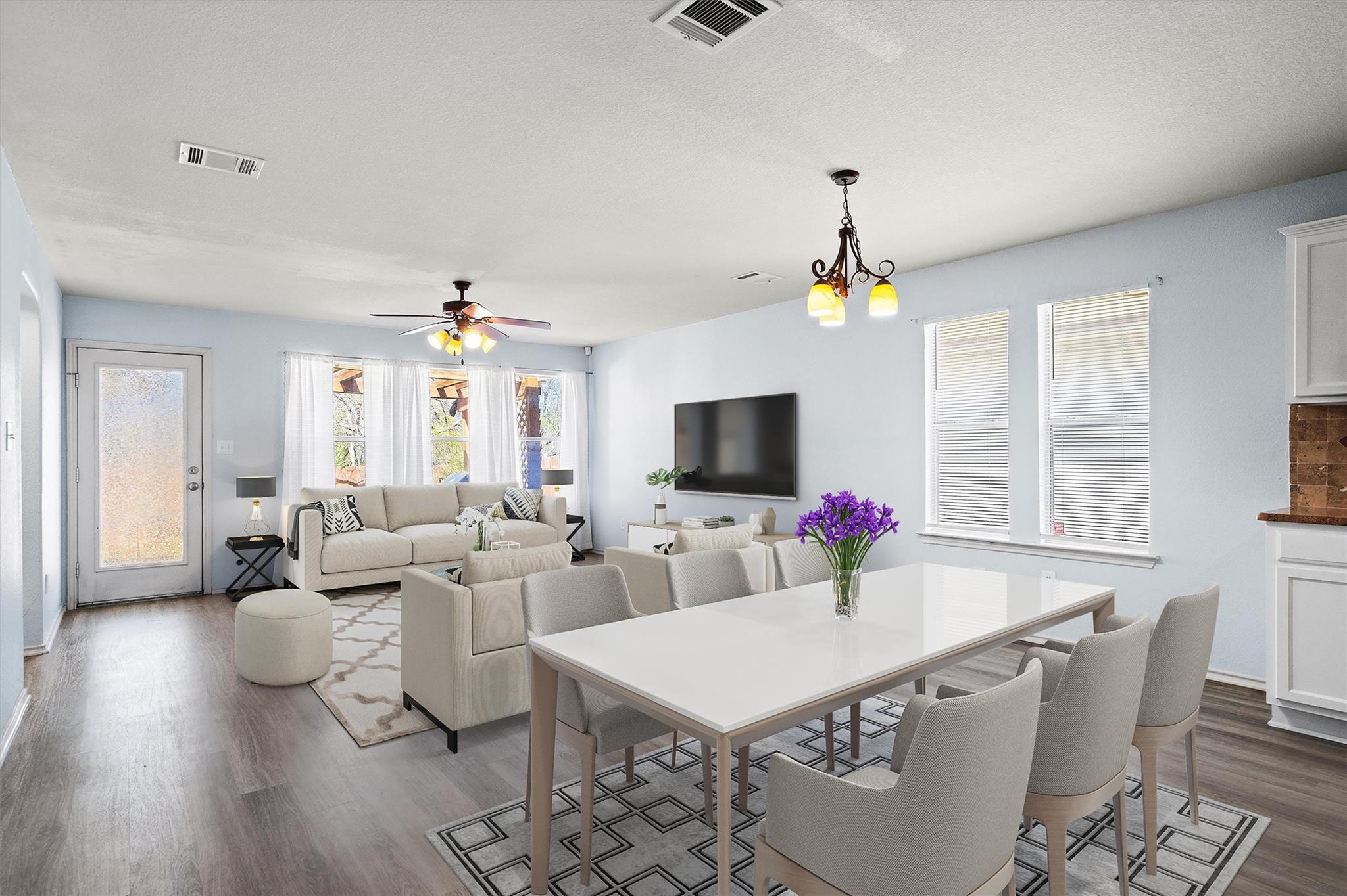 Spacious and inviting, this well designed home in the desirable Austin's Colony community offers a versatile open floor plan perfect for everyday living and entertaining. Featuring 4 bedrooms, 2 full bathrooms, and a dedicated bonus office, there's plenty of room for work, relaxation, and gathering with family and friends. The bright living area flows seamlessly into the kitchen and dining spaces, creating a comfortable and functional layout. Brand new carpet has been installed in all bedrooms, adding a fresh and cozy touch throughout the private living areas. Step outside to enjoy a large backyard that backs directly to a peaceful greenbelt, offering extra privacy and scenic views. The rear porch is ideal for entertaining, complete with a built-in grill - perfect for weekend cookouts or relaxing evenings outdoors. As an added bonus, the roof will be replaced prior to closing, providing peace of mind for the new owners. With its spacious layout, outdoor entertaining features, and thoughtful updates, this home is a fantastic opportunity to enjoy comfortable living in Austin's Colony.