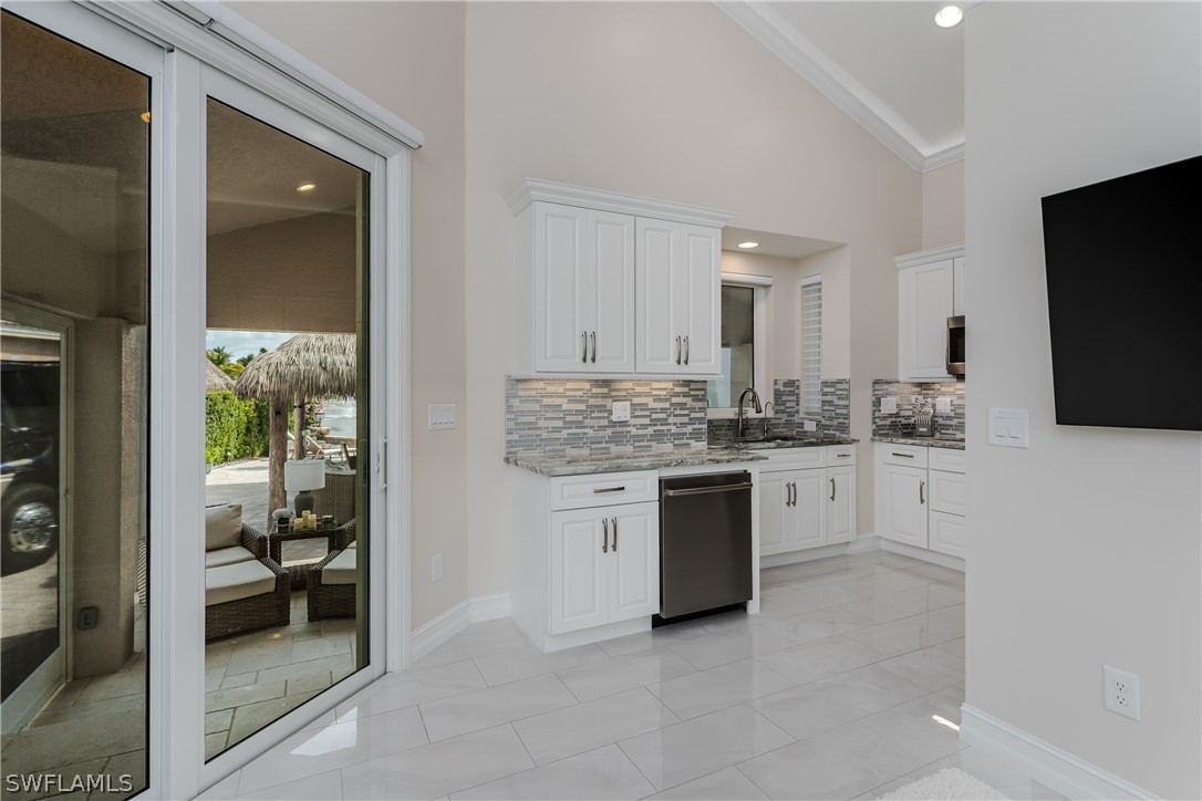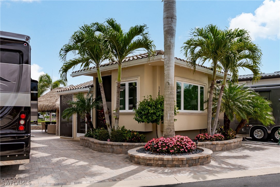 Lot 176 - Experience tropical luxury and effortless resort living at Naples Motorcoach Resort, one of Southwest Florida's most prestigious Class A motorcoach communities in beautiful Naples. This exceptional lakefront motorcoach property offers a front-row seat to one of the resort's most picturesque lakes, highlighted by a magnificent illuminated fountain that glows beautifully in the evening, creating a serene and unforgettable waterfront backdrop. Designed for both luxury and relaxation, the property features a spacious custom tiki hut that immediately transports you into a private tropical retreat. Rich textures, lush landscaping, and warm ambient lighting create the perfect setting for entertaining friends or enjoying peaceful sunset evenings by the water. Every detail evokes the feeling of a high-end island resort, blending elegance with the laid back charm of Southwest Florida living. The beautifully appointed casita elevates the property even further, offering a thoughtfully designed interior complete with a full kitchen, stylish living area, and private bathroom. Custom furnishings and tasteful d cor make this space both functional and luxurious, perfect for hosting guests or enjoying additional comfort while at the resort. Imagine yourself relaxing on the custom sofa in a living room that rivals million dollar homes. Just beyond, an expansive screened in porch (I dare you to even see the screens they are almost invisible) allows you to fully enjoy the breathtaking lake views while staying comfortable in a bug free environment. Whether sipping morning coffee as the fountain sparkles in the sun or enjoying evening cocktails as it illuminates the water, this space becomes an extension of your living area and a favorite gathering spot. Outdoor entertaining is effortless in this space thanks to the fully equipped outdoor kitchen, where no expense has been spared. From casual lunches to elegant evening gatherings the design of this property encourages a seamless indoor-outdoor lifestyle surrounded by tropical beauty. Ownership within Naples Motorcoach Resort includes access to world-class amenities such as three resort-style pools, spas, saunas, a clubhouse, fitness facilities, pickleball courts, dog park, and a private boat ramp providing Gulf access through the in resort waterway perfect for exploring the Ten Thousand Islands, visiting Marco Island, or boating to waterfront dining. This is more than just a motorcoach lot it is a luxurious lakefront retreat where tropical elegance, thoughtful design, and resort living come together beautifully. NIGHT TIME PICTURES COMING CASITA FEATURES: 2026 - New Air Conditioner, 2026 - Reverse Osmosis Water Treatment System, Hunter Douglas Electric Silhouette blinds throughout Casita