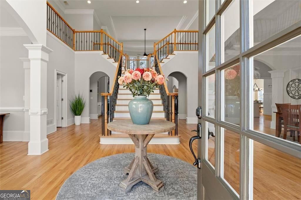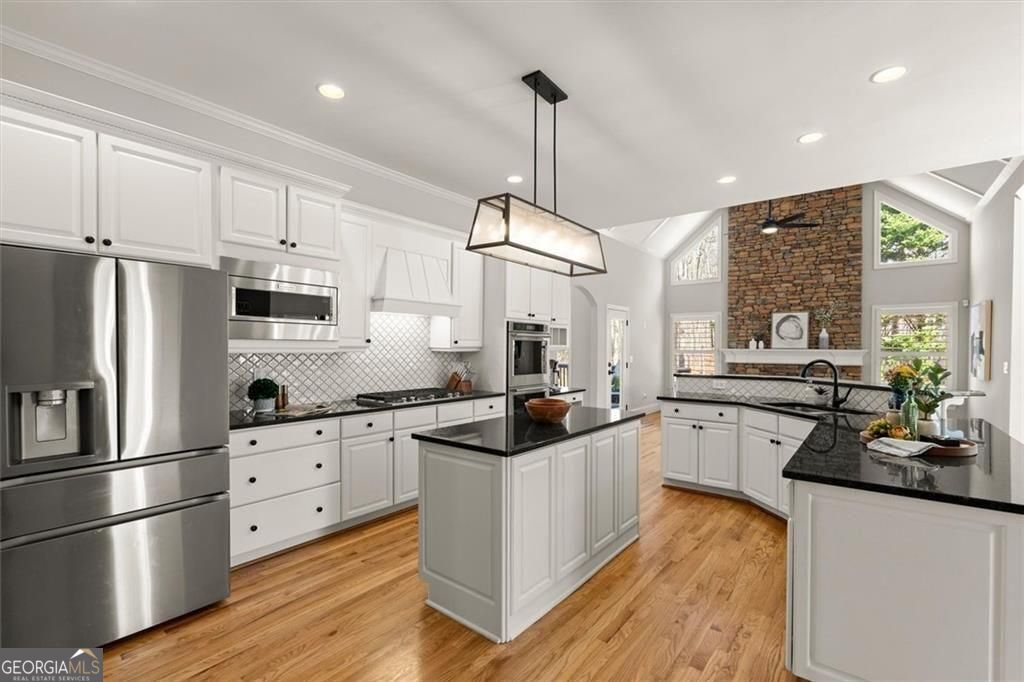 Located in one of Milton's most desirable areas, this impeccably maintained home at 750 Champions Close offers privacy, space, and easy access to Milton/Crabapple, Alpharetta, and top North Fulton schools. The classic exterior stone detailing and the spacious front porch give it a timeless, welcoming presence. It feels private and calm - the kind of setting where mornings start slowly with coffee on the porch and evenings wind down with friends gathered inside. Enter through the front door and the home immediately opens up with light, tall ceilings, a striking staircase and spaces that naturally flow from one room to the next. The great room area comes to life with a soaring window wall creating a warm place to relax, read, or host a cozy evening with family and friends. The kitchen is designed for everyday living and effortless entertaining. With generous prep space, a large island, and room for conversation while meals come together, it's easy to imagine holidays, dinner parties, or simple weeknight dinners here. The owner's suite offers a quiet retreat on the main level of the home with a cozy seating area and fireplace - a place to unwind at the end of the day with privacy and comfort. The massive terrace level is finished with a private entrance, full kitchen and bedroom and bath perfect for multi-generational living. The possibilities are endless with additional large gathering spaces plus even more finished environments for crafting, office space and even an additional bunk room or exercise room. Throughout the home, the layout feels intentional and easy to live in, with bright rooms, thoughtful gathering spaces, and views of the surrounding property that remind you why Milton is such a special place to live. And the location is part of the story. Living in Milton means enjoying wide open spaces, scenic drives, and a strong sense of community while still being close to the shopping, dining, and conveniences of Milton/Crabapple, Alpharetta, and the surrounding North Fulton area. It's also located just moments from the hugely popular Bell Memorial Park with it's walking trails and amazing sports complex. This home is ideal for someone who wants a peaceful setting, beautiful architecture, and a home that feels welcoming and easy every single day with new roofing and mechanical systems already in place for you. If you've been searching for a home in Milton, Georgia that offers privacy, character, and a setting that feels like an escape from the busy world, 750 Champions Close may be exactly what you've been waiting for.