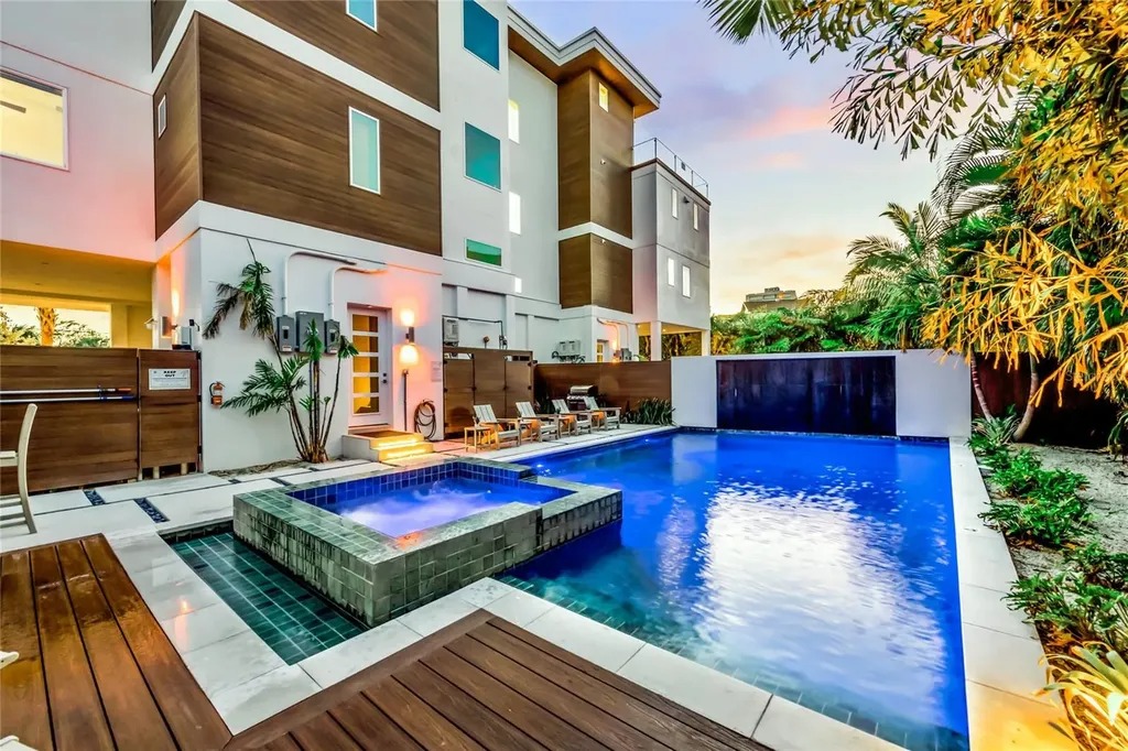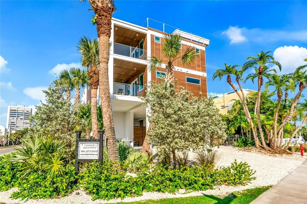 Effortlessly close to everything yet a world apart, The Lookout on Siesta Key embodies the essence of the Vunique Homes experience—architectural artistry, intentional design, and a lifestyle defined by affluence and ease. Soundly constructed by Eason Builders Group in 2025, this marvel is an innovative fusion of durable details, resilient materials, and groundbreaking engineering to achieve luxury and longevity. Steps from Siesta Key Beach and the vibrant Siesta Village, this residence is ideally positioned for those who value connection as much as privacy. From fine dining and boutique shopping to the energy of downtown Sarasota and the tranquility of the Gulf, every facet of coastal living is within reach. Curated for those who entertain and impress, the home's outdoor environment rivals the world's best resorts. The ground floor offers recreation and relaxation with the heated saltwater pool and spa, bar, dining and seating areas, putting green, and waterslide that add texture and rhythm to the experience. The first and second levels, elevated over the private six car parking area, boast over four thousand five hundred square feet of refined modern living. A chef's kitchen anchors the great room, framed by soaring ceilings and expansive glass that erase the boundaries between indoors and out. The media room, complete with theater seating and wet bar, offers an elevated space for leisure and connection. With five ensuite bedrooms, seven bathrooms, and designer finishes throughout, this home was created for the connoisseur who demands excellence without compromise. Host effortless gatherings under the sun or stars on your rooftop terrace with Gulf views, a full bar, multiple televisions, and covered alfresco dining. From sunrise to sunset, your moments are uniquely your own. Purpose-built for luxury living and strong rental performance, it represents the rare opportunity to own not just a home—but a legacy on Siesta Key.