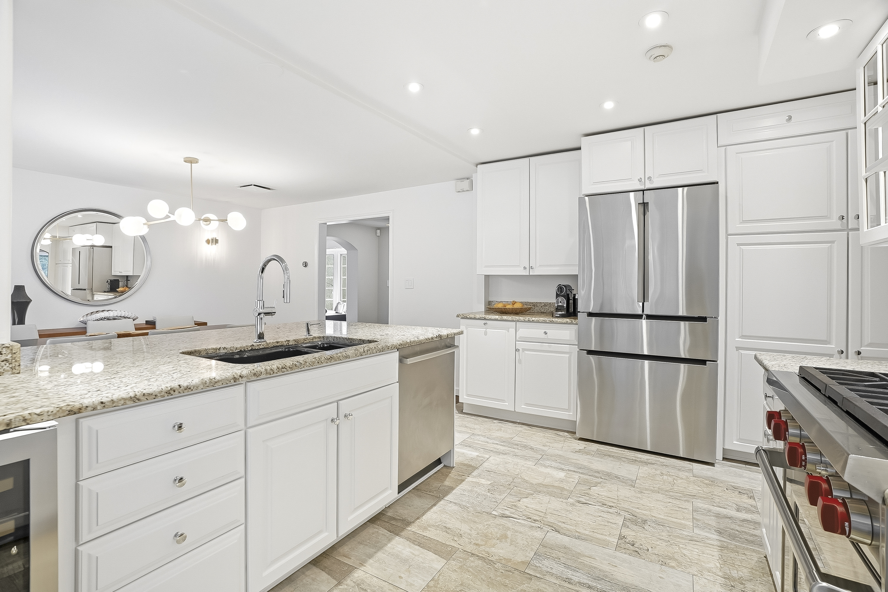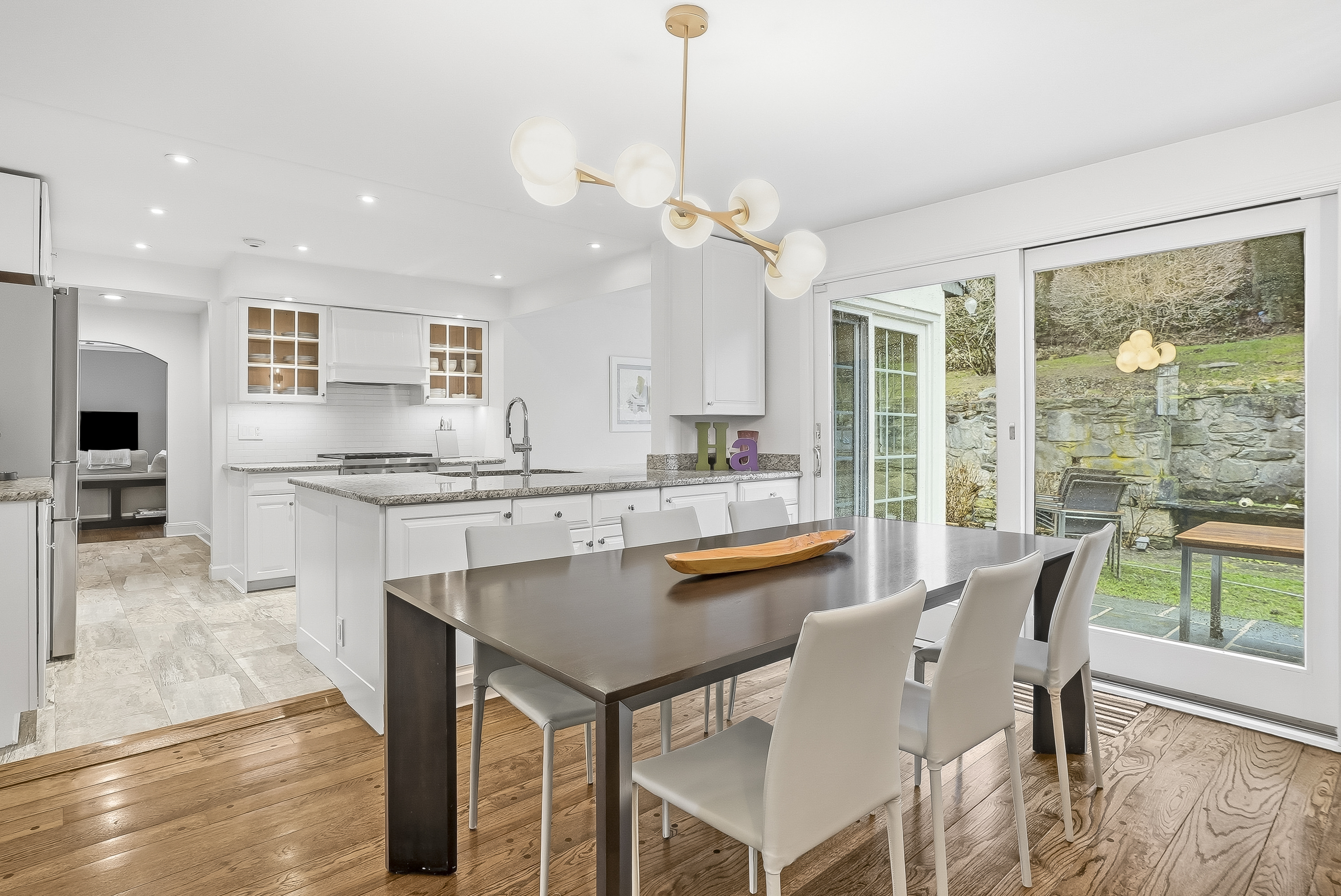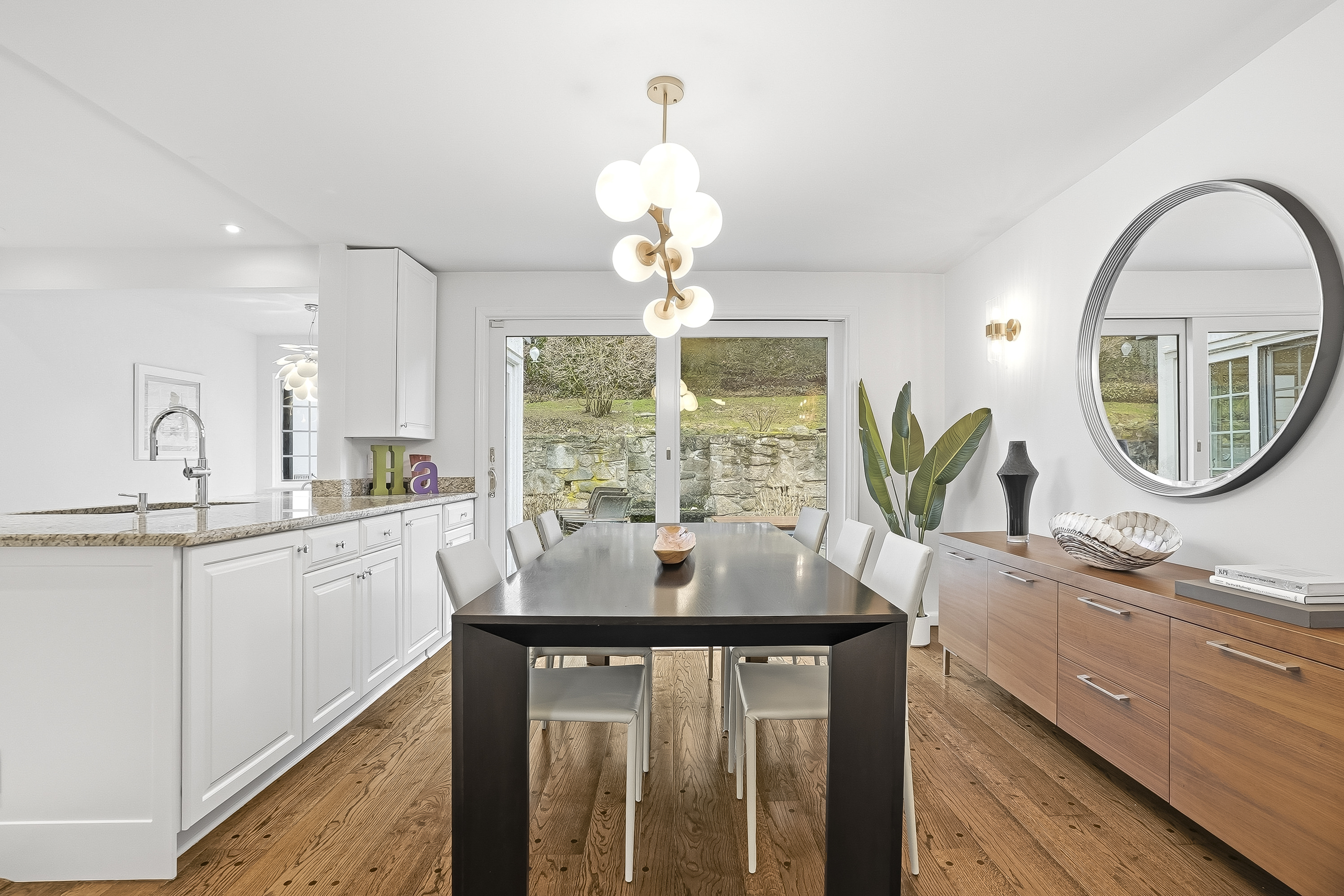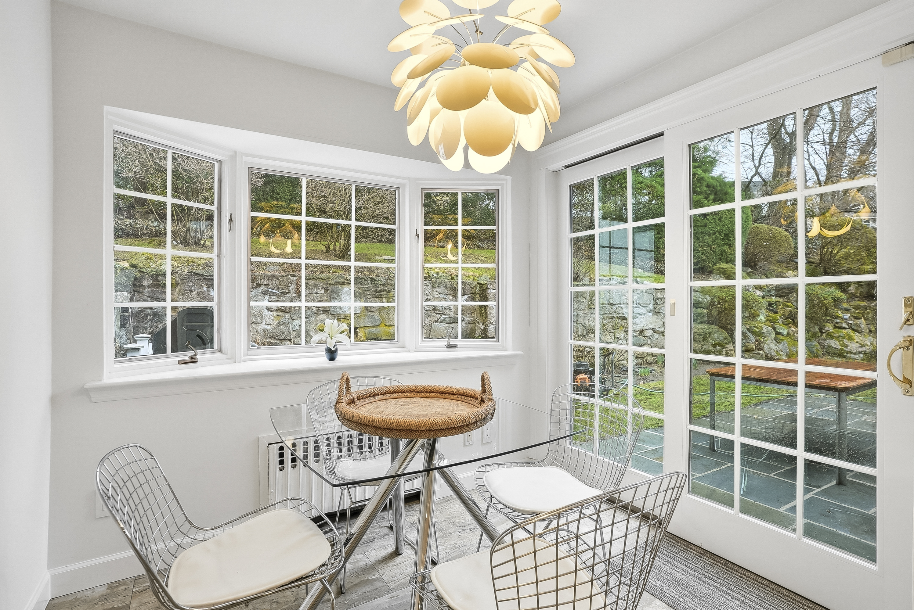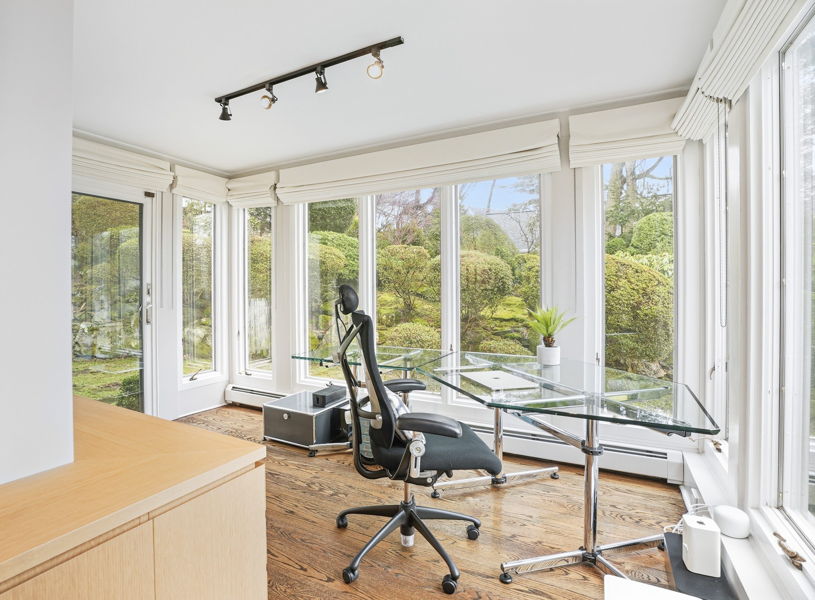 One of the home's most special features is the effortless indoor-outdoor flow, with access to the patio and garden from the kitchen, dining area, sunroom, living room, and family room—allowing the outdoors to be enjoyed from virtually every room on the first level.