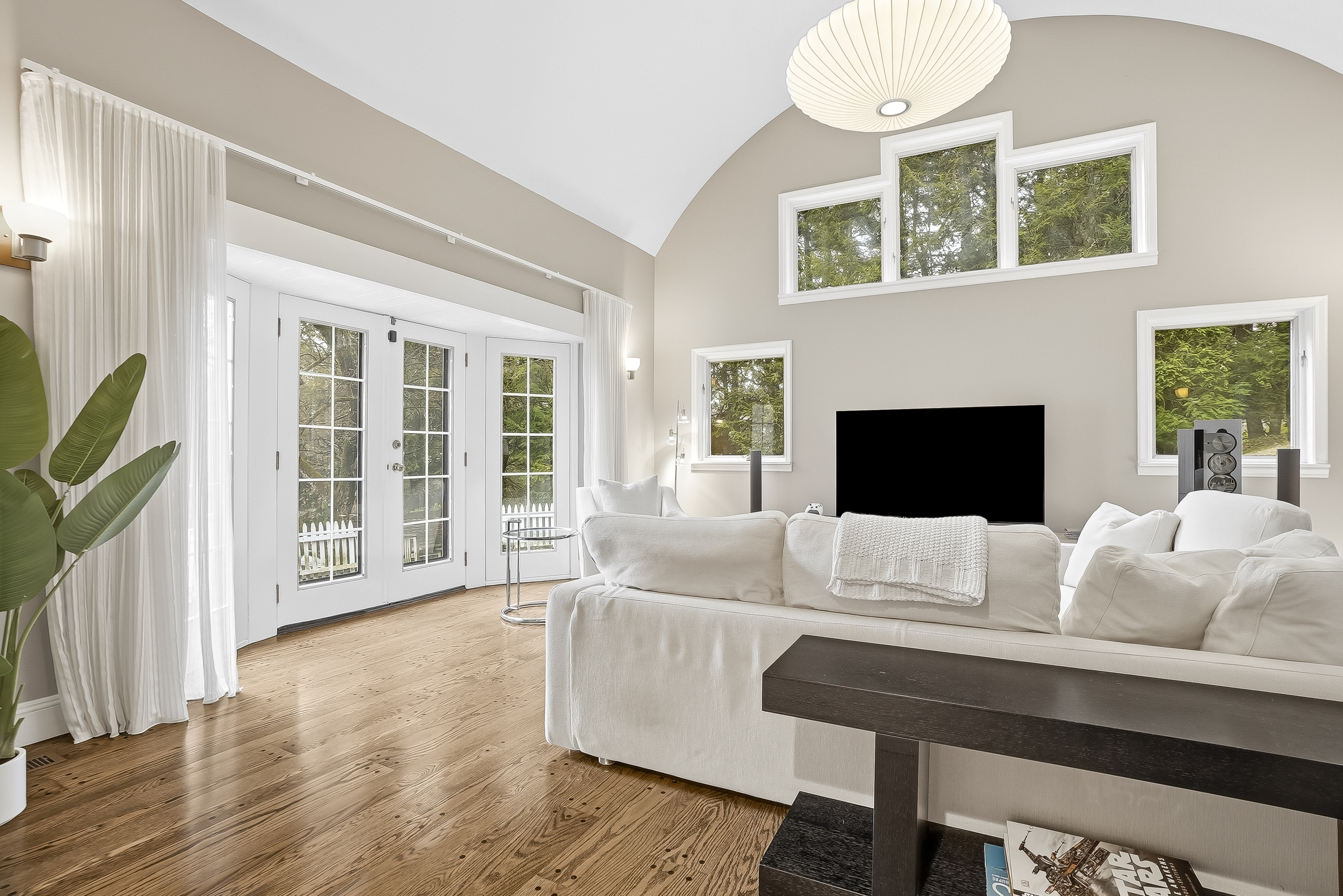 From the moment you enter, the home's warmth and craftsmanship are immediately evident in the beautiful original millwork, wide-plank floors with exposed pegs, graceful archways, and abundant natural light. The elegant living room with wood-burning fireplace flows into a sun-filled sunroom with walls of windows and built-ins—an ideal space for relaxing, reading, or working while enjoying views of the property.