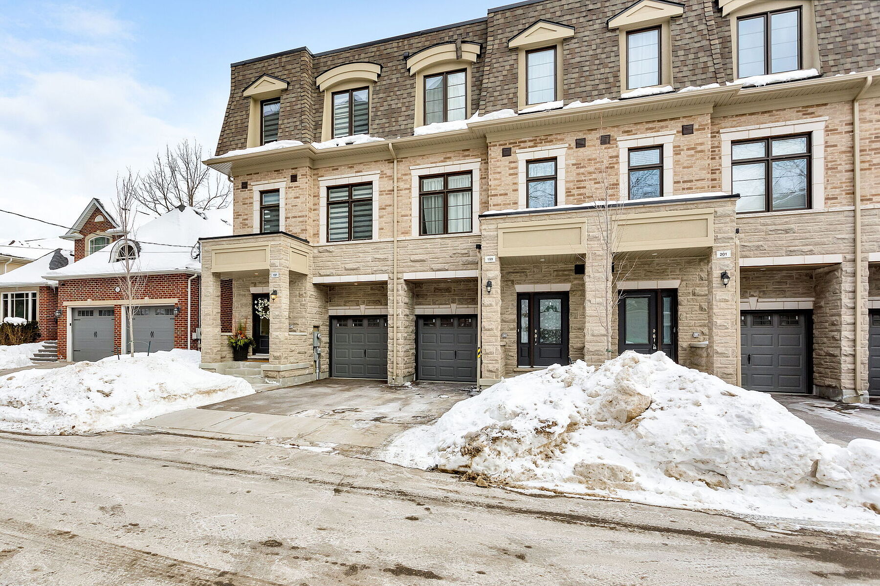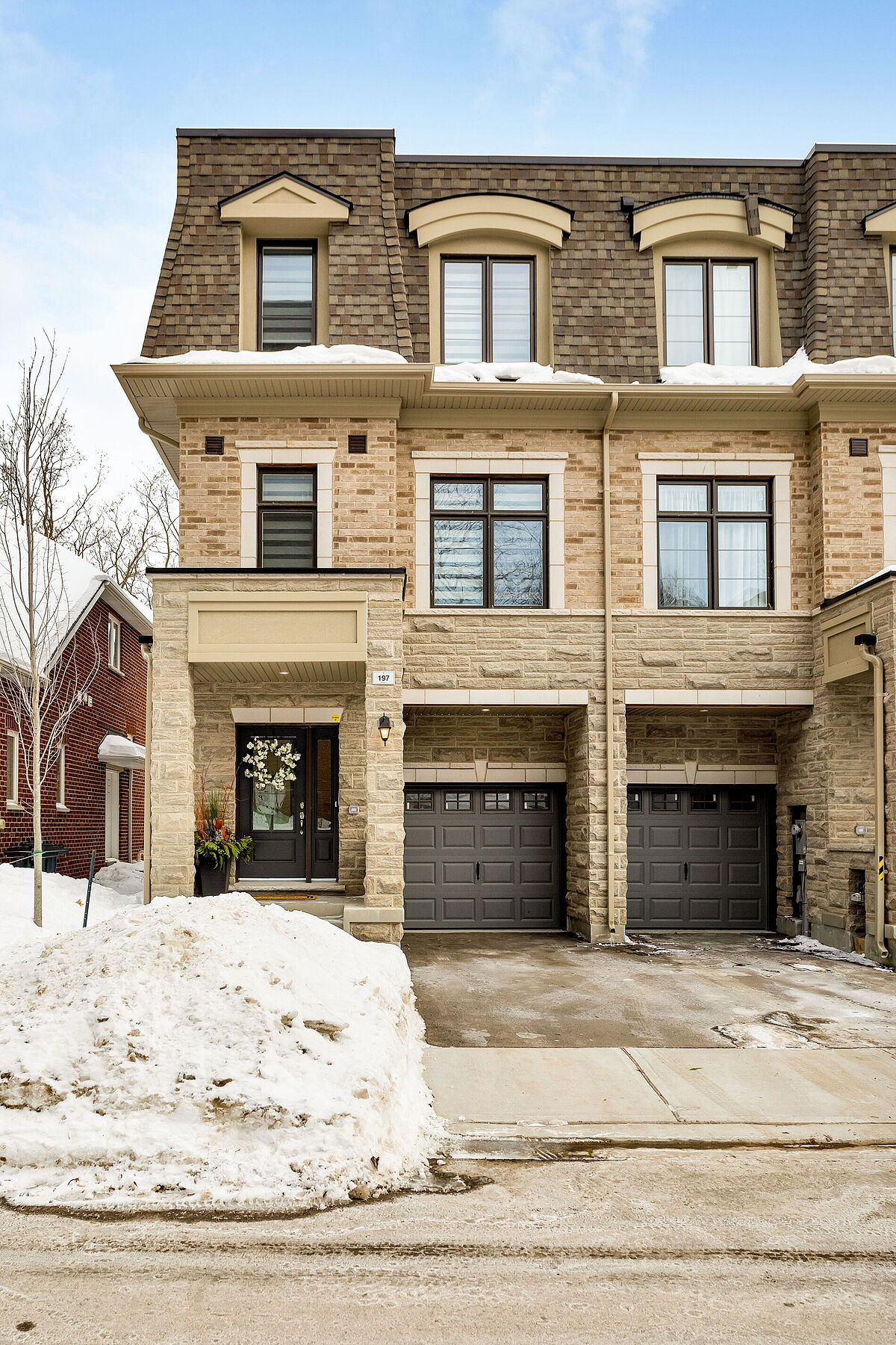 Sun-filled end unit with an elevator and windows on three sides. An exceptional and rare offering. Welcome to 197 Wyndham, a brand-new, never-lived-in end-unit townhome in the prestigious Ravines on Main Community in the heart of Streetsville. With natural light pouring in from three exposures, this beautifully designed residence offers approximately 2,000 square feet. of refined living space, featuring 3 bedrooms, 4bathrooms, and a private elevator for effortless day-to-day living. A bright and welcoming foyer sets the tone for the home's thoughtful layout. The main level offers a comfortable living space, a stylish powder room, and generous storage, perfect for both everyday life and entertaining. The second level is the true showpiece, featuring a stunning kitchen with eat-in area, an elegant dining room, and a sun-filled family room with walkout to a large balcony overlooking the backyard, ideal for morning coffee or evening gatherings. The third level hosts three beautifully appointed bedrooms, including a luxurious primary retreat complete with a walk-in closet, a spa-inspired ensuite, and a private balcony. The pristine, untouched basement provides a blank canvas for customization, while the backyard offers endless potential for outdoor enjoyment. Perfectly positioned in Streetsville's charming village, enjoy a stroll west to Village Square with its sidewalk cafés, boutique shops, and local conveniences. To the east, the Credit River and scenic Culham Trail offer breathtaking ravines and a peaceful escape into nature. With easy access to Highways 401, 403, and 407, Streetsville GO Station, excellent schools, parks, trails, shops, and cafés, this is truly elevated living in one of Mississauga's most desirable communities.