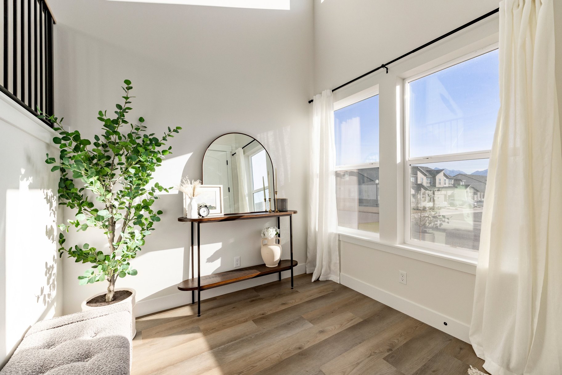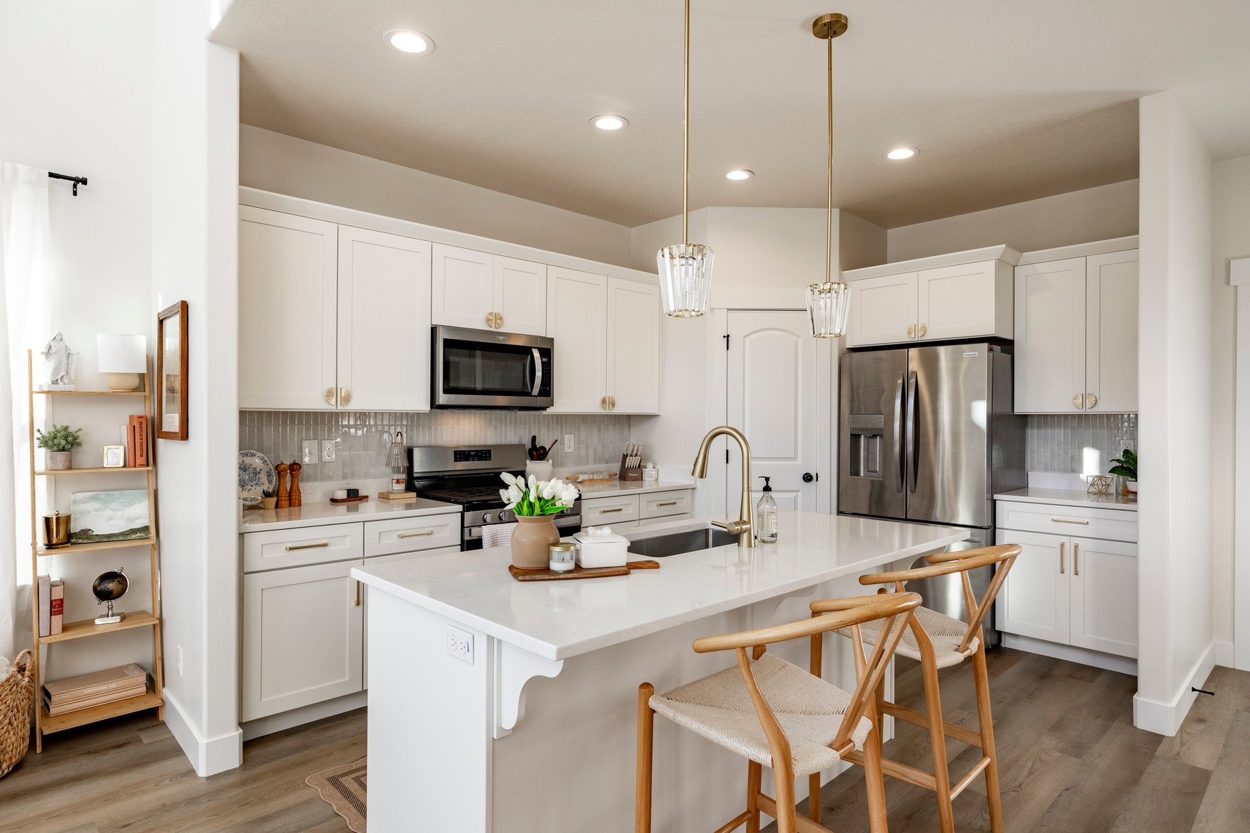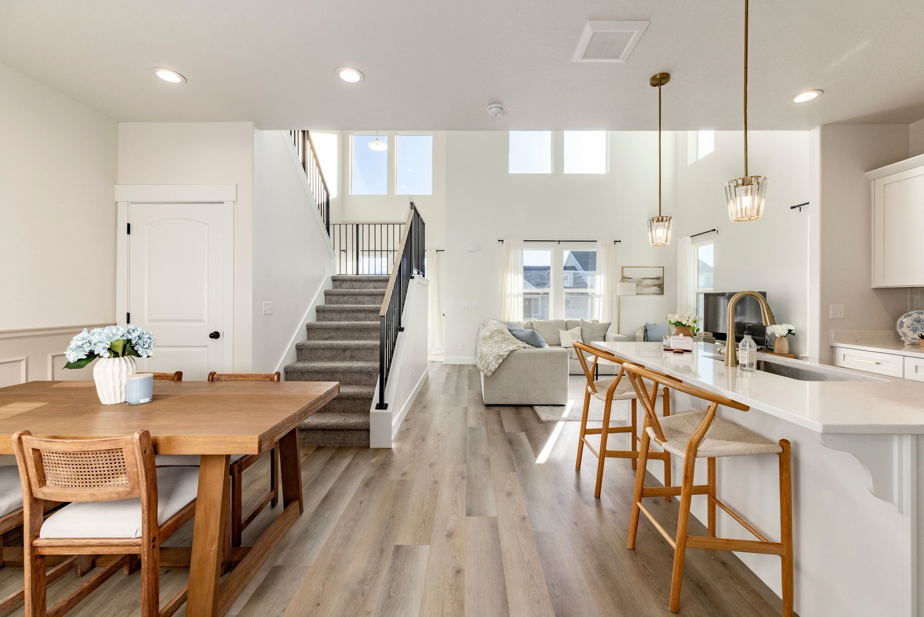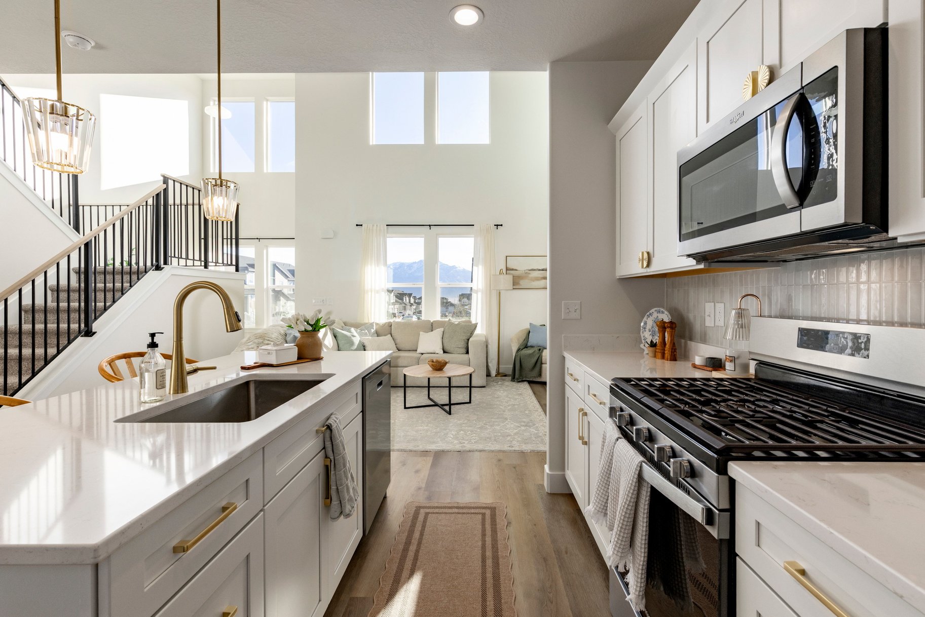 It's hard to find better than brand new but this townhome is. This beautiful home is located in the desirable Mountain Ridge community. The main level features a stunning two-story open great room with stunning natural light and gorgeous mountain views. The kitchen has upgraded modern finishes has ample counter space, and a spacious dining area that flows seamlessly into the living space, making it ideal for gatherings. Upstairs, the spacious primary suite provides a relaxing private retreat with plenty of room to unwind. Two additional generously sized bedrooms offer comfortable space for family or guests. A large laundry room conveniently located upstairs adds to the home's thoughtful layout. This home is ideally located within walking distance to top-rated schools, swimming pools, clubhouse, park, and the Mountain View Village Shopping Center. Plus, you'll enjoy quick access to both Mountain View Corridor and Bangerter Highway.