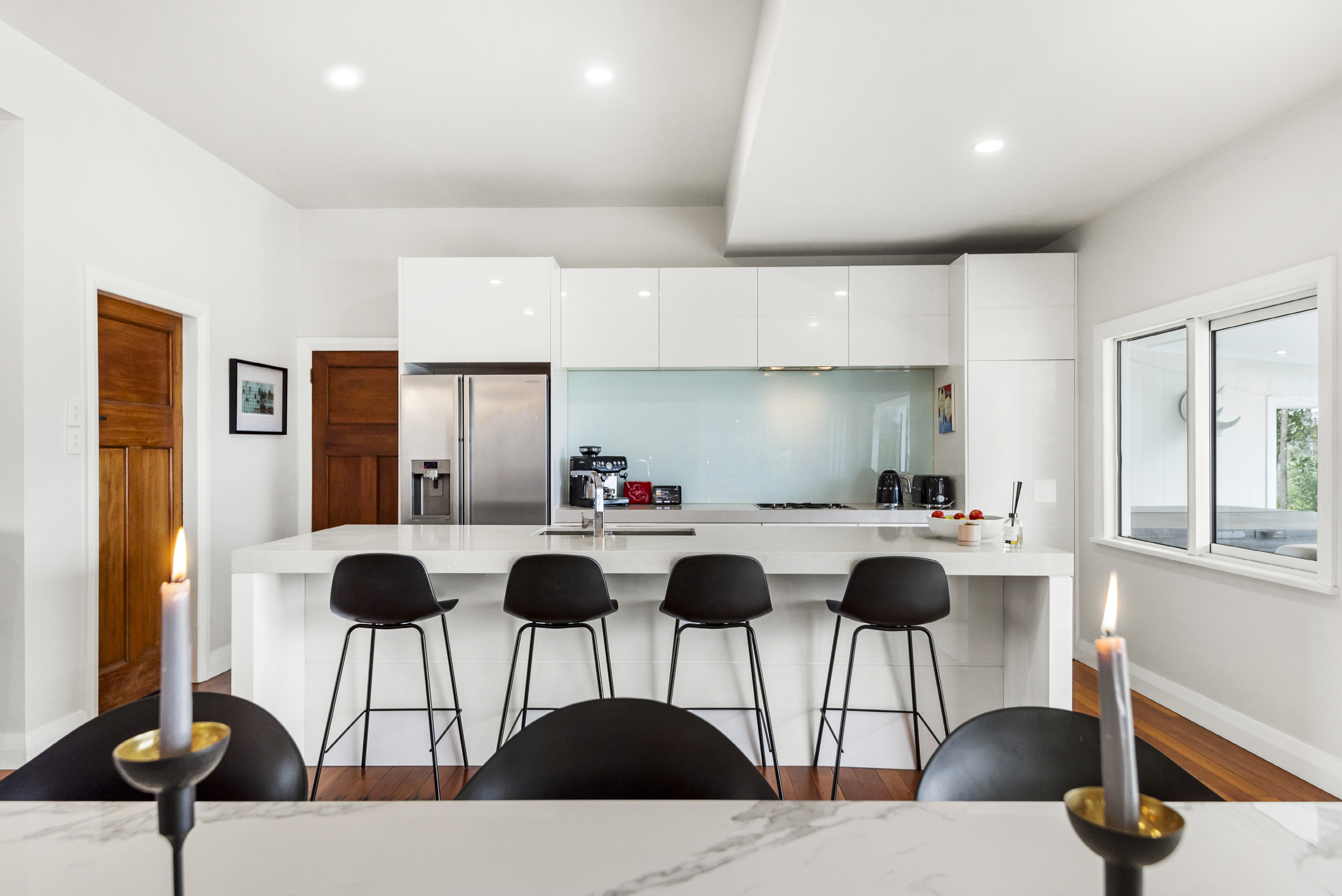The designer kitchen forms the centre of the home, connecting seamlessly with the open-plan dining and living areas. Throughout the home, the blend of character and contemporary updates creates a warm, inviting atmosphere while preserving the charm of its original design.