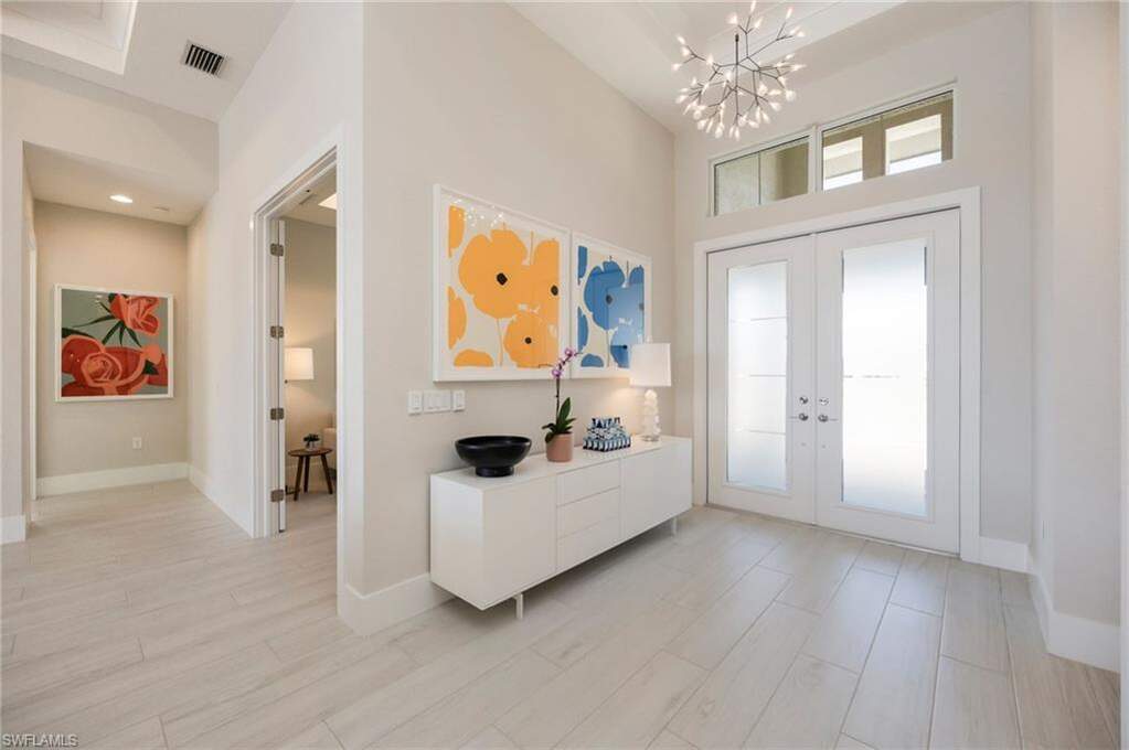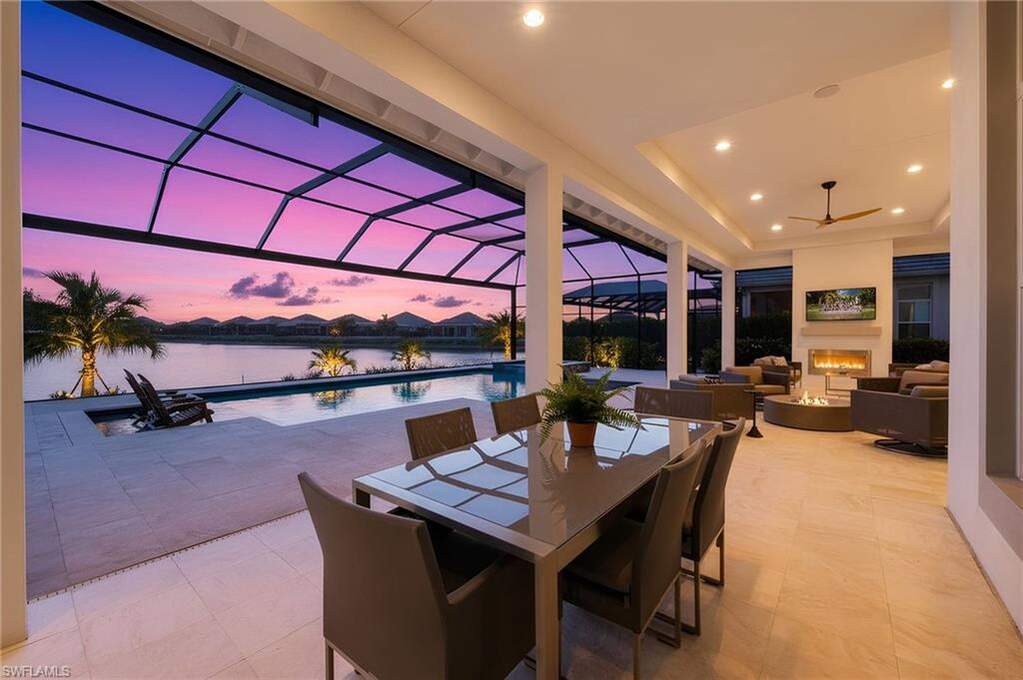 Experience elevated coastal living in this STOCK built 'Covington III' home, ideally situated on a southern-facing lot featuring long lake views in the gated community, Isles of Collier Preserve. This impeccably designed 3 bedrooms plus den, 3 bath, 3-car garage residence blends timeless architecture with refined modern upgrades. Designed for both comfort and style, the thoughtfully designed open floor plan showcases porcelain plank tile flooring throughout, custom lighting, and designer fans, creating a sophisticated yet inviting atmosphere. The chef's kitchen is a statement of both form and function, featuring soft-close cabinetry, quartz countertops, gas cooktop, wine refrigerator, and an expansive island, all opening to the family room with a custom built-in entertainment niche with fireplace. The primary suite is a tranquil retreat with French doors that provide direct access to the lanai, custom motorized blackout shades, his-and-her custom closets, and a spa-inspired bath anchored by a soaking tub. A second en-suite bedroom and third bedroom, offer comfort and privacy for family and guests alike. Framed by southern exposure and panoramic long lake views, the outdoor living experience is nothing short of exceptional. A covered living area with fireplace and adjacent dining space anchors the setting, while the well-appointed summer kitchen with gas grill and resort-style pool and spa transform the lanai into a private retreat, complemented by lush professionally installed privacy landscaping. An automated SWAT Mosquito Misting System provides eco-friendly outdoor insect protection. Additional exceptional upgrades include a whole-house generator with a 500-gallon buried propane tank, tankless water heater, and a state-of-the-art HVAC system with dehumidifier and UV light, ensuring year-round comfort and elevated indoor air quality. The Isles of Collier Preserve is a private, gated community less than 5 miles from Old Naples' world-class dining, boutique shopping, and pristine beaches. Surrounded by natural beauty and just minutes from the Naples Botanical Gardens, Hamilton Harbor Yacht Club, East Naples Park, and the Bayshore Arts District, The Isles offers an unmatched lifestyle. Residents enjoy a state-of-the-art fitness center, resort-style and lap pools, 14 pickleball courts, 6 tennis courts, bocce, a dog park, and the waterfront Overlook Bar & Grill. Over 8 miles of scenic trails and winding waterways invite kayaking, paddleboarding, biking, and bird watching. The award winning Isles of Collier Preserve is the perfect blend of luxury, nature, and convenience.