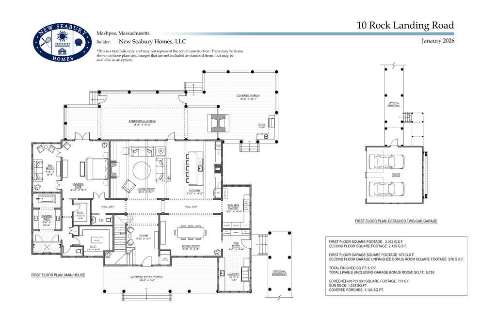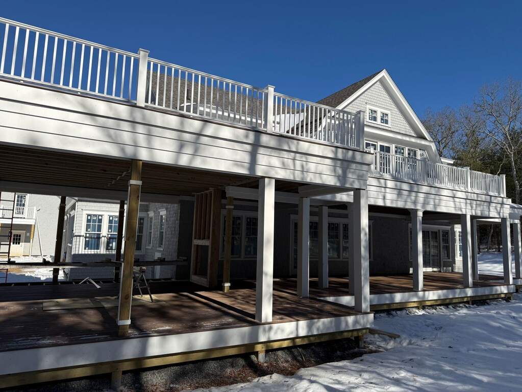 Welcome to refined coastal living in the heart of New Seabury Resort. This stunning new construction residence offers over 5,100 square feet of thoughtfully designed living space, set on a private 2+ acre site that blends luxury, comfort, and resort-style amenities. The home features 4 bedrooms and 4.5 baths, including a first-floor primary suite designed as a true retreat with an expansive spa-like bath, walk-in closets, and a sun-filled sitting room. Three additional guest bedrooms are located on the second floor, providing privacy and comfort for family and visitors alike. At the heart of the home is a beautifully appointed kitchen with upgraded cabinetry, quartz countertops, and top-of-the-line Sub-Zero and Wolf appliances, seamlessly opening to a spacious dining area ideal for entertaining. The inviting living room is anchored by a gas fireplace, creating a warm and welcoming atmosphere year-round. Exceptional indoor-outdoor living defines this home, with a large, screened porch and a covered porch featuring a dual-sided fireplace, perfect for relaxing evenings or hosting gatherings in any season. Additional highlights include a detached two-car garage with unfinished living space above, offering endless potential for a guest suite, home office, or studio. Ownership includes access to New Seabury Resort membership, offering a private beach, two championship golf courses, a championship racquet club, and a full suite of resort amenities. A rare opportunity to own new construction in one of Cape Cod's most sought-after resort communitieswhere luxury living meets coastal elegance.