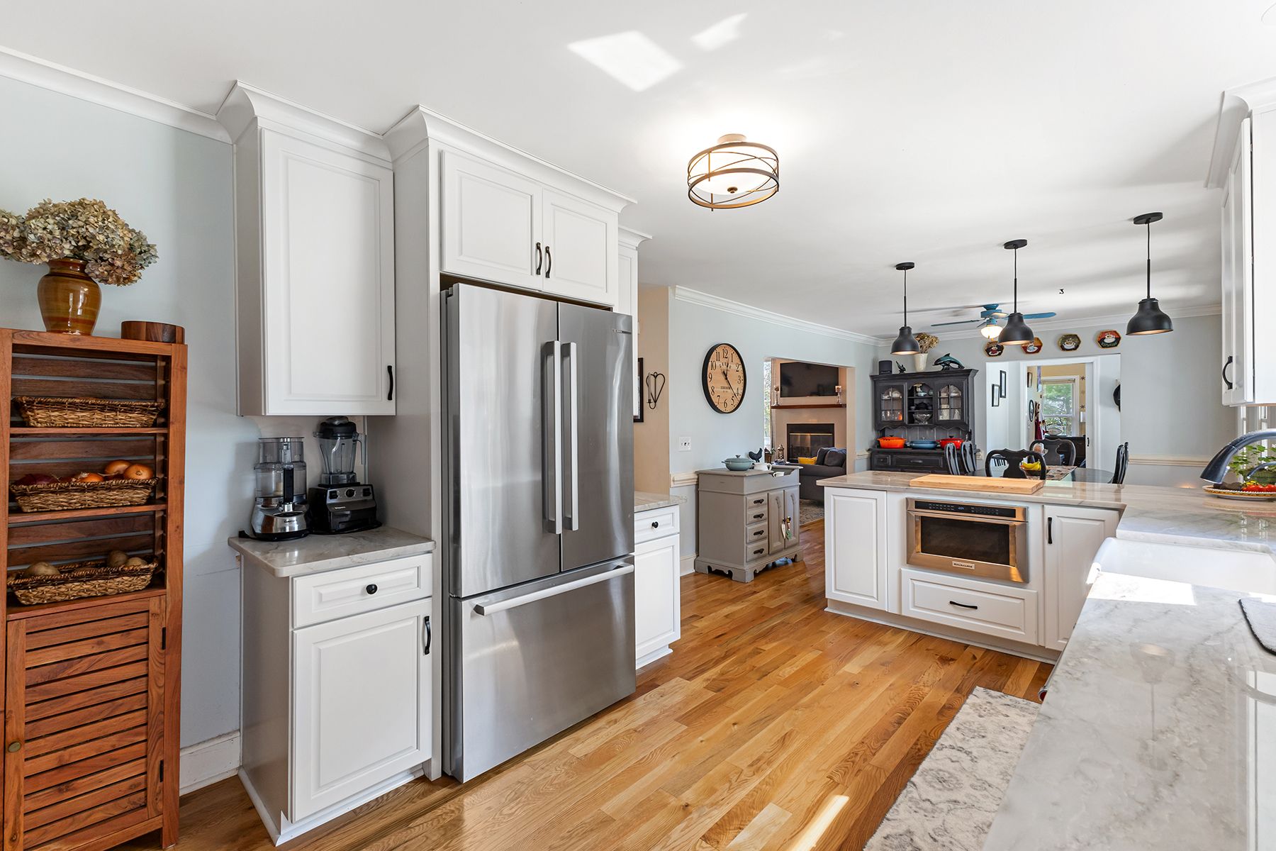 The kitchen renovation has been thoughtfully started, offering a fantastic opportunity for the next owner to complete the space with their own finishes and design vision. Major upgrades are already in place, including custom cabinetry, beautiful quartzite countertops, and a farmhouse sink.