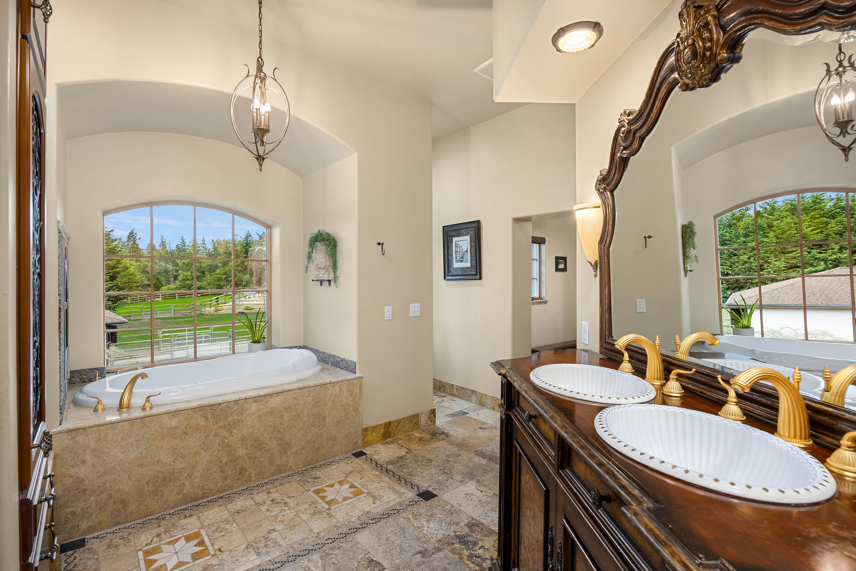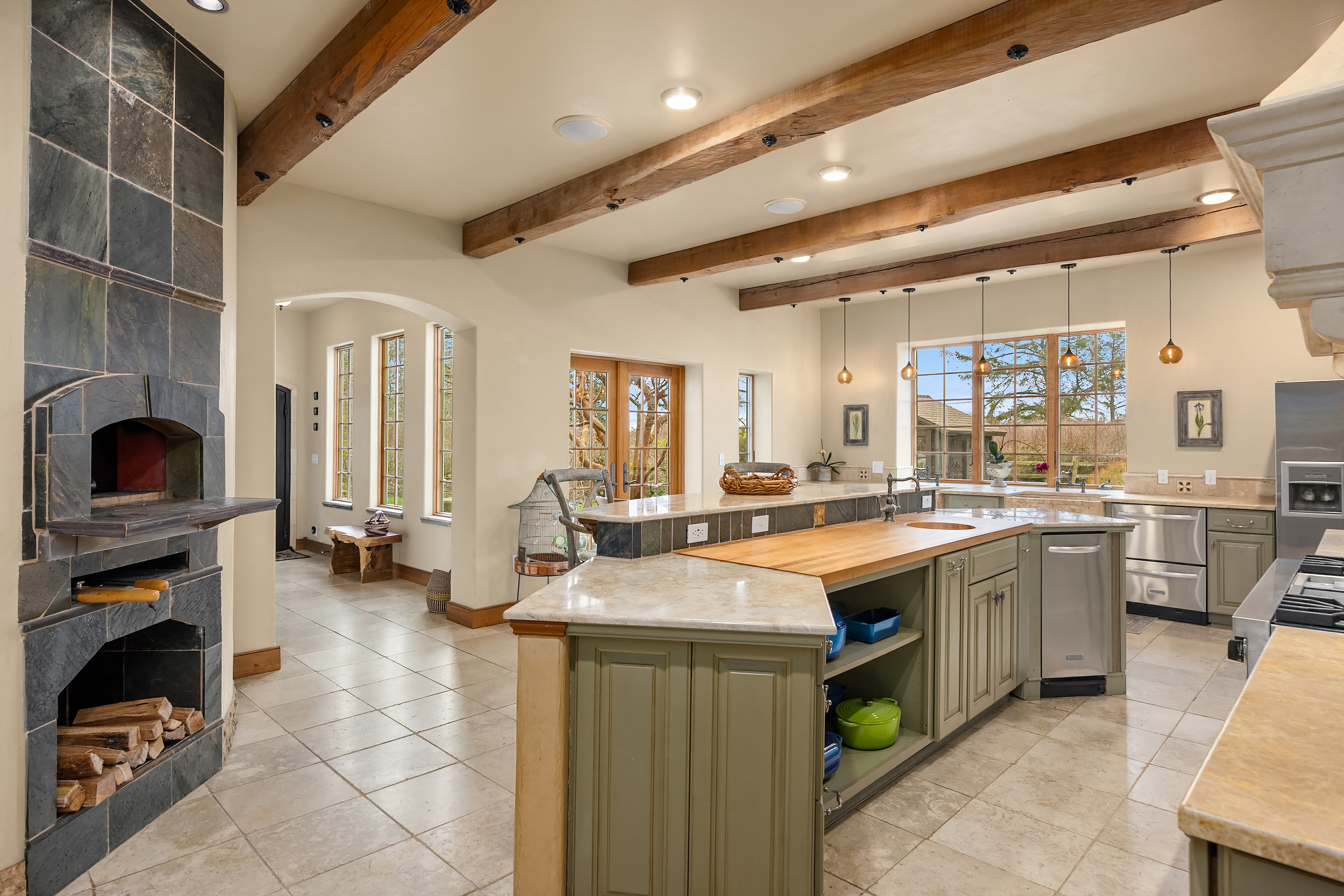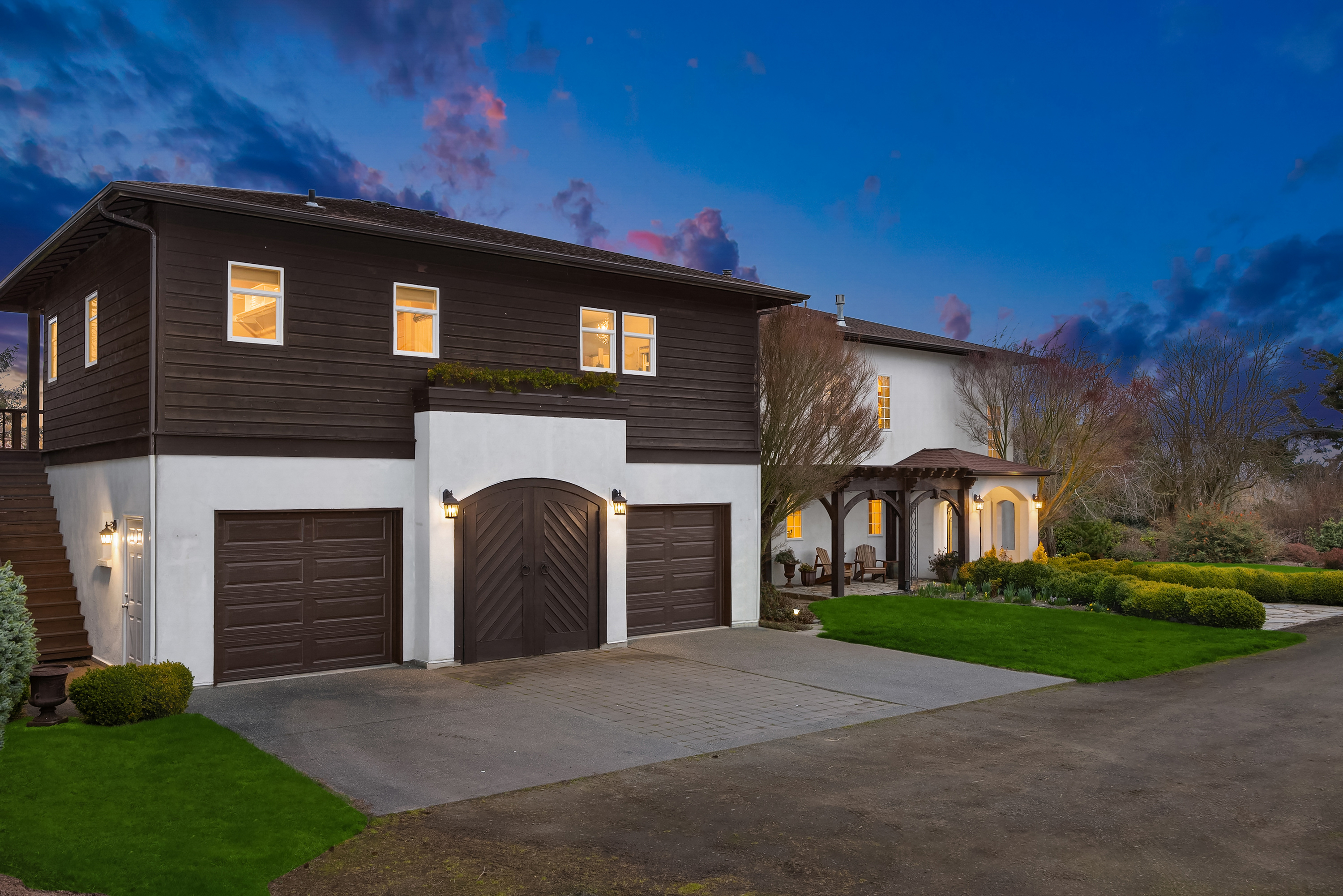 Perched on a bluff overlooking the Strait of Juan de Fuca, this exceptional country retreat offers refined living just minutes from Fort Worden and historic downtown Port Townsend. Designed with craftsmanship and intention, the great room showcases soaring ceilings, exposed timber framing, and a cast limestone propane fireplace - framing tranquil views of curated gardens and coastal light. The expansive primary suite is a sanctuary of it's own, featuring vaulted ceilings, dual propane fireplaces (including one in the spa-inspired en-suite bath) and a Juliette balcony capturing sweeping views. The chef's kitchen is built for both everyday elegance and grand entertaining, complete with a wood-fired Italian pizza oven, stone sinks, and a butler's pantry. Just beyond, an enclosed kitchen garden, greenhouse and hen house create a true farm-to-table lifestyle. A thoughtfully designed separate guest suite offers privacy for extended stays, multi-generational living, or caregiver quarters - complete with it's own deck, water views, fireplace, and en-suite bath, where passing ships and vibrant sunsets frame the horizon. Equestrian ready and remarkably versatile, the plumbed and wired 720 square foot 2 stall barn with paddocks and pasture can serve as a studio, workshop, bunkhouse or creative space. Ride out, bike or jog directly from your property - Cappy's Trails are just across the street. This is more than a home, it is a self-contained coastal retreat.