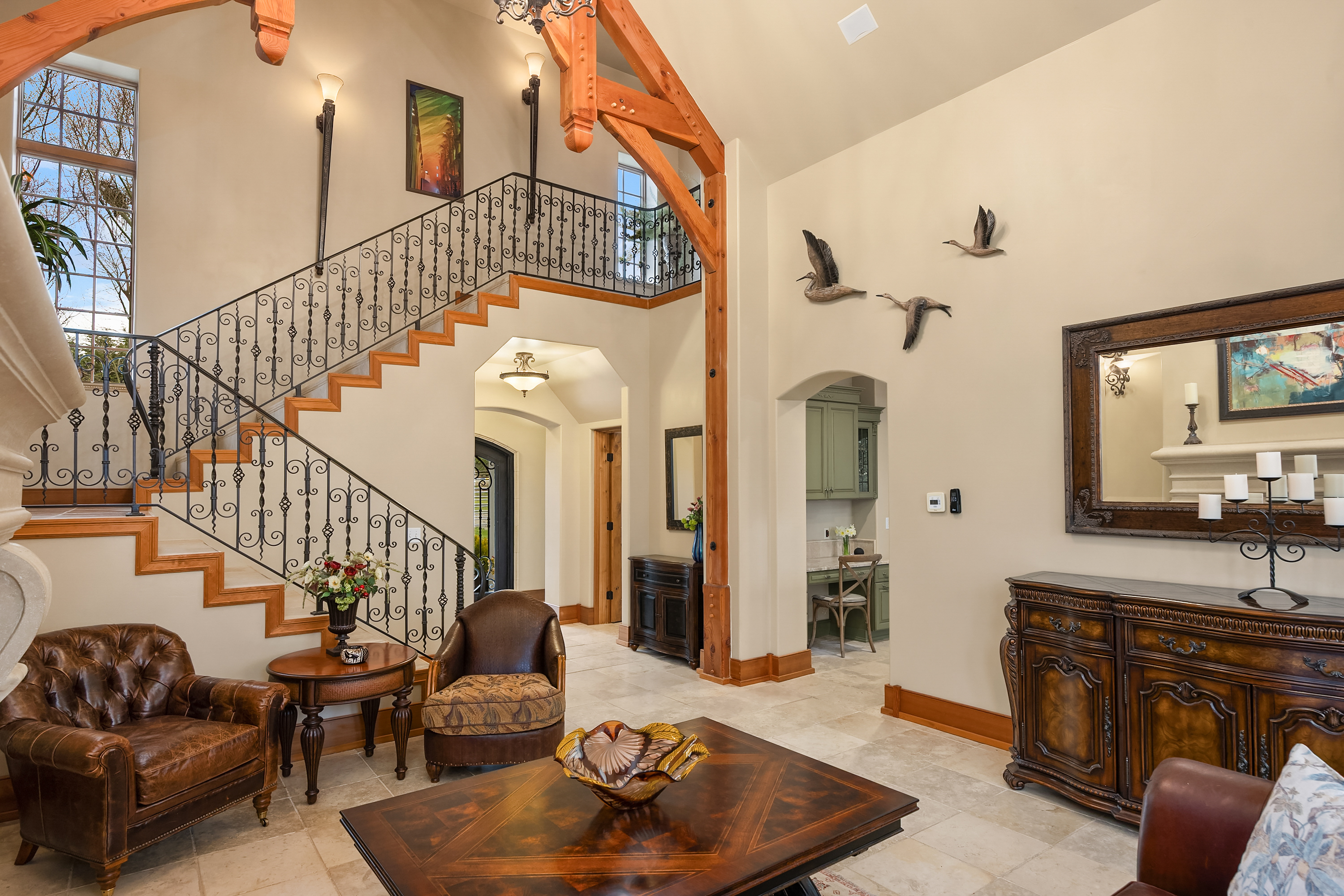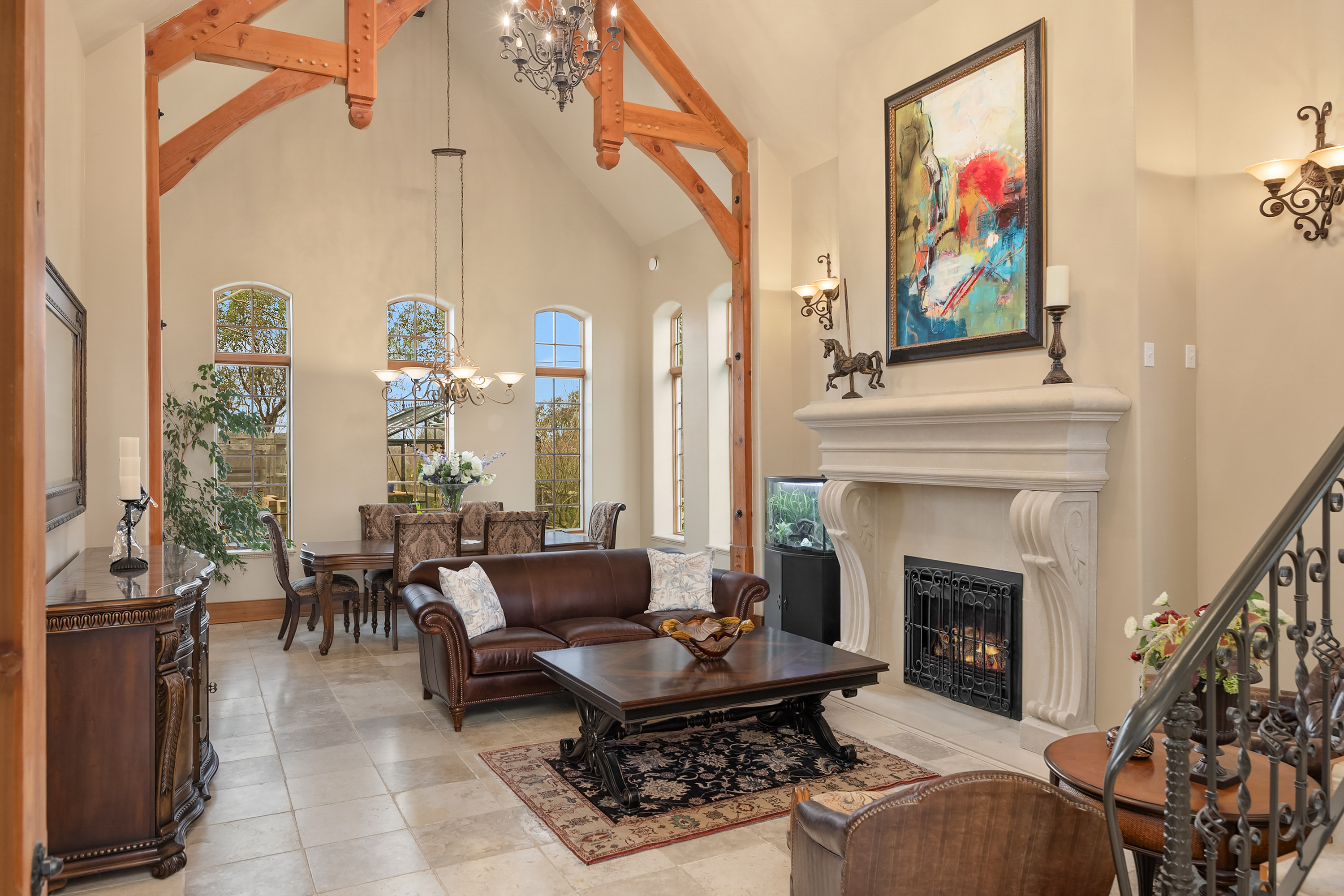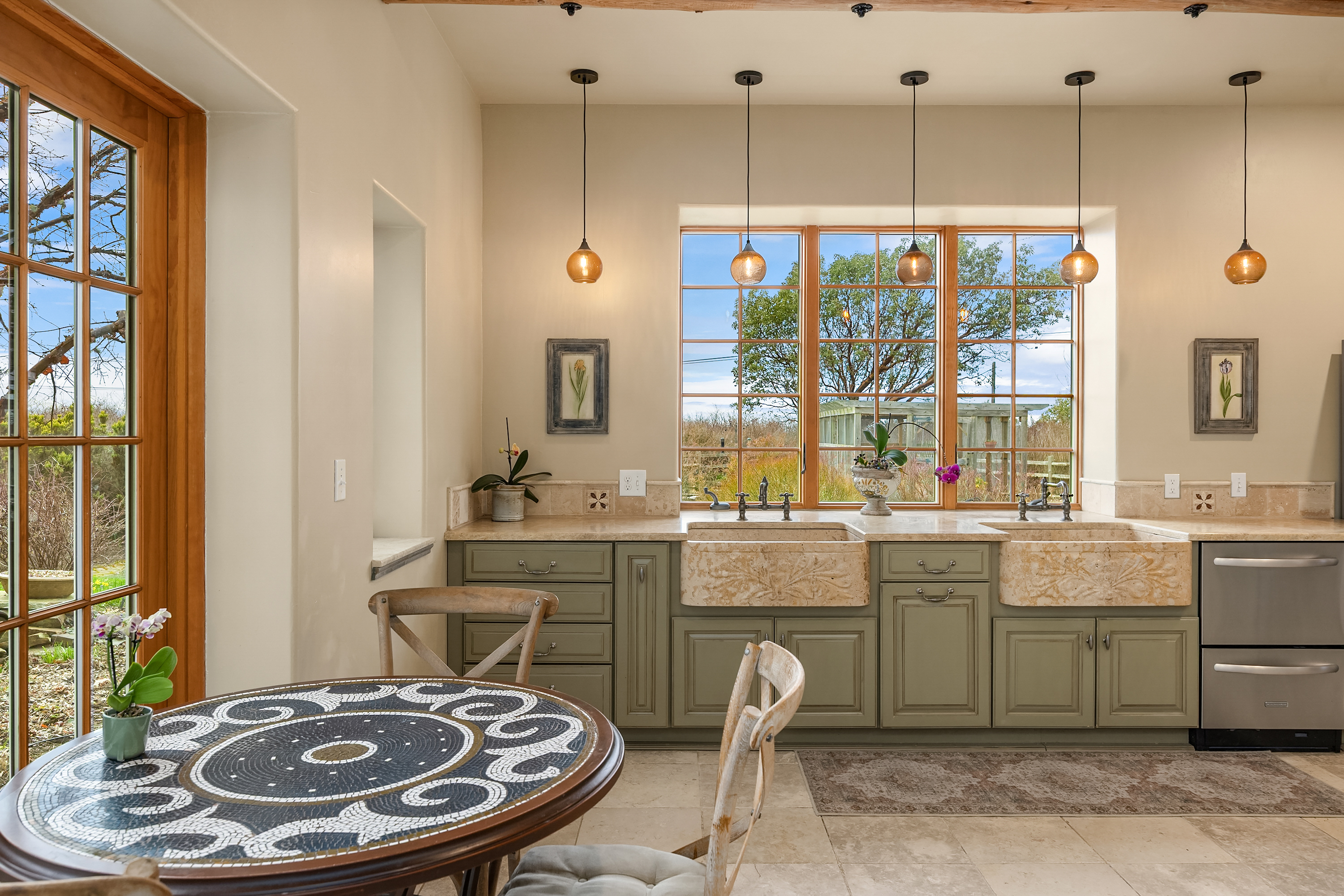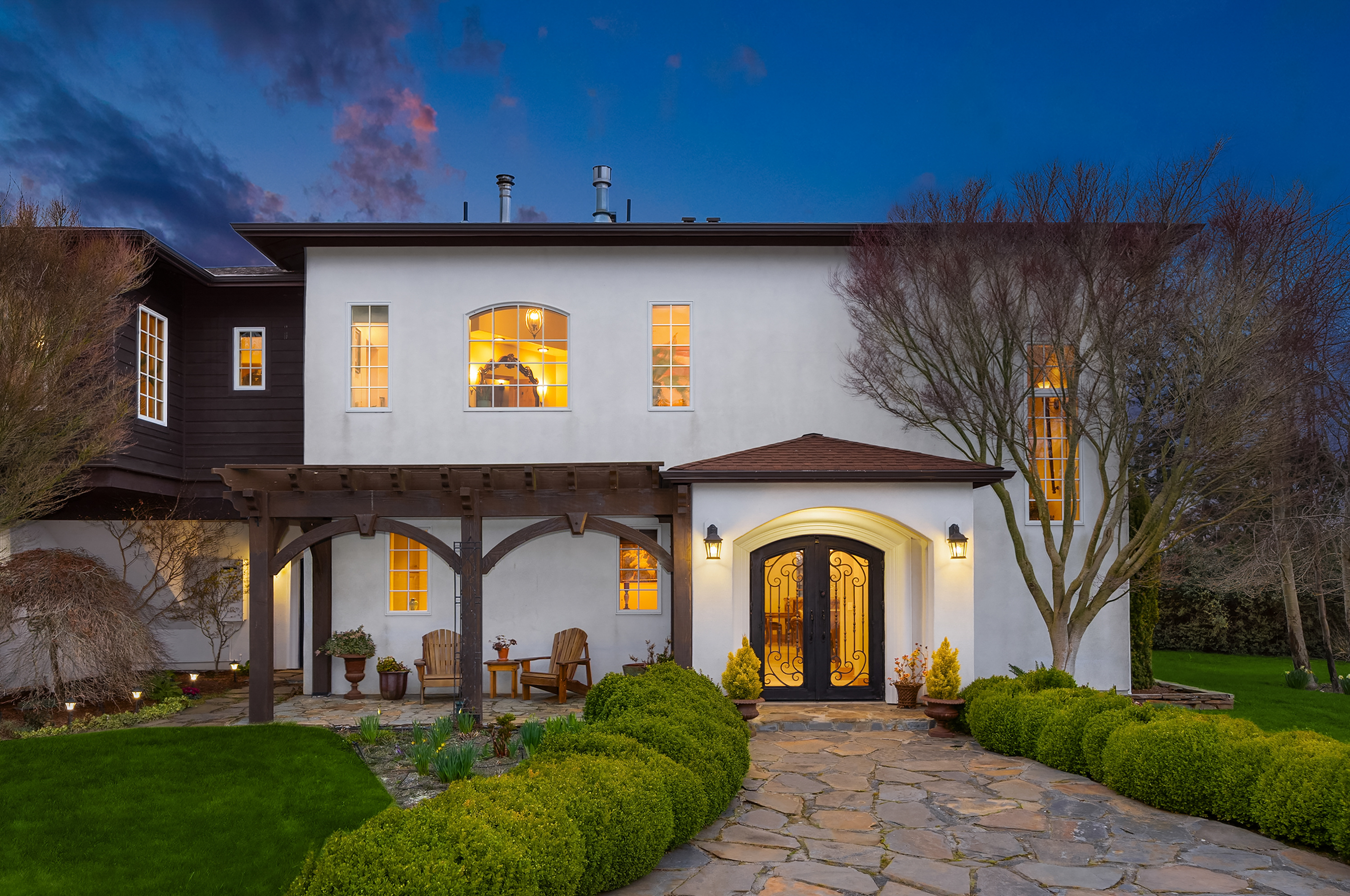 Perched on a bluff overlooking the Strait of Juan de Fuca, this exceptional country retreat offers refined living just minutes from Fort Worden and historic downtown Port Townsend. Designed with craftsmanship and intention, the great room showcases soaring ceilings, exposed timber framing, and a cast limestone propane fireplace - framing tranquil views of curated gardens and coastal light. The expansive primary suite is a sanctuary of it's own, featuring vaulted ceilings, dual propane fireplaces (including one in the spa-inspired en-suite bath) and a Juliette balcony capturing sweeping views. The chef's kitchen is built for both everyday elegance and grand entertaining, complete with a wood-fired Italian pizza oven, stone sinks, and a butler's pantry. Just beyond, an enclosed kitchen garden, greenhouse and hen house create a true farm-to-table lifestyle. A thoughtfully designed separate guest suite offers privacy for extended stays, multi-generational living, or caregiver quarters - complete with it's own deck, water views, fireplace, and en-suite bath, where passing ships and vibrant sunsets frame the horizon. Equestrian ready and remarkably versatile, the plumbed and wired 720 square foot 2 stall barn with paddocks and pasture can serve as a studio, workshop, bunkhouse or creative space. Ride out, bike or jog directly from your property - Cappy's Trails are just across the street. This is more than a home, it is a self-contained coastal retreat.