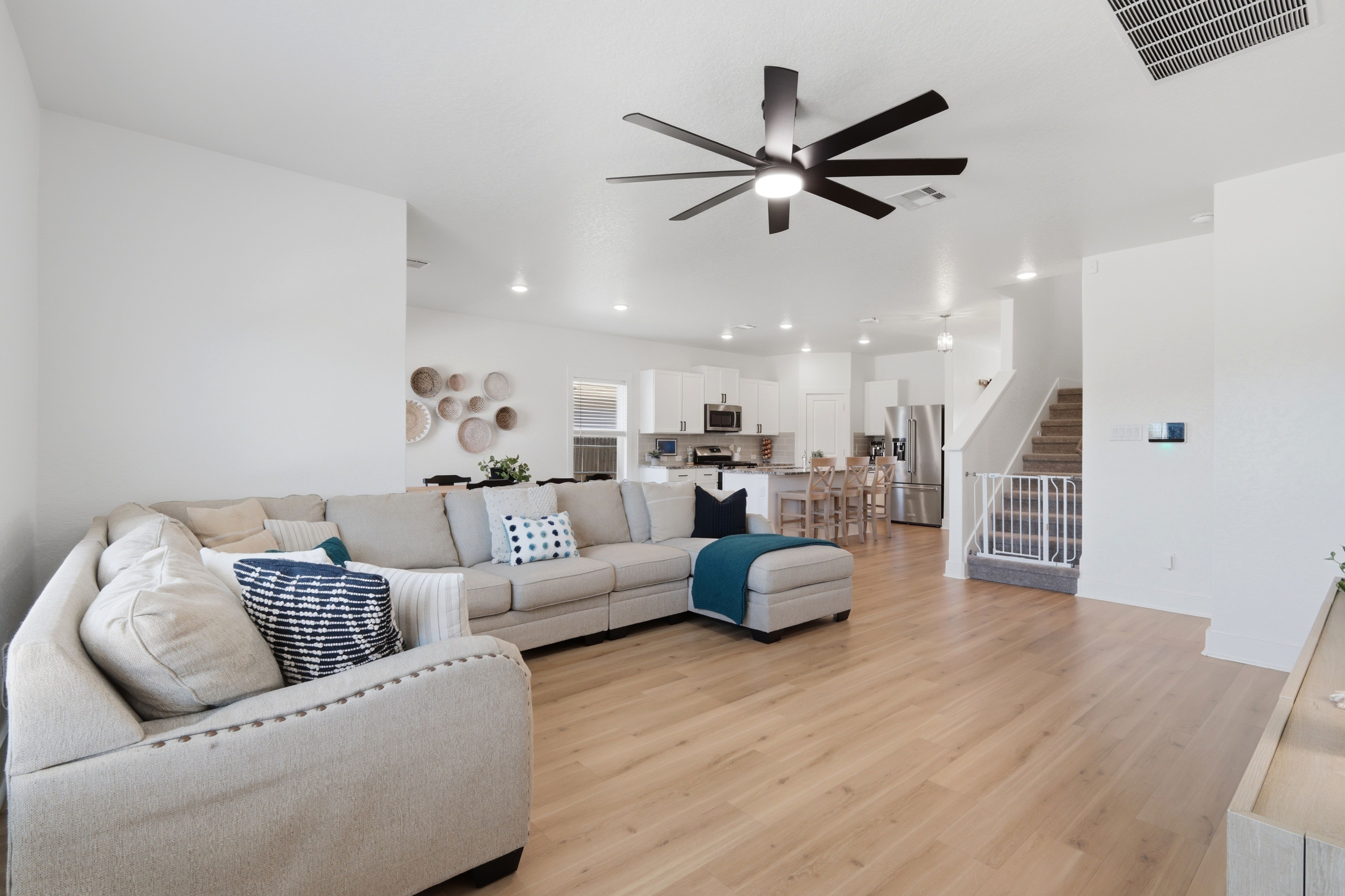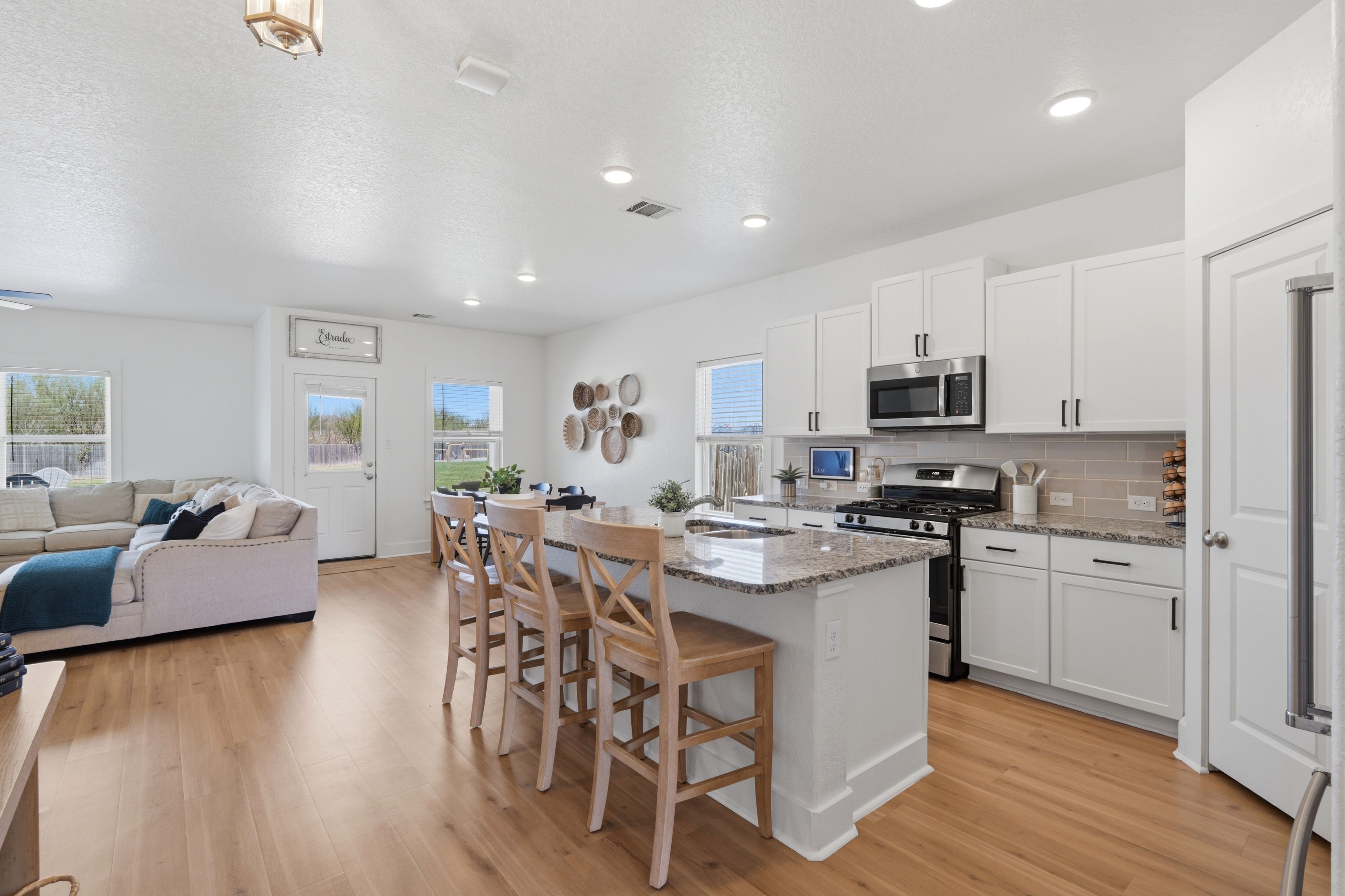 Yes, you read that right—over half an acre in the city. Set on a 0.57-acre cul-de-sac lot in Heather Glen, this 4-bedroom home with a dedicated office offers a rare combination of space, functionality, and convenience just minutes from New Braunfels amenities. Inside, the home features a bright, open layout with high ceilings, abundant natural light, and upgraded flooring throughout the main living areas. The kitchen is designed for both everyday use and gathering, offering granite countertops, gas cooking, a large center island with seating, and seamless flow into the dining and living spaces. The primary suite is located on the main level with a spacious layout, walk-in closet, and private bath featuring dual vanities and a walk-in shower. A dedicated office on the first floor provides flexibility for work or additional living needs. Upstairs, a second living area/game room and generously sized secondary bedrooms create separation and versatility. Outdoor space is where this property truly stands apart. The expansive backyard offers room to spread out, while the established raised garden beds and enclosed area provide a ready-to-use setup for gardening or hobby use. The large patio extends the living space and is ideal for relaxing or entertaining. Located in a community and near neighborhood amenities including a pool, park/playground, and walking trails, this property offers a unique opportunity for those seeking more space without sacrificing convenience.