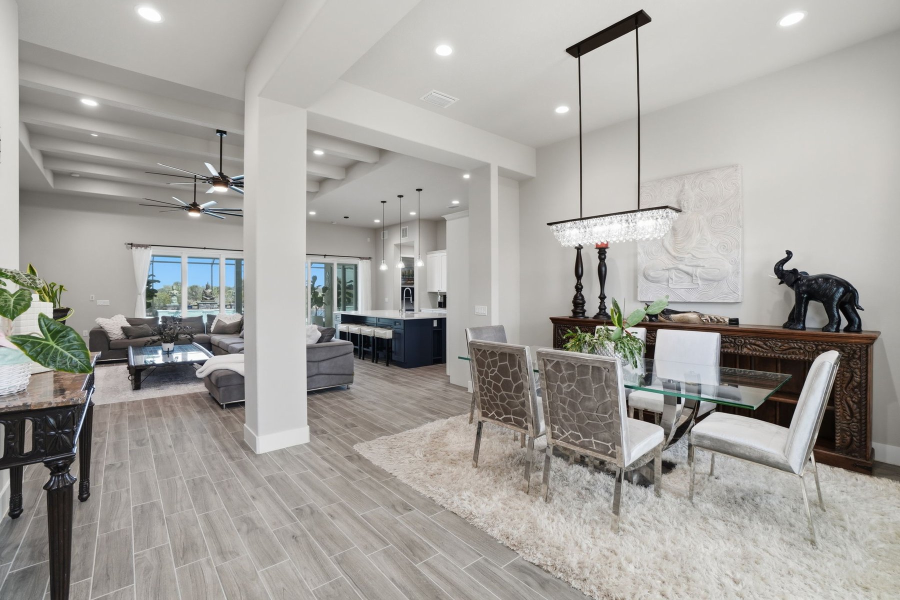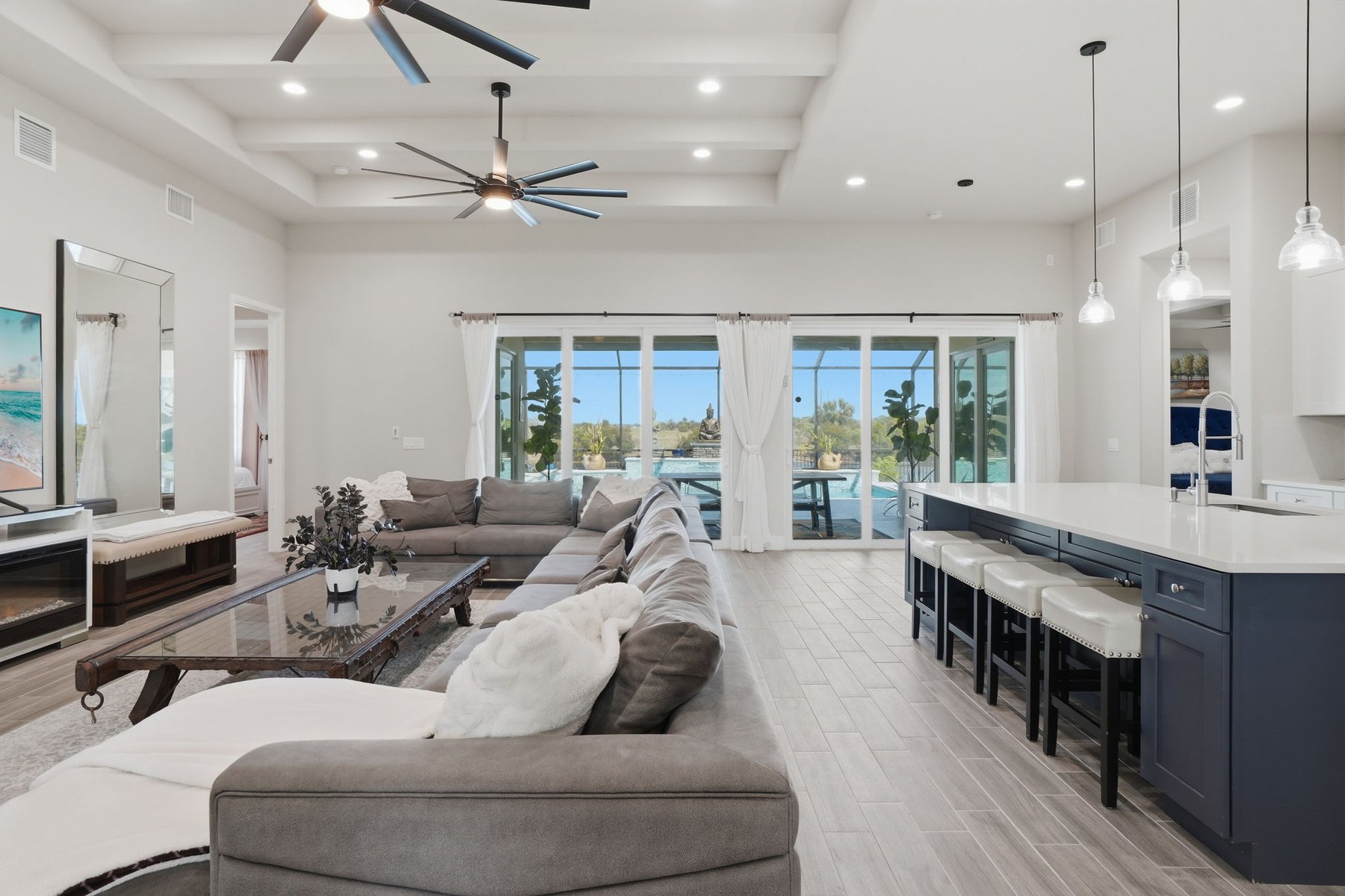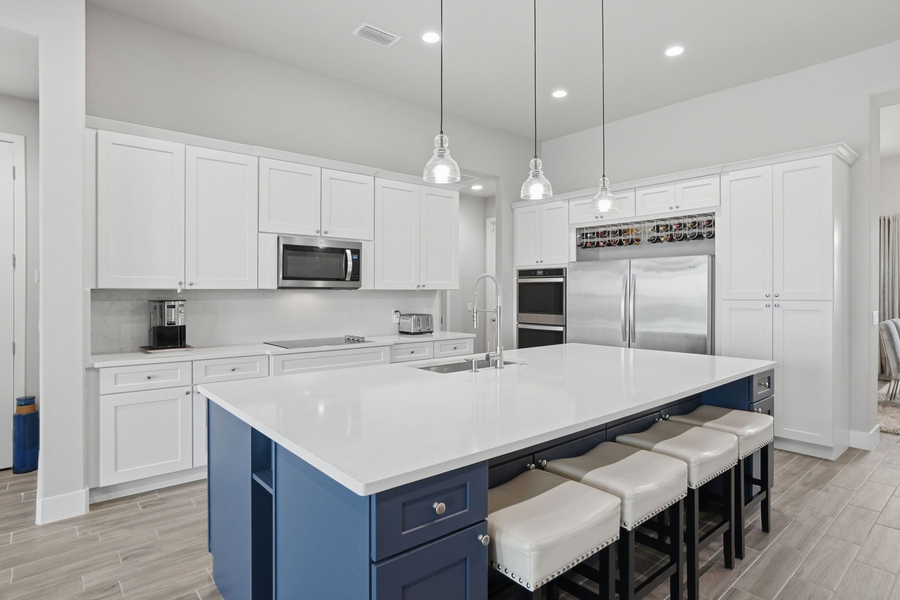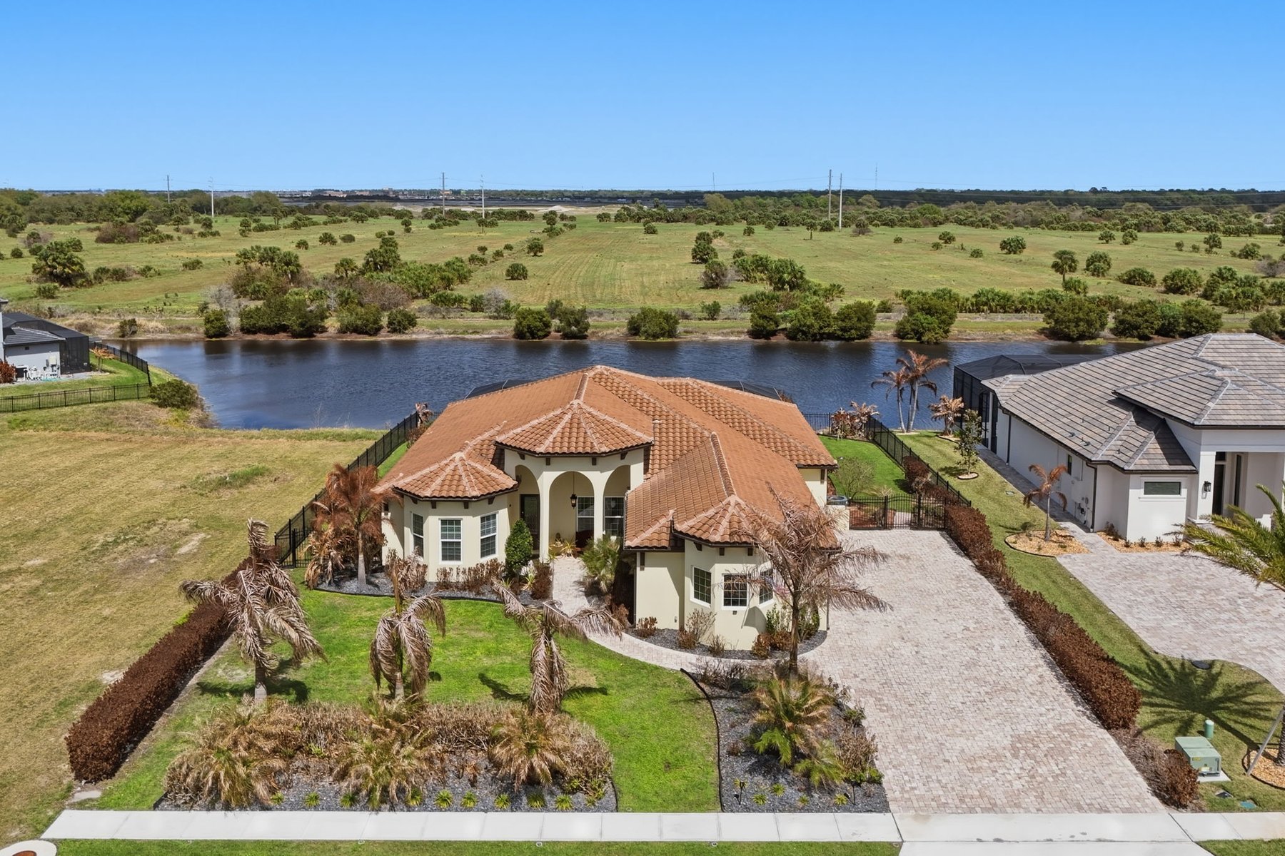 Experience luxury living in this custom 2021 Damar-built 4 bedroom, 3 bath, pool home with a 4-car epoxied garage, located in the gated community of Enclave at Lake Washington. Designed for both comfort and entertaining, the home features an open-concept layout that allows the main living spaces to flow seamlessly together. The kitchen is built for hosting and everyday living alike, offering a large center island, double ovens, abundant cabinetry, and a custom wine rack above the refrigerator. The primary suite provides a private retreat with a spa-style bathroom and a spacious walk-in closet. Step outside to experience true Florida living with a gas-heated pool and spa equipped with a Pentair smart pool system, allowing the pool temperature and settings to be controlled directly from your phone. The outdoor living space continues with a large screened patio with water views and a fully enclosed outdoor kitchen complete with its own exhaust system, private entrance, and air conditioning, creating a rare and functional space for year-round entertaining.Additional highlights include remote-controlled roll-down storm shutters on the lanai, insulated attic storage with 2x6 flooring and pull-down access, a buried 250-gallon propane tank for pool heating, irrigation system running on pump, a polyaspartic-coated pool deck, and a spacious fenced yard with multiple access gates. The property is approximately 20 minutes from the beach & about an hour from Orlando, Disney, and other parks. Making it easy to enjoy both the Space Coast and Central Florida attractions. Ideally located just minutes from I-95, top-rated schools, major shopping and dining, this home offers both convenience and lifestyle. Blending quality construction, thoughtful design, and exceptional indoor-outdoor living, this home offers a unique opportunity to enjoy elevated Florida living in Melbourne.