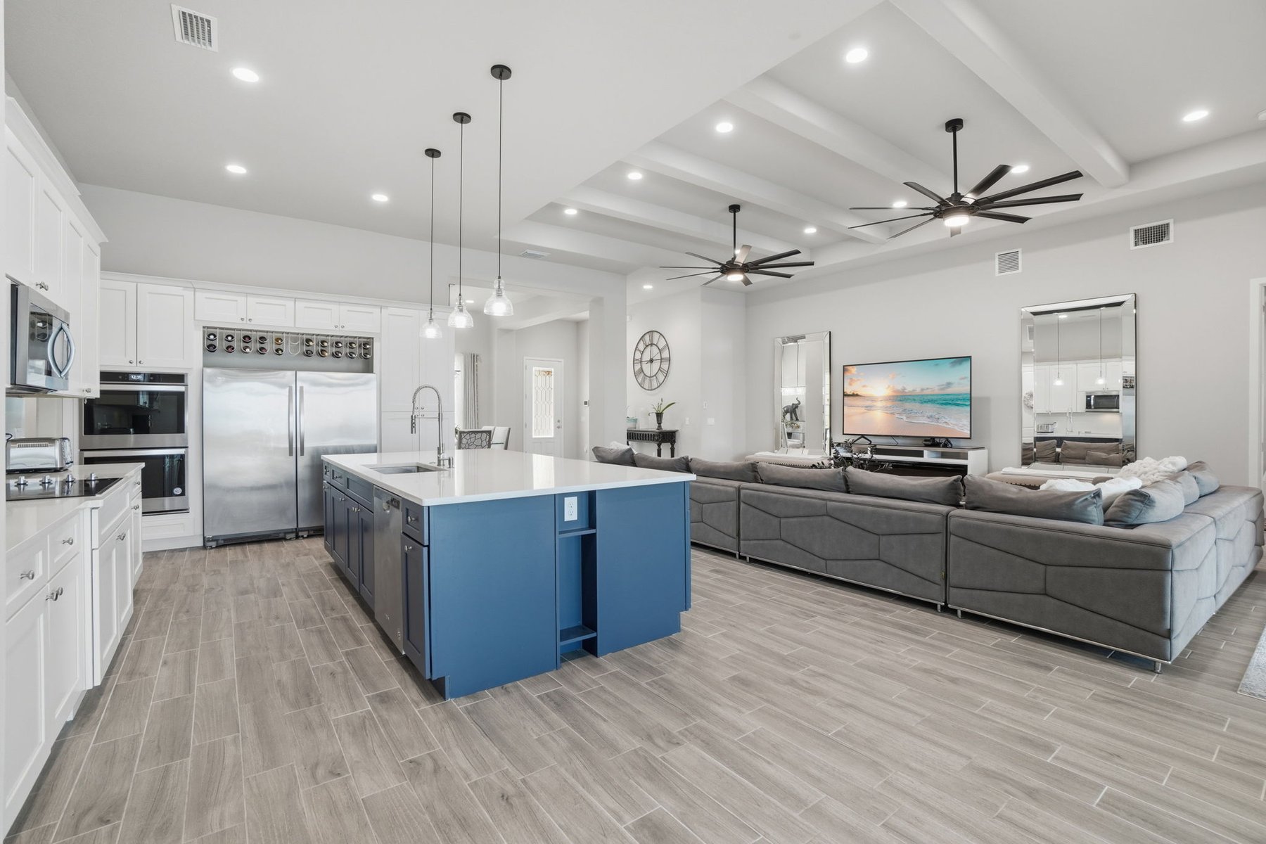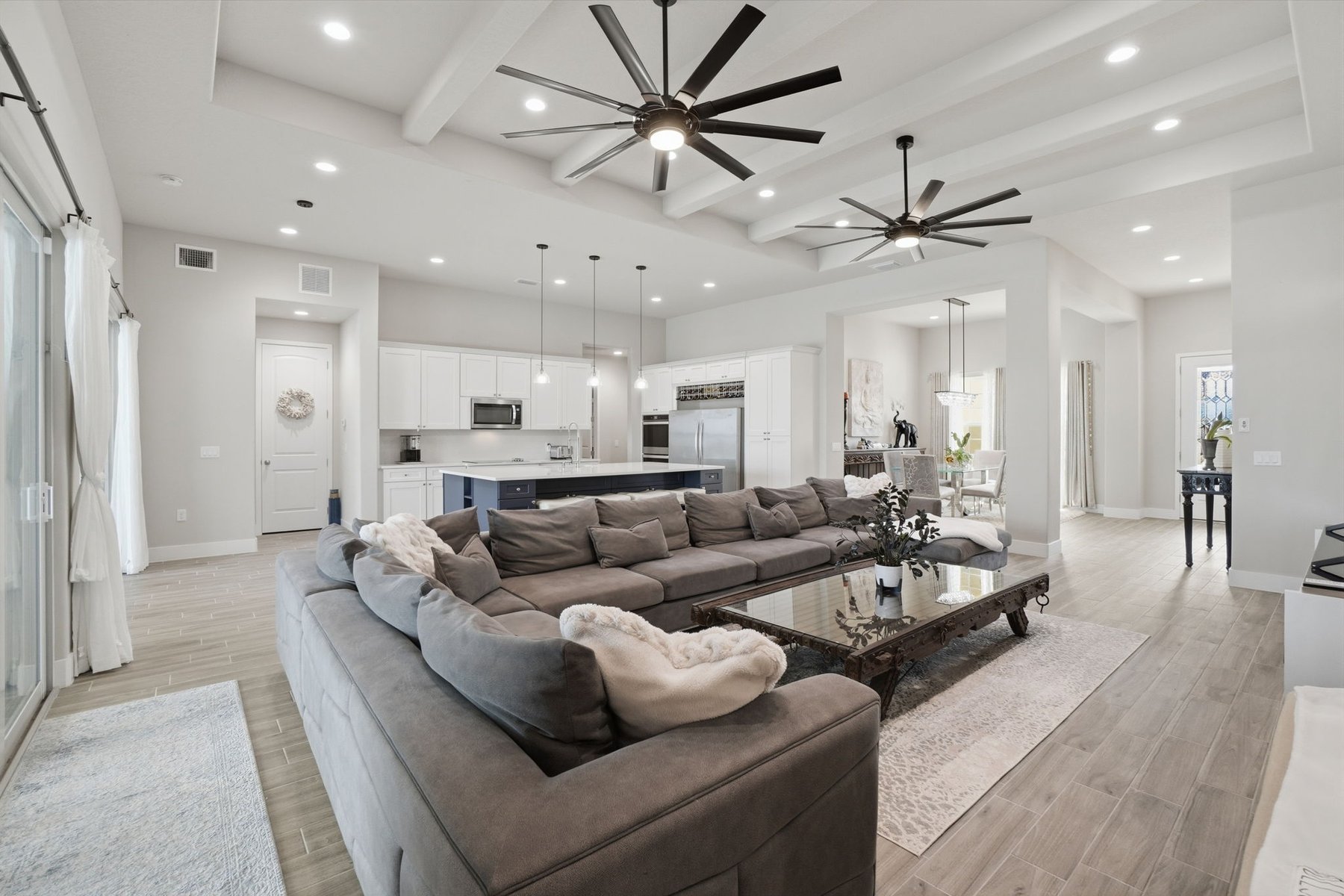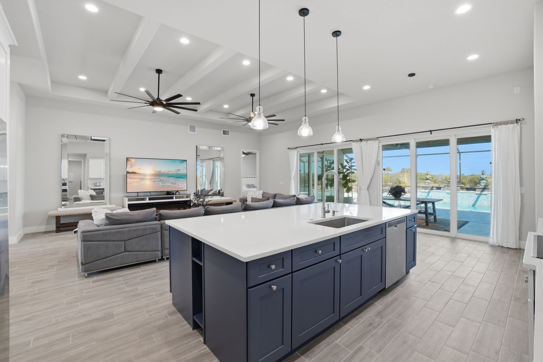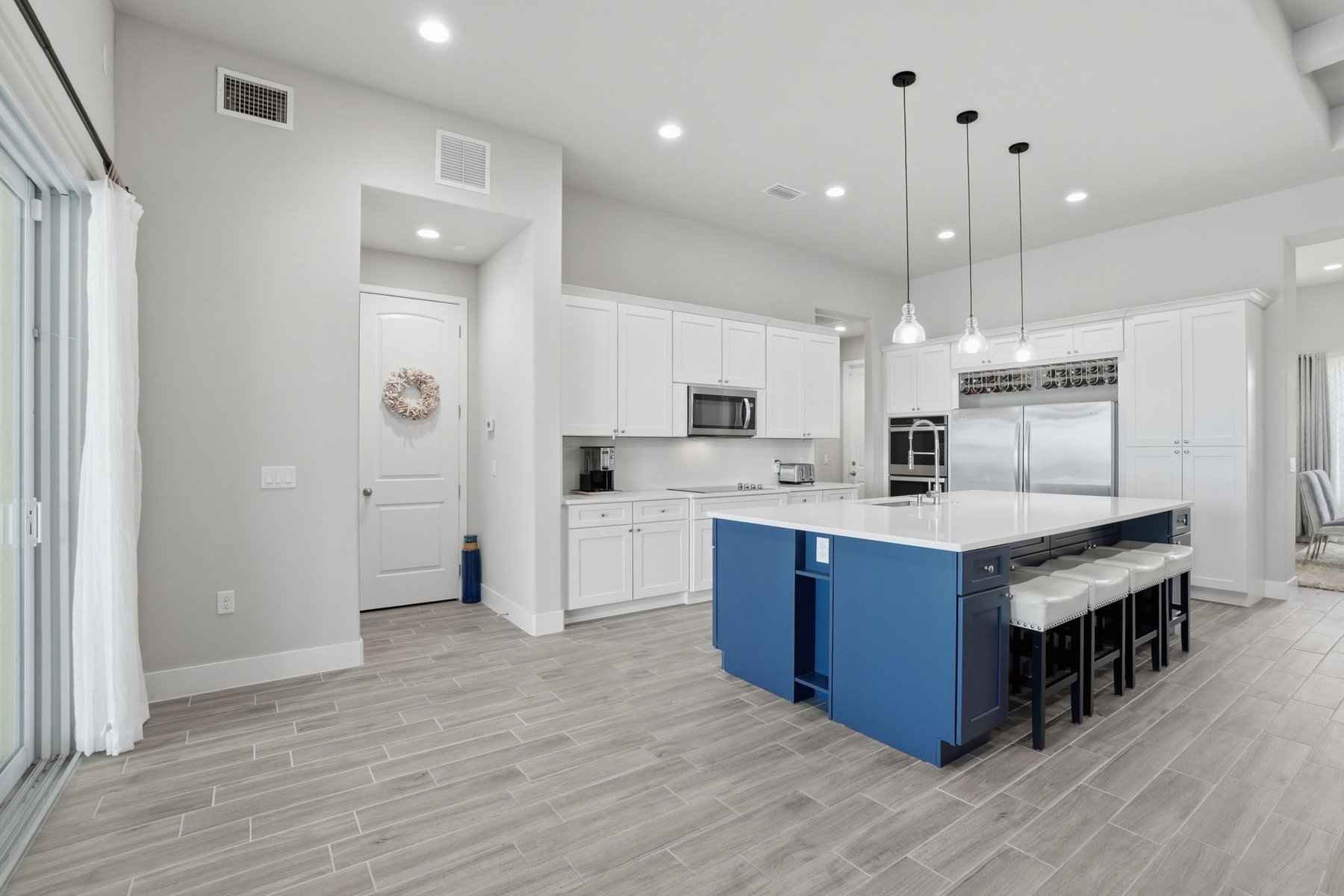 Experience luxury living in this custom 2021 Damar-built 4 bedroom, 3 bath, pool home with a 4-car epoxied garage, located in the gated community of Enclave at Lake Washington. Designed for both comfort and entertaining, the home features an open-concept layout that allows the main living spaces to flow seamlessly together. The kitchen is built for hosting and everyday living alike, offering a large center island, double ovens, abundant cabinetry, and a custom wine rack above the refrigerator. The primary suite provides a private retreat with a spa-style bathroom and a spacious walk-in closet. Step outside to experience true Florida living with a gas-heated pool and spa equipped with a Pentair smart pool system, allowing the pool temperature and settings to be controlled directly from your phone. The outdoor living space continues with a large screened patio with water views and a fully enclosed outdoor kitchen complete with its own exhaust system, private entrance, and air conditioning, creating a rare and functional space for year-round entertaining.Additional highlights include remote-controlled roll-down storm shutters on the lanai, insulated attic storage with 2x6 flooring and pull-down access, a buried 250-gallon propane tank for pool heating, irrigation system running on pump, a polyaspartic-coated pool deck, and a spacious fenced yard with multiple access gates. The property is approximately 20 minutes from the beach & about an hour from Orlando, Disney, and other parks. Making it easy to enjoy both the Space Coast and Central Florida attractions. Ideally located just minutes from I-95, top-rated schools, major shopping and dining, this home offers both convenience and lifestyle. Blending quality construction, thoughtful design, and exceptional indoor-outdoor living, this home offers a unique opportunity to enjoy elevated Florida living in Melbourne.