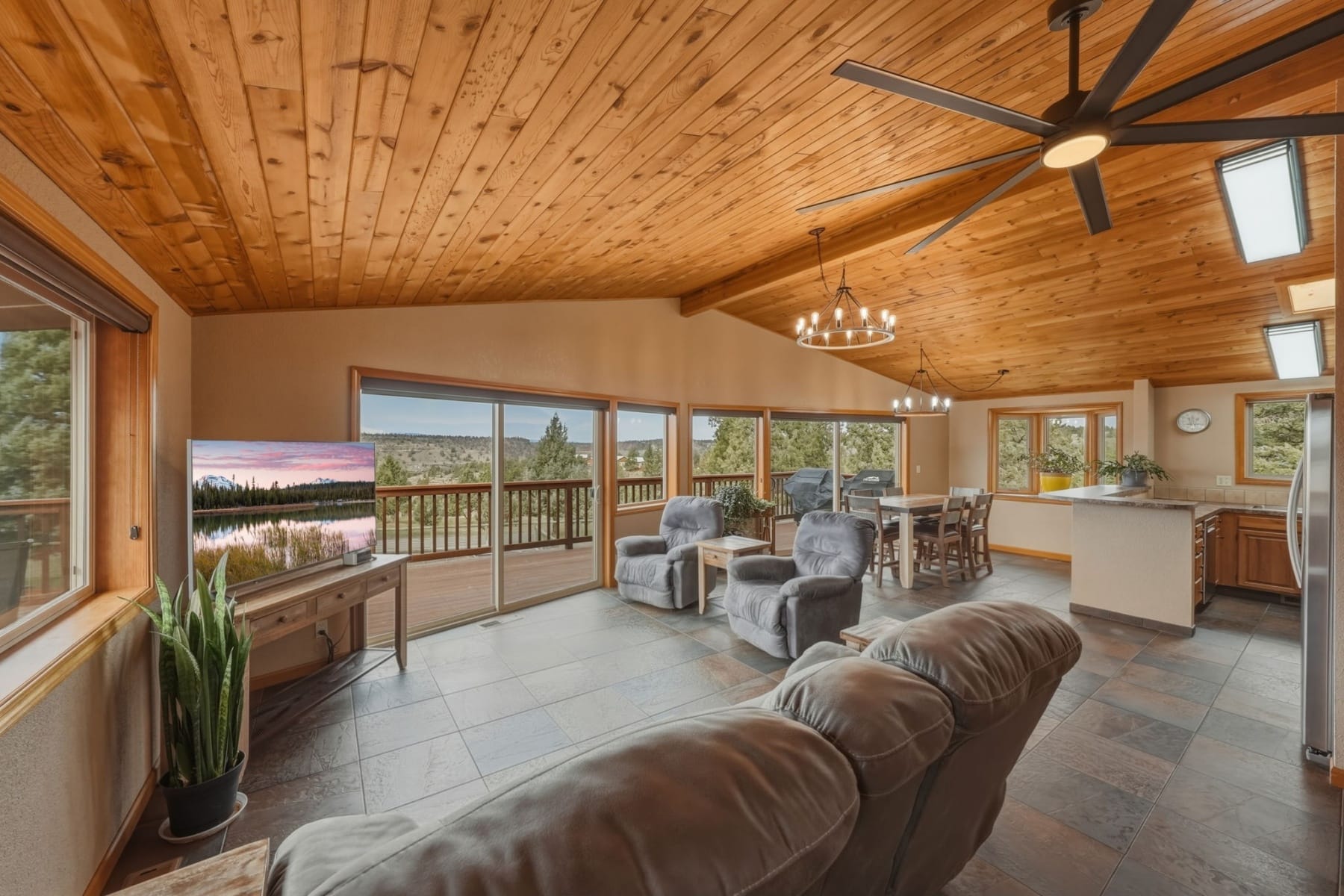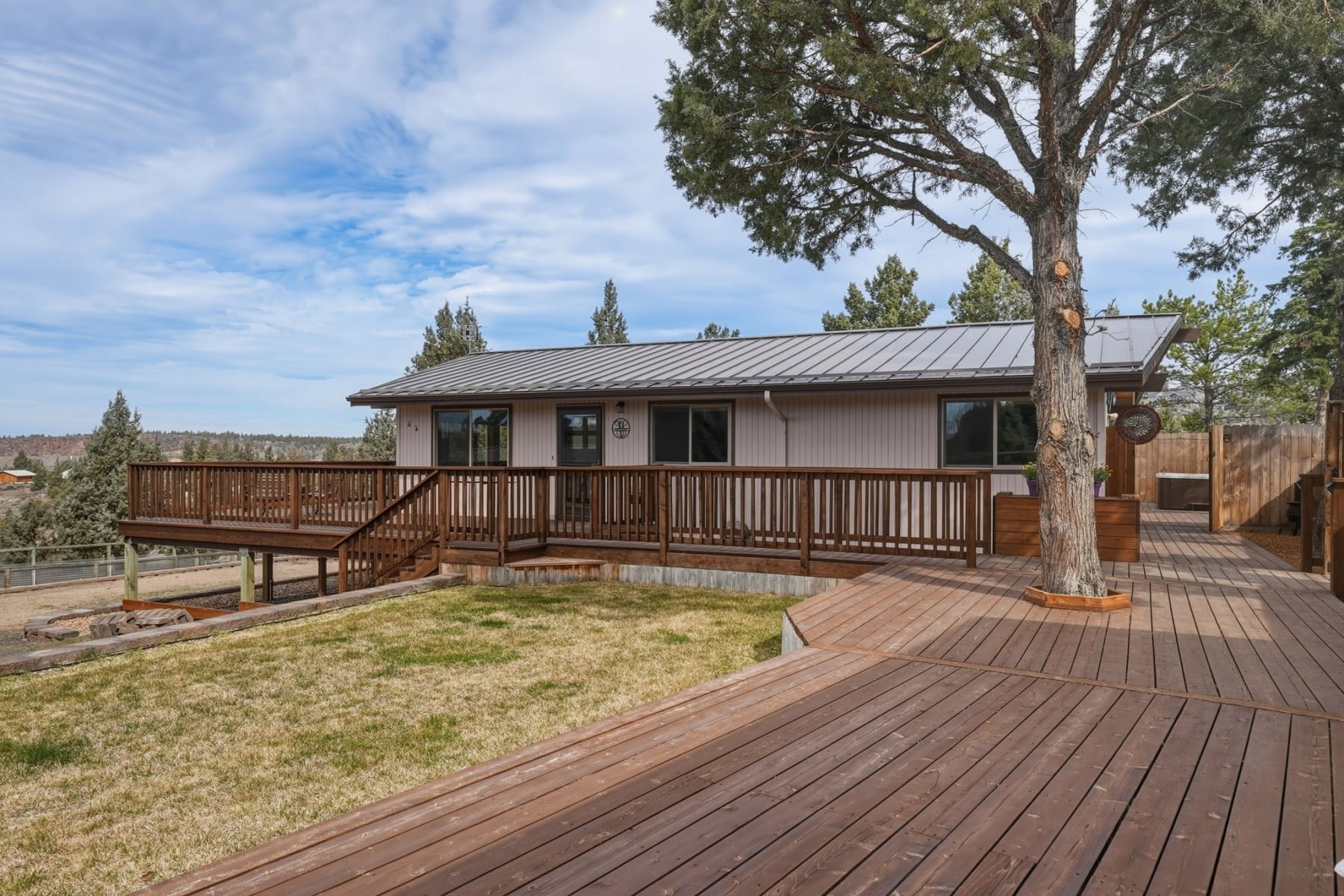 Welcome home to Crooked River Ranch, where the mountains meet the canyon in a peaceful, scenic setting. This thoughtfully maintained single-level ranch home sits on one of the largest and most desirable parcels in the community, just over 2 acres on the canyon rim with access to the Deschutes River. Enjoy sweeping views of Mt. Jefferson, Mt. Washington, Mt. Hood, Black Butte, and the Cascade Mountain Range. The home features a new metal roof, newer HVAC system, updated windows, added spray foam insulation, and an updated kitchen and laundry with newer appliances and lighting. Outdoor living shines with new decking and a private 6-person hot tub. The fully fenced and landscaped property includes wraparound decks, raised garden beds, animal areas, retaining walls, RV parking, and a 14'x22' hickory shed. Turn-key and move-in ready, this Central Oregon gem offers incredible views and access to resort-style amenities including pool, pickleball, and golf, all with low HOA dues.