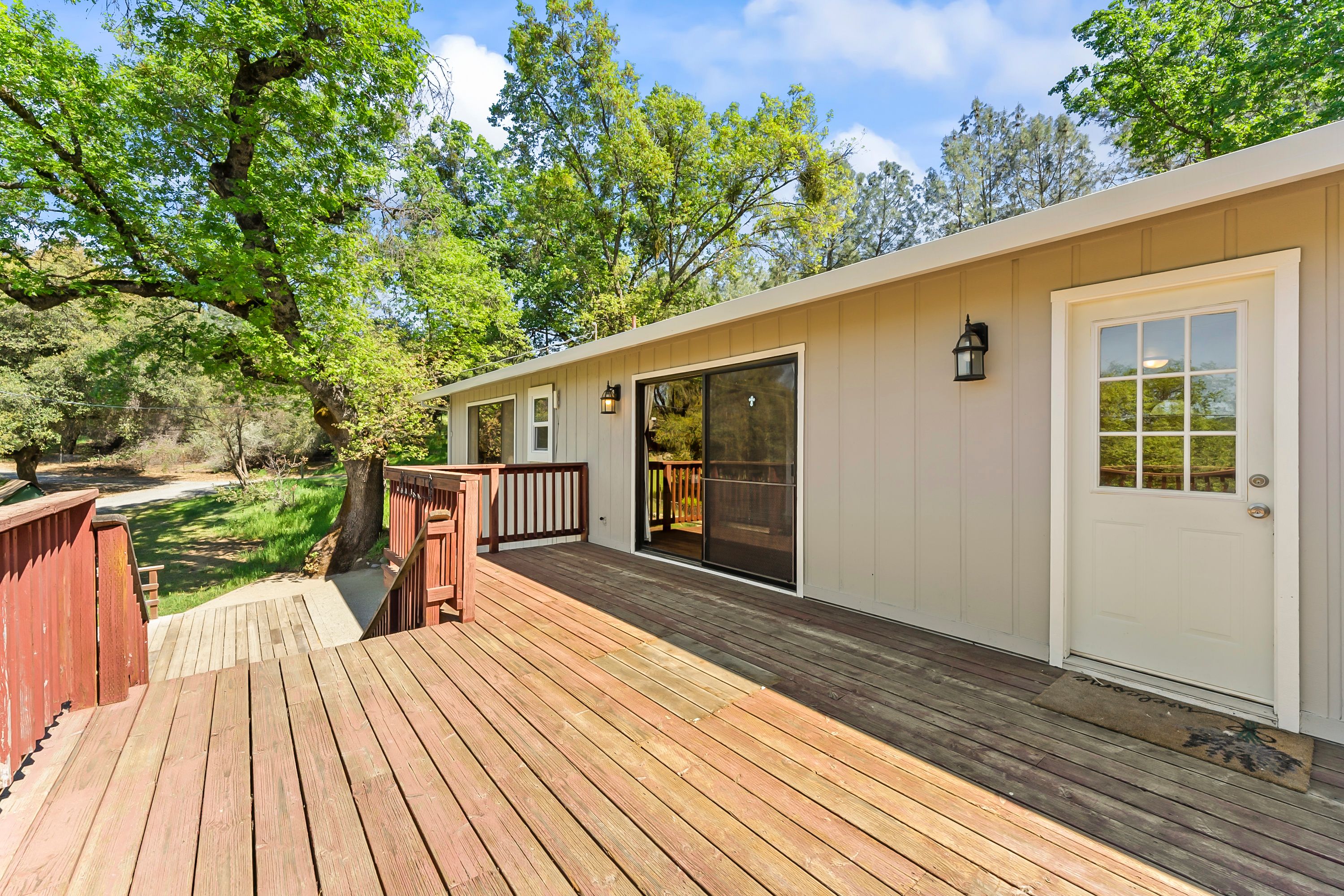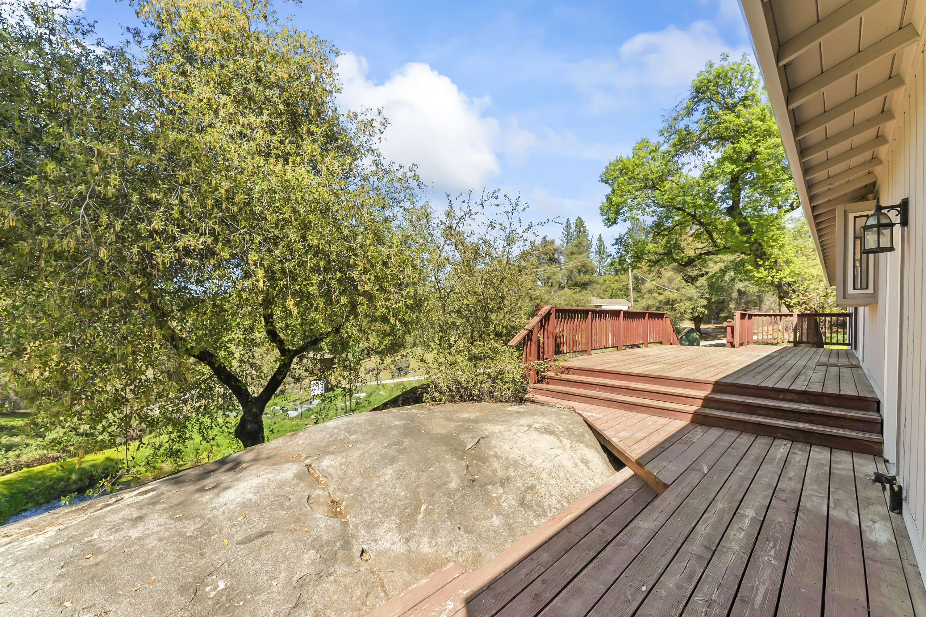 Country Charmer on 1.5 Acres with Pond & Granite Outcroppings. This inviting single-level home offers the perfect blend of comfort, usability, and foothill charm. Set on 1.5 beautiful acres, the property features a tranquil pond, massive granite boulders, and scenic views toward the river canyon. The home has been thoughtfully updated with a newer roof (installed this year), solar, and fresh interior and exterior paint. Inside, you'll find an open floor plan with solid surface flooring throughout and a spacious great room concept. The kitchen overlooks the land, pond, and garden, offering both functionality and picturesque views, along with significant added cabinetry for extra storage. Enjoy outdoor living from both the upper and lower decks, ideal for relaxing and taking in the surrounding landscape. A fenced garden with raised beds is ready for your seasonal planting, while the usable acreage provides ample space for animals or additional improvements. The property also includes a large attached garage and is conveniently located less than half a mile off Sandridge Road for easy access. Substantial retaining walls in the front create a blank canvas for your landscaping vision. Priced to sell this is a special opportunity. Inspections are available.