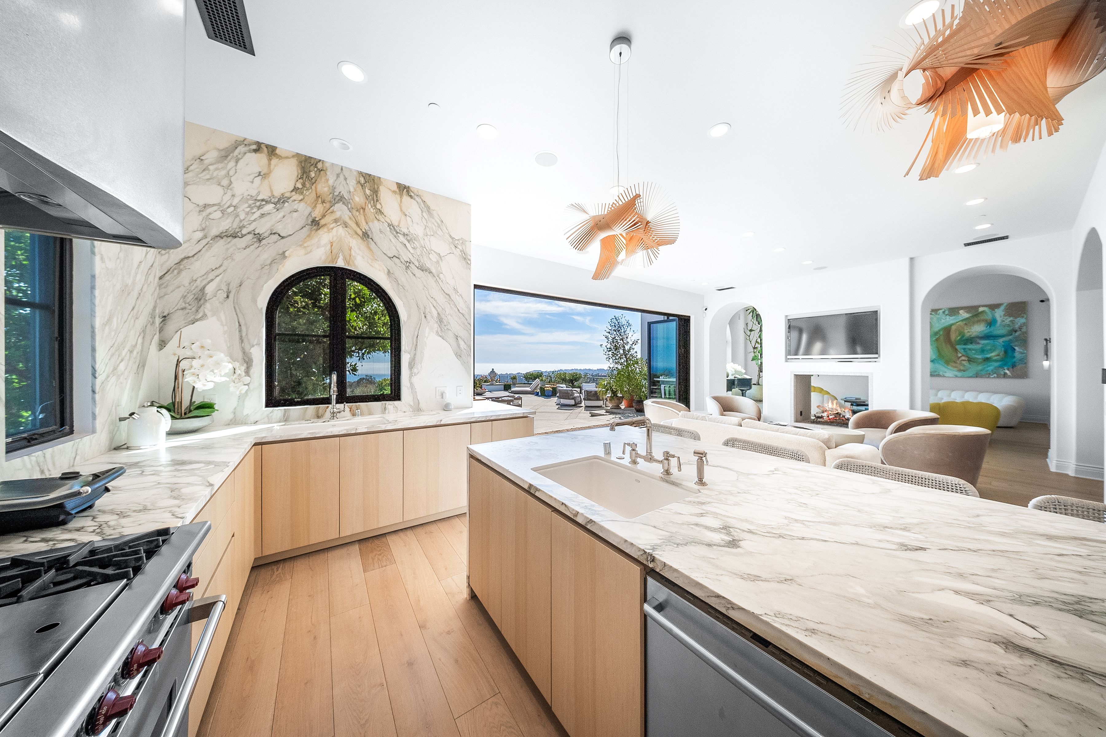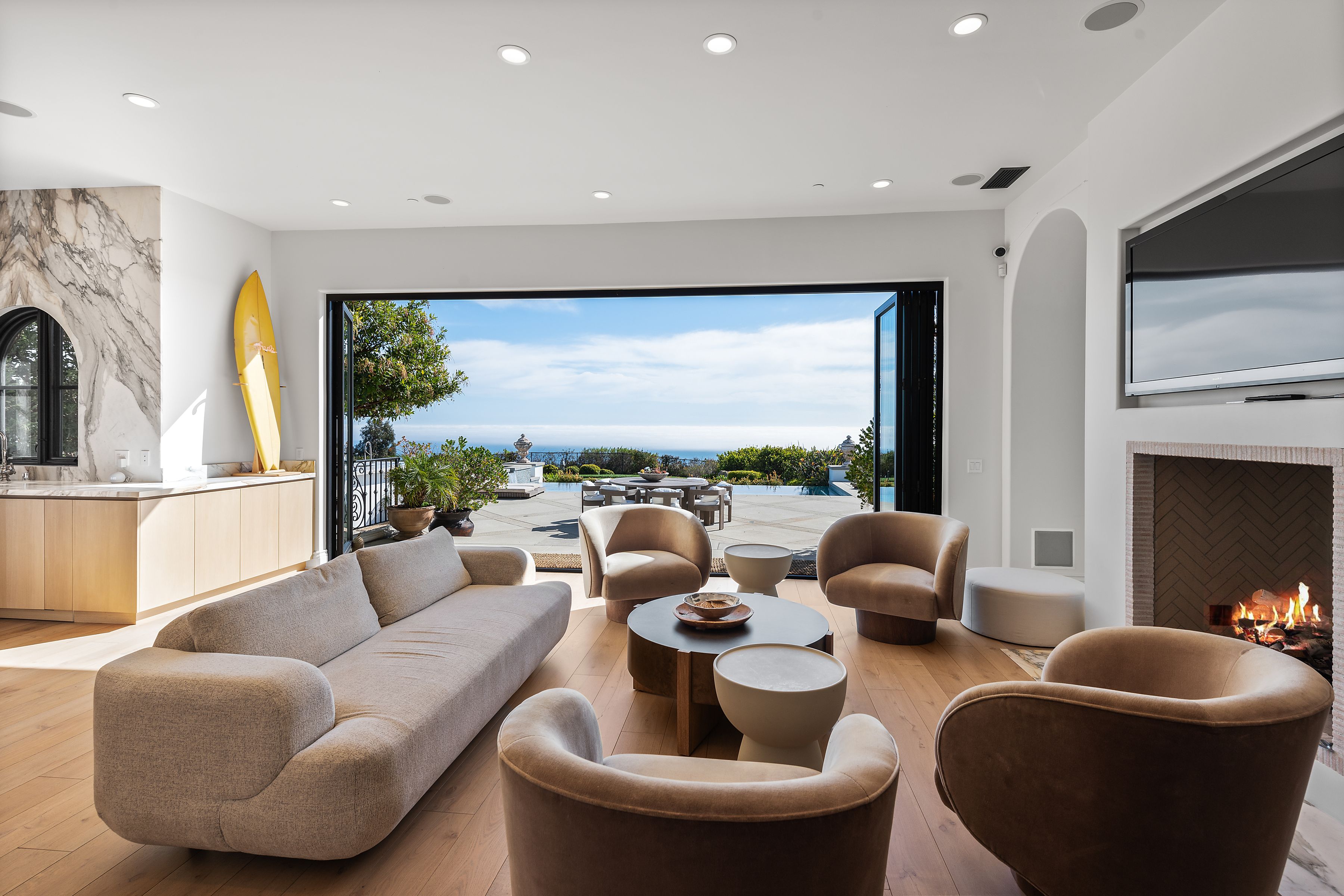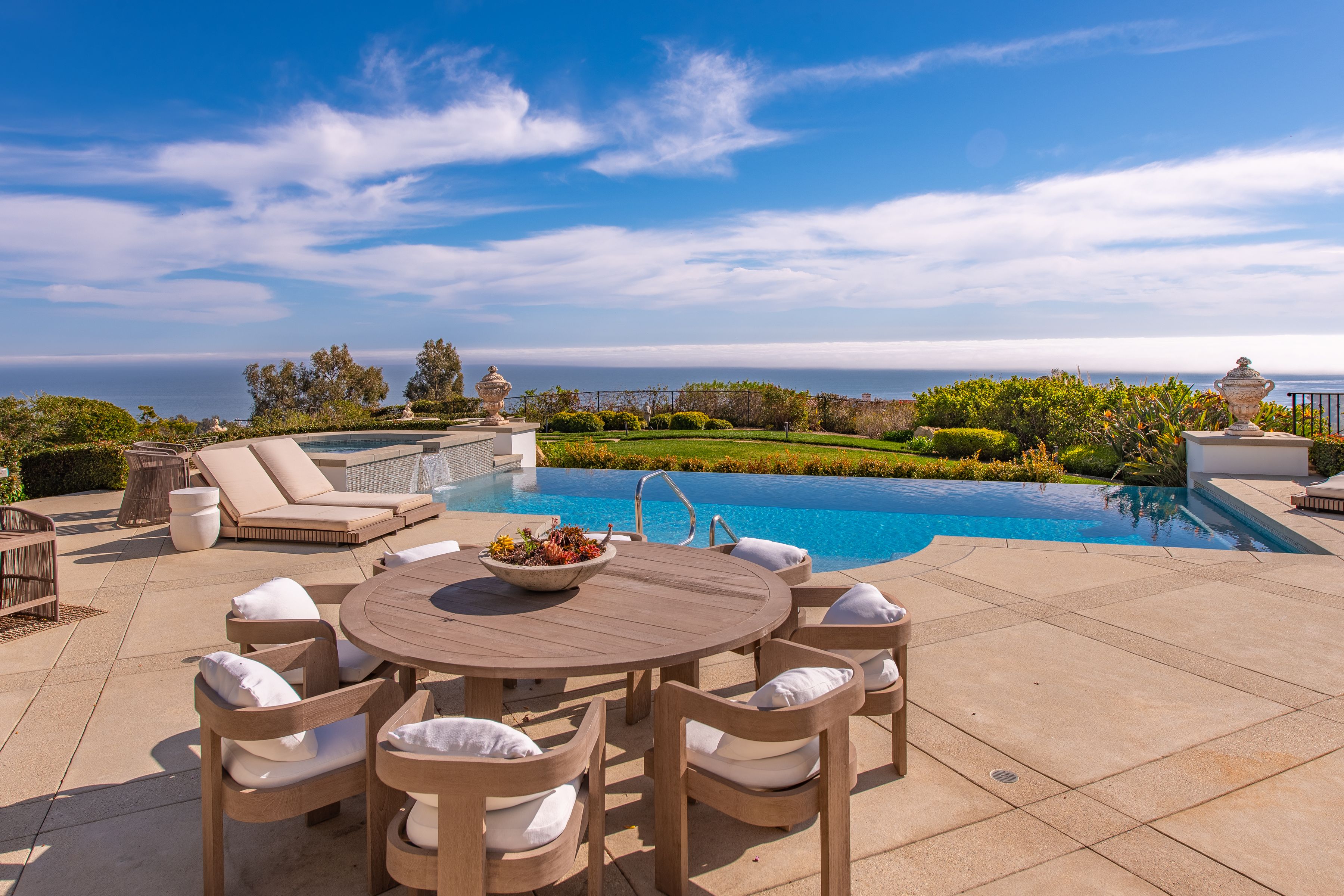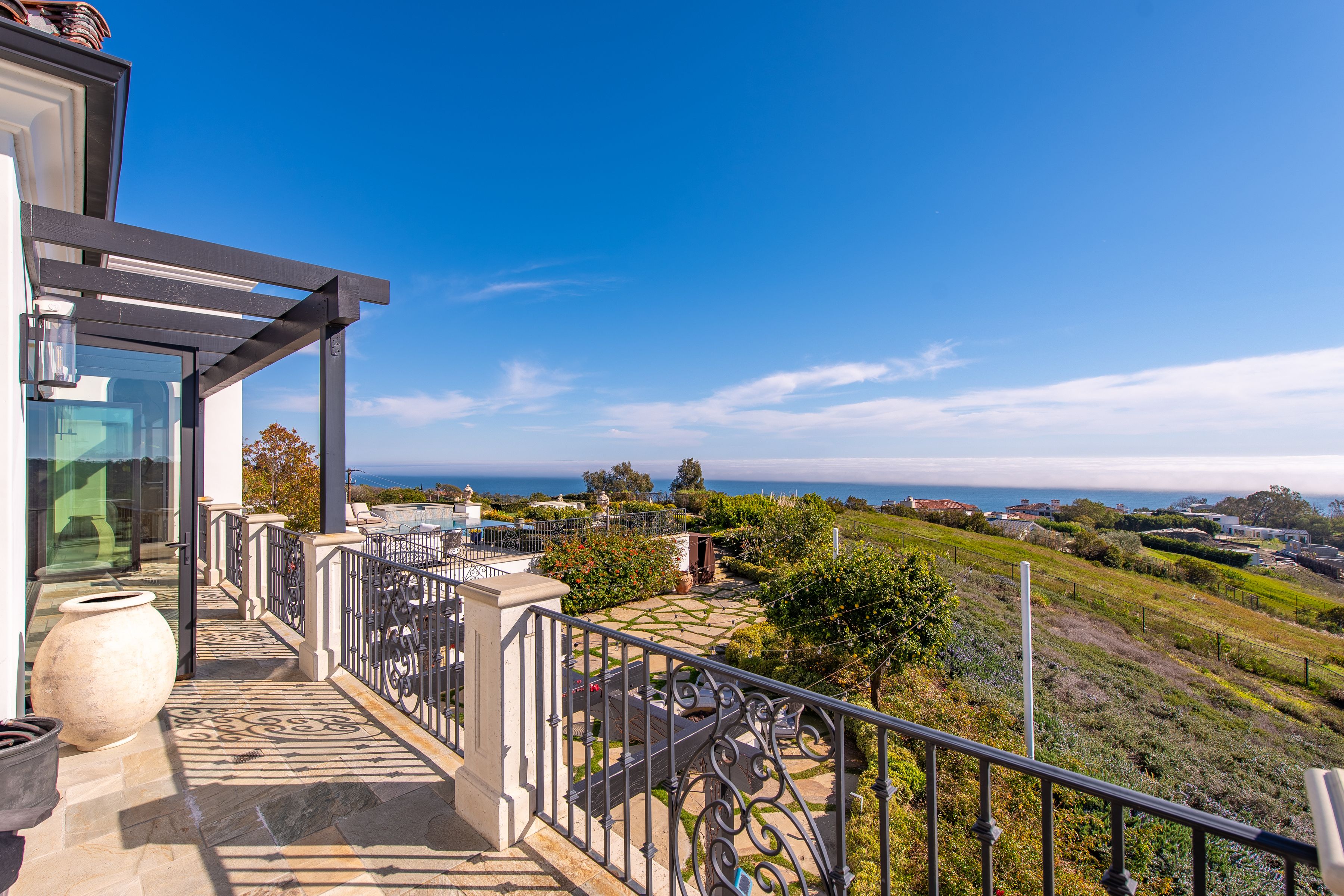 Perched behind gates on a private knoll along Malibu's prestigious hillside, Villa Victoria offers unobstructed ocean views, breathtaking sunsets, and an exquisite blend of cutting-edge technology and timeless coastal elegance. Moments from Paradise Cove, Point Dume, and iconic destinations such as Nobu, Geoffrey's, and Little Beach House, this estate delivers ultimate serenity with direct access to nearby beaches, hiking trails and the cascading Escondido Falls.Blending Mediterranean architecture with seamless indoor-outdoor living, the estate features soaring beamed ceilings, carved stone mantelpieces, French doors, and floor-to-ceiling windows framing the Pacific Ocean and Catalina Island. The open-concept design connects the living room, family room with fireplace, and a chef's kitchen to the expansive pool terrace, outdoor kitchen, dining areas, and day-and-night lit infinity pool with jacuzzi perfect for entertaining under the Malibu stars.The primary suite is a peaceful retreat, offering a fireplace, spa-inspired bathroom, generous walk-in closet, and a private wraparound deck with panoramic views. Five additional en-suite bedrooms, including a versatile study/library, provide elegant accommodations. Exceptional amenities include a fully equipped gym with Peloton, a luxurious home theater, and entertainment room with wet bar. Villa Victoria is a fully integrated smart home featuring a Control4 system managing lighting, security, heating, entertainment, and pool functions. High-speed Frontier fiber optics, dual Starlink satellite systems, indoor-outdoor Wi-Fi extenders, a SONOS integrated music system, motorized shades, Alexa voice assistants, and a dedicated server rack ensure seamless connectivity and convenience throughout. Climate control is optimized with NEST Learning Thermostats on each level. Wildfire protection includes early detection via Iridium satellite, high-pressure roof sprinklers, Rainbird perimeter irrigation, a 100-gallon fire retardant tank, and pool-fed backup water systems. Solar-powered dusk-to-dawn floodlights and smart air quality monitoring further enhance estate safety.Accessibility features include ADA-compliant design, a sleek pneumatic vacuum elevator, and an Acorn stairlift. The private motor court accommodates up to 50 vehicles, offering ample event hosting opportunities. Sustainability meets luxury with hidden roof-mounted solar panels, four Tesla Power walls, and a Generac backup generator, creating a self-sustaining micro-grid. The grounds include a lush English garden, organic fruit and vegetable plots, and a chicken coop providing fresh eggs daily. Just minutes away are world-class dining, shopping, and Pepperdine University's campus, as well as hiking and outdoor adventures through the Santa Monica Mountains.A true legacy estate, Villa Victoria embodies coastal serenity, innovative luxury, and timeless beauty and unparalleled offering in the heart of Malibu.