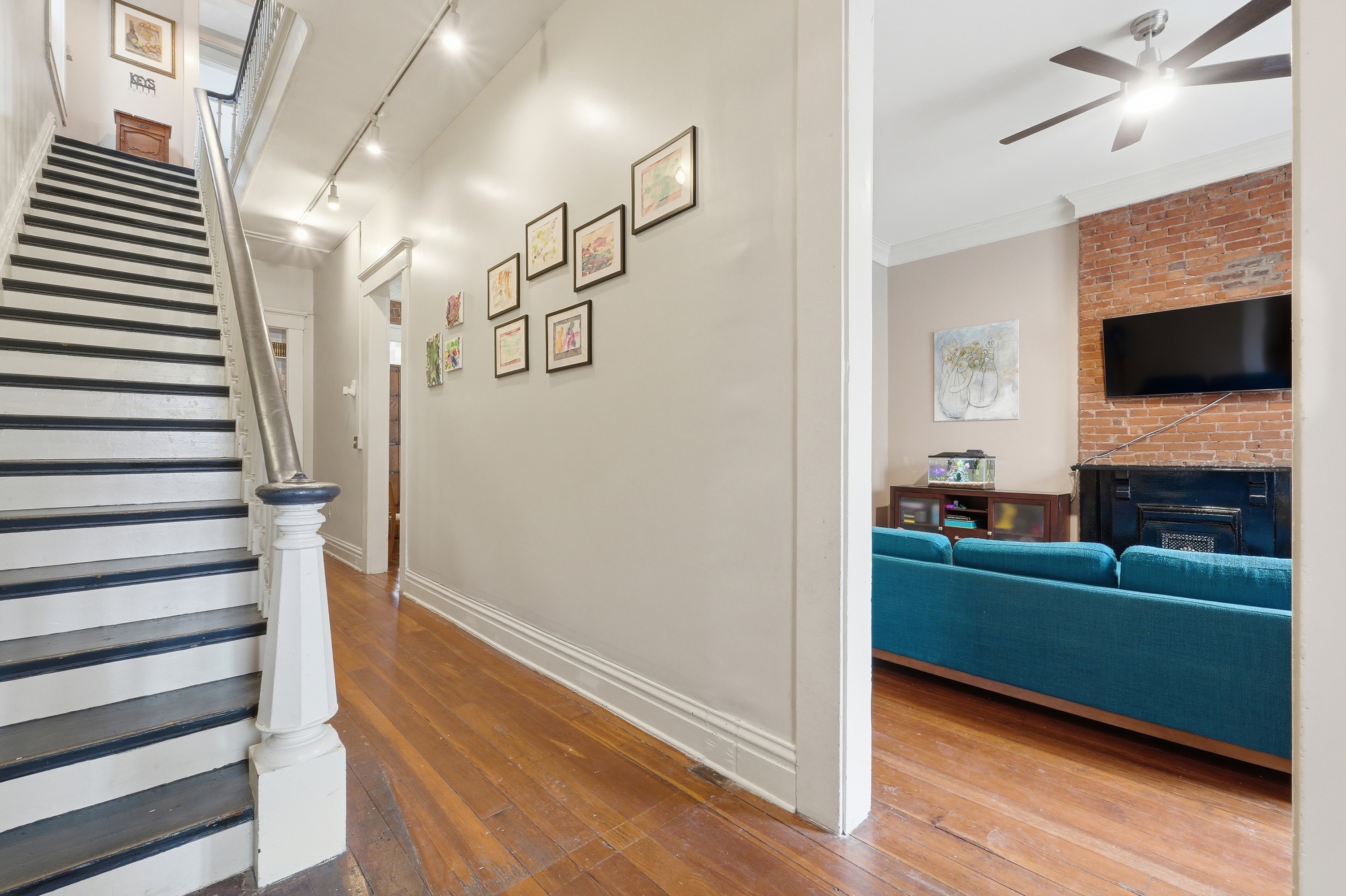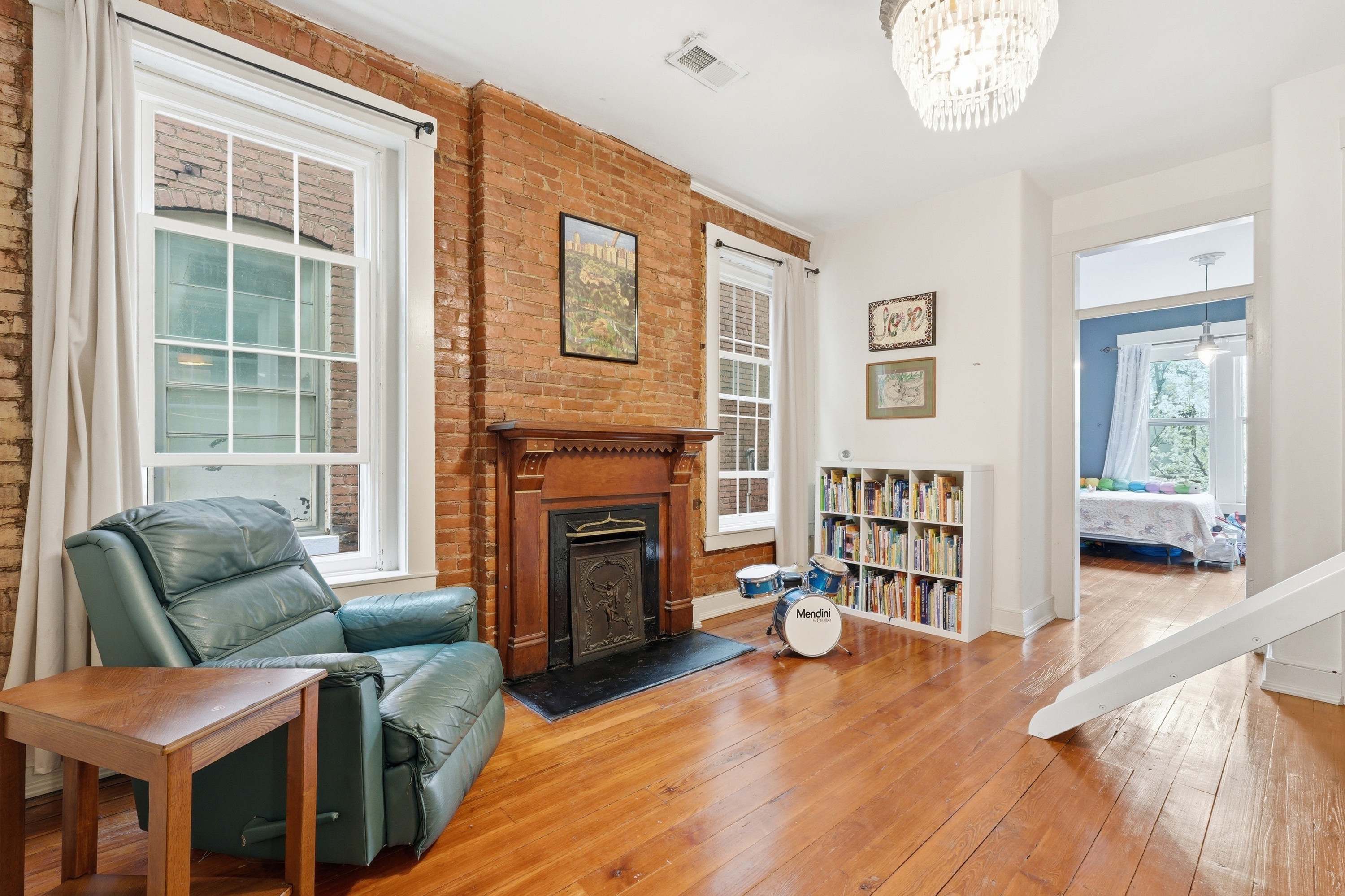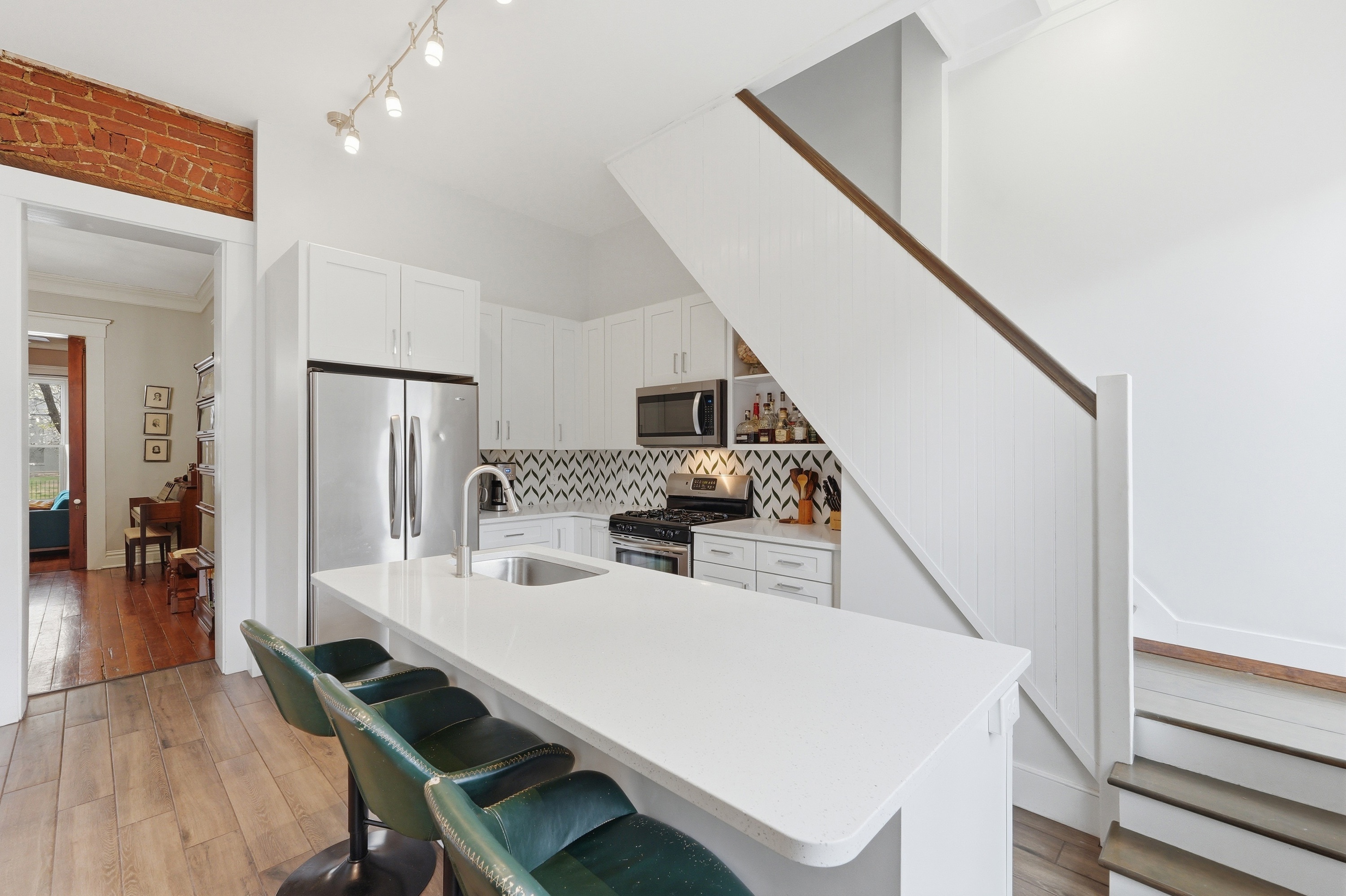 Historic charm meets modern living in the heart of Butchertown! This stunning three-story home blends timeless character with thoughtful updates and over 2,800 square feet of living space. Originally a duplex, the property has been beautifully converted into a spacious single-family residence featuring 4 bedrooms and 2.5 baths. Inside, you'll find gorgeous hardwood flooring throughout, exposed brick walls that add warmth and texture, and large windows that flood the home with natural light. The updated kitchen is designed for both style and function with white cabinetry, stainless steel appliances, a tile backsplash, and a center island perfect for cooking or gathering. Three of the bedrooms feature decorative fireplaces, enhancing the home's historic charm and unique character. With three levels of living space and architectural details throughout, this home offers the perfect blend of historic appeal and modern comfort. Ideally located just a block from Butchertown Grocery and the vibrant NuLu district, you'll enjoy easy access to some of Louisville's best dining, shopping, and entertainment. Don't miss the opportunity to own a piece of Butchertown history!