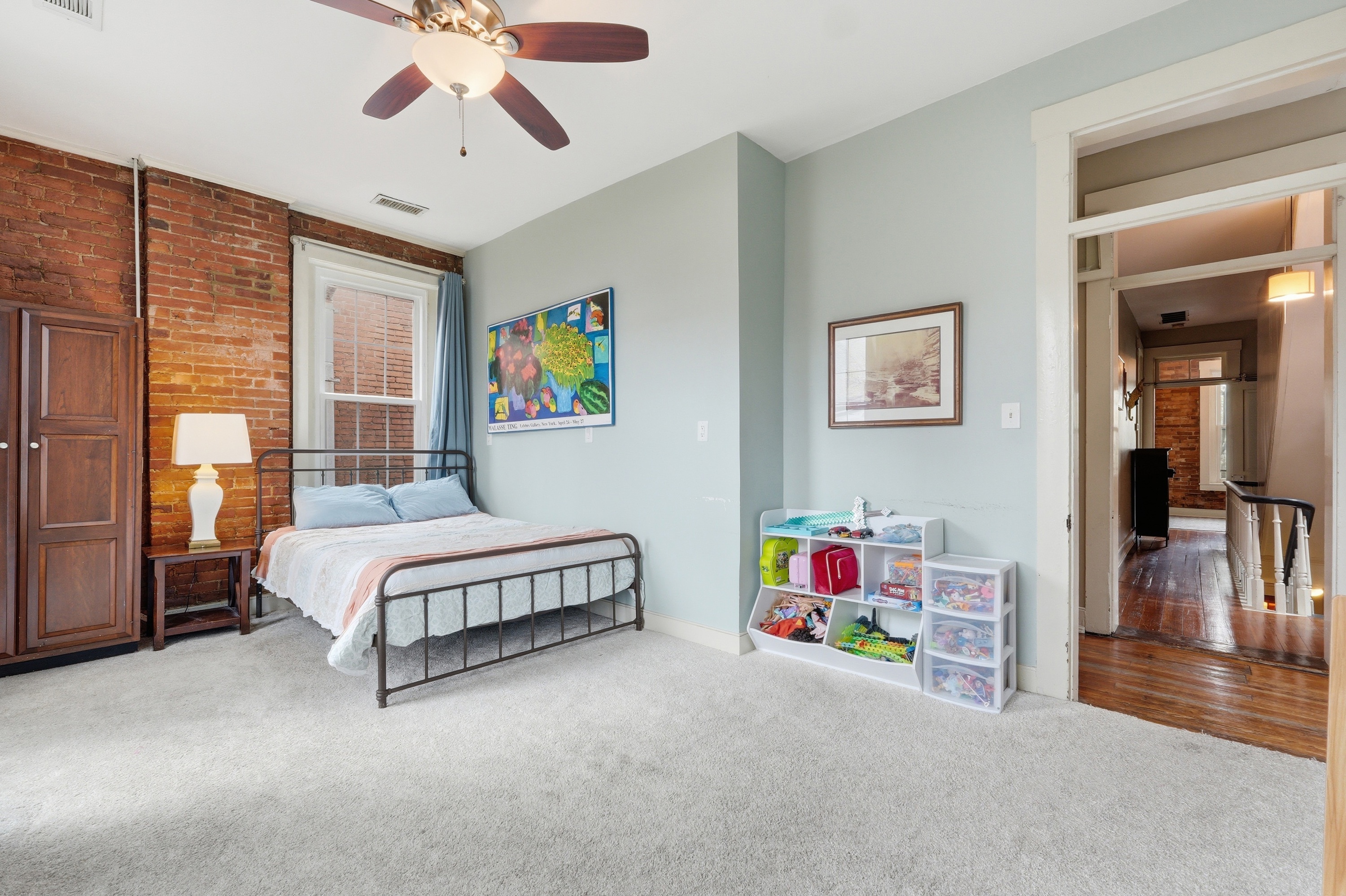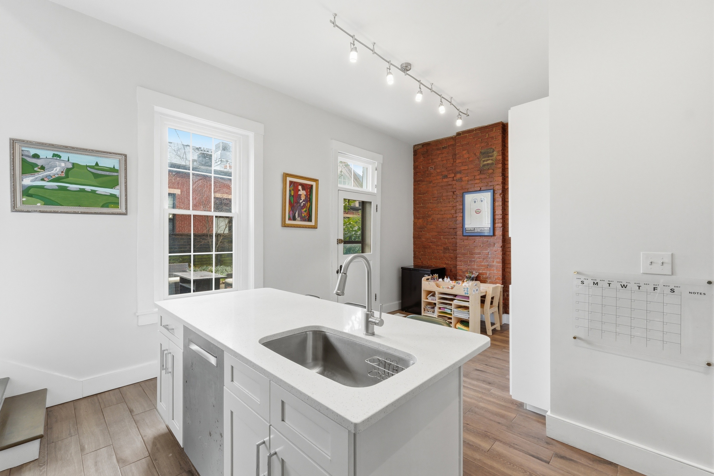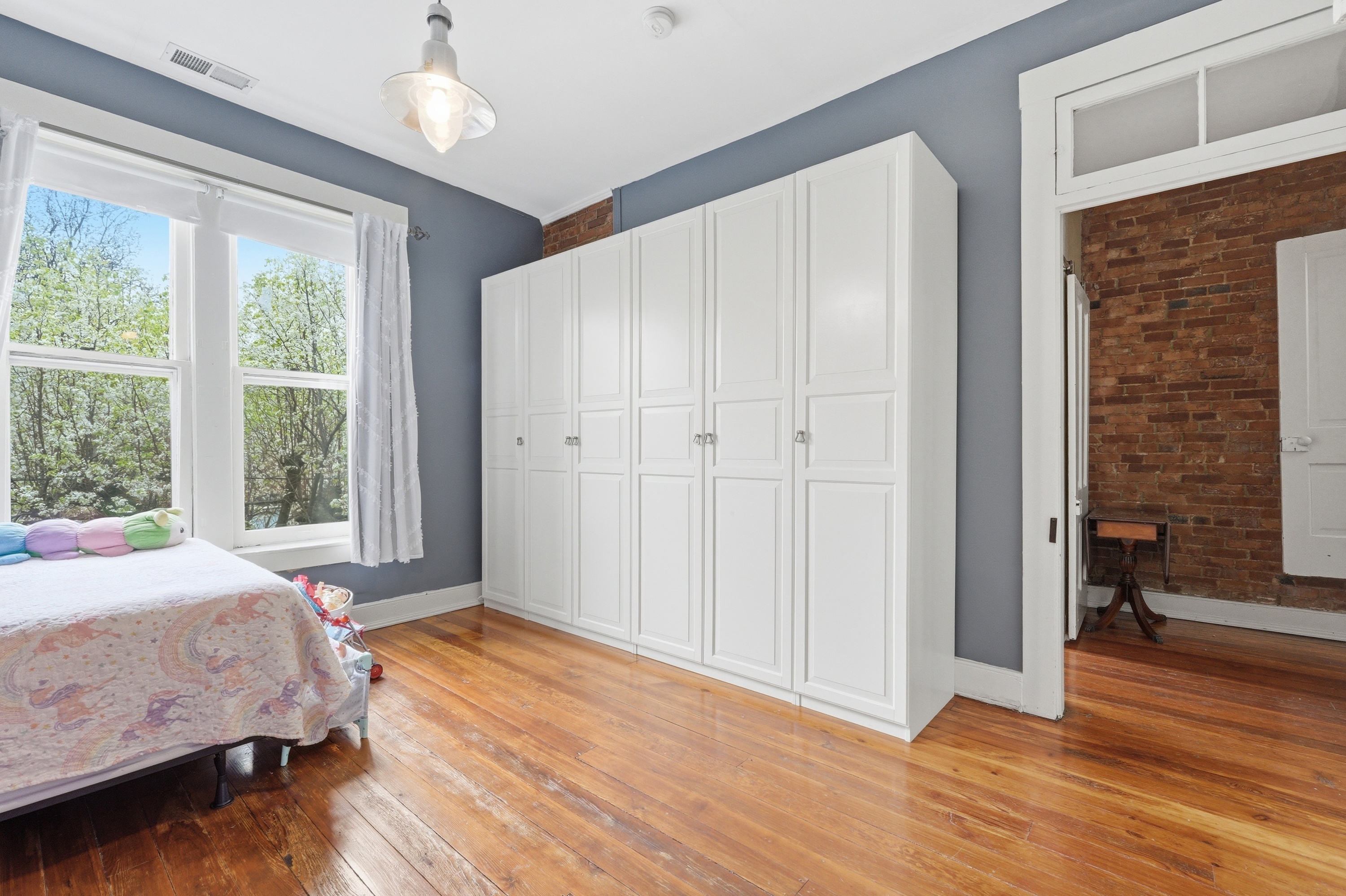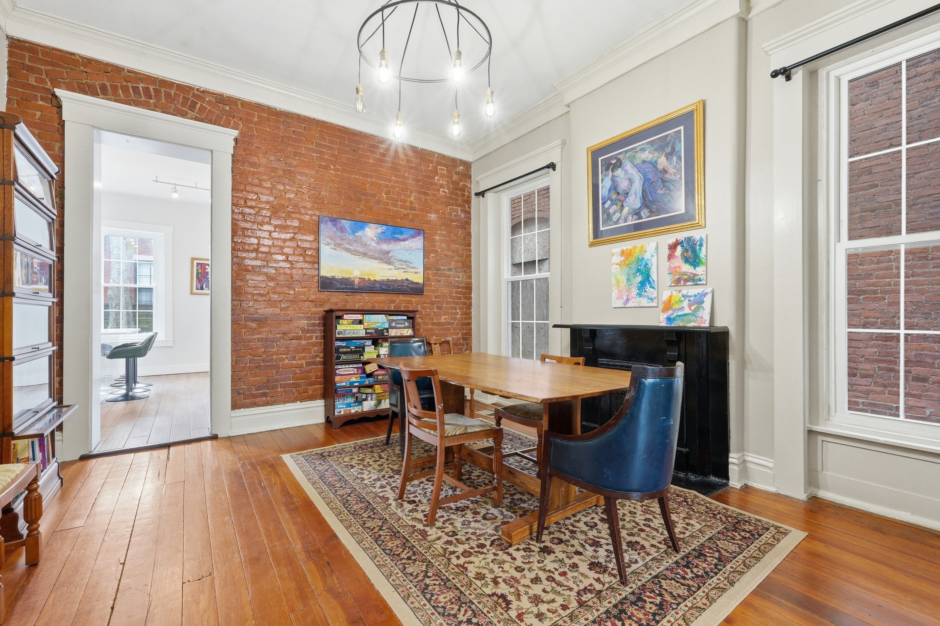 Historic charm meets modern living in the heart of Butchertown! This stunning three-story home blends timeless character with thoughtful updates and over 2,800 square feet of living space. Originally a duplex, the property has been beautifully converted into a spacious single-family residence featuring 4 bedrooms and 2.5 baths. Inside, you'll find gorgeous hardwood flooring throughout, exposed brick walls that add warmth and texture, and large windows that flood the home with natural light. The updated kitchen is designed for both style and function with white cabinetry, stainless steel appliances, a tile backsplash, and a center island perfect for cooking or gathering. Three of the bedrooms feature decorative fireplaces, enhancing the home's historic charm and unique character. With three levels of living space and architectural details throughout, this home offers the perfect blend of historic appeal and modern comfort. Ideally located just a block from Butchertown Grocery and the vibrant NuLu district, you'll enjoy easy access to some of Louisville's best dining, shopping, and entertainment. Don't miss the opportunity to own a piece of Butchertown history!
