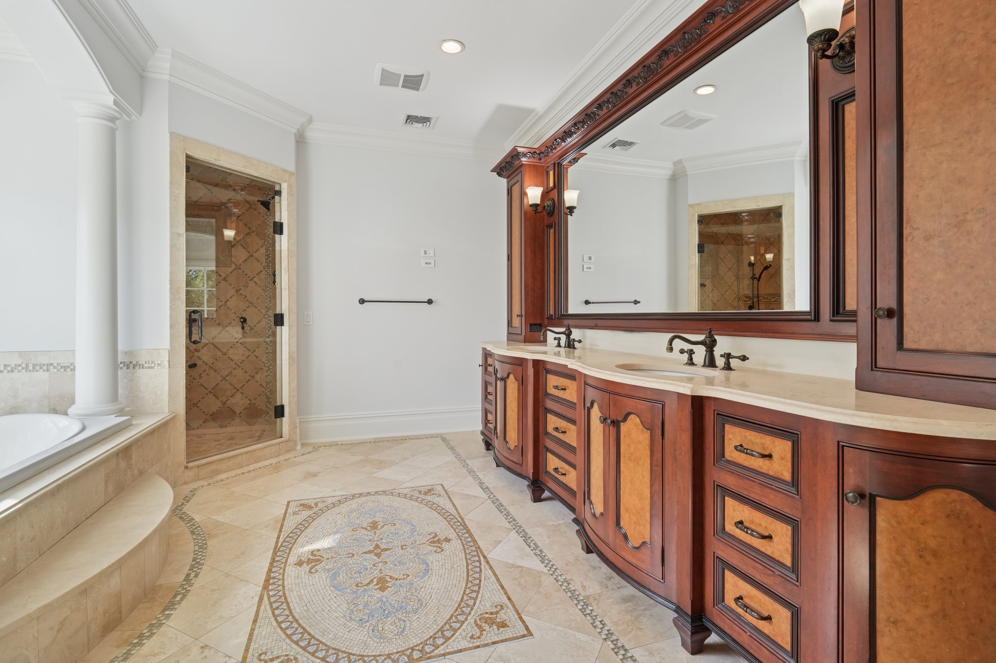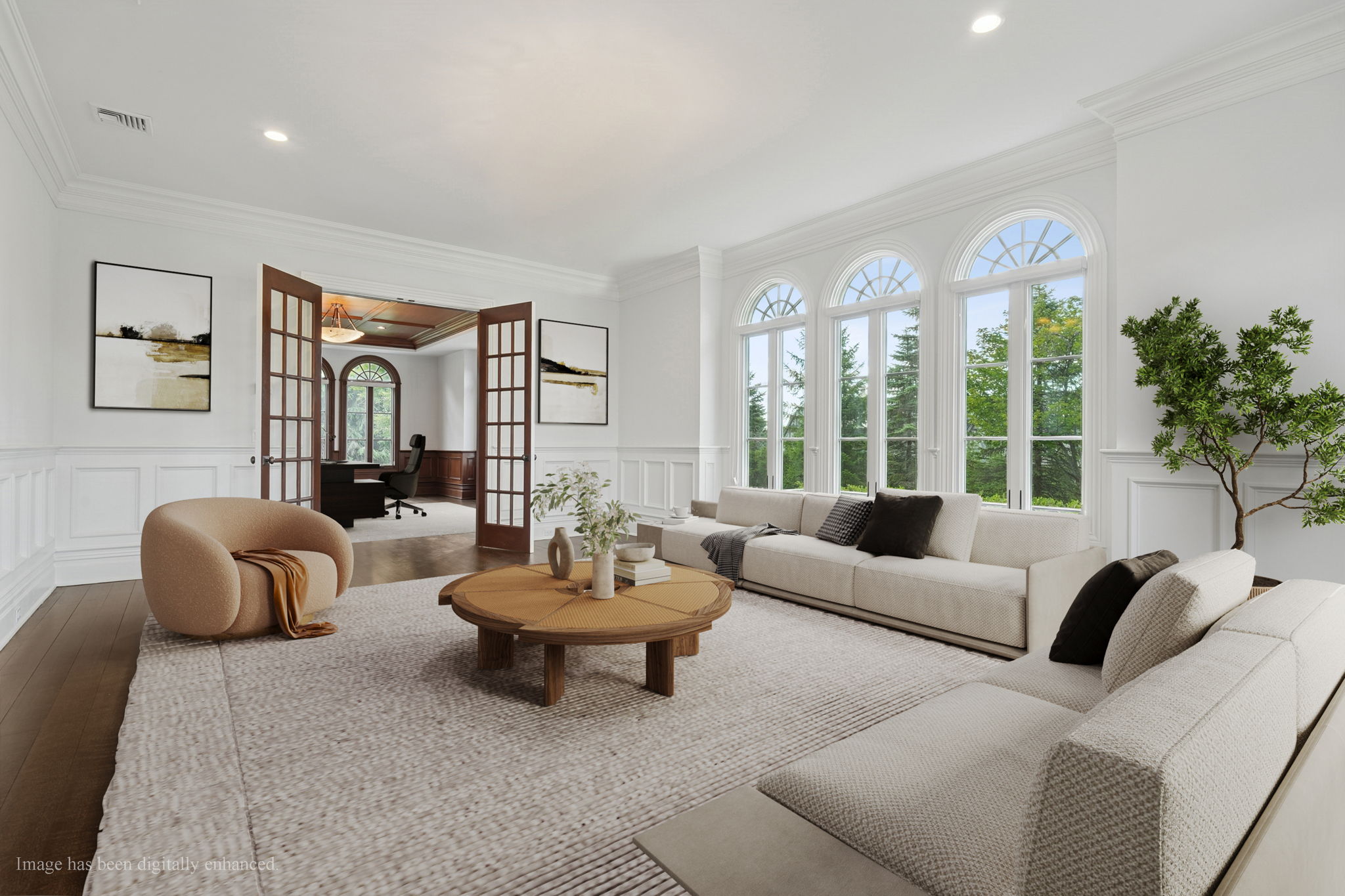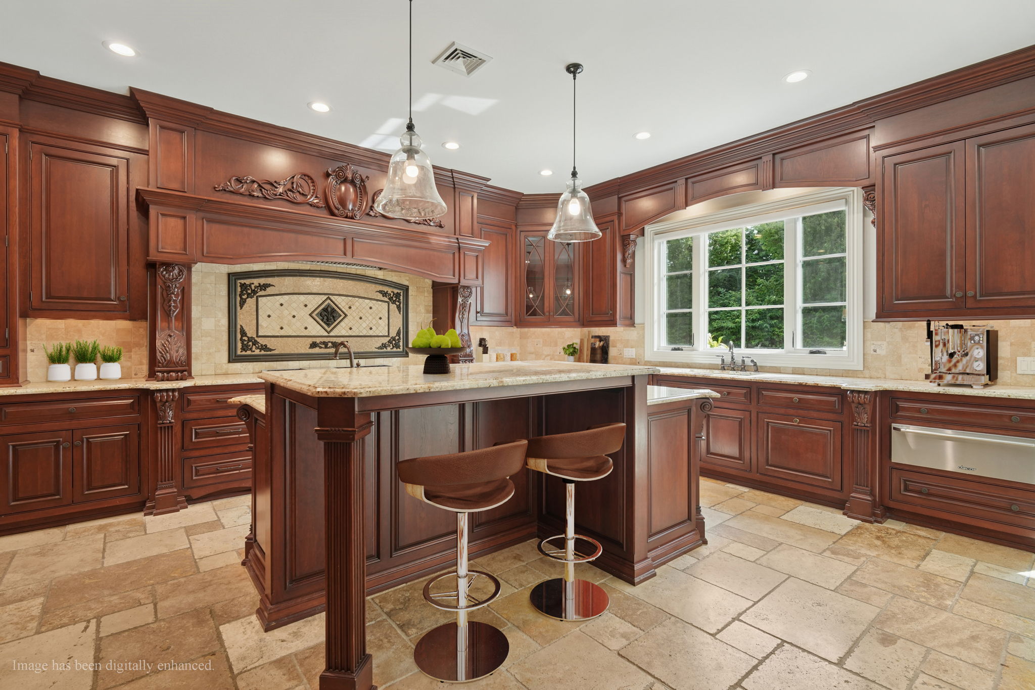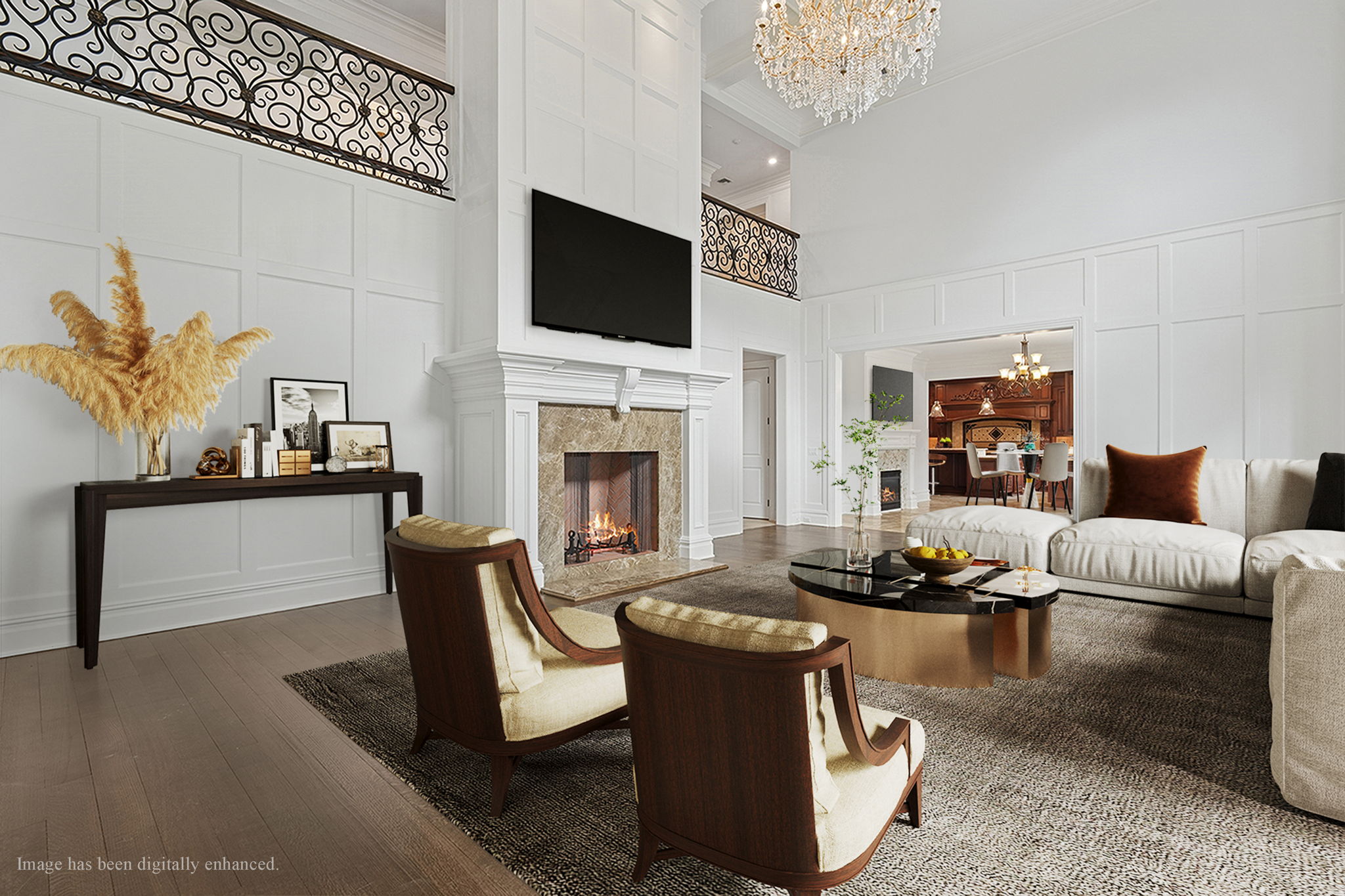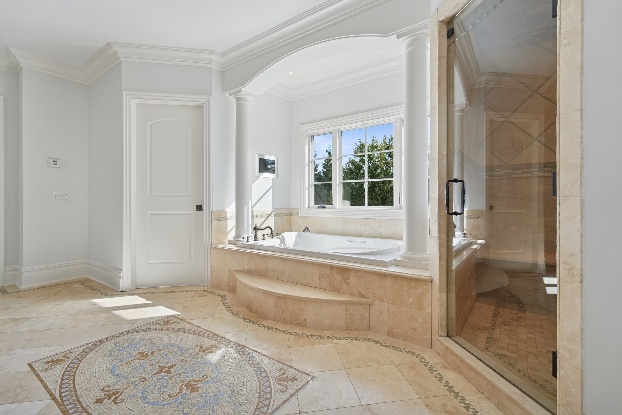 A European-inspired masterpiece blending French Chateau elegance with Mediterranean warmth. This stately Cresskill estate features a soaring double-height foyer with imported marble floors, a grand staircase, and crystal chandelier. The chef's kitchen boasts cherry wood cabinetry, Viking appliances, a granite island, and butler's pantry. Entertain effortlessly in the dramatic great room with two-story windows, paneled fireplace, and seamless indoor-outdoor flow. A richly appointed library with mahogany millwork and fireplace offers the perfect work-from-home space. The luxurious primary suite includes a private lounge, dual fireplaces, walk-in closets, and a spa bath with soaking tub and marble shower. The fully finished lower level is an entertainer's dream—featuring a theater, gym, wet bar, and wine cellar. Step outside to a private resort-style backyard with heated pool, spa, and travertine patio. Located just 25 minutes from NYC, this home is timeless, turnkey, and truly one of a kind.