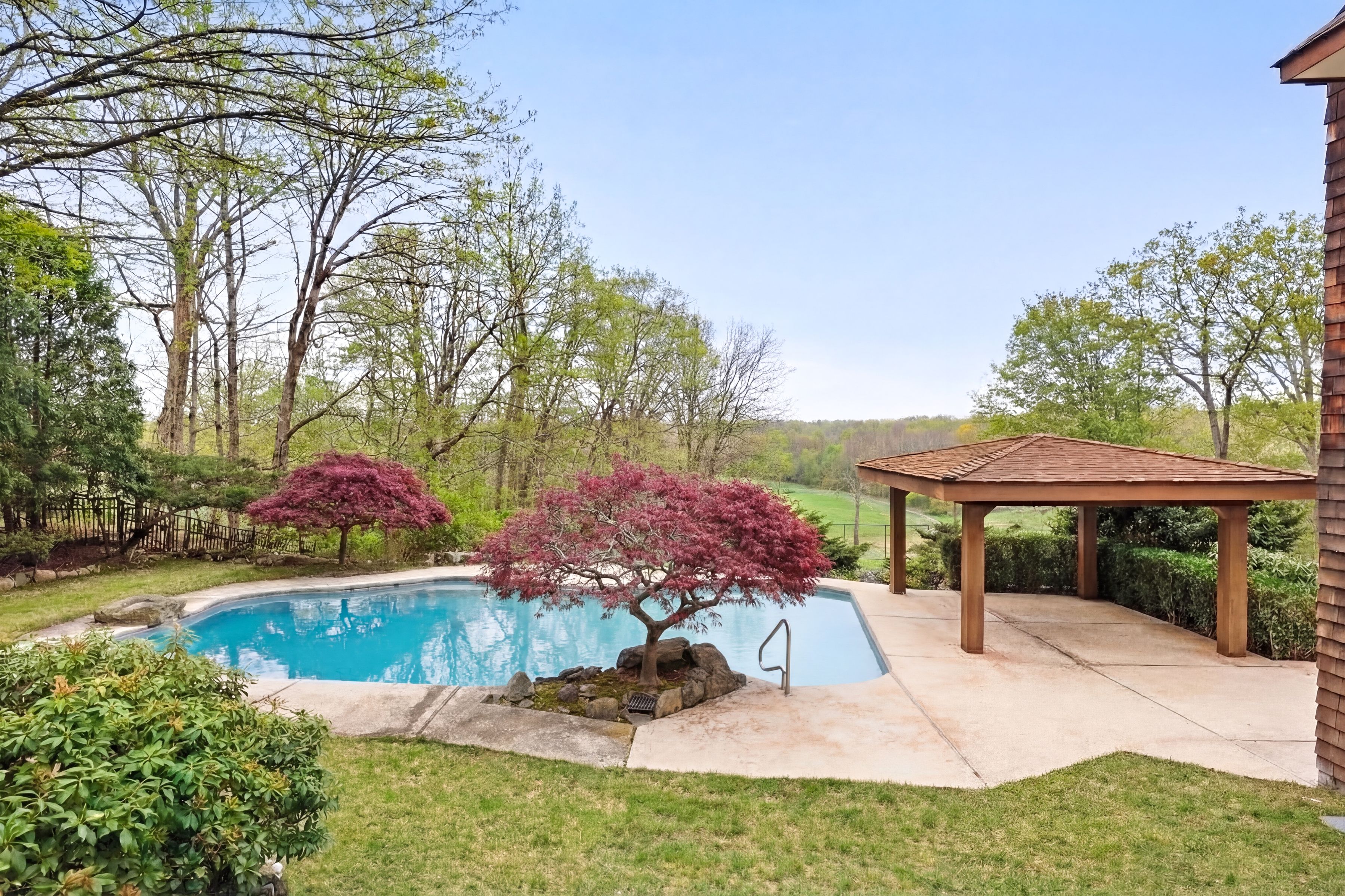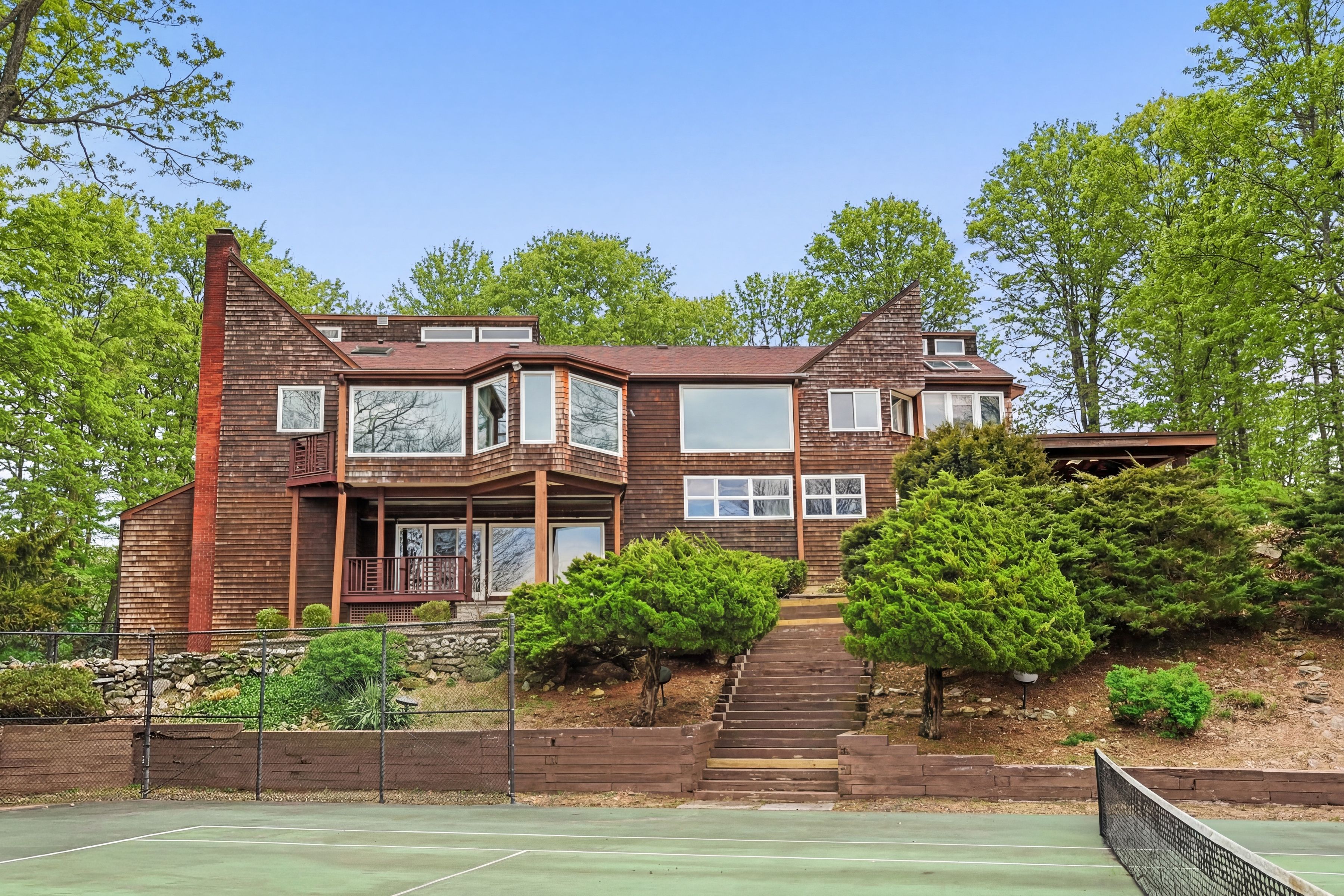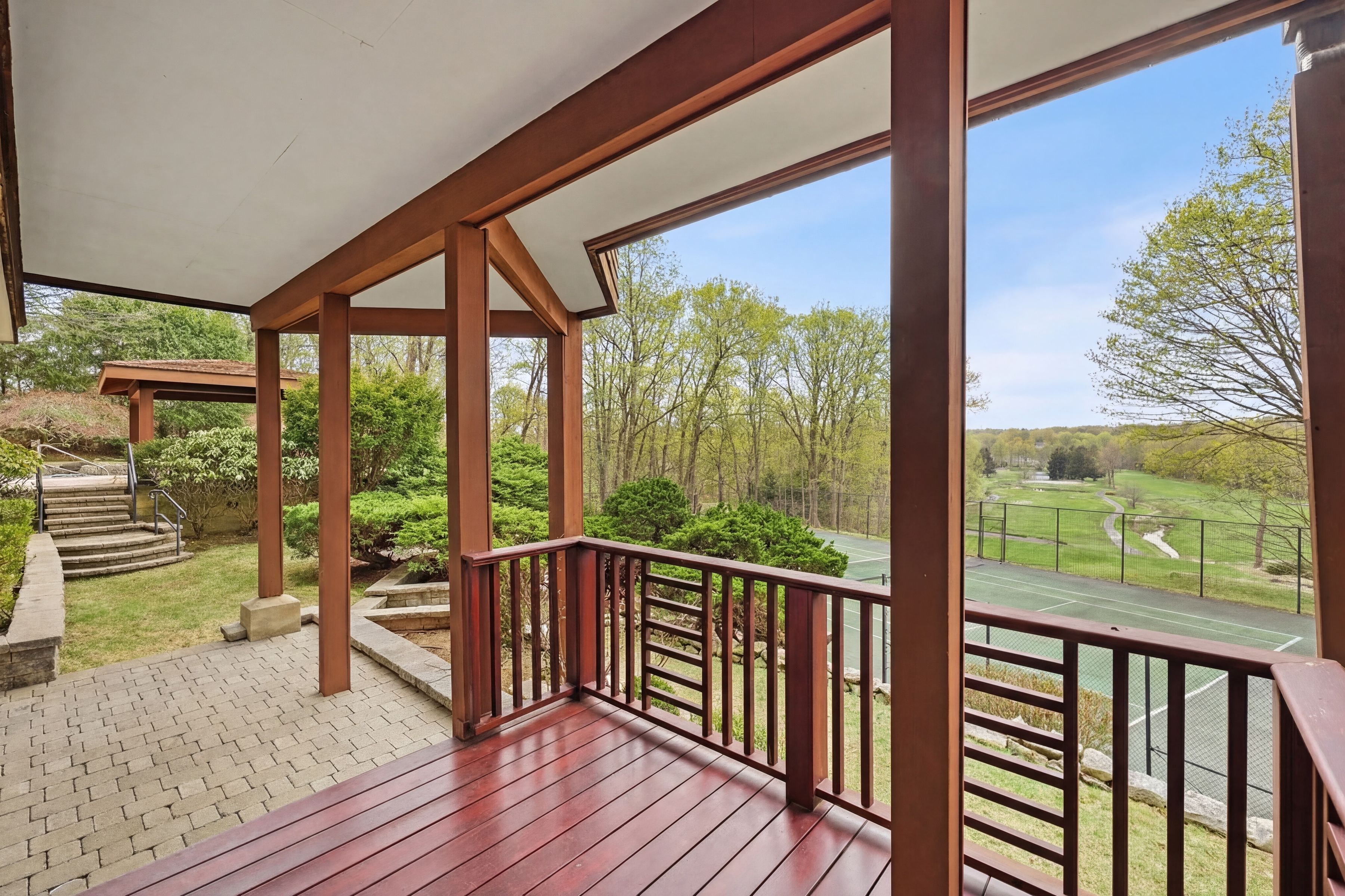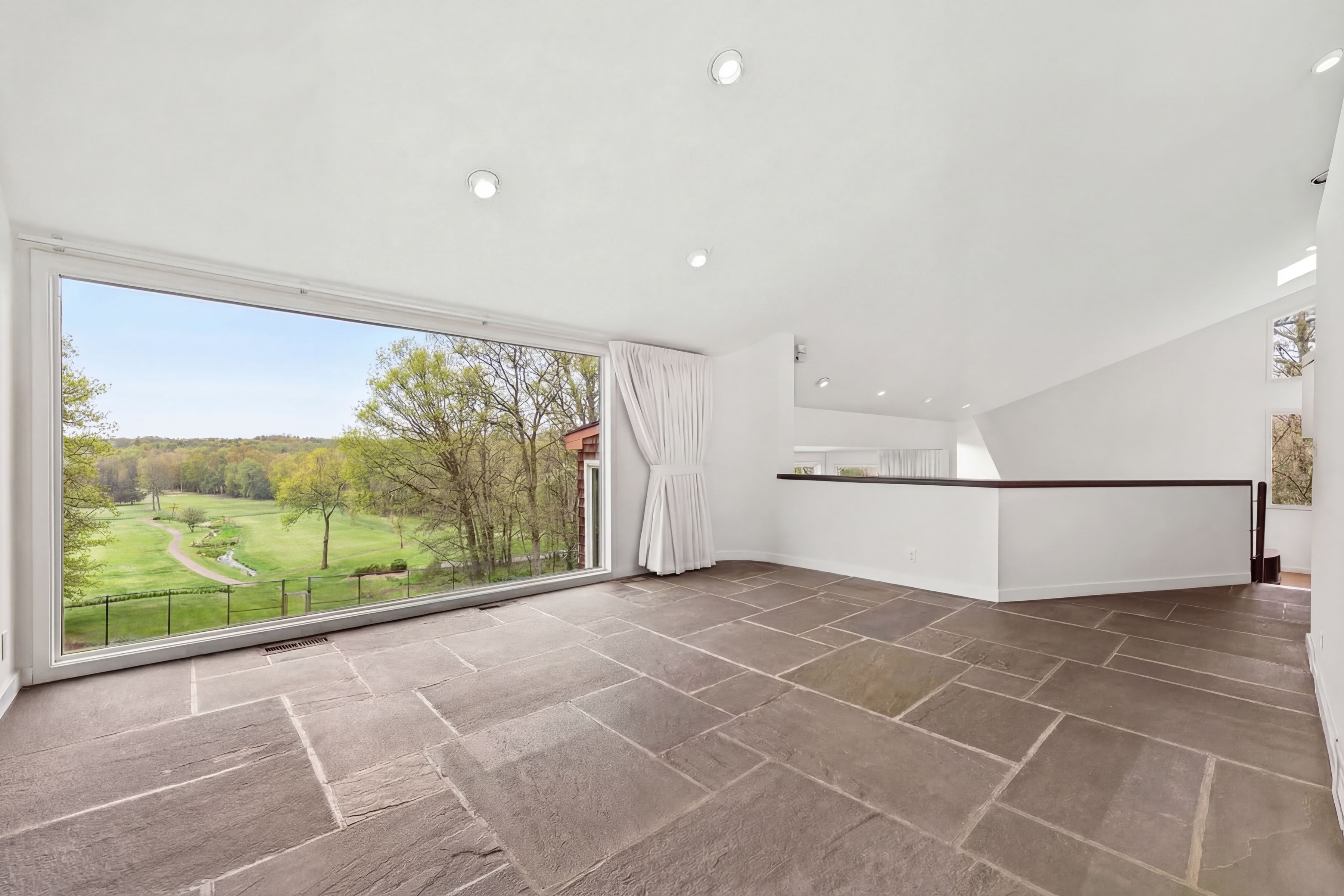 Overlooking the 5th tee of Burning Tree Country Club with sweeping golf course views, this distinctive 6,330 SF, 5-bedroom, 4½-bath residence comes to market for the first time in 49 years. Set on 2.15 private acres, the home blends mid-century modern style with sophistication and comfort. Walls of glass, soaring ceilings and abundant natural light draw the outdoors in, creating a seamless connection to the surrounding landscape. Every principal room captures golf course views. The open floor plan flows effortlessly through generously proportioned living spaces, ideal for families or downsizers seeking space without compromise. Highlights include a chef's kitchen with fireplace, breakfast room overlooking the pool and course, family room, and dining room designed to host large gatherings. The living room offers expansive walls for art and a fireside seating area, while the library with fireplace and wet bar provides a quiet retreat. The privately positioned primary suite is accompanied by 4 additional bedrooms, 2 ensuite. A lower-level playroom doubles as an office or exercise room. A newer roof, HVAC system, and whole-house generator enhance efficiency and comfort. Resort-style outdoor amenities include a free-form pool with cabana, DecoTurf tennis court, and multiple decks. The fenced backyard provides space for pets. Located in the Burning Tree community, less than 15 minutes from downtown Greenwich, the train station, the Merritt Parkway, and premier public and private schools, the home offers privacy within a true neighborhood atmosphere where children play and neighbors gather along quiet streets.