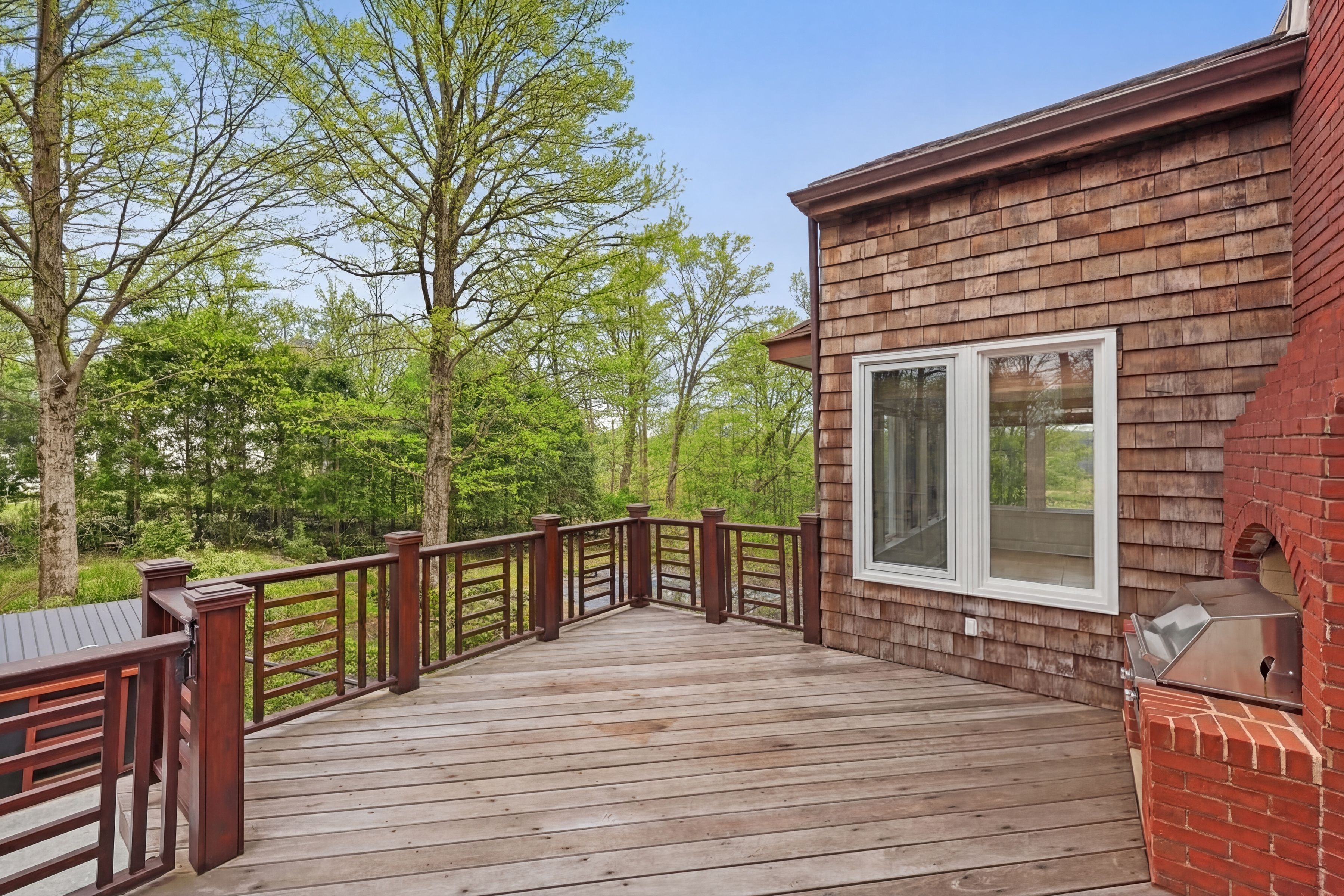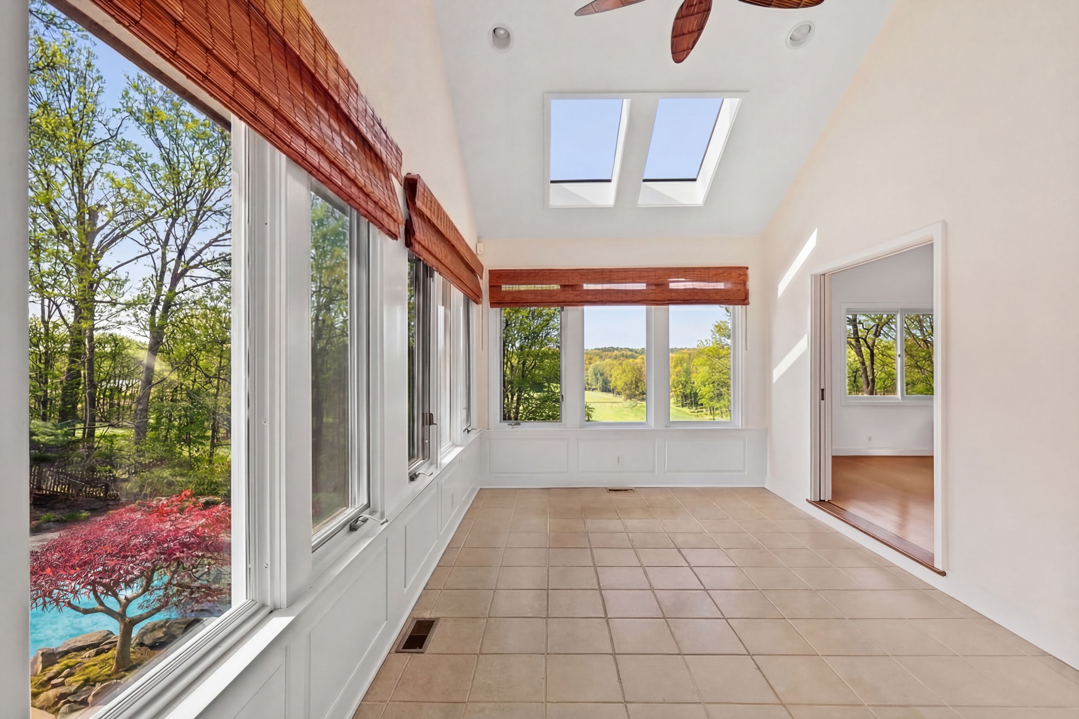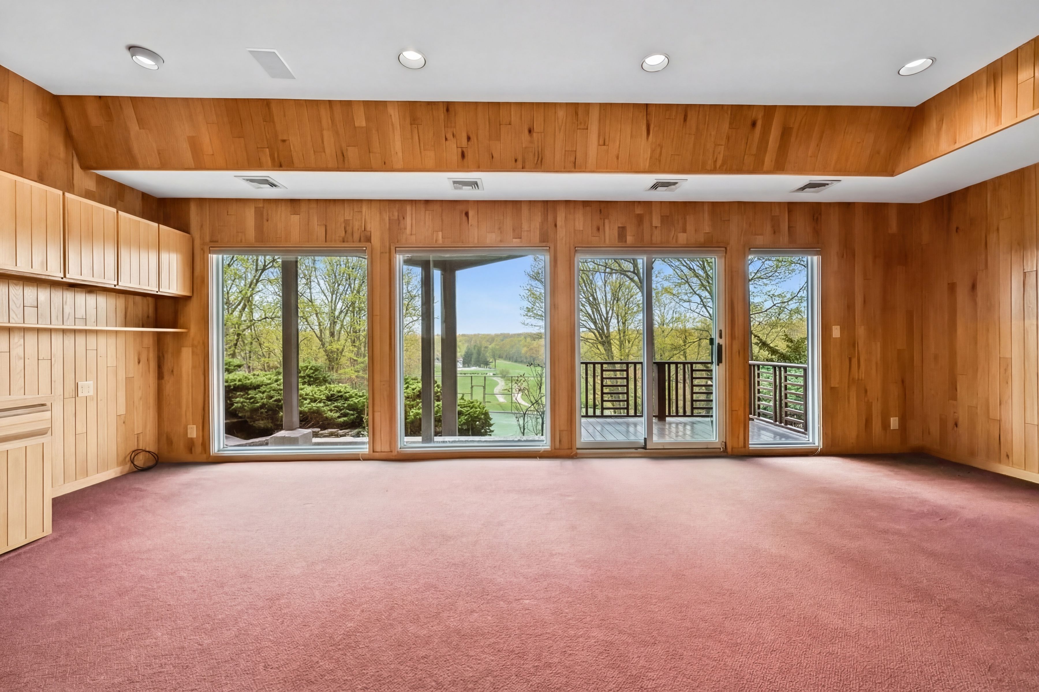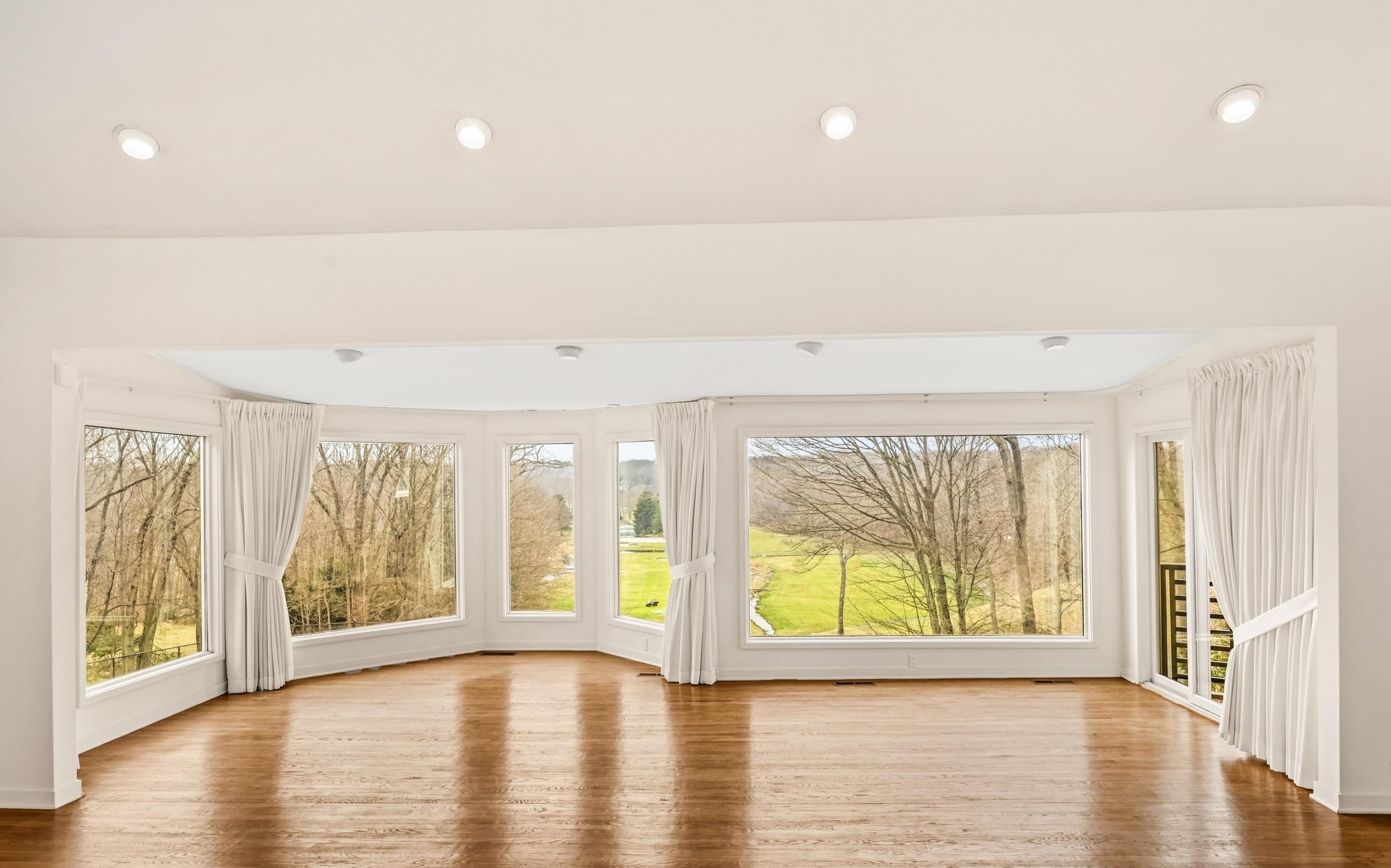 Overlooking the 5th tee of Burning Tree Country Club with sweeping golf course views, this distinctive 6,330 SF, 5-bedroom, 4½-bath residence comes to market for the first time in 49 years. Set on 2.15 private acres, the home blends mid-century modern style with sophistication and comfort. Walls of glass, soaring ceilings and abundant natural light draw the outdoors in, creating a seamless connection to the surrounding landscape. Every principal room captures golf course views. The open floor plan flows effortlessly through generously proportioned living spaces, ideal for families or downsizers seeking space without compromise. Highlights include a chef's kitchen with fireplace, breakfast room overlooking the pool and course, family room, and dining room designed to host large gatherings. The living room offers expansive walls for art and a fireside seating area, while the library with fireplace and wet bar provides a quiet retreat. The privately positioned primary suite is accompanied by 4 additional bedrooms, 2 ensuite. A lower-level playroom doubles as an office or exercise room. A newer roof, HVAC system, and whole-house generator enhance efficiency and comfort. Resort-style outdoor amenities include a free-form pool with cabana, DecoTurf tennis court, and multiple decks. The fenced backyard provides space for pets. Located in the Burning Tree community, less than 15 minutes from downtown Greenwich, the train station, the Merritt Parkway, and premier public and private schools, the home offers privacy within a true neighborhood atmosphere where children play and neighbors gather along quiet streets.