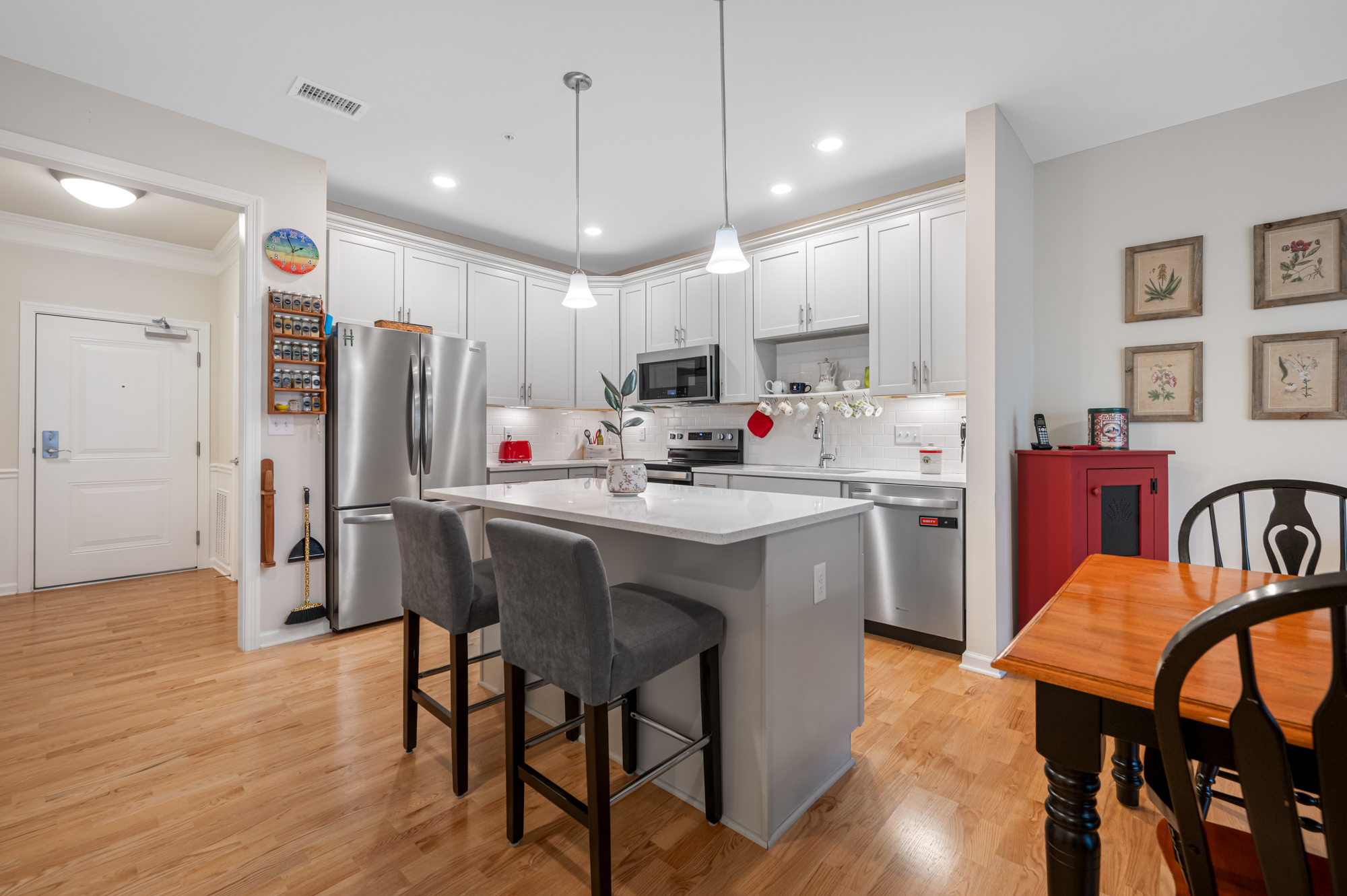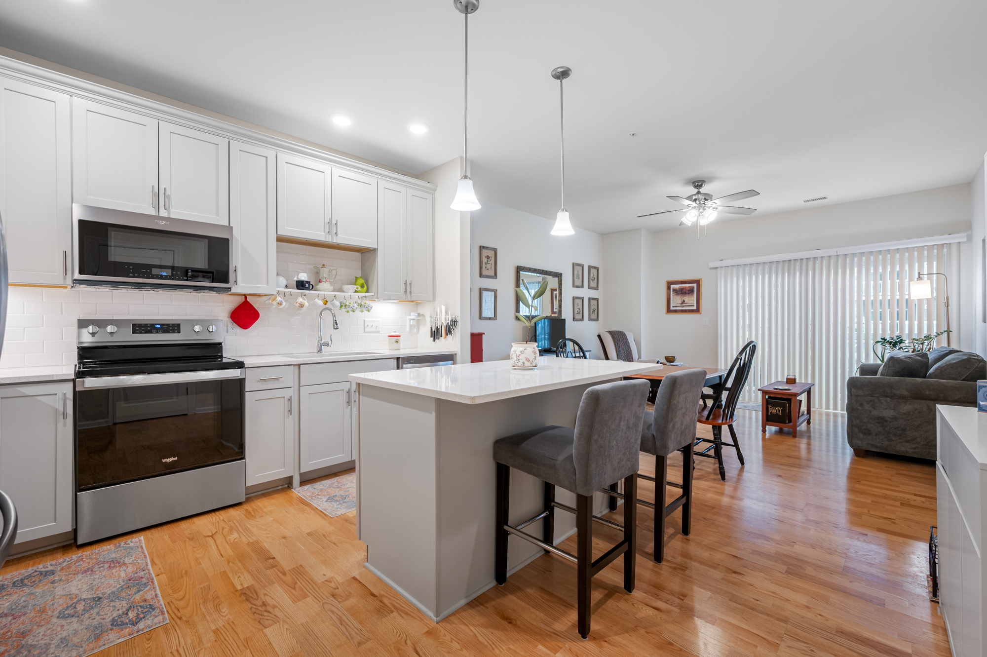 Are you 55+ and seeking carefree living in a vibrant, active adult community? This impeccably maintained, move-in-ready 1st-floor condo offers an impressive list of $32,000 in thoughtful upgrades, inc. shaker cabinets, stylish backsplash, hardwood floors, decorative molding, & so much more! A flexible bonus room w/French doors provides the perfect space for a home office, reading retreat, or guest room. The king-sized master bedroom features a spacious walk-in closet w/extra shelves, while the eat-in kitchen has a pantry plus a spacious center island w/pendant lights perfect for quick snacks or dinner prep. Many rooms are cable-ready to enjoy your shows, and 9-foot ceilings accentuate the open floor plan. Enjoy a pet-friendly community with a clubhouse, heated pool, pickleball & Bocce ball courts, fitness center & a robust activities calendar. Near scenic Lake Chauncy, dog park, dining options, shops, and everyday conveniences. Come make it home at Del Webb!