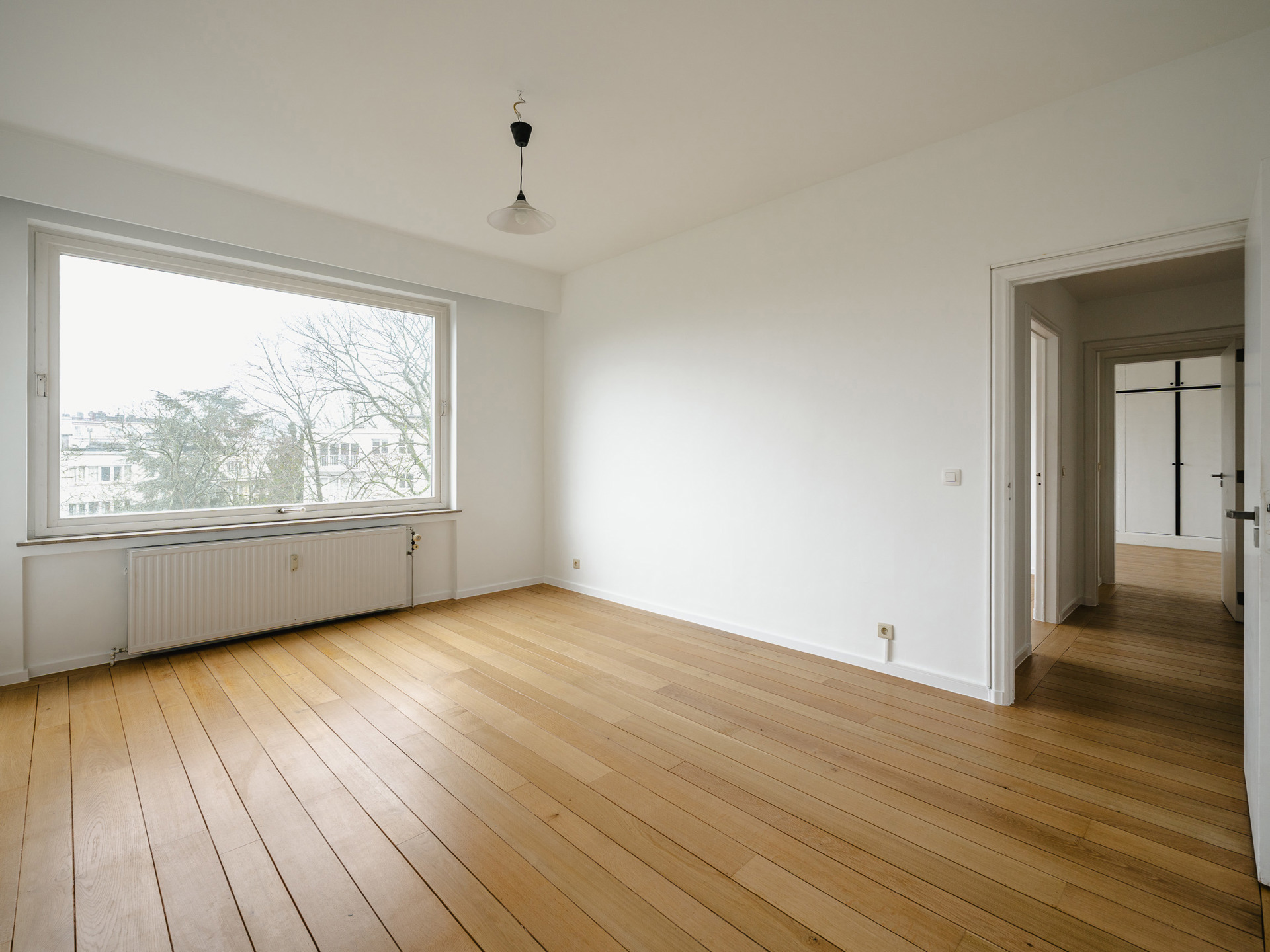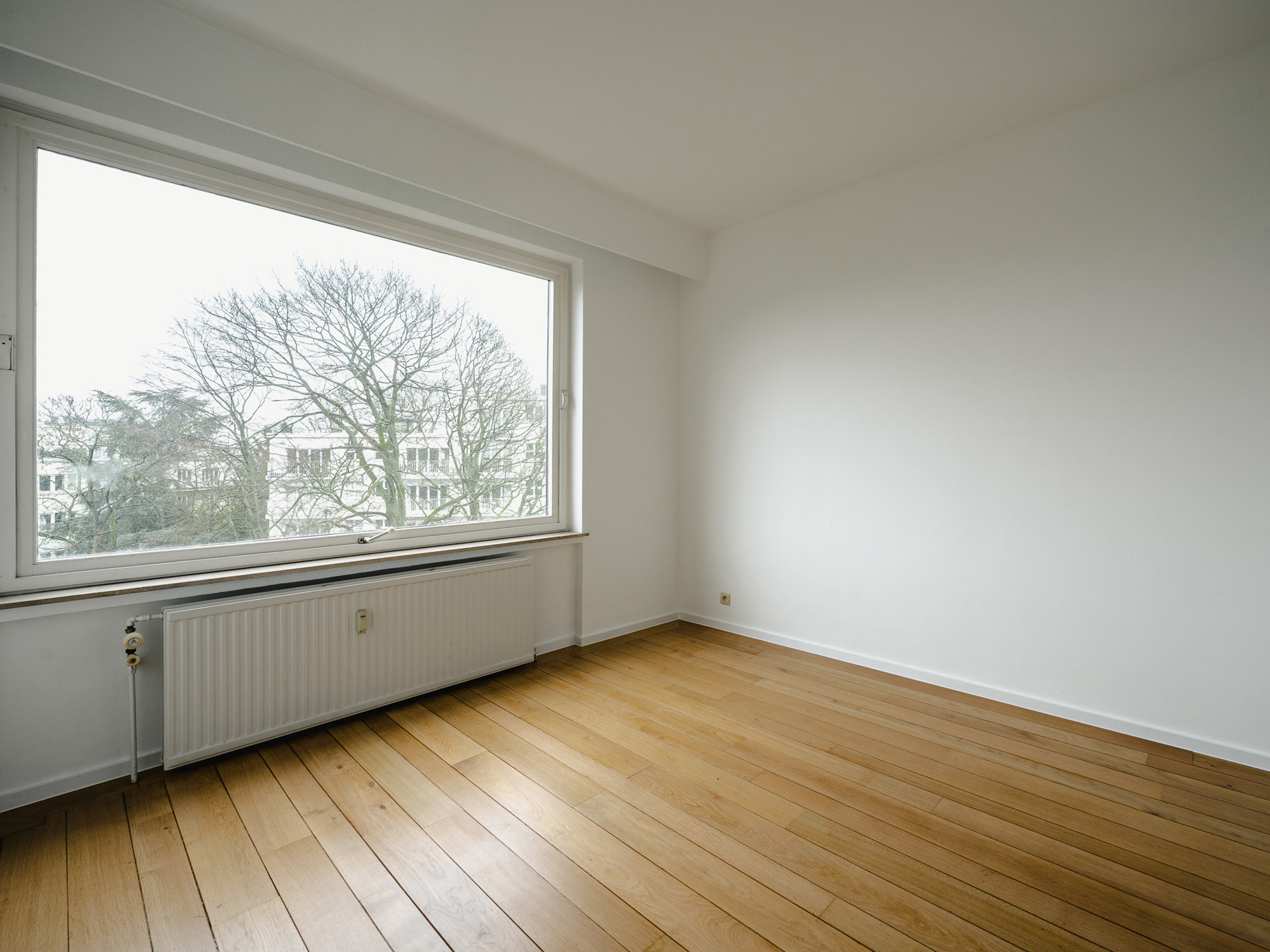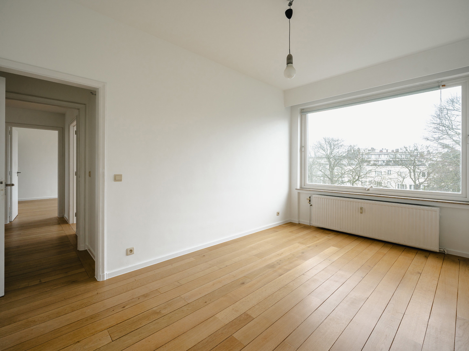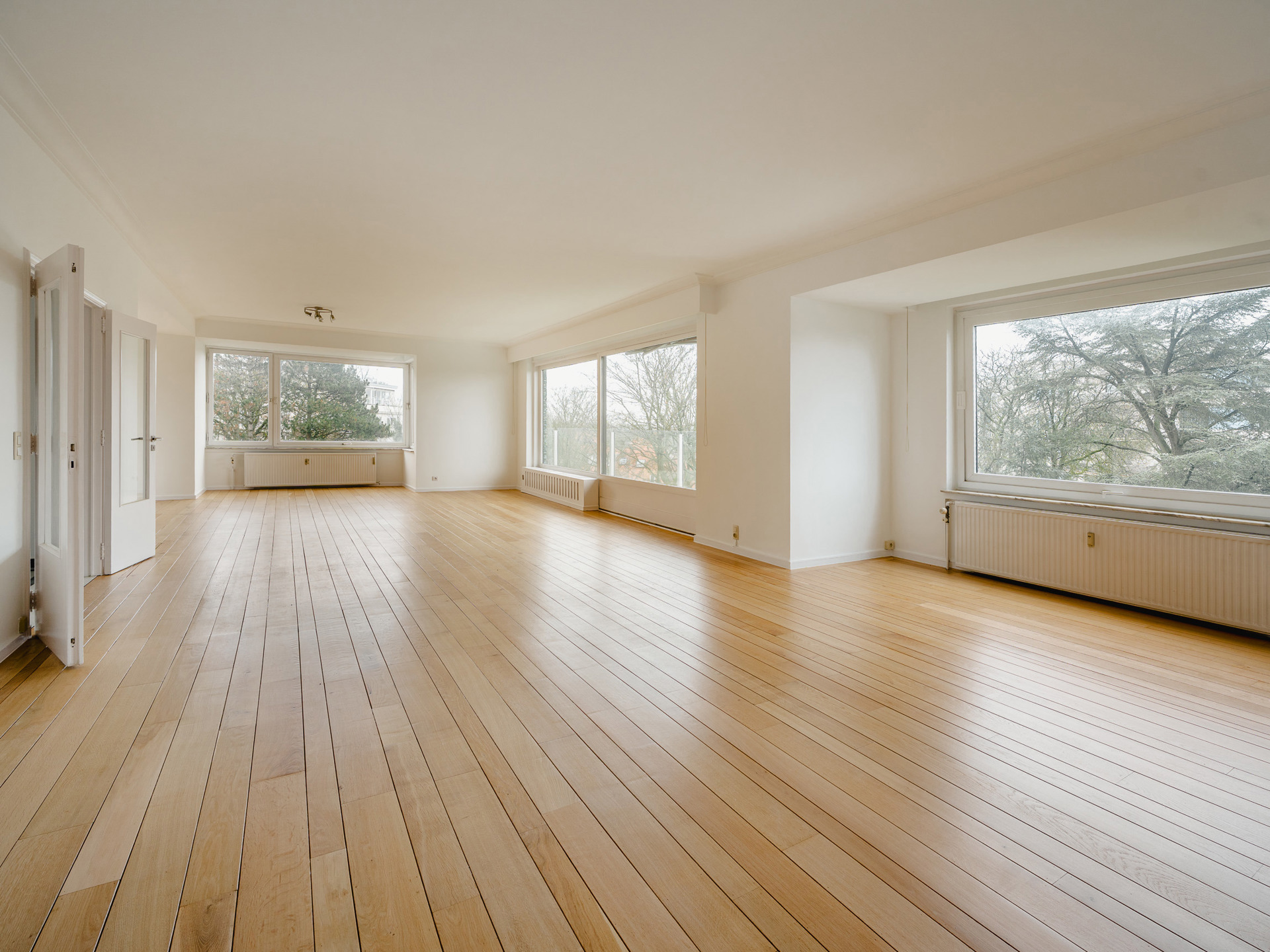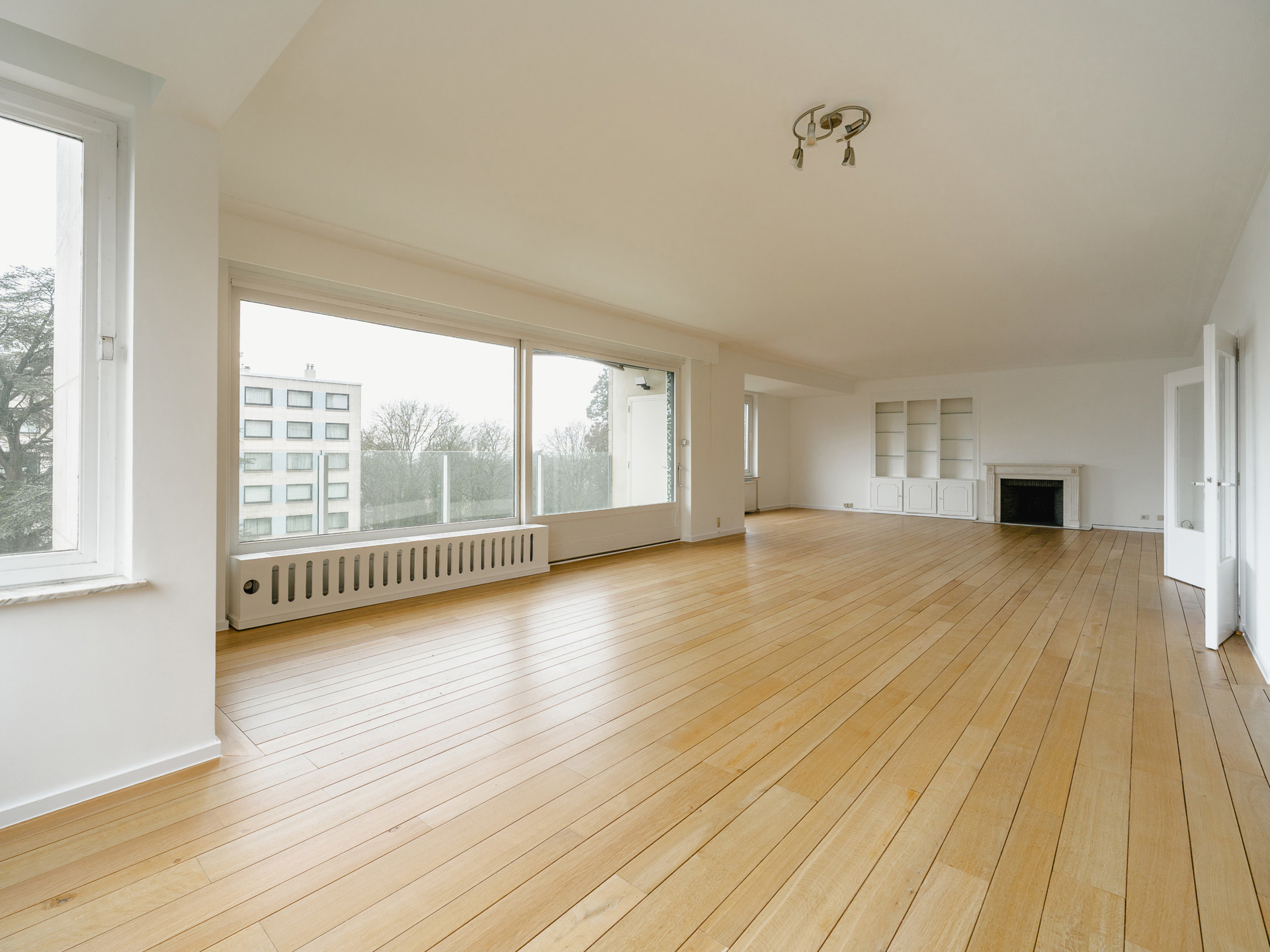 Ideally located between the Churchill roundabout and the Bois de la Cambre park, this corner apartment offers 205 m² of gross floor area (as per the Energy Performance Certificate) and features three bedrooms, a terrace, and access to a shared outdoor swimming pool. The apartment, fully renovated in 2025, is situated on the 5th floor of a building in the J.F. Kennedy Park complex. It opens onto an entrance hall with a cloakroom and guest toilet, leading to the light-filled living areas thanks to large bay windows overlooking the garden. These areas comprise a spacious living and dining room with access to a south-facing terrace offering unobstructed views of the park and the outdoor swimming pool, which is reserved exclusively for residents. A separate, fully equipped kitchen with a balcony and a separate laundry room with a washing machine and dryer complete the layout. The sleeping area includes a master bedroom with an en-suite bathroom and two further bedrooms sharing a bathroom. Other: hardwood floors, reinforced door, garage included, concierge service, access to the outdoor swimming pool, monthly maintenance fees for concierge, common areas, and private heating: €400. (EPC): B- The Churchill district is located in the heart of Uccle, offering easy access to shops and public transport, and is situated near the Bois de la Cambre park. For further information, please contact Laurence Ballaux at +32 (0)2 640 08 01.