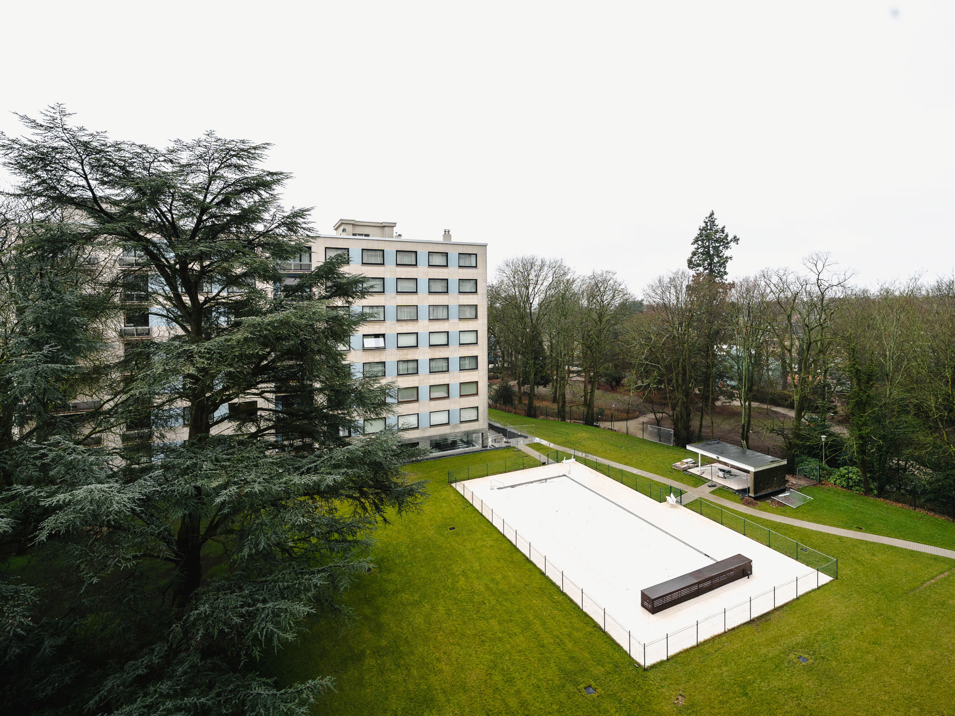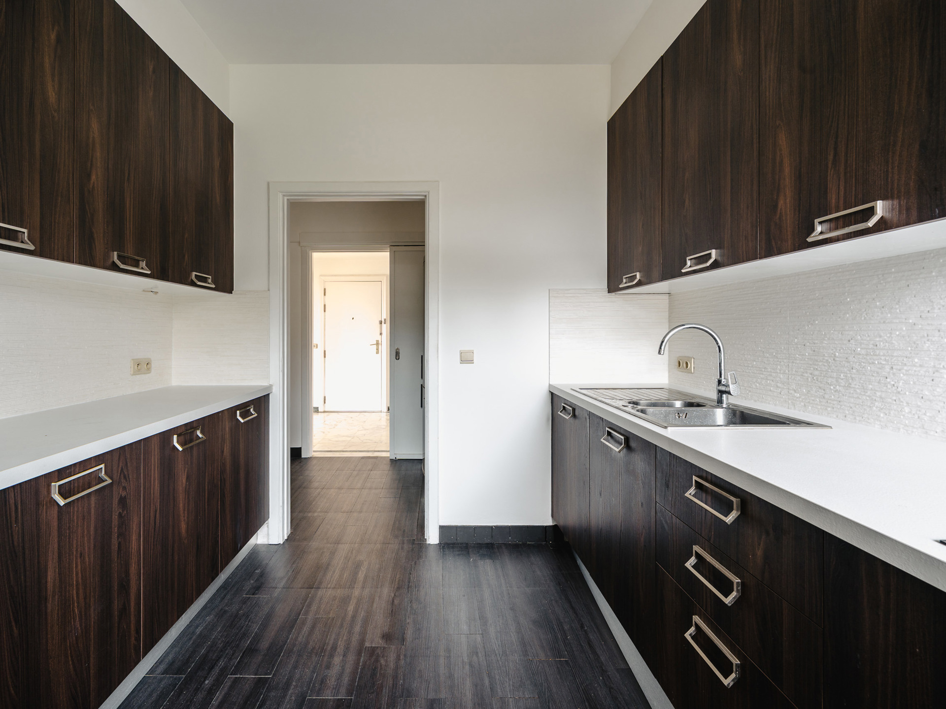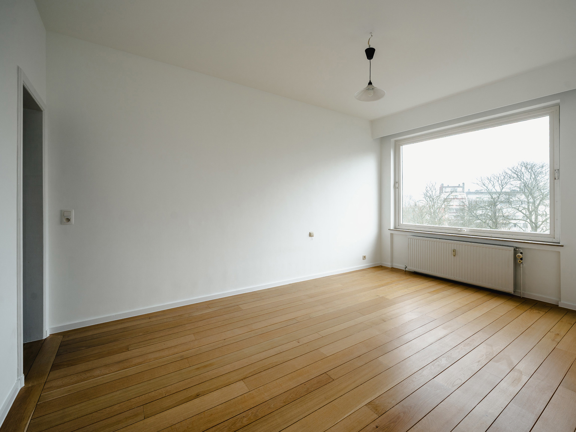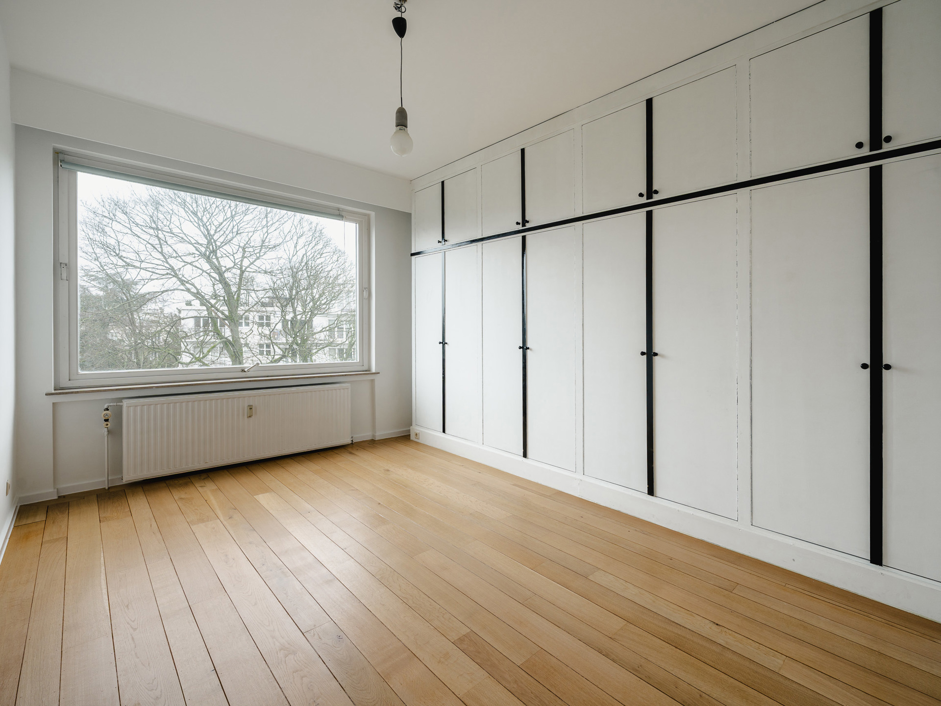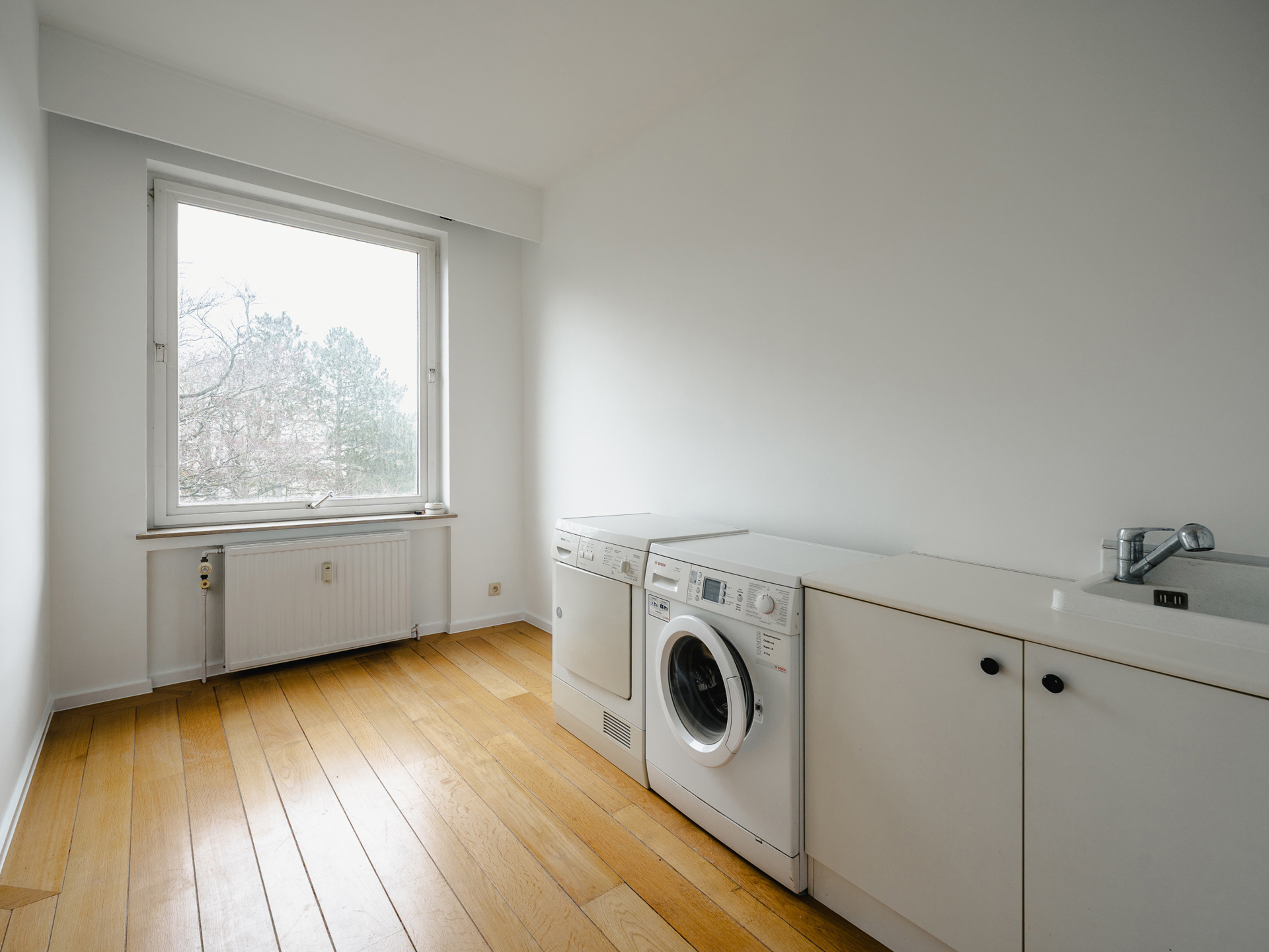 Ideally located between the Churchill roundabout and the Bois de la Cambre park, this corner apartment offers 205 m² of gross floor area (as per the Energy Performance Certificate) and features three bedrooms, a terrace, and access to a shared outdoor swimming pool. The apartment, fully renovated in 2025, is situated on the 5th floor of a building in the J.F. Kennedy Park complex. It opens onto an entrance hall with a cloakroom and guest toilet, leading to the light-filled living areas thanks to large bay windows overlooking the garden. These areas comprise a spacious living and dining room with access to a south-facing terrace offering unobstructed views of the park and the outdoor swimming pool, which is reserved exclusively for residents. A separate, fully equipped kitchen with a balcony and a separate laundry room with a washing machine and dryer complete the layout. The sleeping area includes a master bedroom with an en-suite bathroom and two further bedrooms sharing a bathroom. Other: hardwood floors, reinforced door, garage included, concierge service, access to the outdoor swimming pool, monthly maintenance fees for concierge, common areas, and private heating: €400. (EPC): B- The Churchill district is located in the heart of Uccle, offering easy access to shops and public transport, and is situated near the Bois de la Cambre park. For further information, please contact Laurence Ballaux at +32 (0)2 640 08 01.