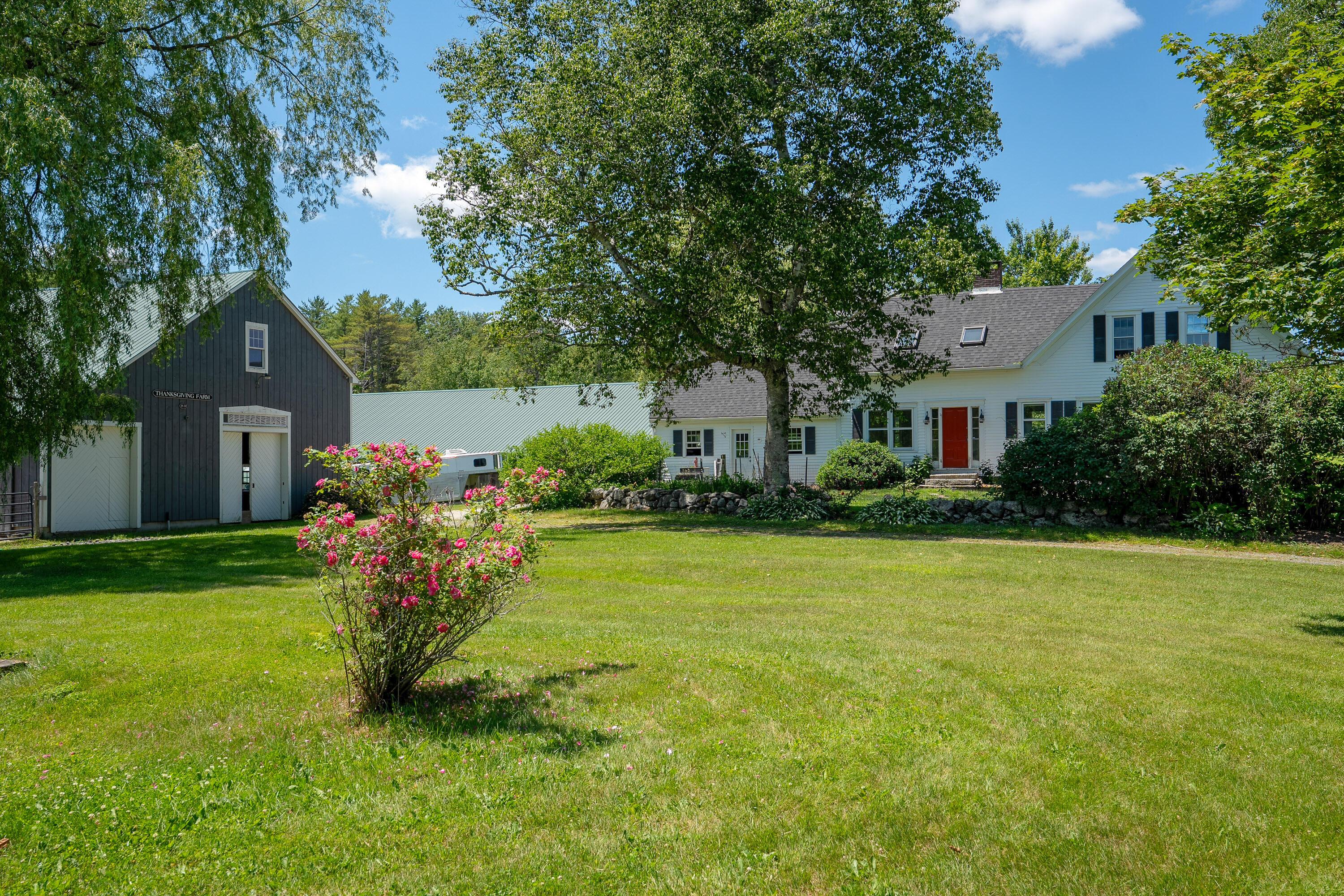 Welcome to historic and iconic Thanksgiving Farm! Built in 1830, this delightful horse farm, nestled on 24 acres of beautiful fenced pastureland and mature trees offers a serene countryside setting in Durham and just over 30 minutes to Portland. Major improvements within current ownership include a new roof, new septic system and new boiler. This handsome antique cape features three bedrooms, two bathrooms, a large eat-in kitchen with center island designed for bar seating and cozy wood stove, a formal dining room, and an expansive living room with a beautiful gas fireplace. Very convenient, attached two car garage leads to a mudroom and the kitchen. Just steps outside, you'll find a gorgeous seven-stall horse barn complete with a heated tack room, a run-in shed, and ample hay storage and leads to an outdoor riding arena. Featuring heirloom fruit trees, perennial and vegetable gardens, and even a duck pond, the grounds are lovely and perfect for your gardening and outdoor pursuits. The property also boasts a private trail system on its own 24 acres and is adjacent to even more. This is an excellent opportunity for the avid horse lover seeking a private equestrian retreat or looking to establish a commercial boarding operation. Or, take advantage of the fenced in pastures for livestock or agricultural use or simply enjoy this rare large acreage parcel as your personal haven. Showings begin Friday, March 20th