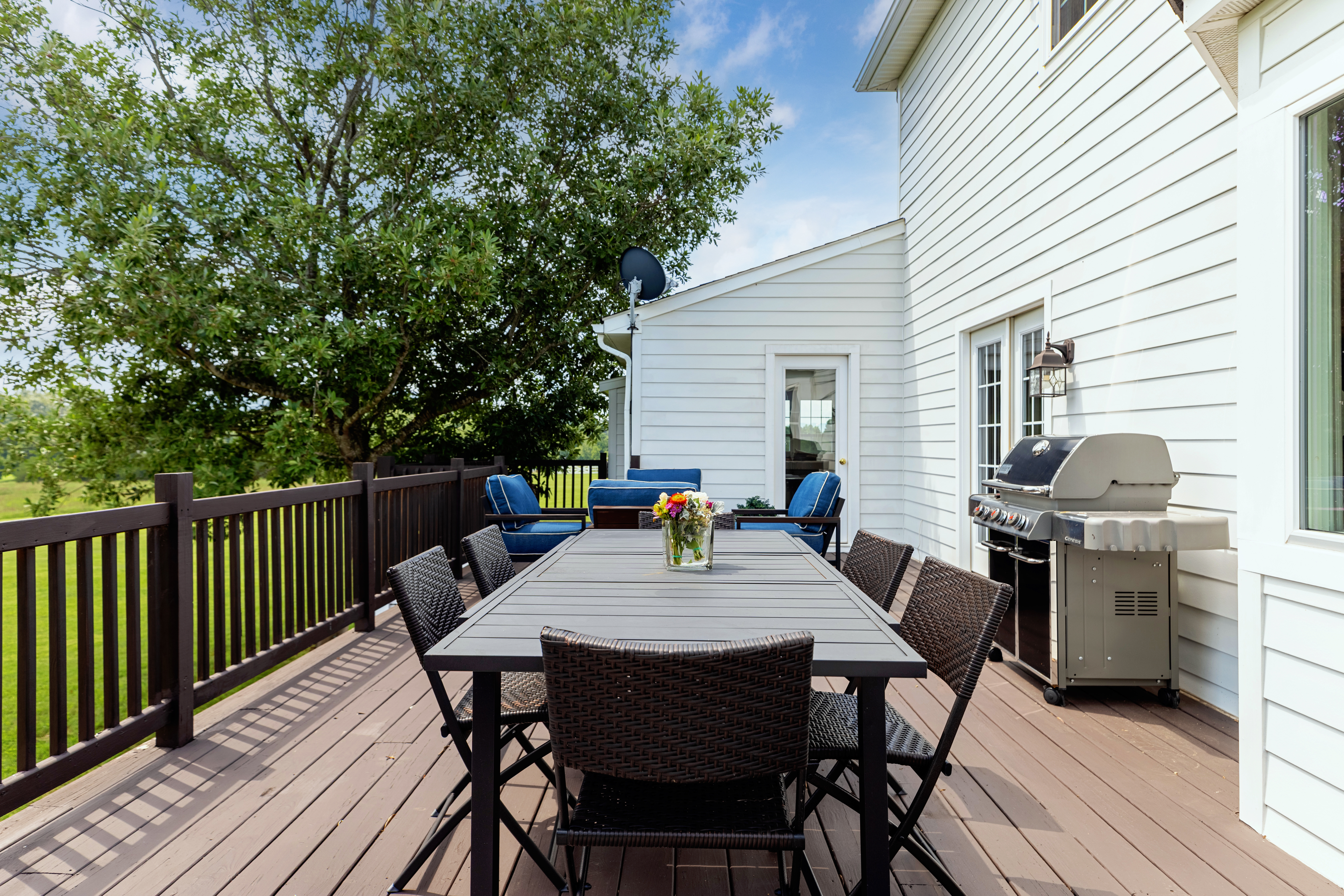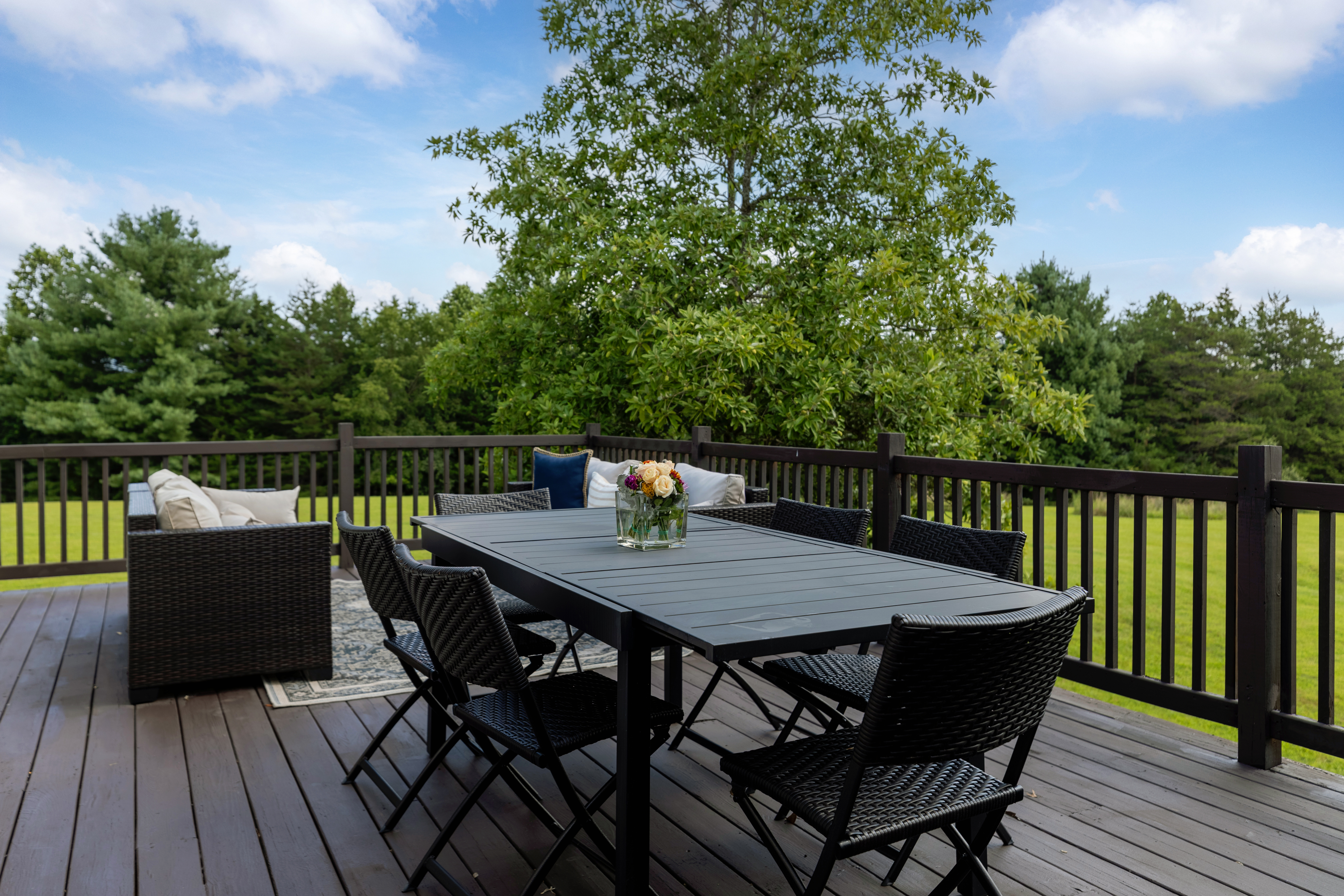 Perched among the rolling hills of Afton , this fully renovated estate captures extraordinary panoramic views of the Blue Ridge Mountains across 8.28 acre s of scenic countryside. Designed for both comfort and elegance, the home features refined interiors, seamless indoor-outdoor living, and an expansive terrace that frames the dramatic mountain backdrop.