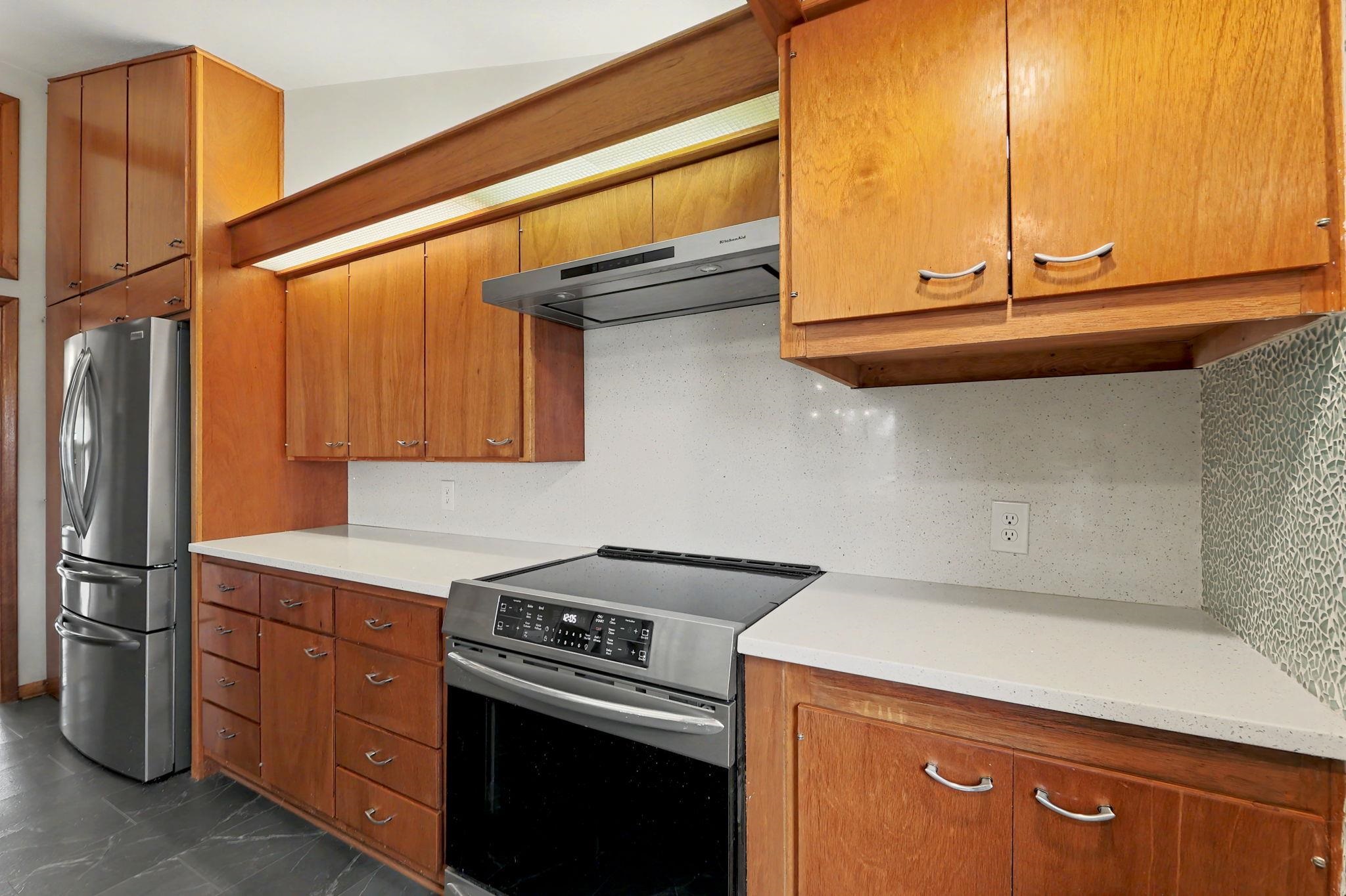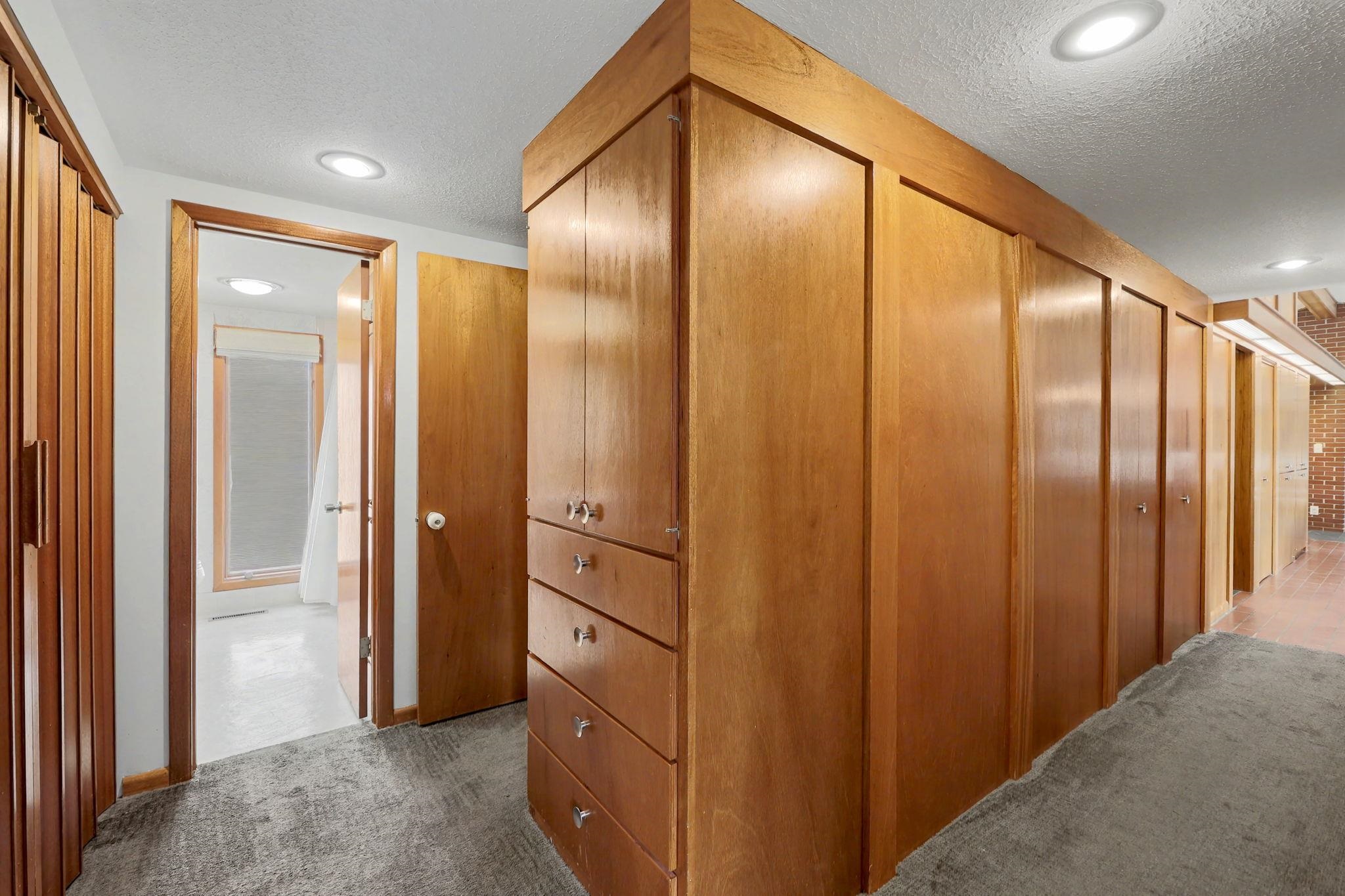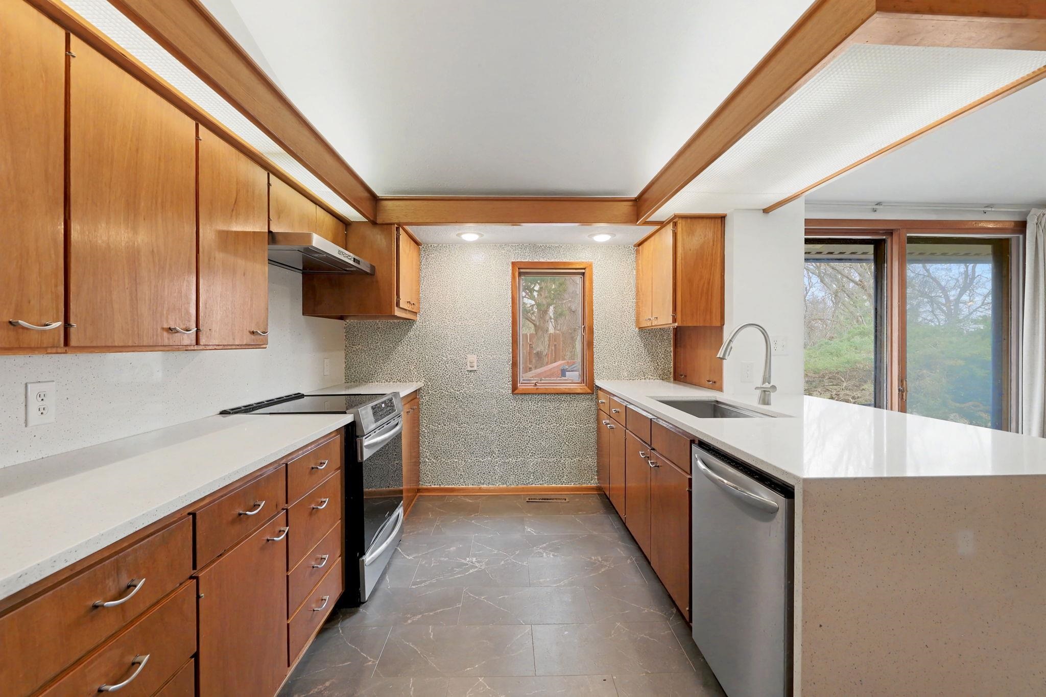 These 5 bedrooms and 3 bath home is located in Benjamin Hills Estates addition. This home has many updates; the kitchen has been updated with Quartz counter tops and appliances. The master bathroom also has been updated with a new walk-in shower, sink with Quartz countertops as well. There is also a Dumb Waiter from the kitchen to the basement. The is a new 3-month-old roof, garage door and opener & guttering. The main floor has a Kitchen with a hearth room and sliding door to one of the 2 outside patios, an eating bar in the kitchen and a gas fireplace in the Hearth room that is a 2-way fireplace to the Living room. There is also a large Living room and a Formal Dining area. The Master bedroom is large with a Master bathroom and two large closets. Main floor laundry 2 bedrooms and a full bathroom. The basement is a walkout basement to a second patio and to the back yard. The family room is very large with a woodburning fireplace, and a game/rec are with a Wet Bar. there are two bedroom and a 3dr full bathroom. There is a room that is a shop, but could also be a craft room, hobby room or storage. The 2 car garage is oversized for the extra yard items etc. No Specials. This isn't your cookie cutter home, it features many features and over 3,500 sq ft. There is also a circle drive for parking when entertaining family and friends