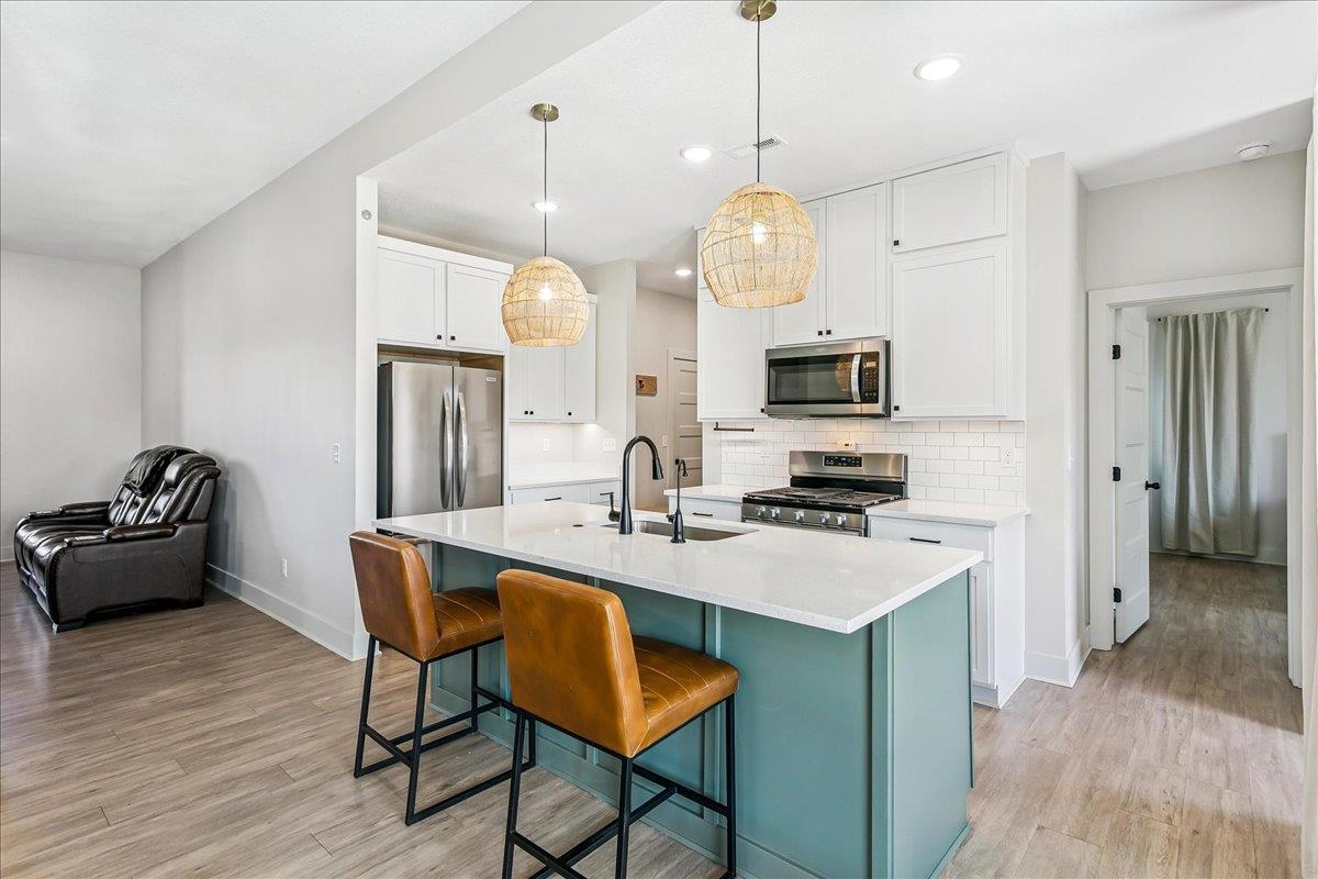 Check out this awesome zero-entry 3-bedroom, 2-bath home in Park City's Cambridge Valley subdivision, located in the highly regarded Valley Center School District. The spacious living room has a cozy two-sided fireplace and flows right into a bright dining area filled with natural light. The kitchen is super functional with tons of cabinets, an island with seating, and a walk-in pantry - plus an RO system and an instant hot water faucet. It's finished with stainless steel appliances, a gas stove, quartz countertops, and a gorgeous tile backsplash. One of the best perks of this floor plan is the extra-large dining space - perfect for hosting - with nearly floor-to-ceiling windows that let the sunshine pour in. Entertaining is a breeze thanks to the coffee/dry bar/serving area with both a wine cooler and beverage cooler - great for get-togethers inside or out. The primary suite has direct access to the covered patio and includes an ensuite bath with dual quartz vanities, a fully tiled shower, a private water closet, and upscale finishes. The walk-in closet connects right to the laundry room, which includes a utility sink and folding space - so convenient. On the other side of the home, you'll find two additional bedrooms with roomy closets and great natural light. The second full bath features dual quartz sinks and connects to both the second and third bedrooms. More upgrades? You've got an oversized, fully insulated and sheetrocked attached garage with three openers, plus a man door out to the backyard. There's also a water softener connected to the home and both exterior faucets - so washing outside won't leave water spots. And for commuting, you're just minutes from major highways with easy access to the Metro area. Don't miss this one - schedule your showing today!