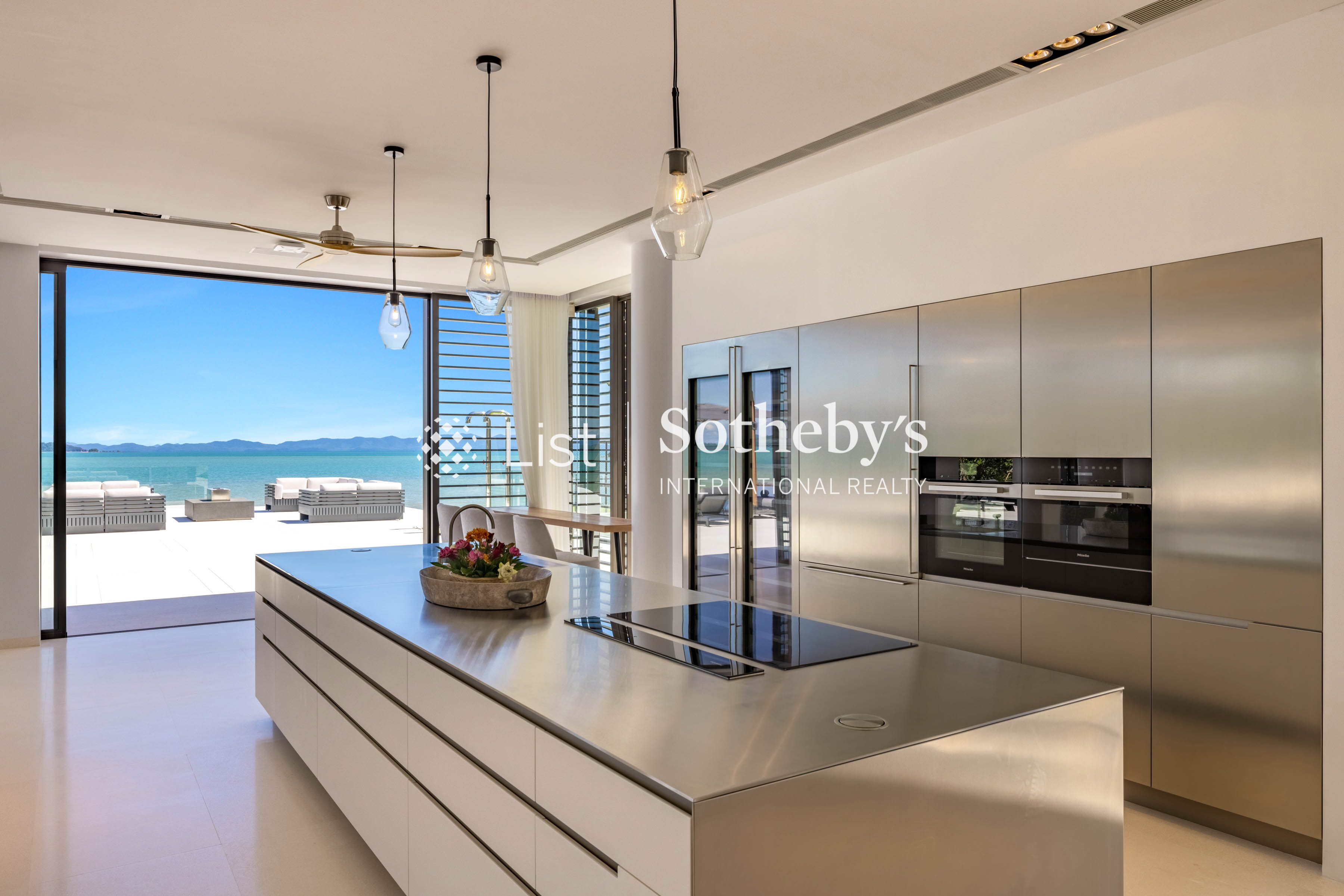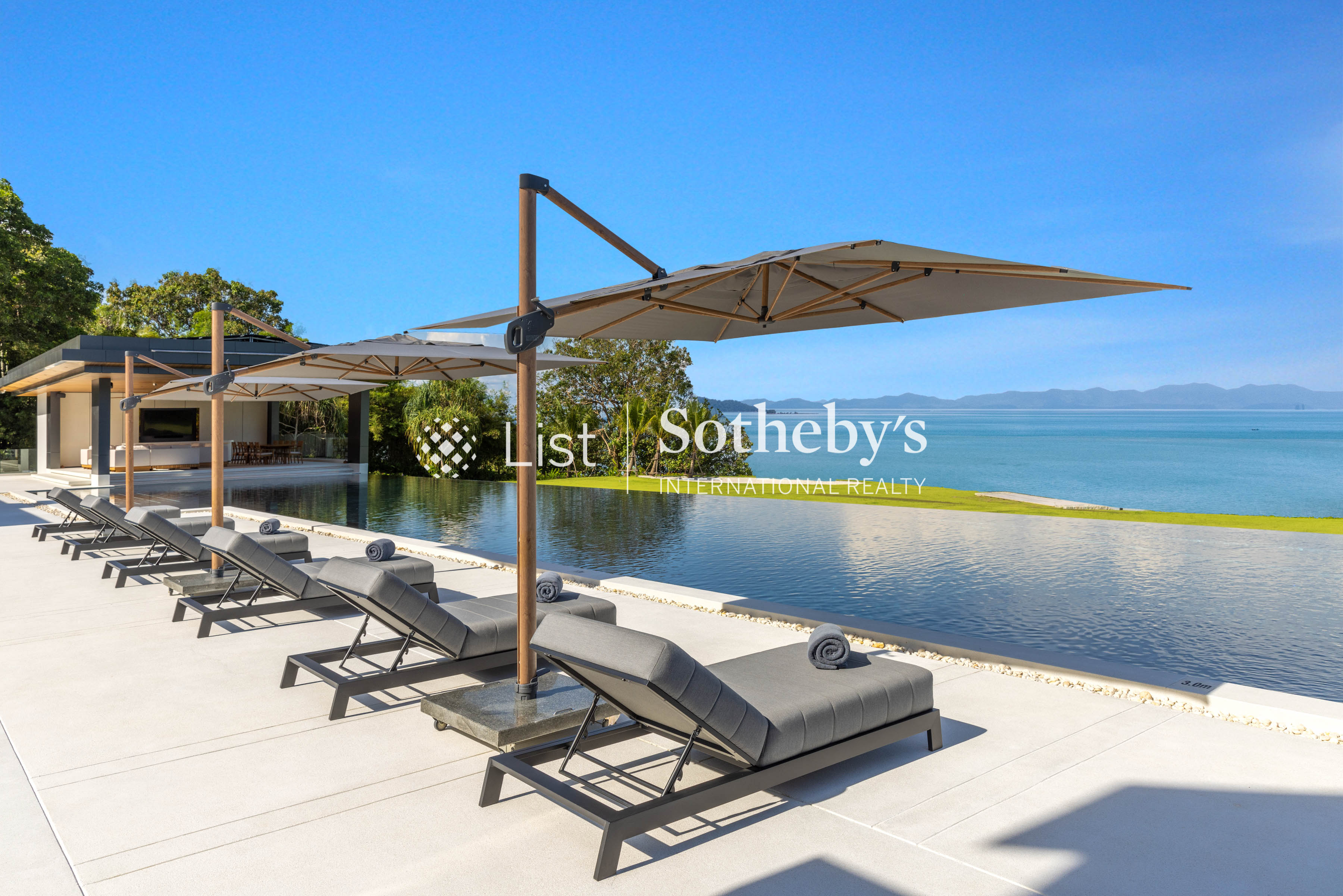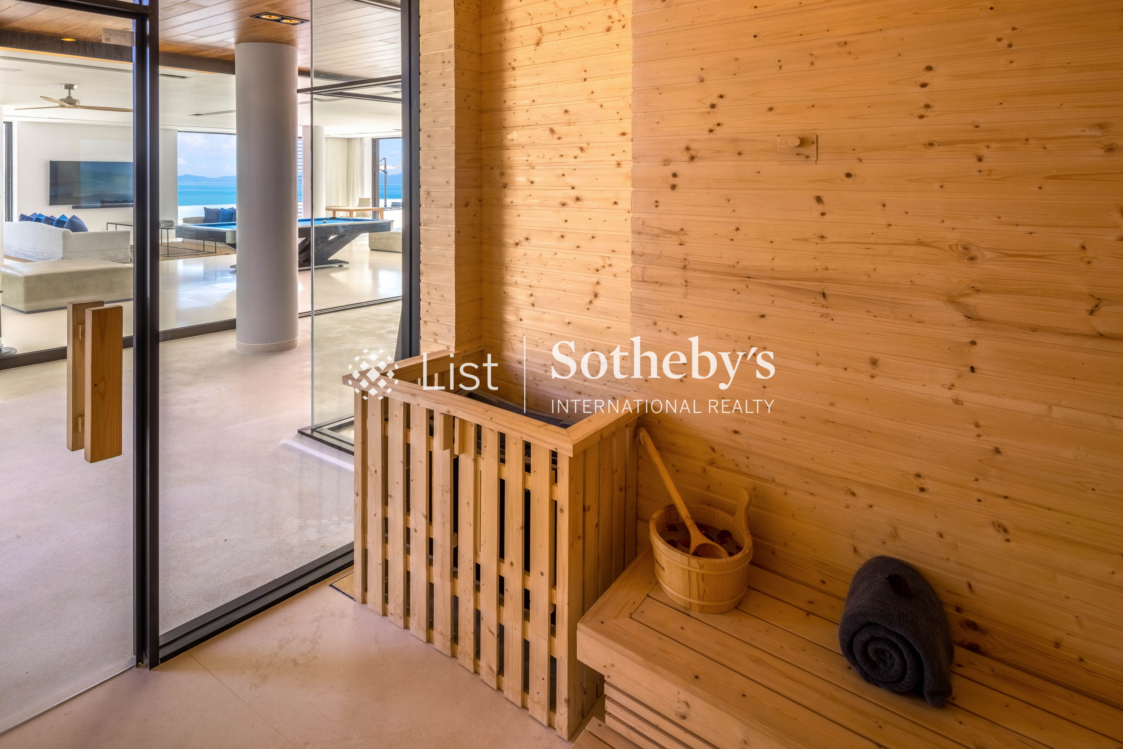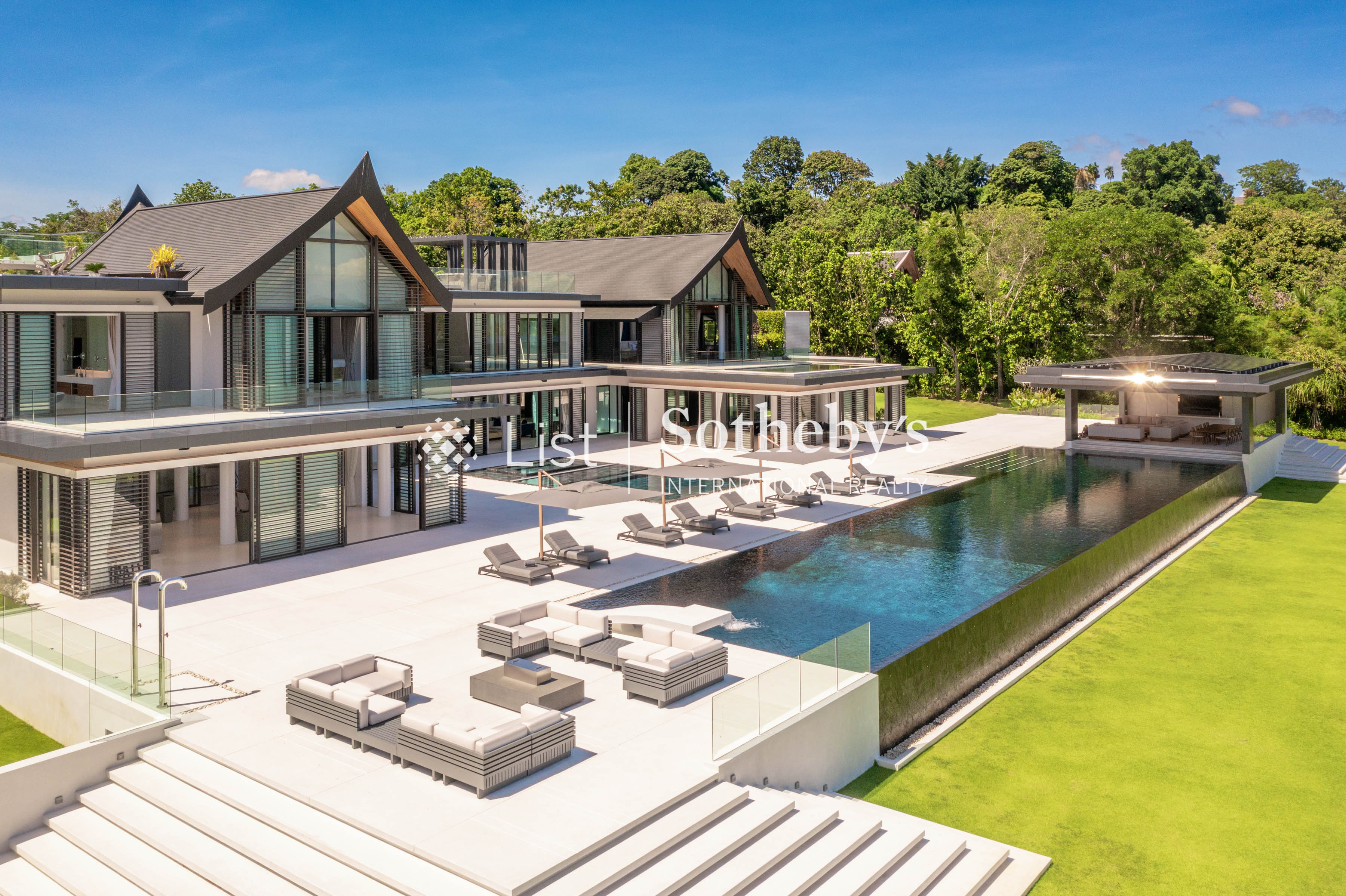 s two opulent master suites—featuring one king and one super king bed—are sanctuaries of indulgence, while the five elegant guest bedrooms provide flexibility with a mix of king and single beds, each accompanied by a lavish ensuite. From the grand open-plan living areas to the professional-grade kitchen and indoor-outdoor dining spaceswith sweeping sea views, every detail evokes a sense of effortless sophistication. A show-stopping 40-meter infinity pool extends toward the horizon, flanked by a jacuzzi for eight, children ’ s pool, and a rooftop bar perfect for sunset soirées. Leisure and wellness are redefined with a fitness room complete with a golf simulator, steam and sauna facilities, private cinema, game room, tennis court, and multi-purpose sports court. Outdoors, a lush garden play area and water sports options—including kayaks and paddleboards—invite endless recreation. Designed with seamless luxury in mind, Villa Amarasara offers a fully integrated SONOS sound system, high-speed WiFi throughout, and international plug sockets for effortless connectivity. Each bedroom features a safety deposit box, while thoughtful additions such as a baby cot, high chair, and garage for four cars ensure every need is met. A backup generator adds an extra layer of security and comfort. Located within a prestigious gated estate with 24-hour security, guests also enjoy access to on-site restaurants serving both Thai and European cuisine. Whether you