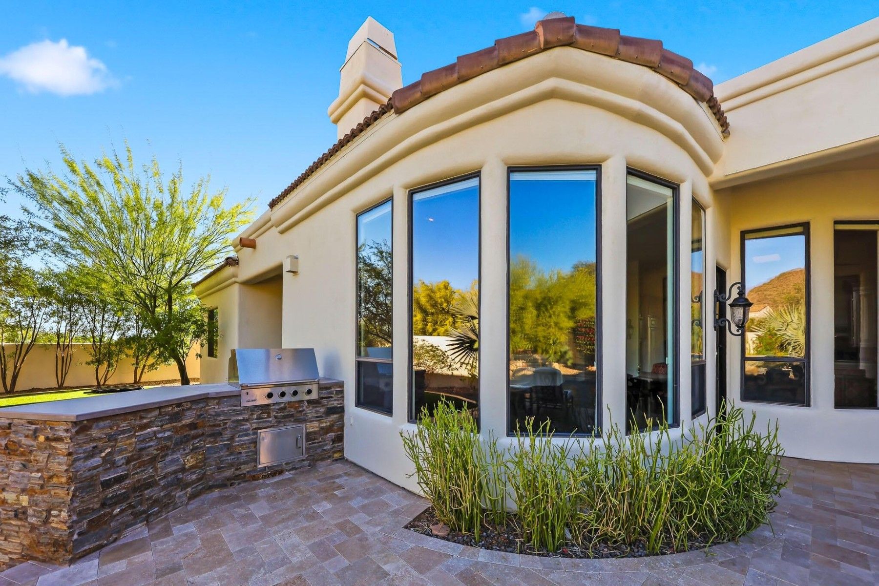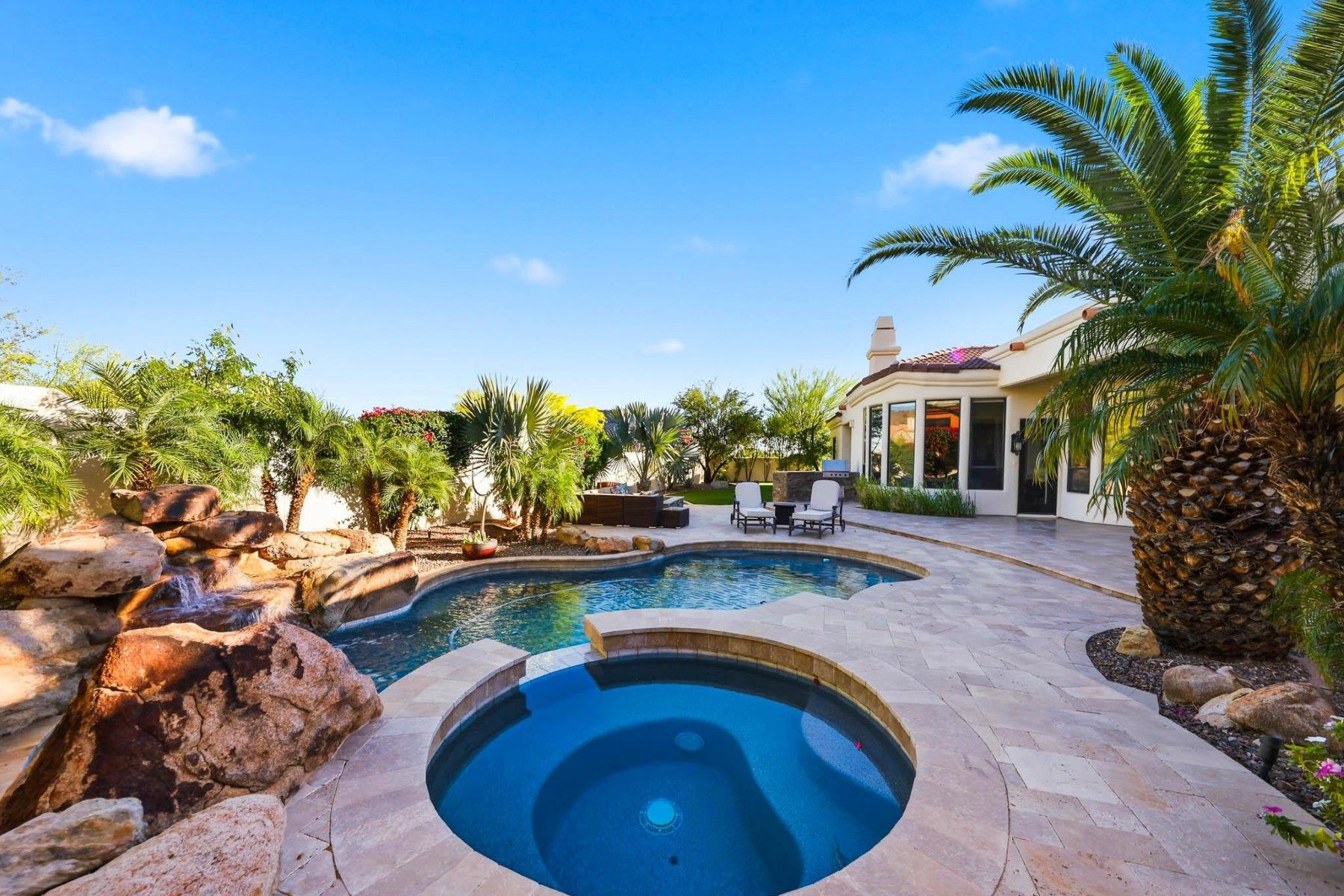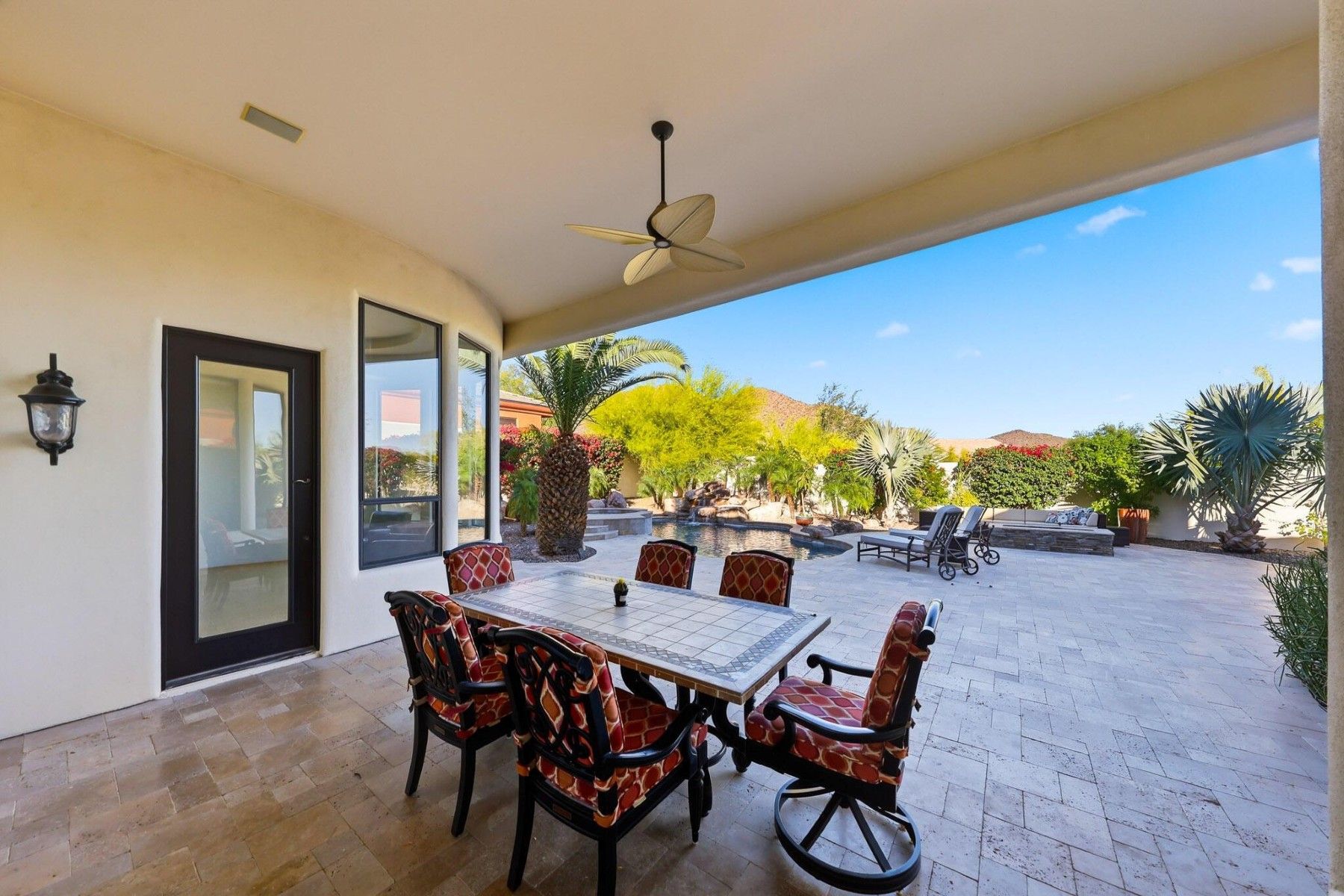 Located in the gated community of Villa Montavo, this custom home offers a split floor plan, generous living spaces, and a backyard designed for year-round Arizona living. High ceilings, oversized windows, stone and wood details, and custom cabinetry give the home a warm and timeless feel throughout.