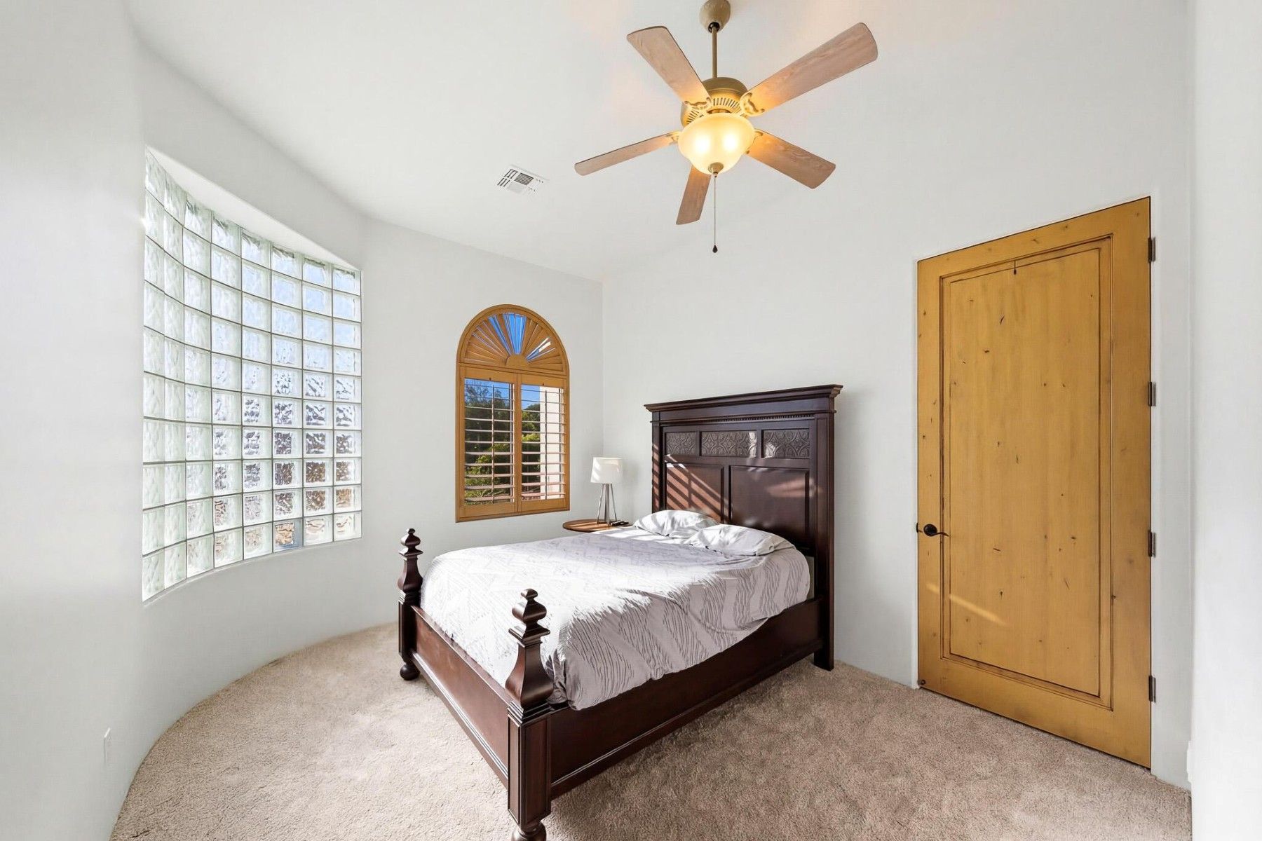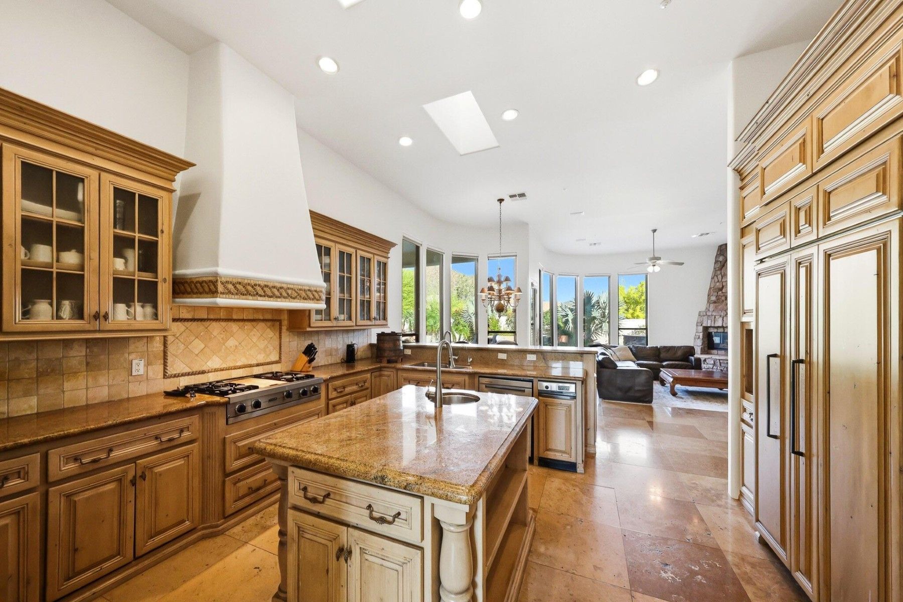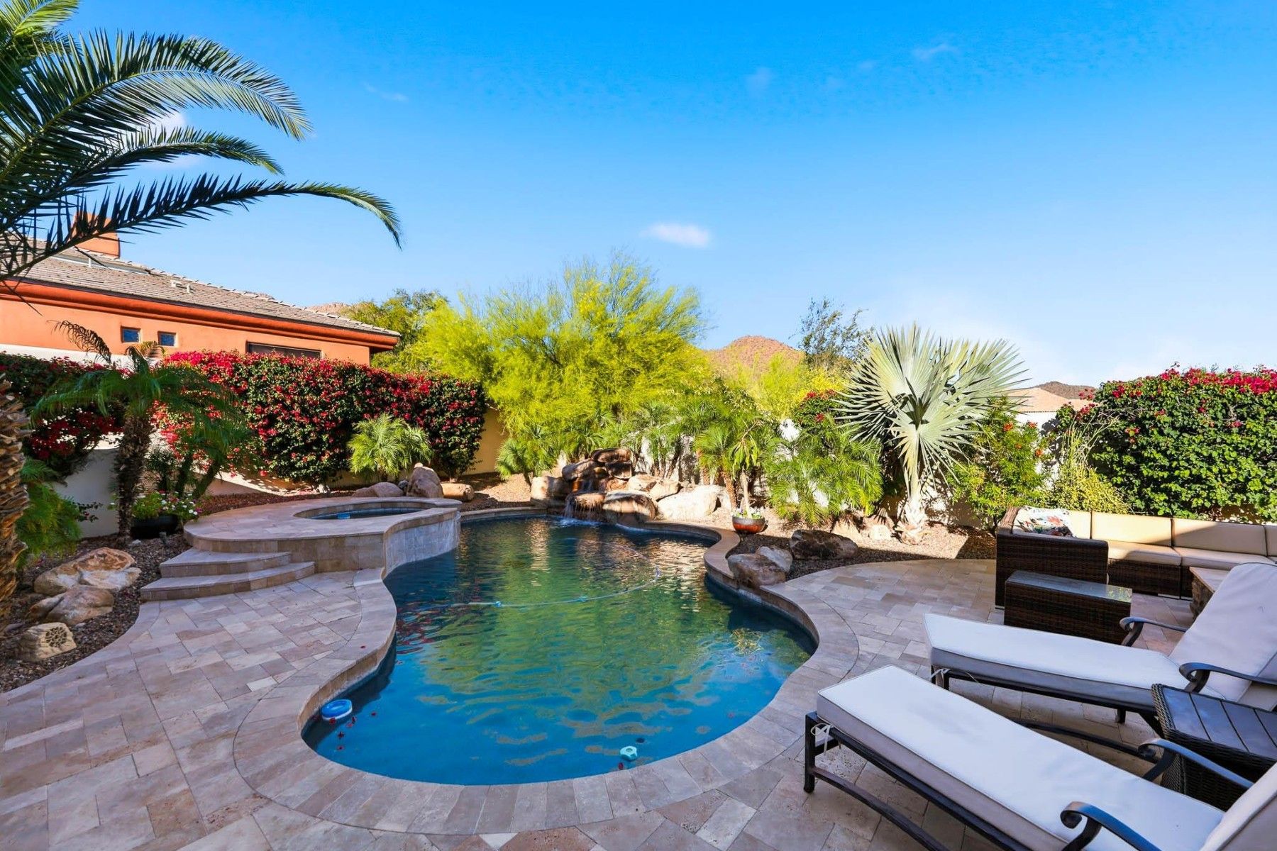 Located in the gated community of Villa Montavo, this custom home offers a split floor plan, generous living spaces, and a backyard designed for year-round Arizona living. High ceilings, oversized windows, stone and wood details, and custom cabinetry give the home a warm and timeless feel throughout.